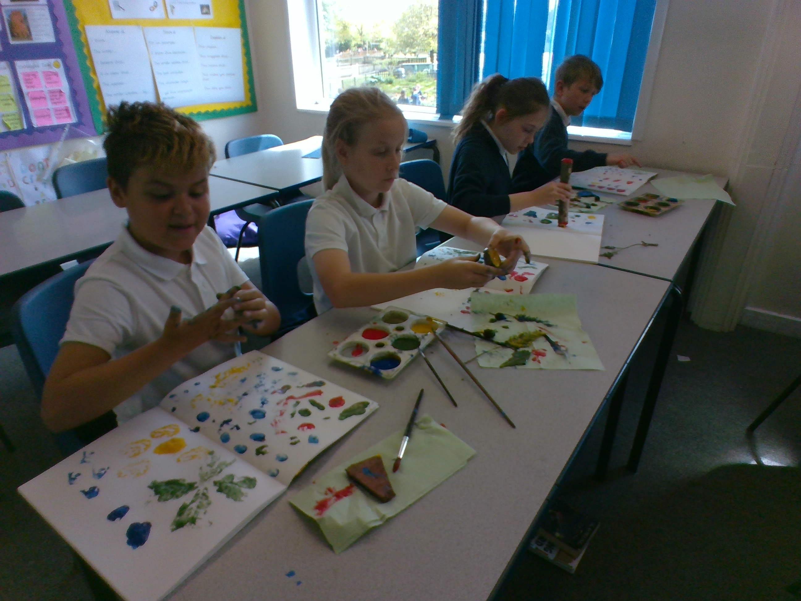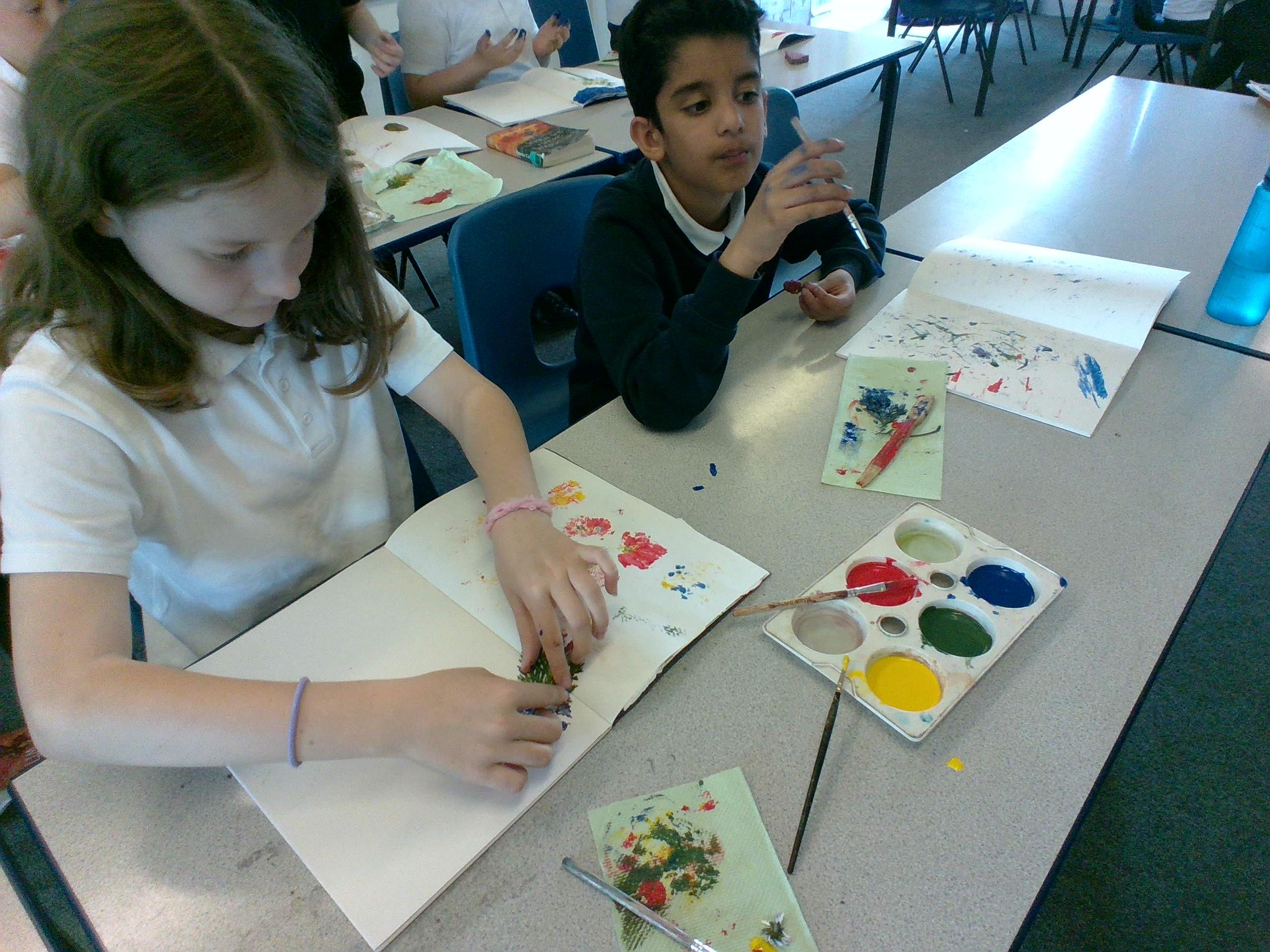 In Week 4, we explored abstract art and looked at the work of Henri Matisse and Pablo Picasso. Then, we collected objects from the playground and used them to print patterns in our sketchbooks. We have been wonderful artists!