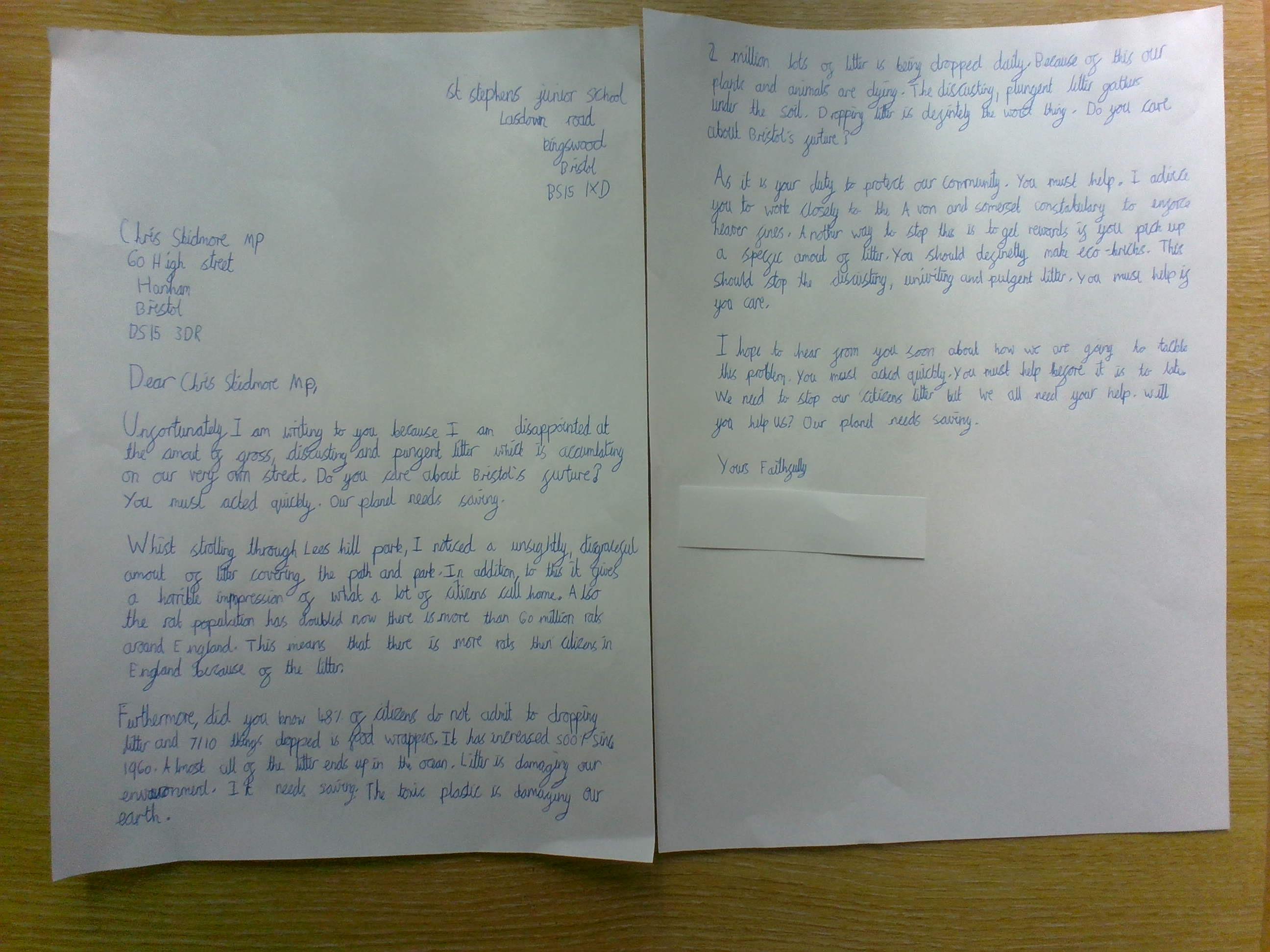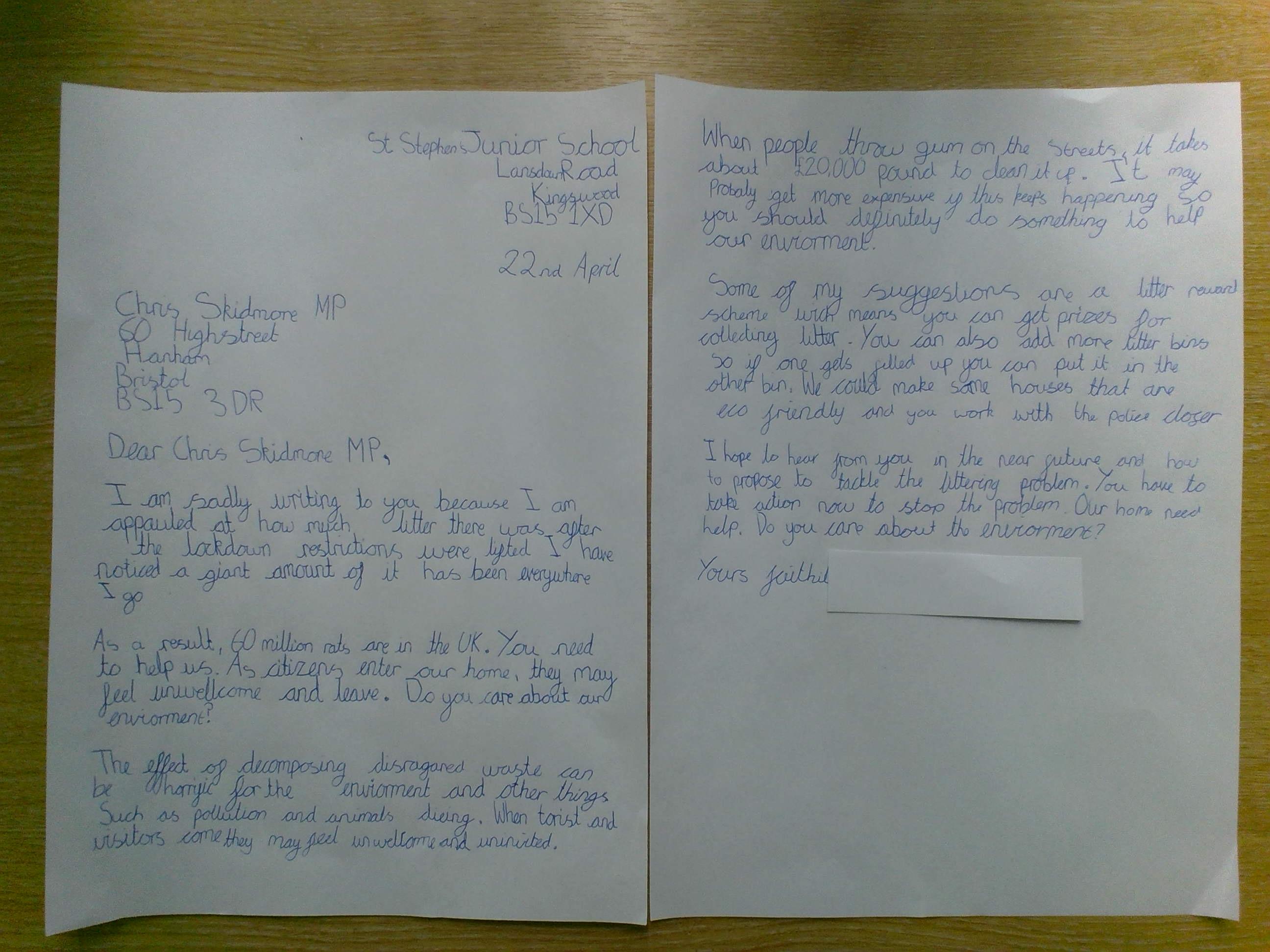 In Week 2, we have been fantastic writers! We have planned, written, edited and published superb persuasive letters addressed to our local MP, Chris Skidmore. We look forward to hearing what Chris Skidmore MP has to say about this environmental issue. Check out our work below!
