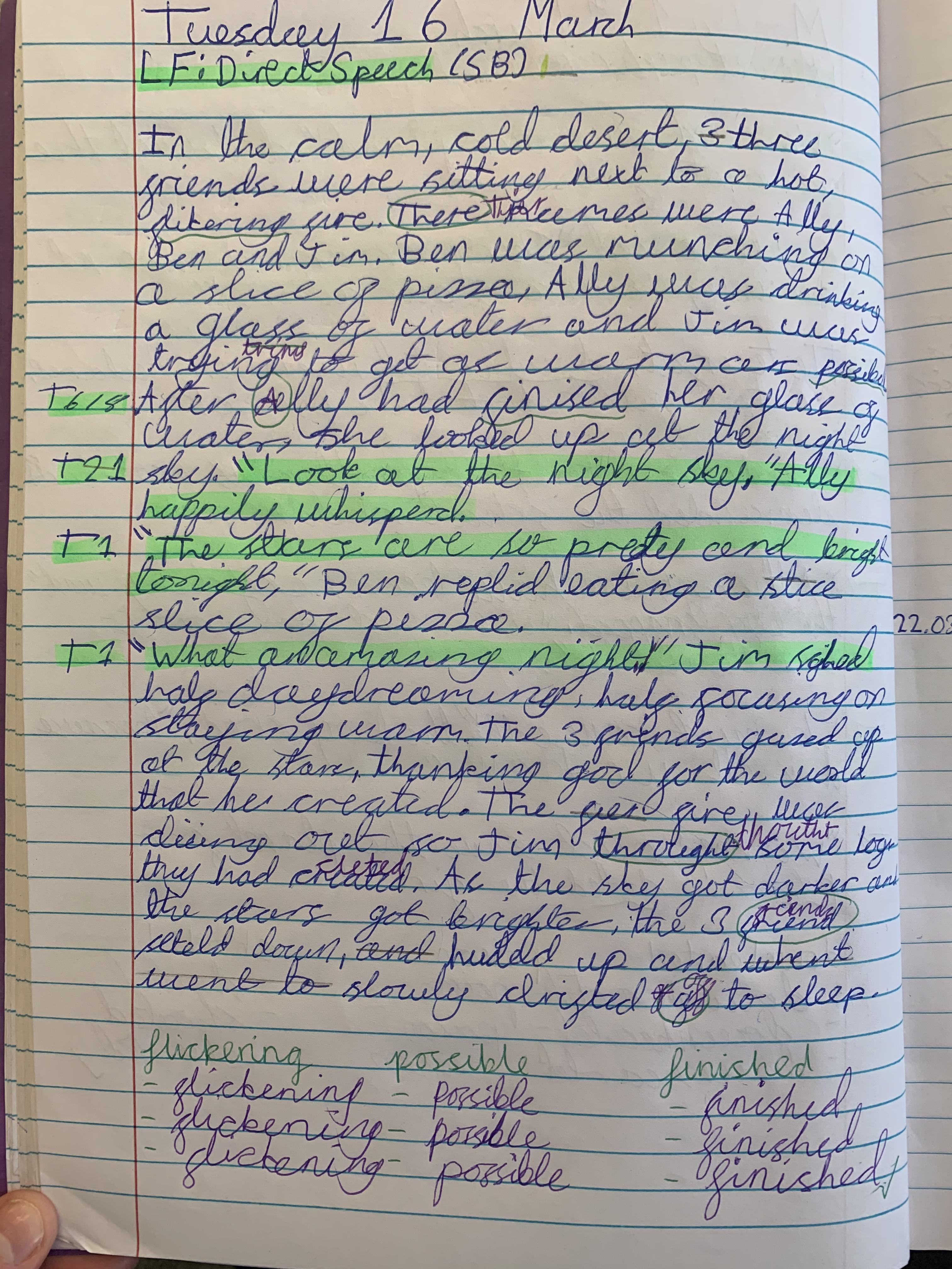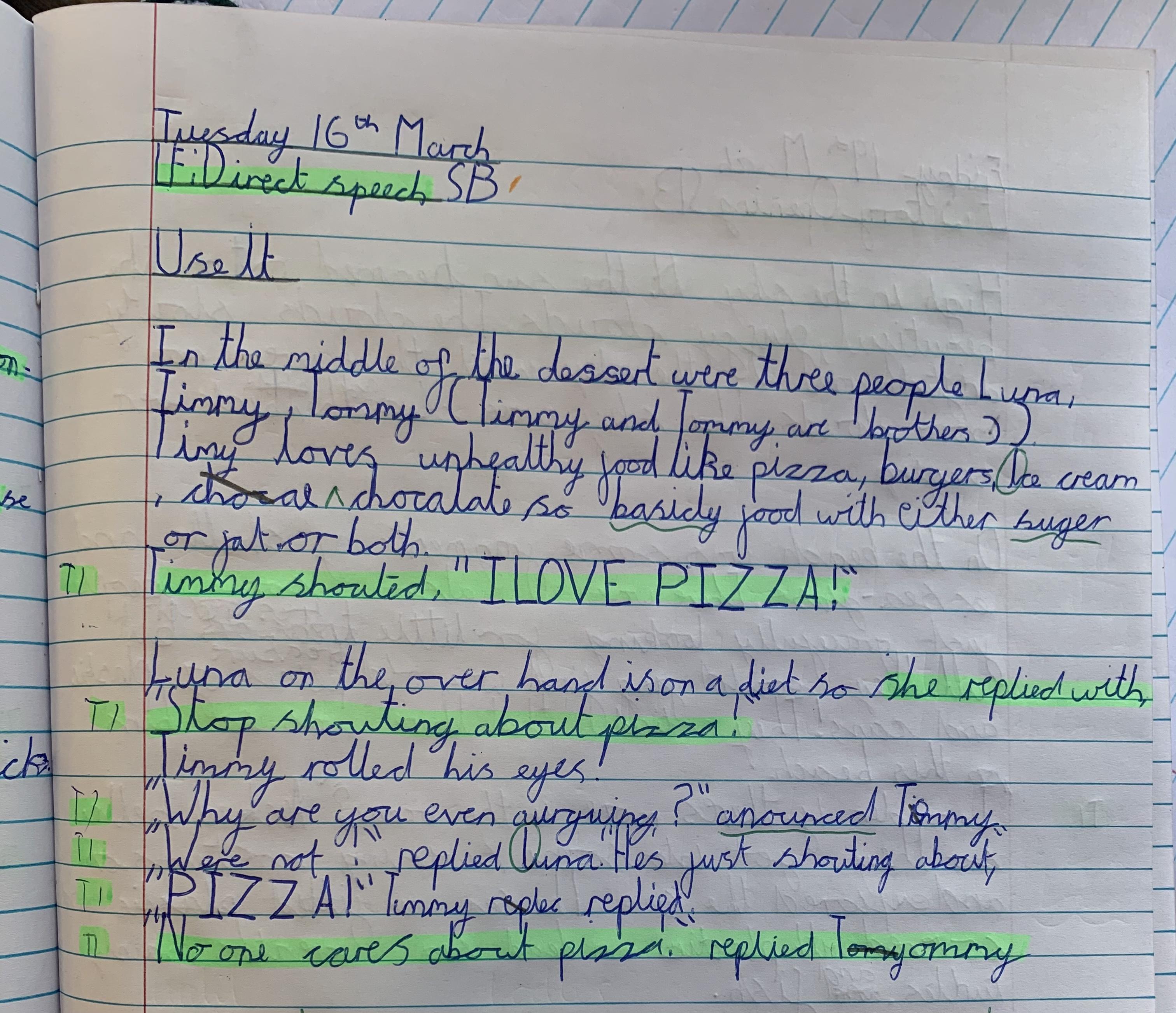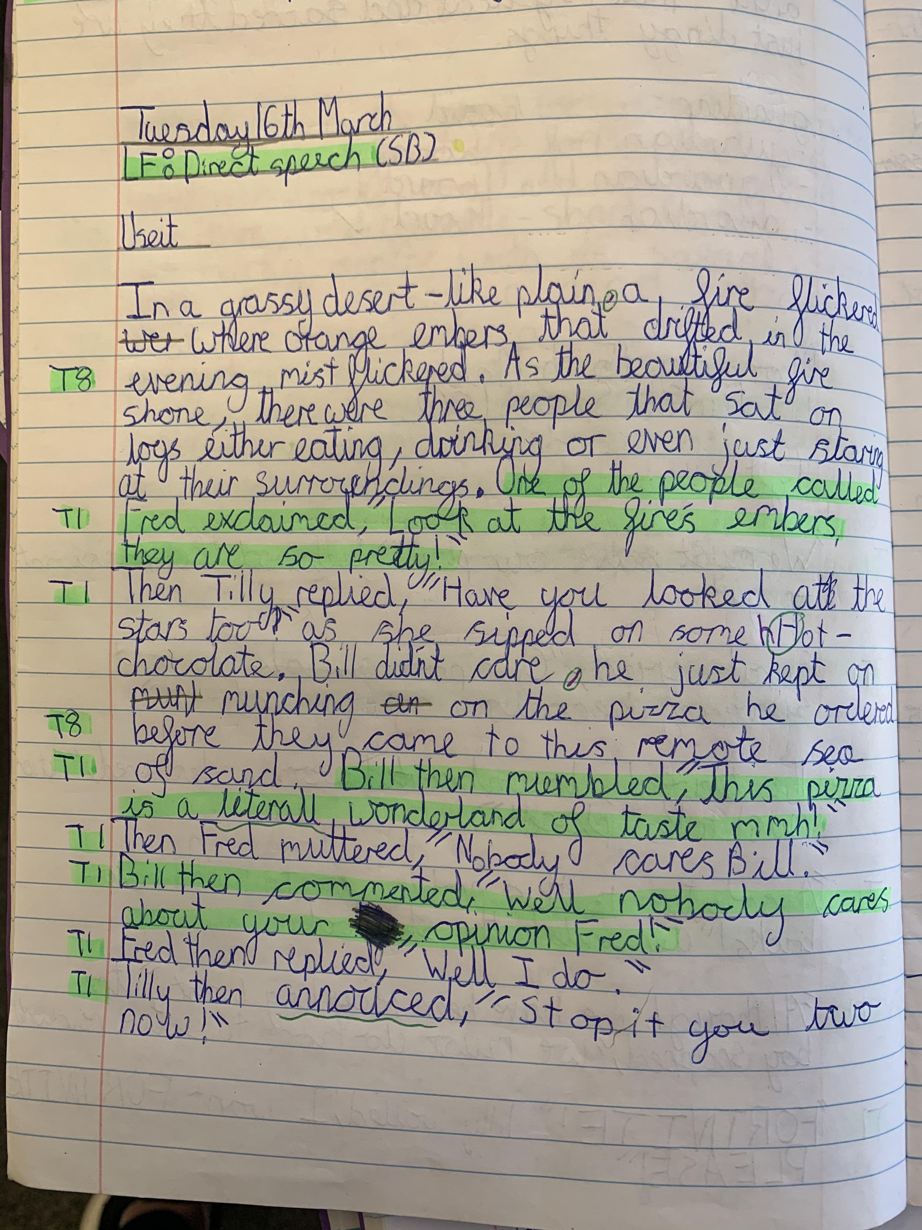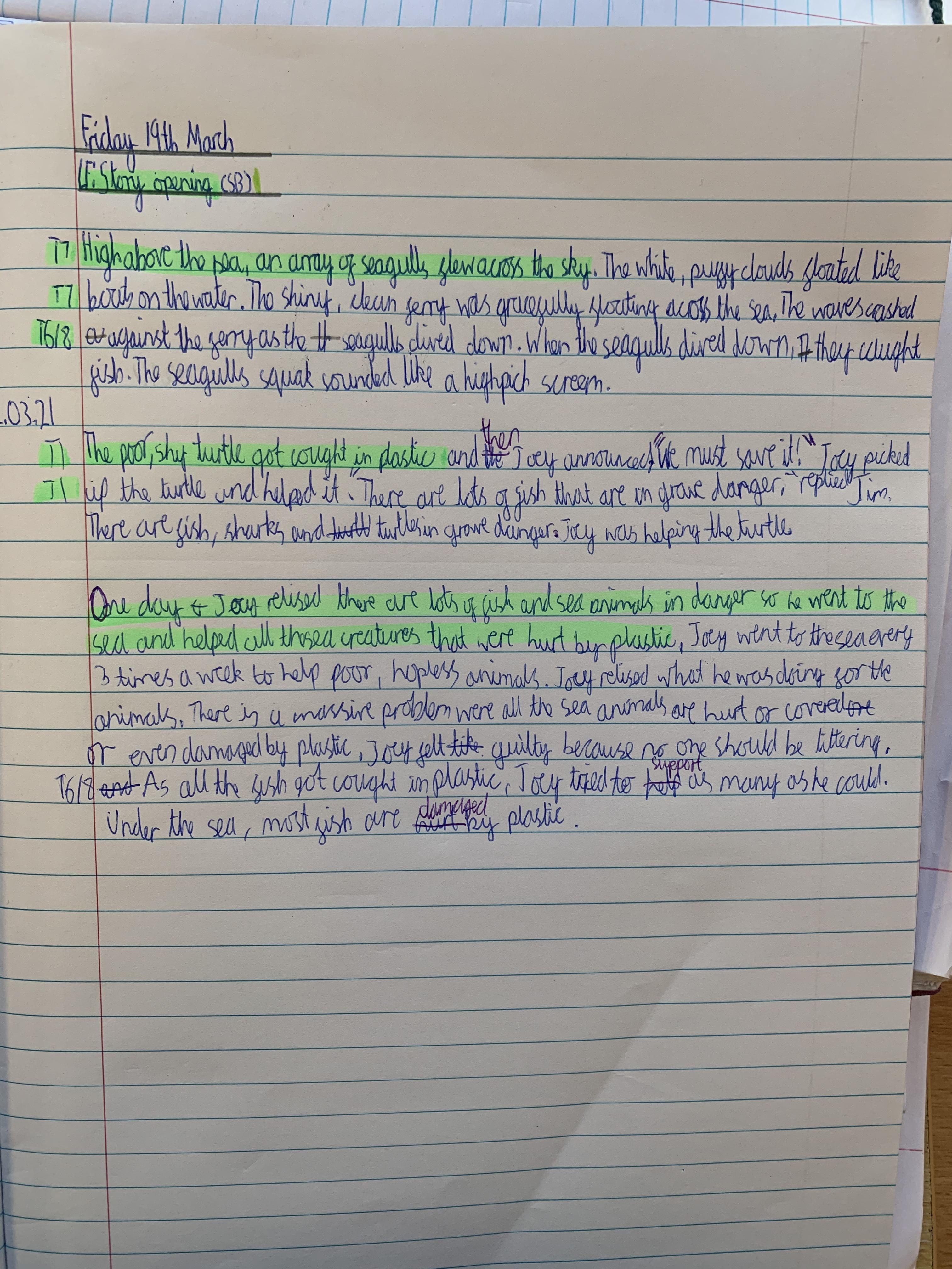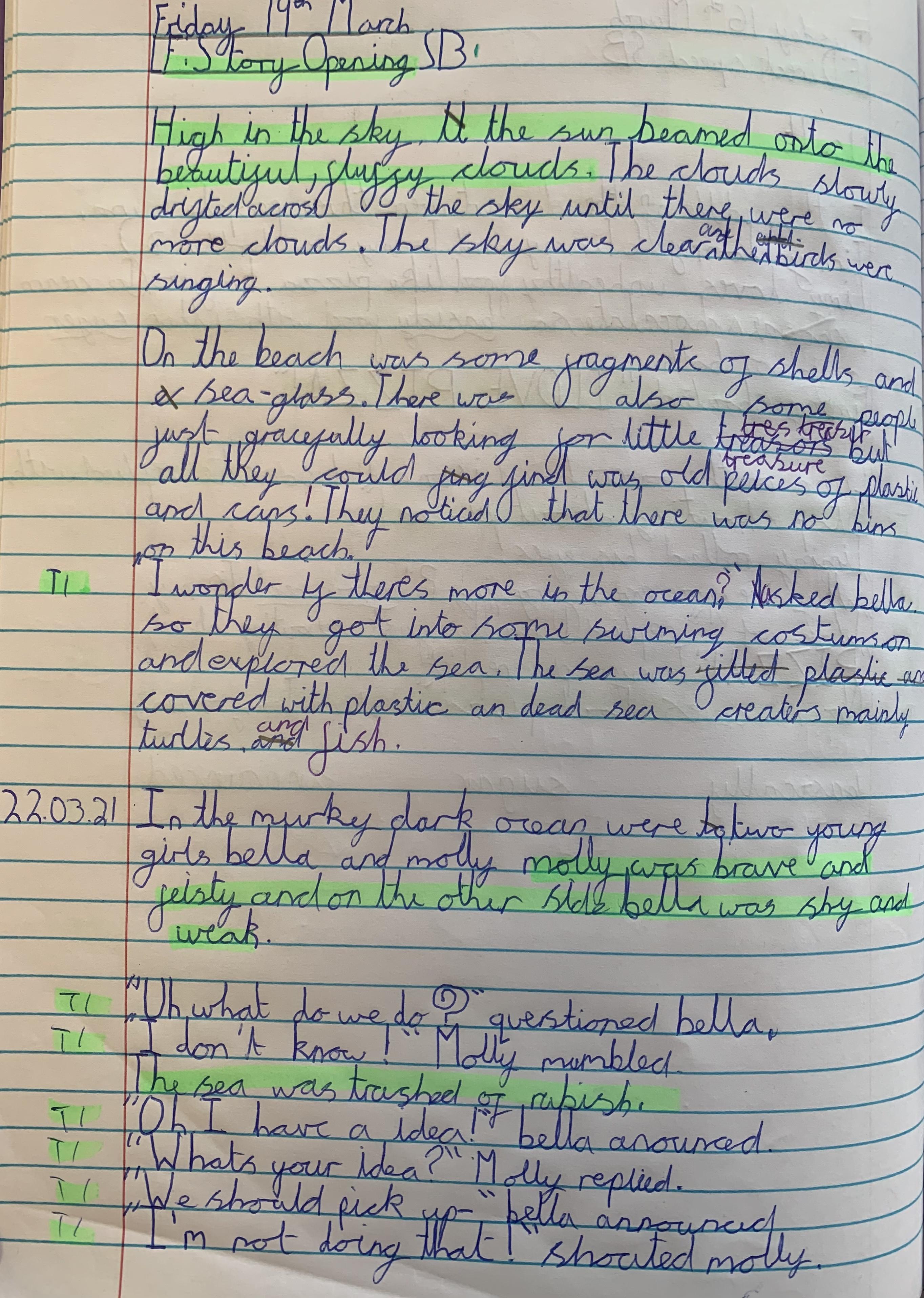 In Week 5, we have been amazing writers! We have written fantastic story openings and showcased our understanding of direct speech and expanded noun phrases. Firstly, we wrote a story opening about an illustration from the book, ‘Here We Are’. Then, we discussed the message of the story which is that we only have one planet earth so we must take care of it. This inspired our work and we linked the problems that occur in real-life and the Global Goals into our story openings. These included plastic in the ocean, forest fires and deforestation. Check out our work below!
