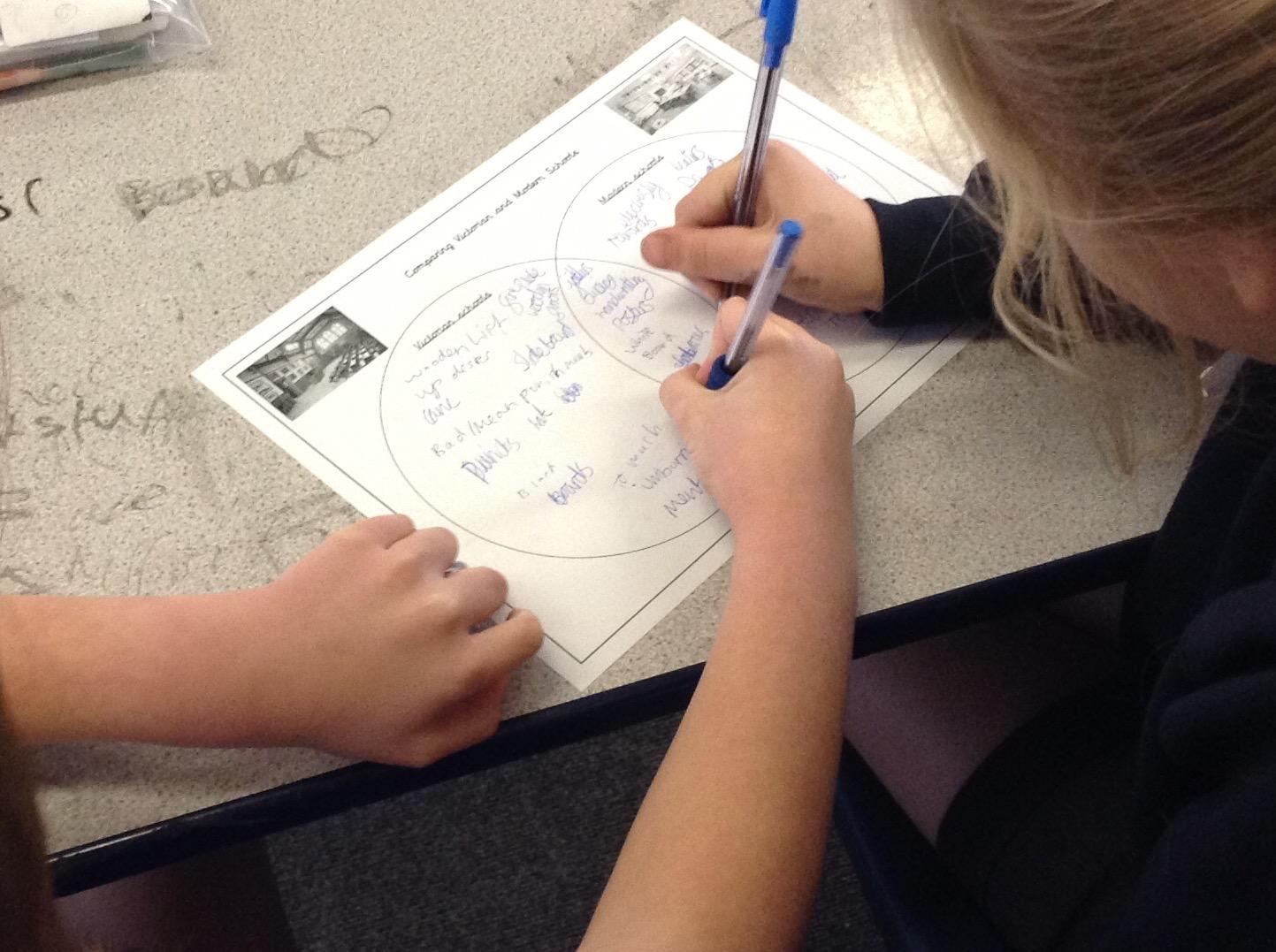 In Week 6, we had our enquiry WOW day all about the Victorian era! We kickstarted our day by choosing a Victorian name for ourselves and comparing Victorian and modern classrooms. We were particularly shocked at the punishments Victorian children faced if they were rude or didn't follow instructions. We watched clips about child slavery in coal mines and textile mills and discussed whether their rights were met, linking to the Rights of a Child. We have practised Victorian handwriting and found out about Victorian workhouses. In the afternoon, we explored what games Victorian children played and made our very own spinning tops and thaumatropes.