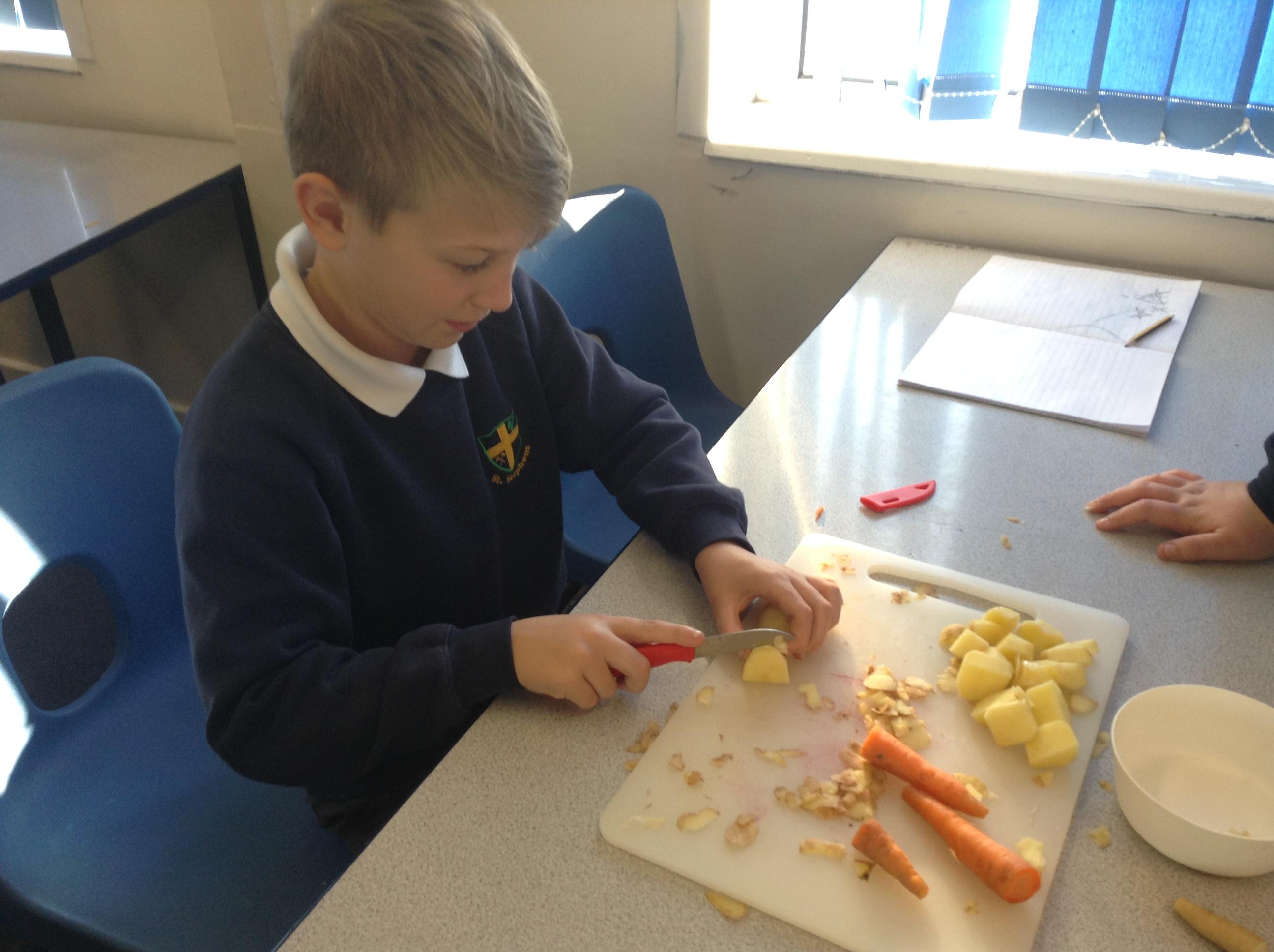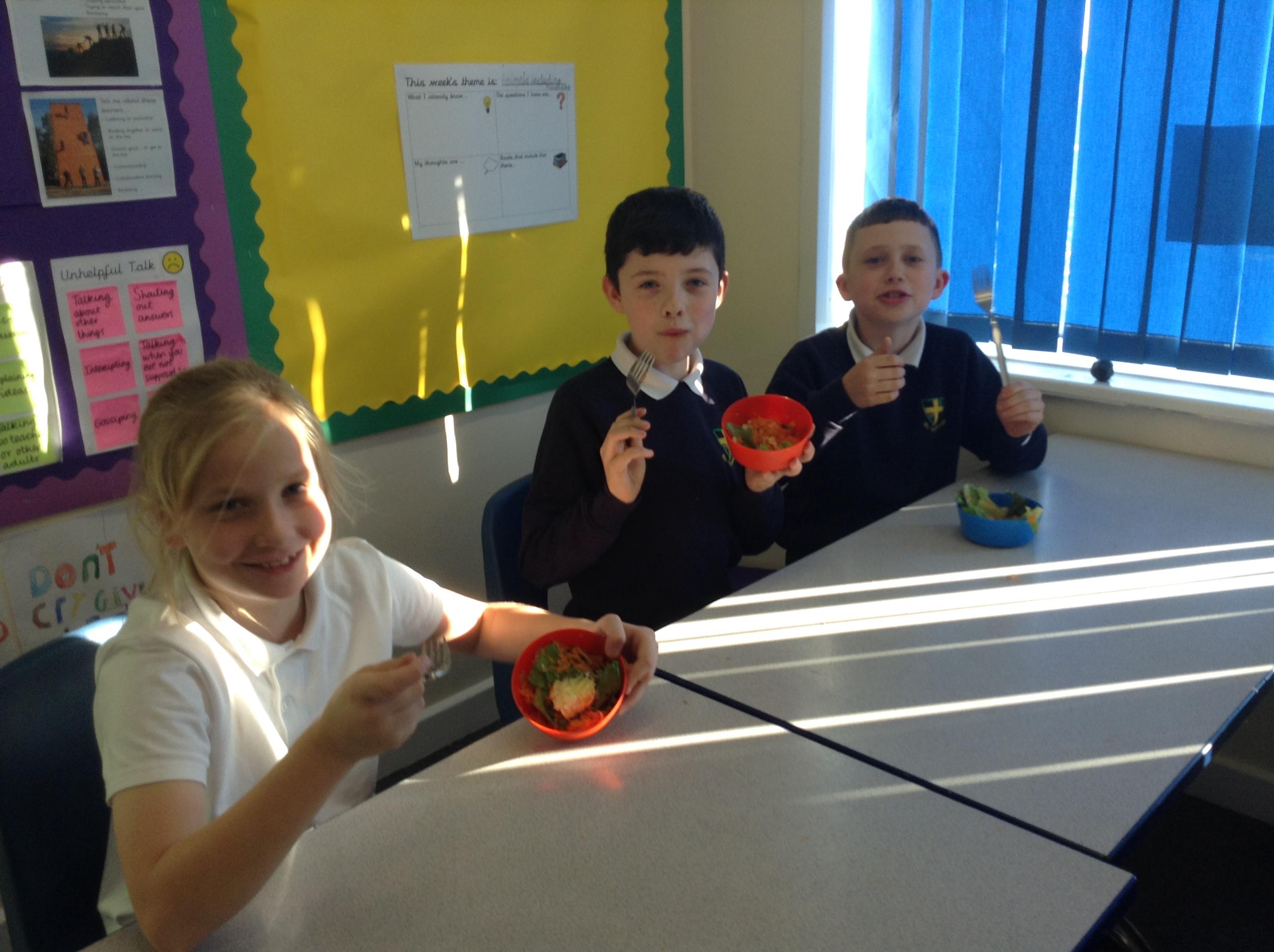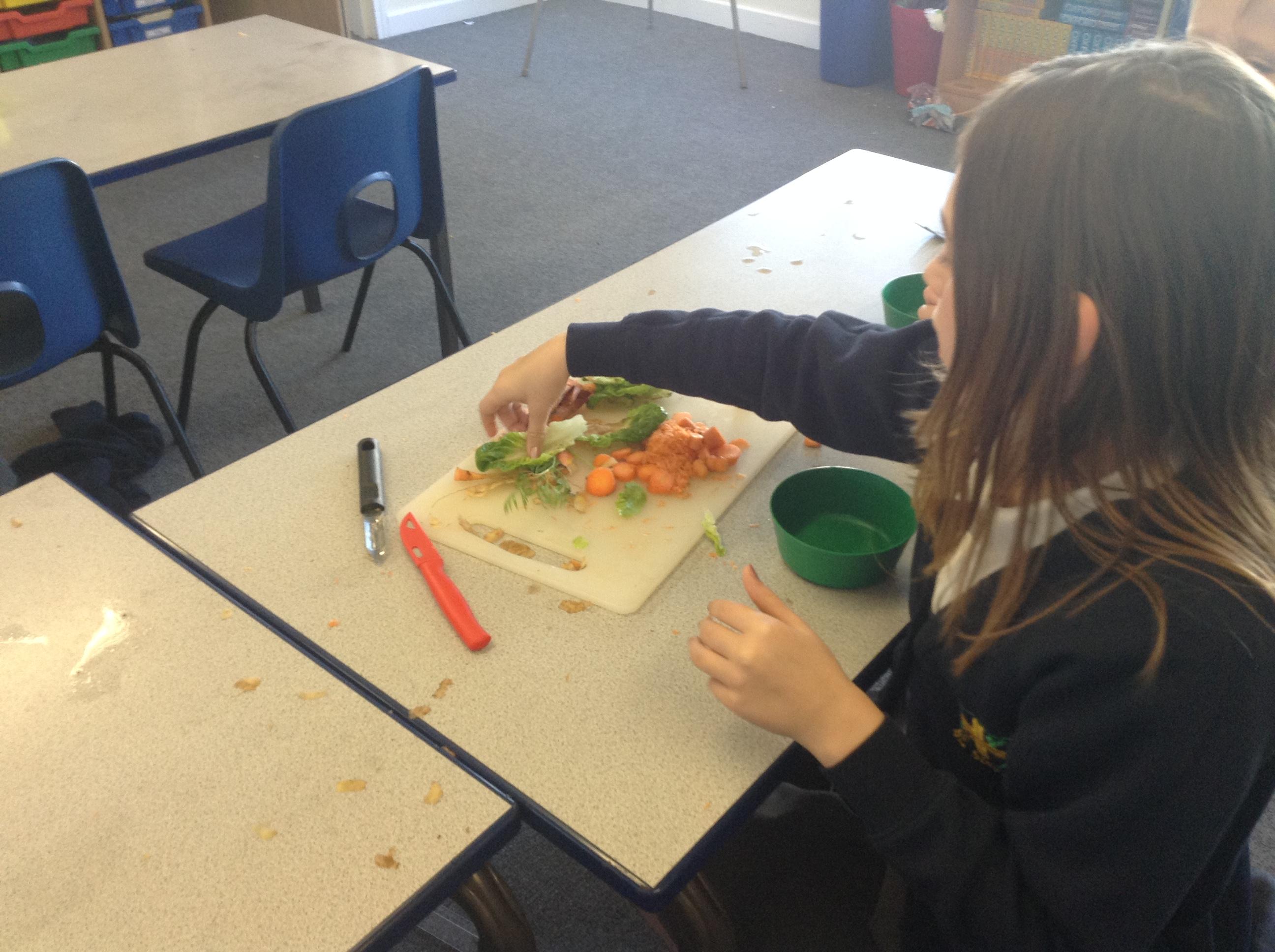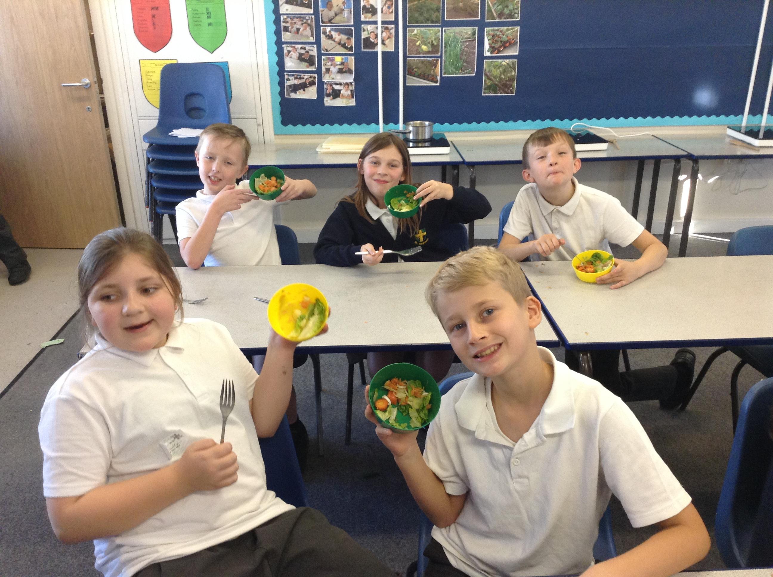 In Week 1, we were able to harvest lots of vegetables from our amazing allotment including spring onions, beetroot, lettuce and carrots. We then washed, chopped, peeled, diced, grated, roasted and boiled our ingredients to make a healthy salad! We all enjoyed eating our salads, especially Seanna who said, "It is the best salad I have ever tasted!"