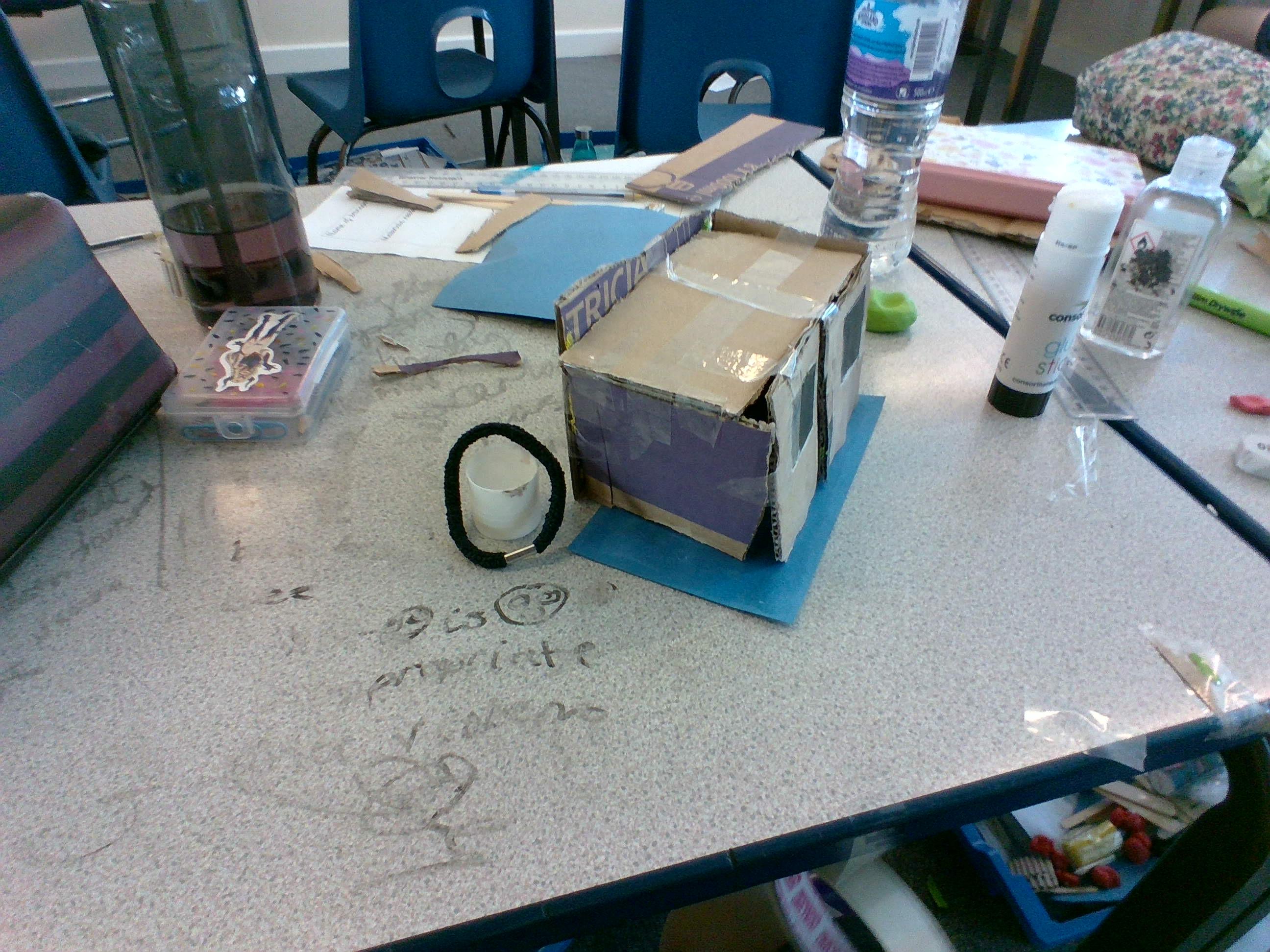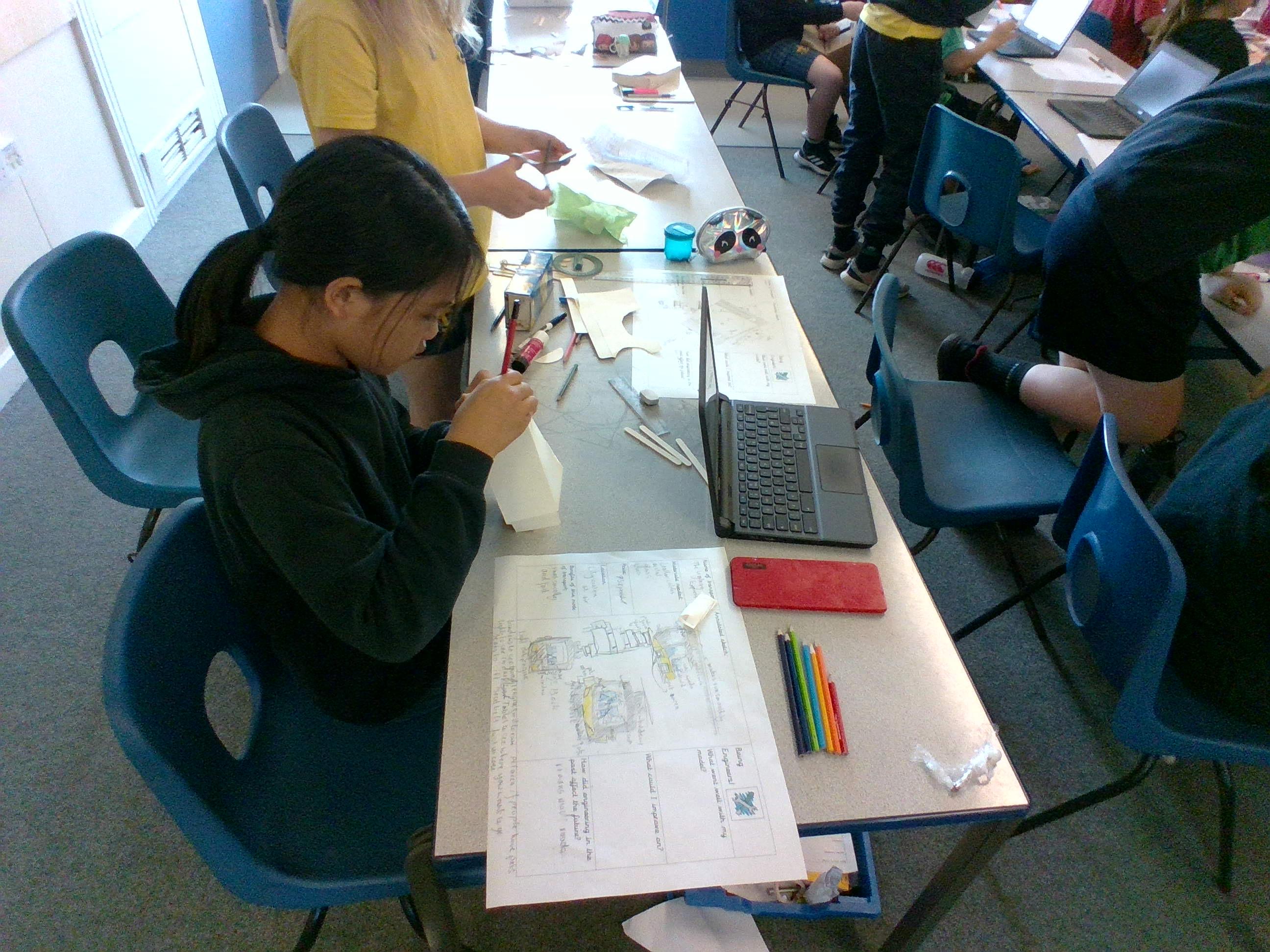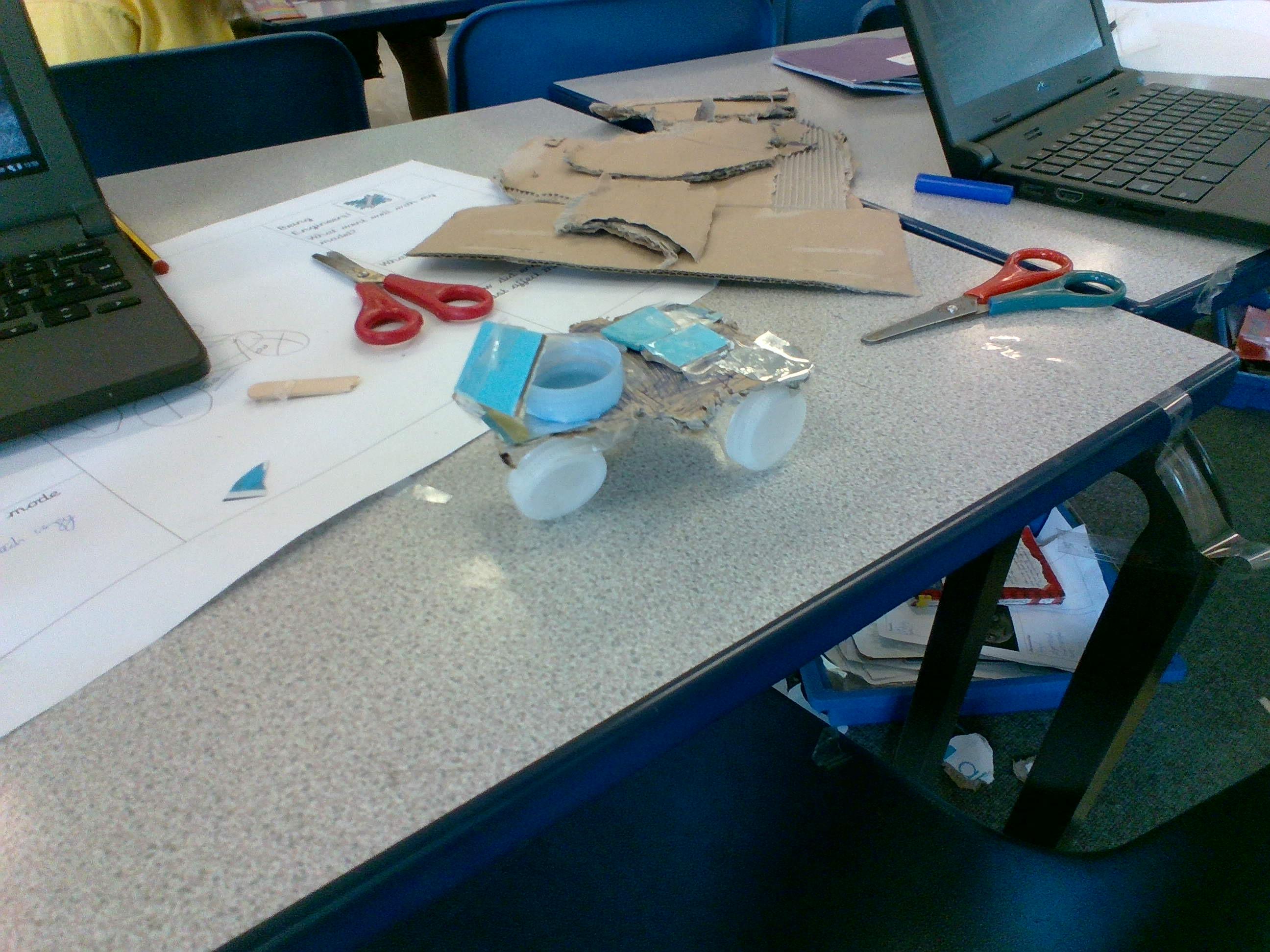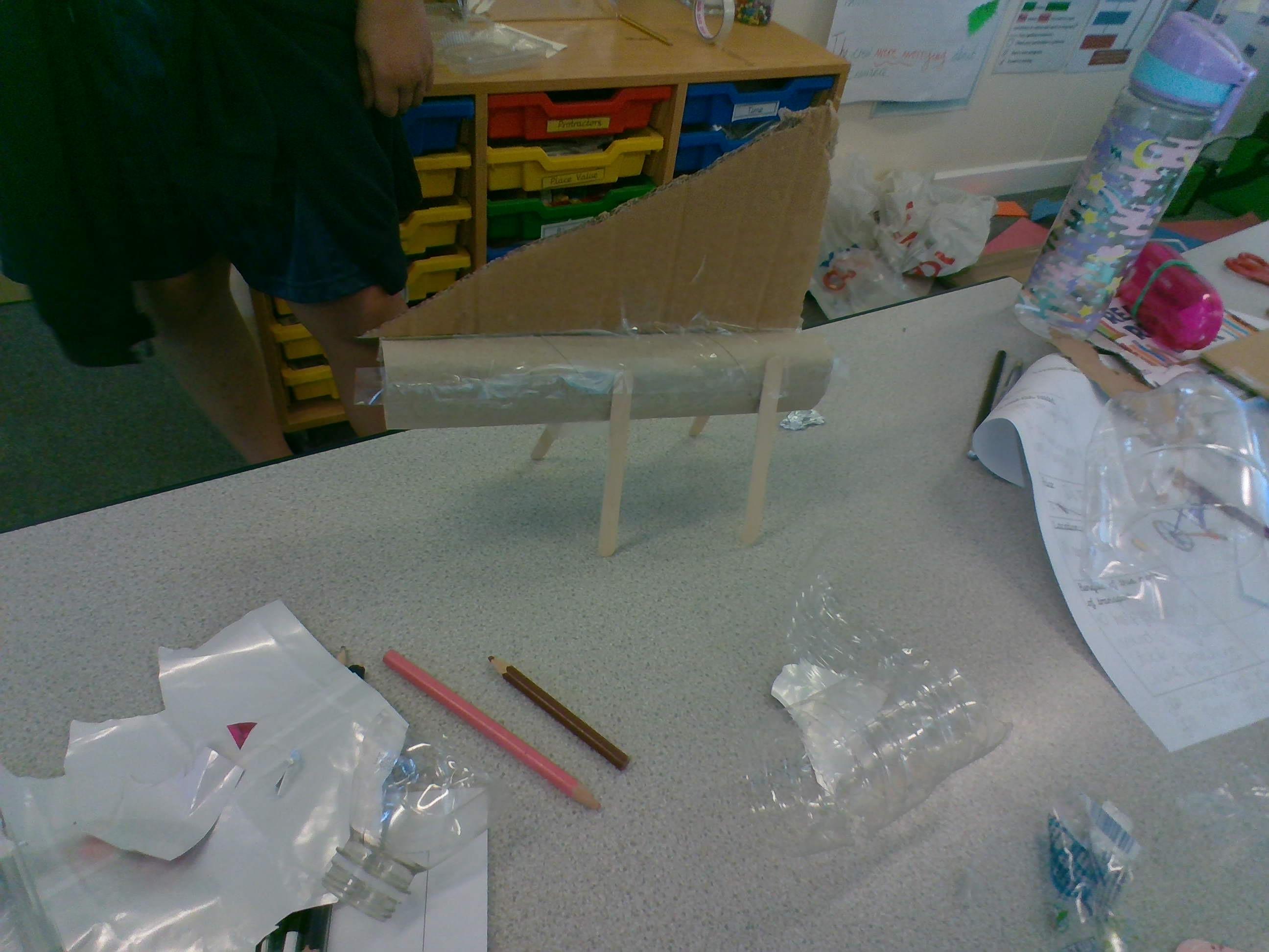 This afternoon, we began creating our costumes for the air resistance race. We made sure that our designs would slow down our opponents!