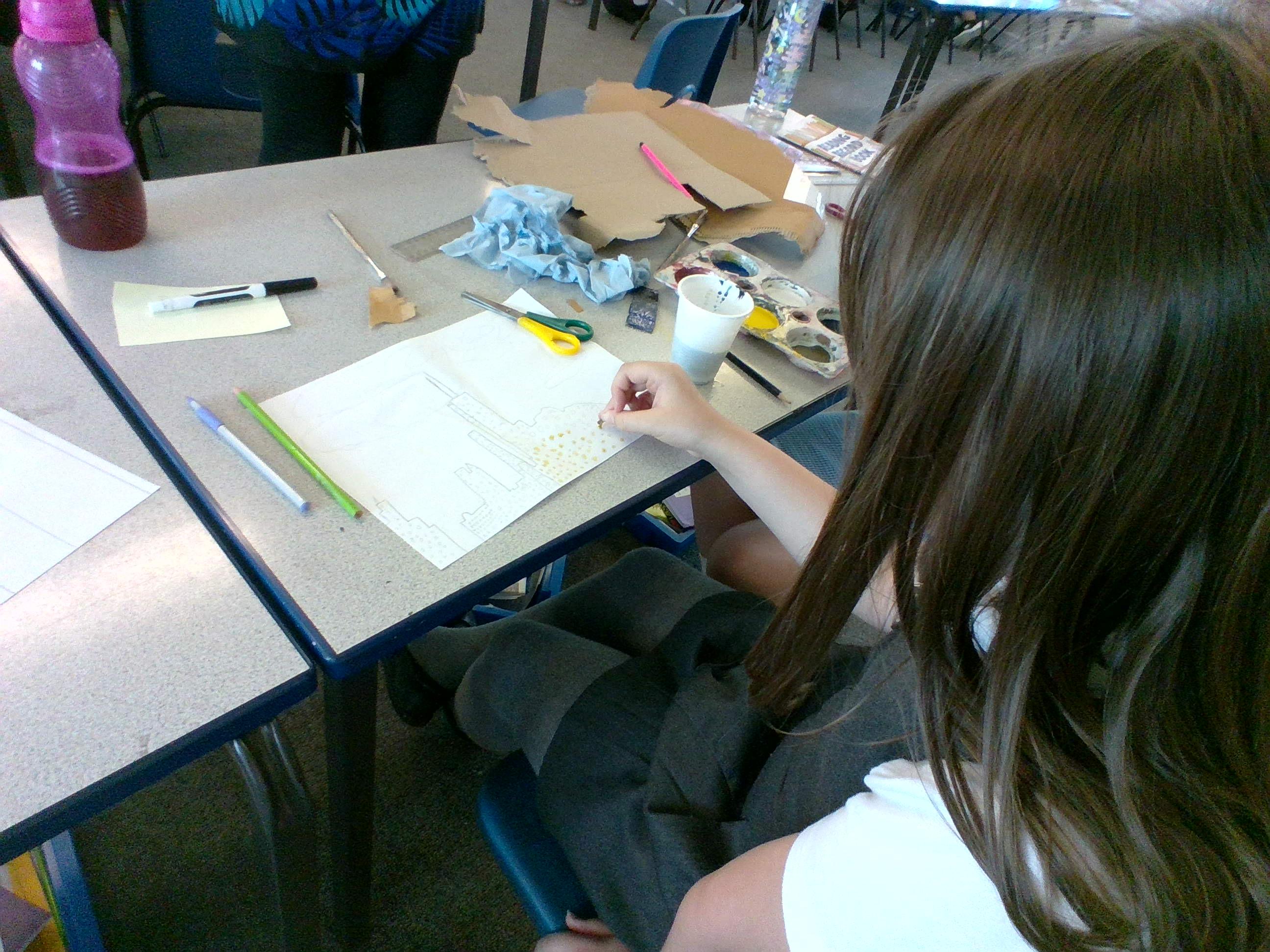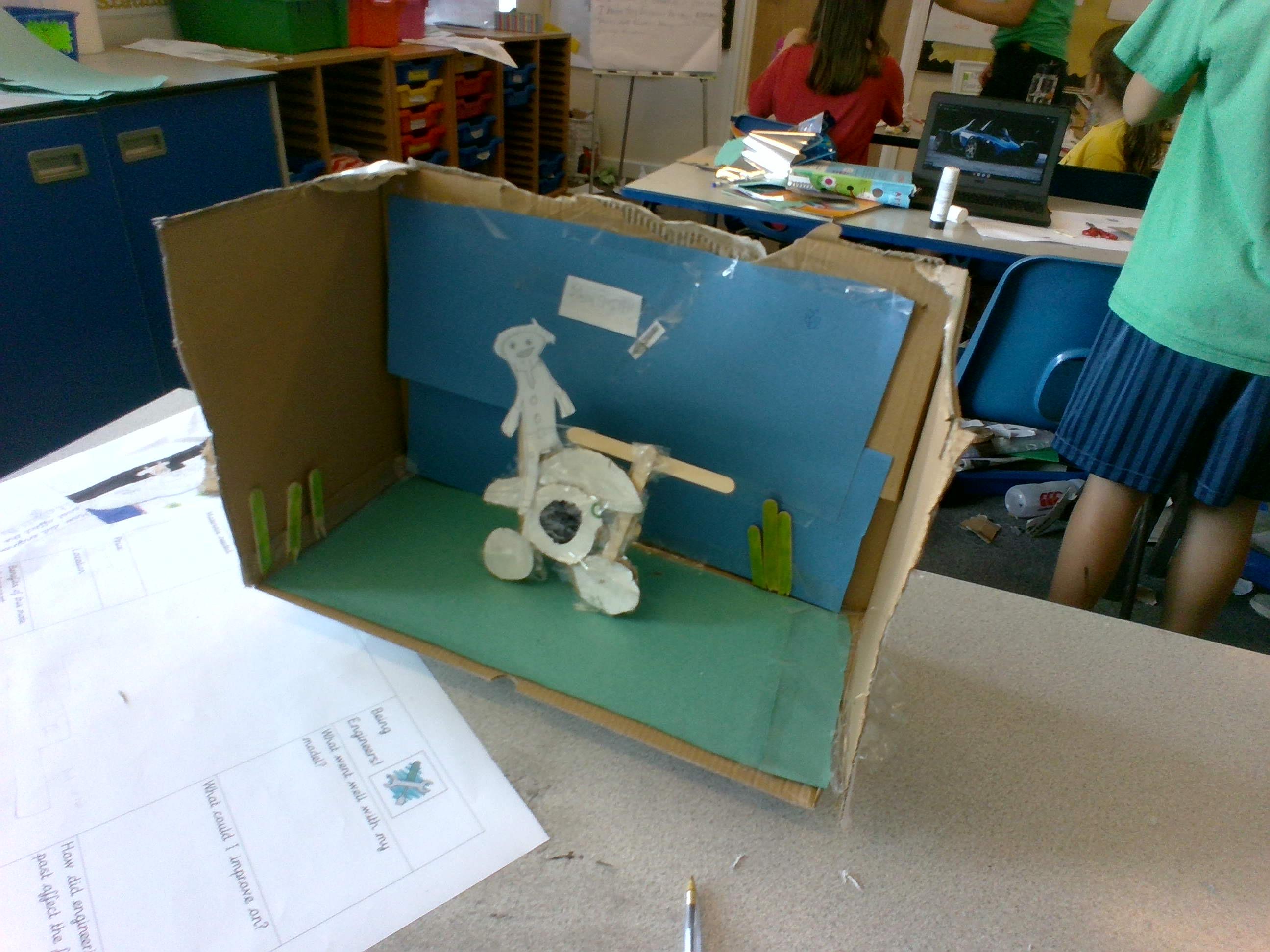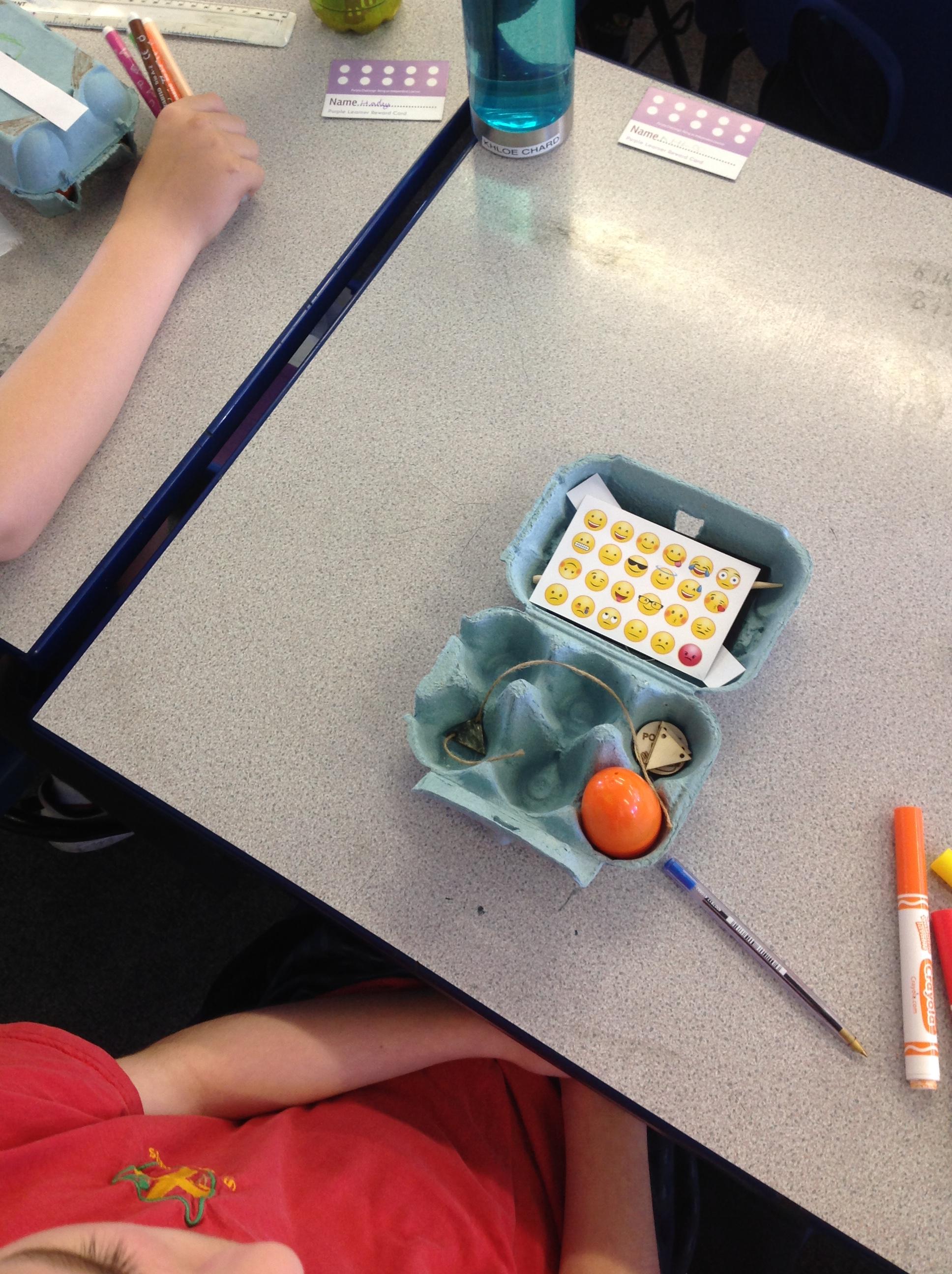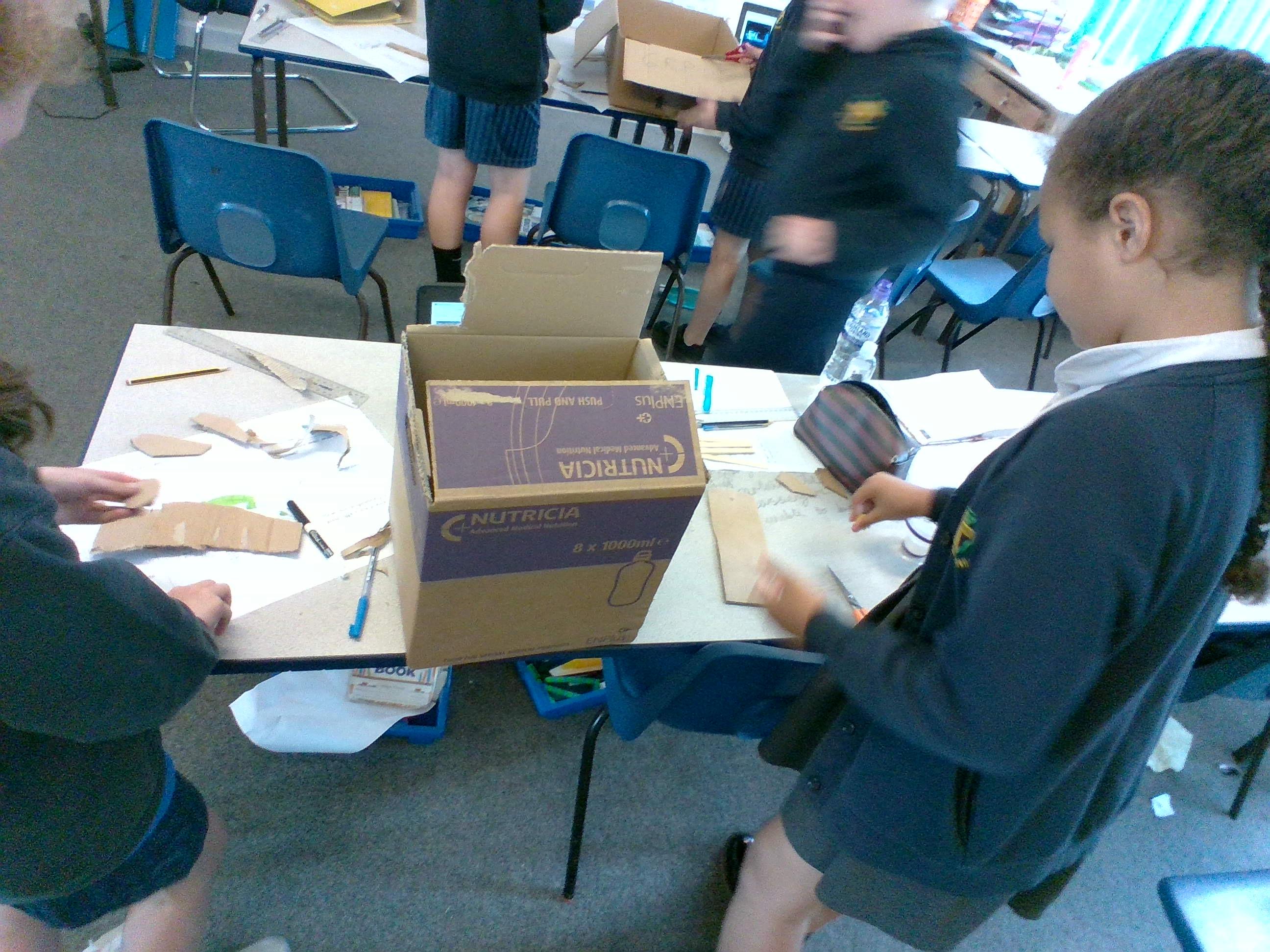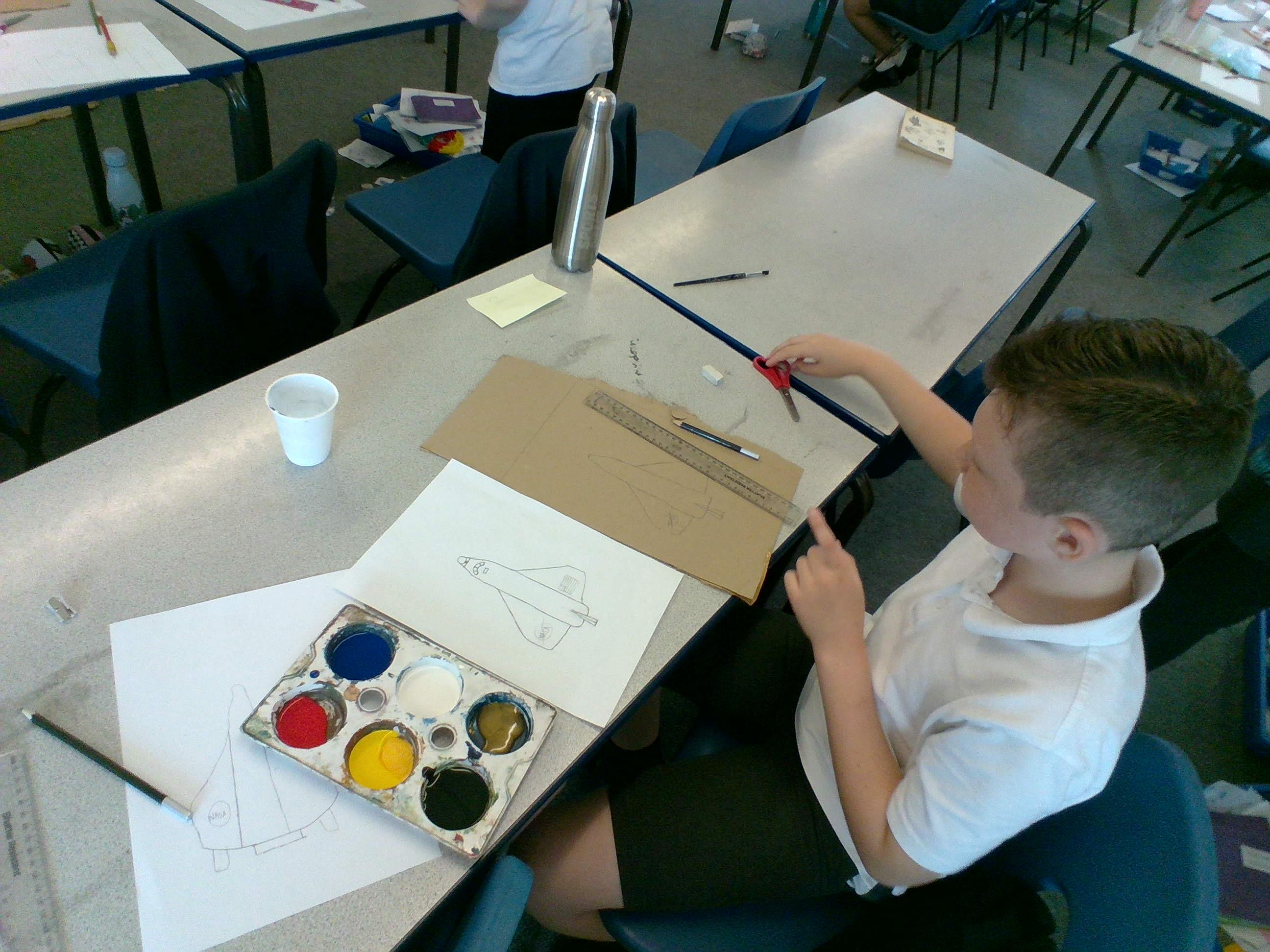 This afternoon, we began creating our costumes for the air resistance race. We made sure that our designs would slow down our opponents!