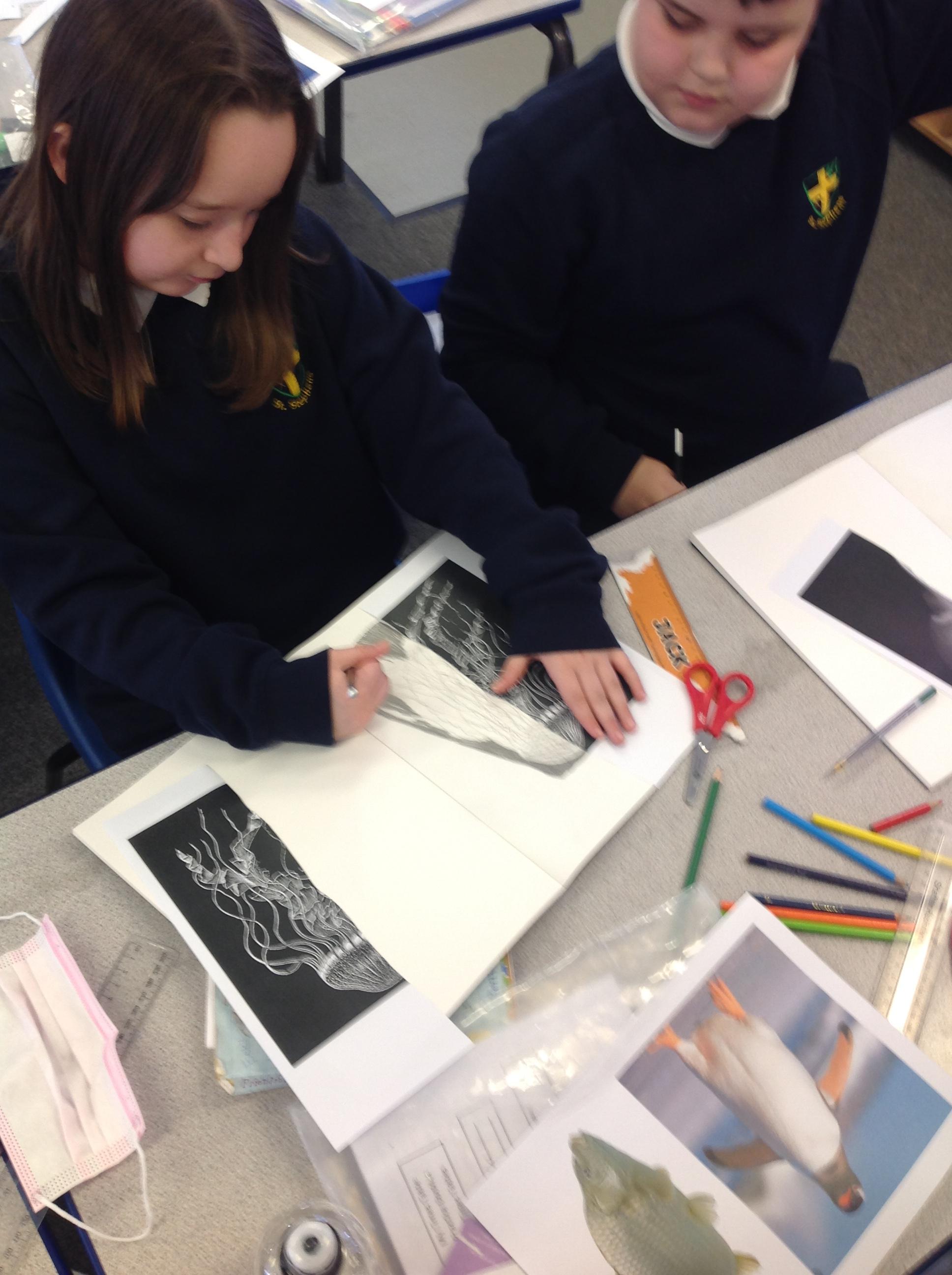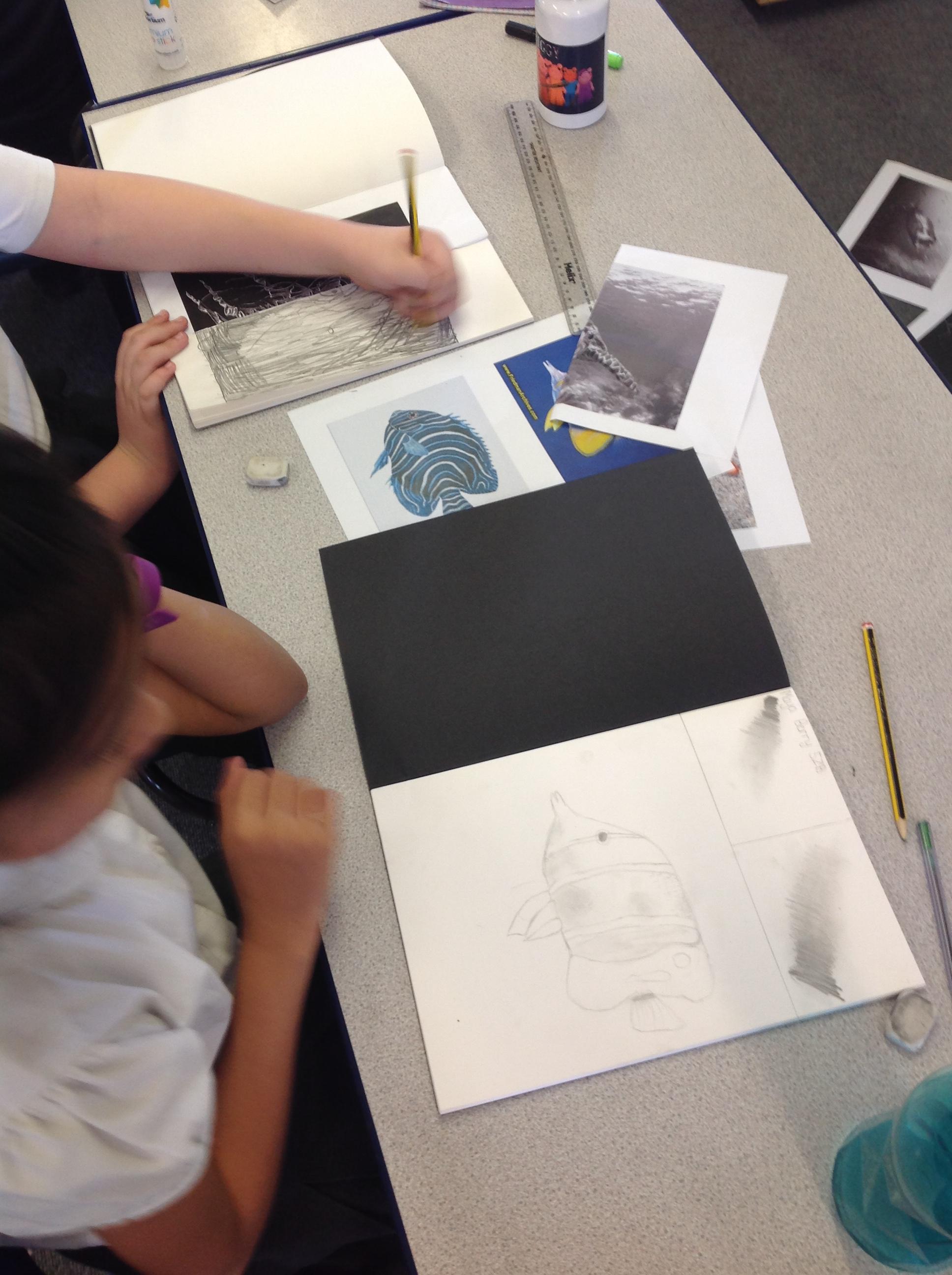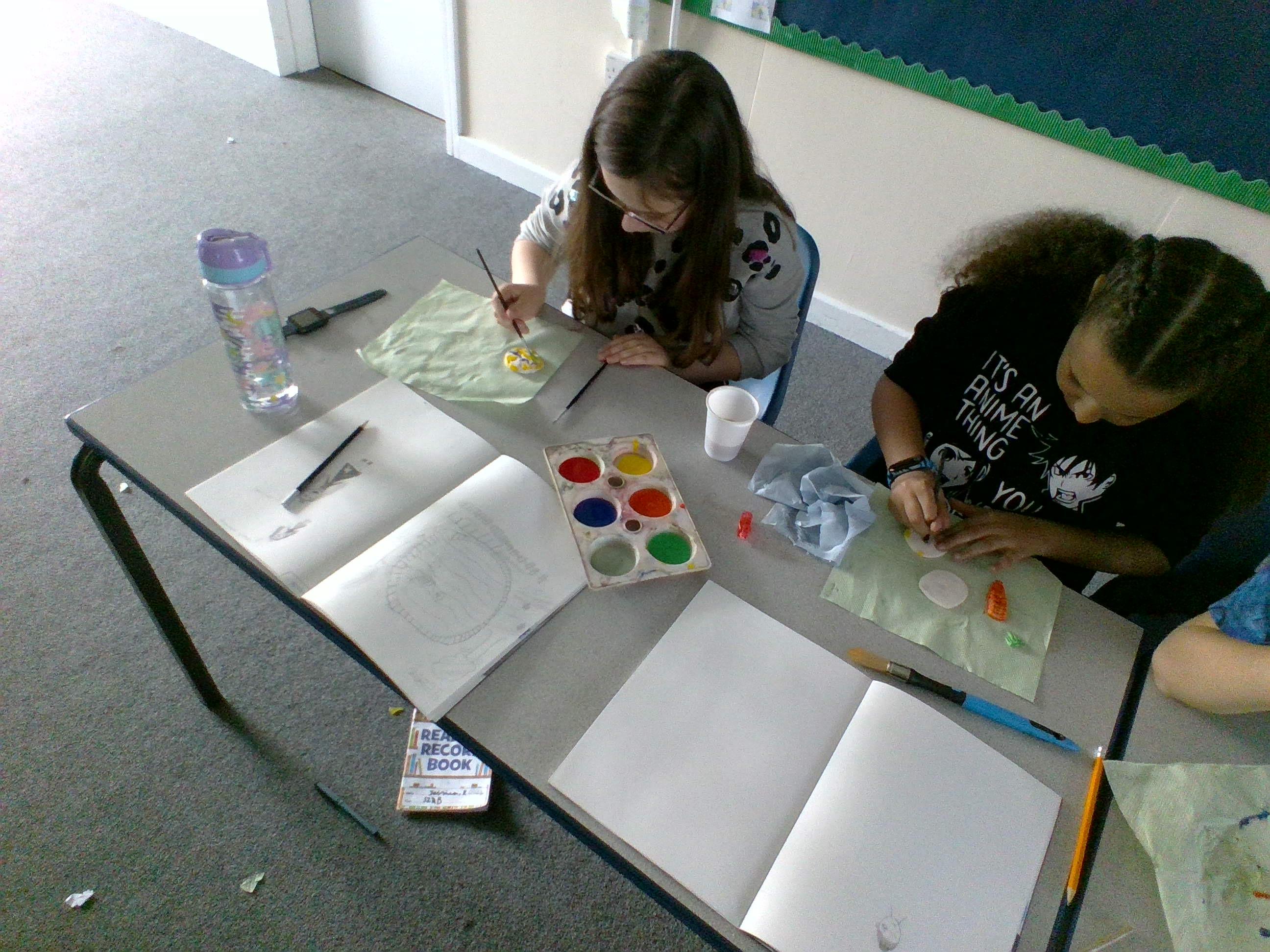 In Week 4, we explored abstract art and looked at the work of Henri Matisse and Pablo Picasso. Then, we collected objects from the playground and used them to print patterns in our sketchbooks. We have been wonderful artists!