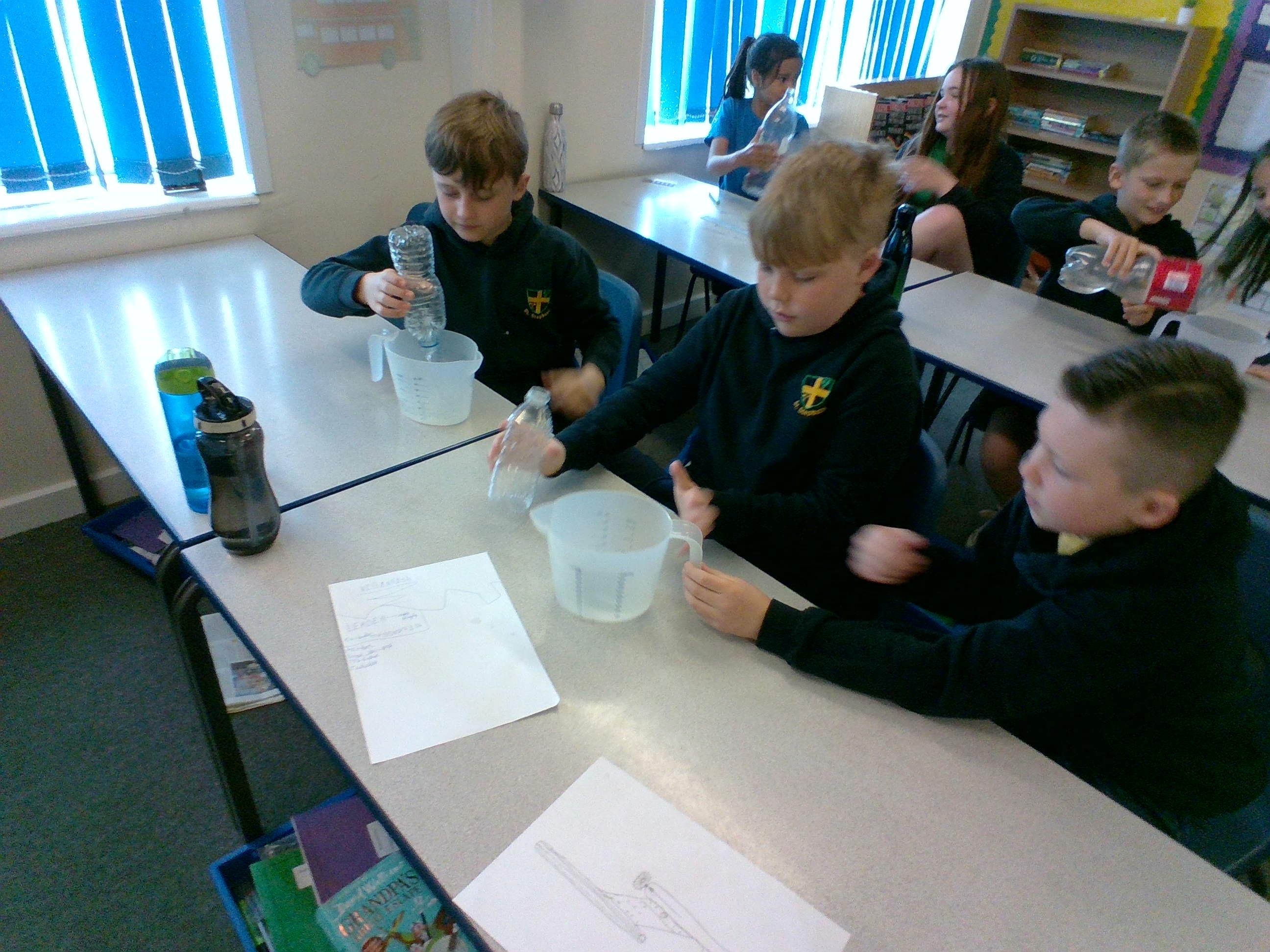In Week 4, we had a fantastic No Pens Day! We kickstarted the day by refreshing our understanding of oracy and the four strands. Then, we discussed interesting statements such as, 'Writing is the most important subject' and 'Video games should be banned' and used our counters to add to our group discussions. When being a writer, we thought carefully about how the crew would be feeling when they set sail on Endurance in Shackleton's Journey and made good luck charms from salt dough. When being a mathematician, we focused on capacity. We enjoyed estimating and experimenting with water and different containers and bottles. We also enjoyed Spanish with Mrs Thomas, taking part in the skipping challenge and exploring more of Shackleton's journey.