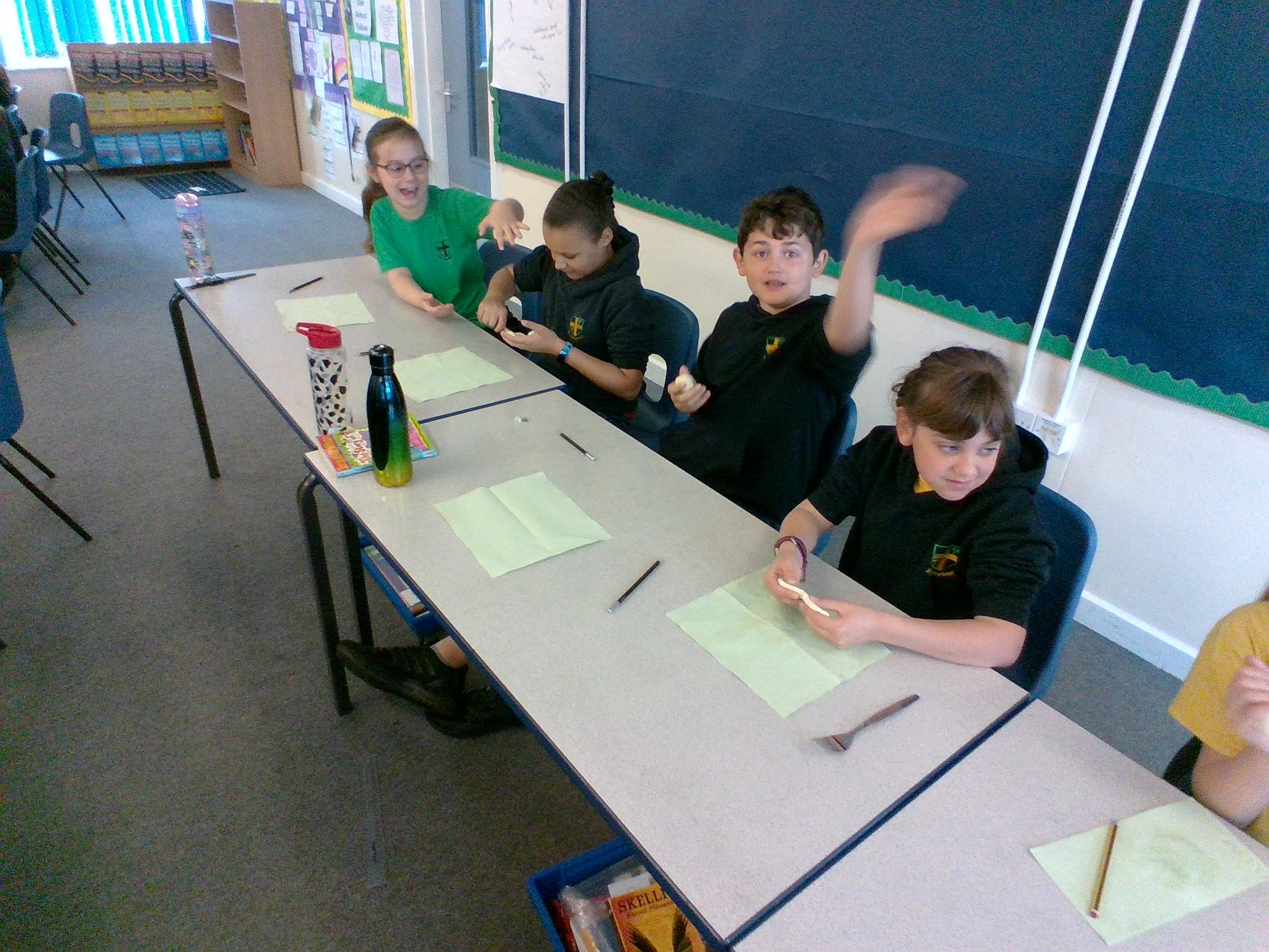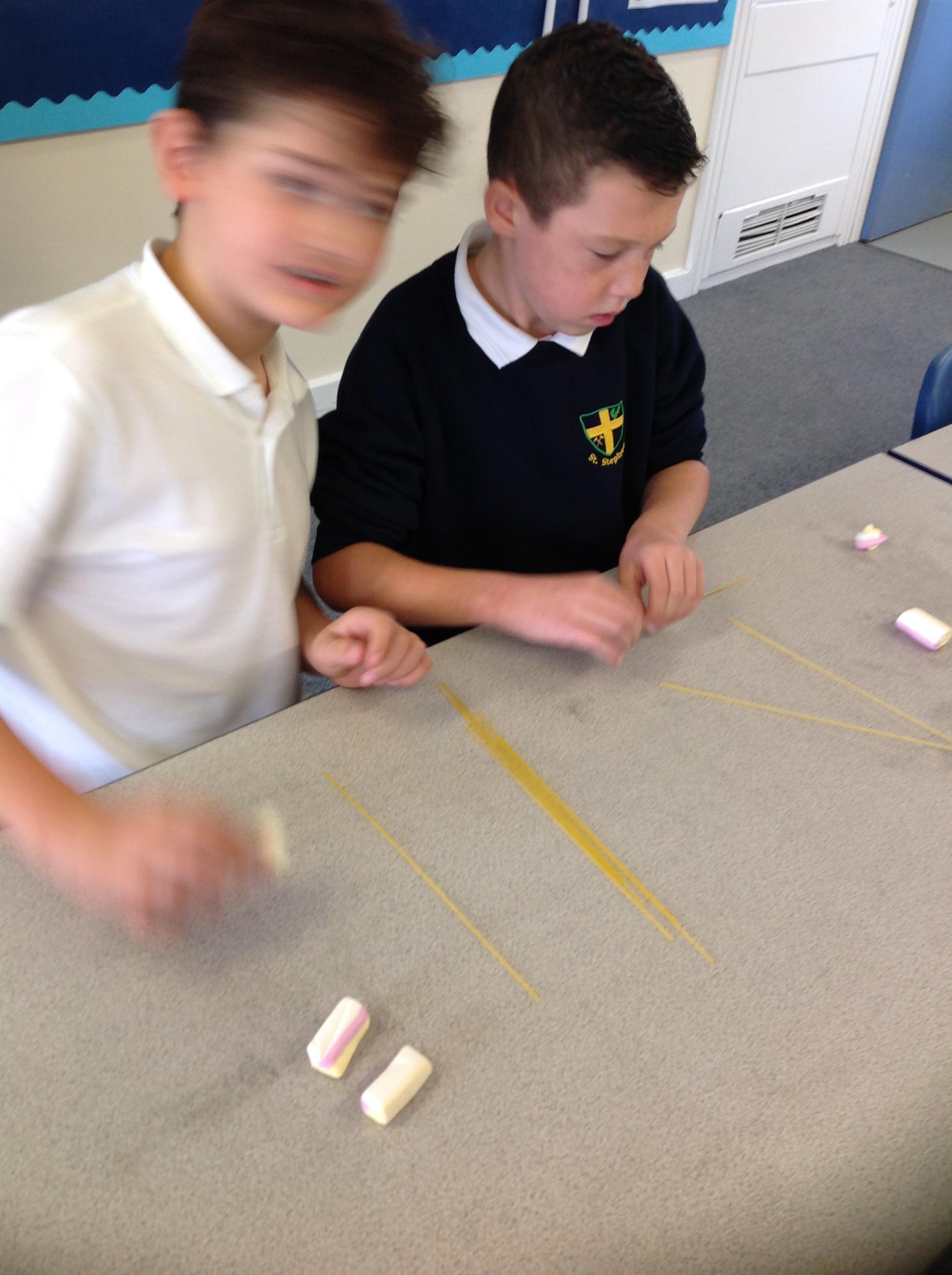 Today, we were set the challenge to make towers using only marshmallow and spaghetti! We got very sticky but it helped us reflect on what made great team work!