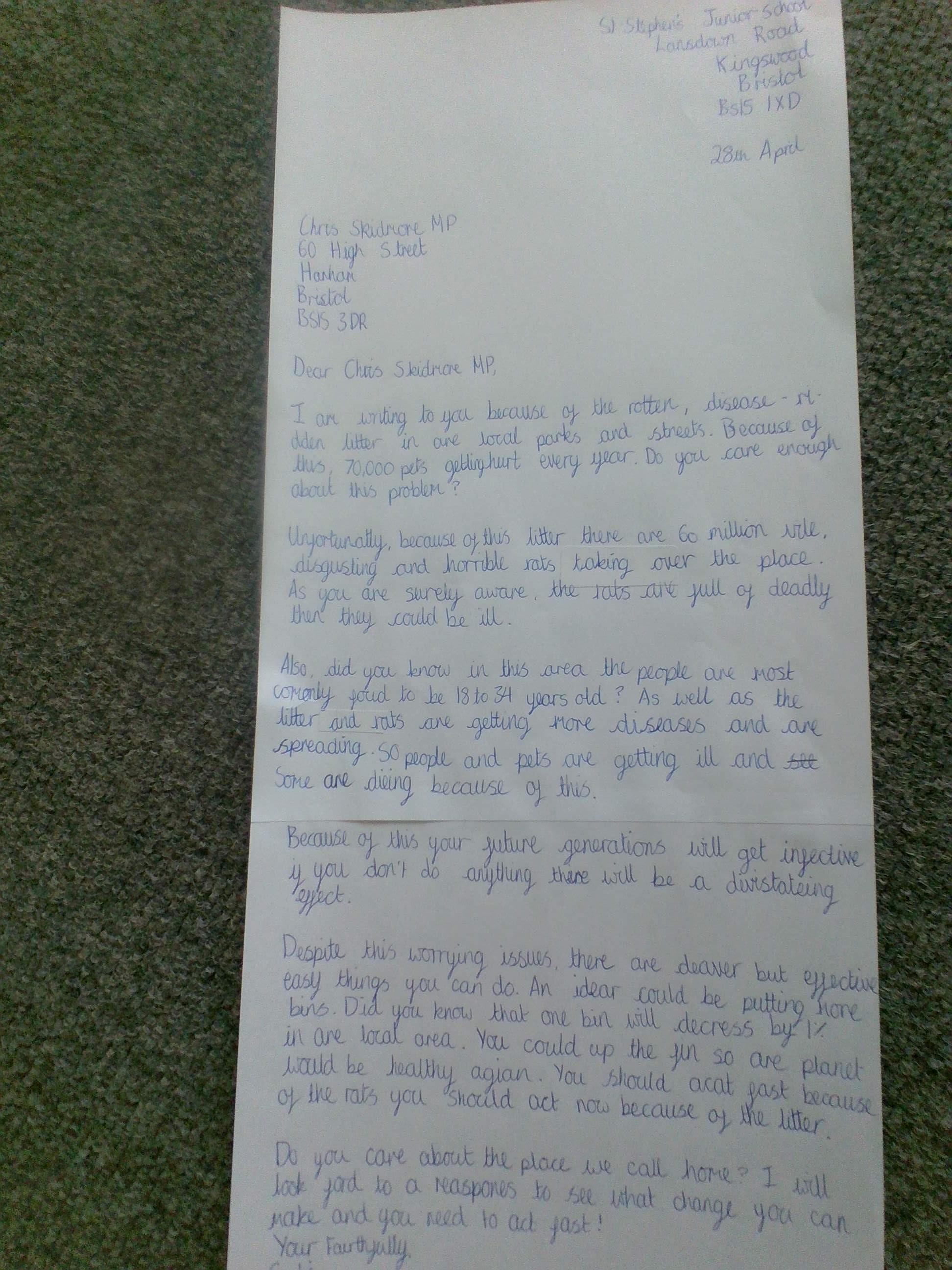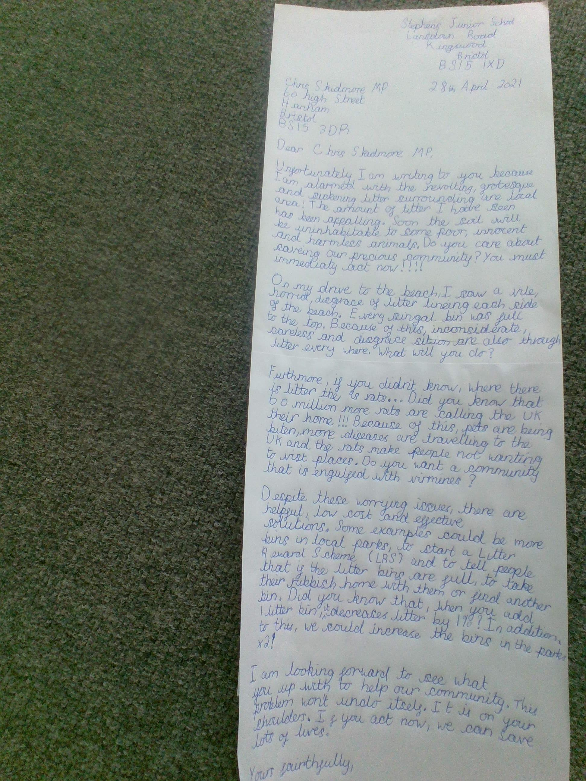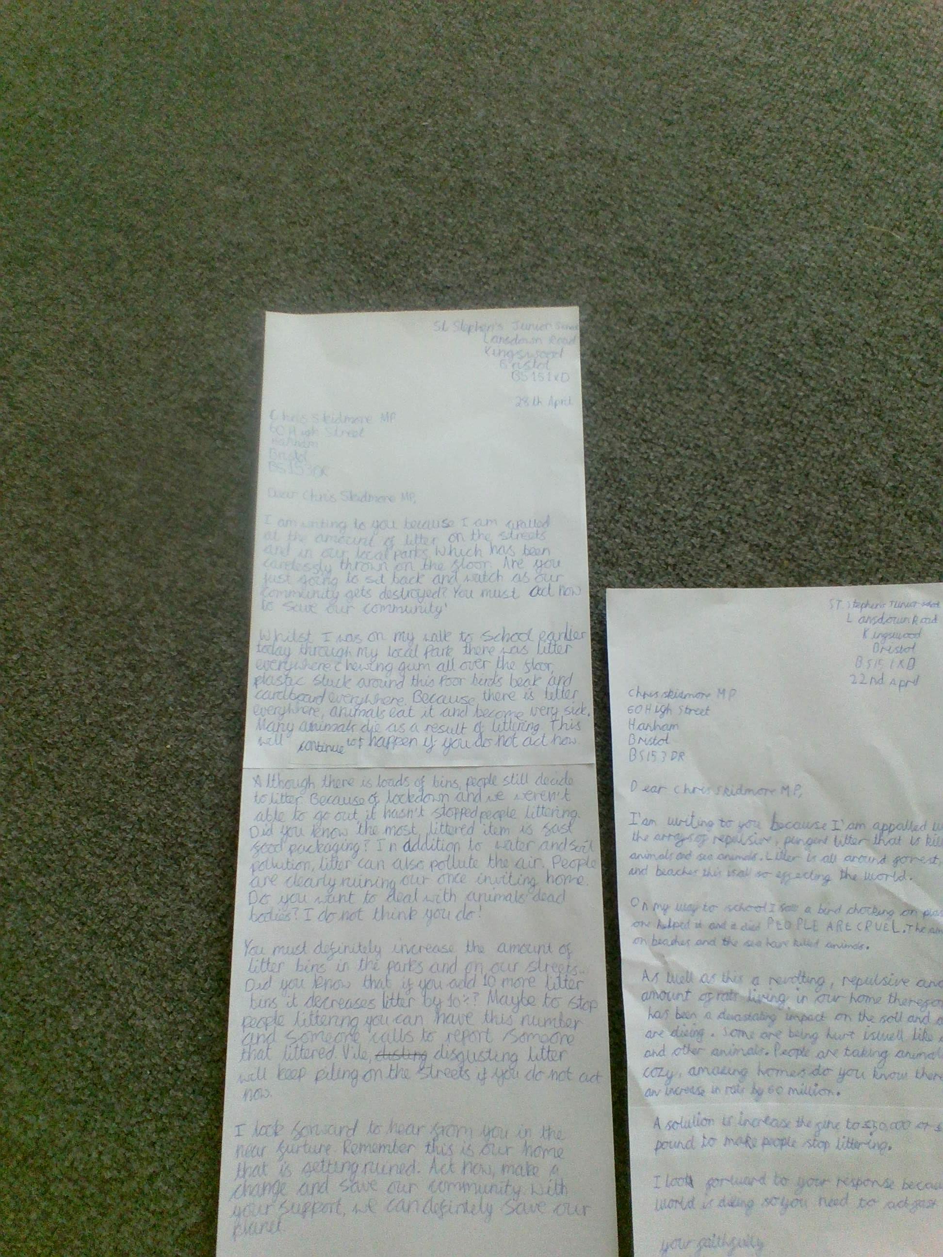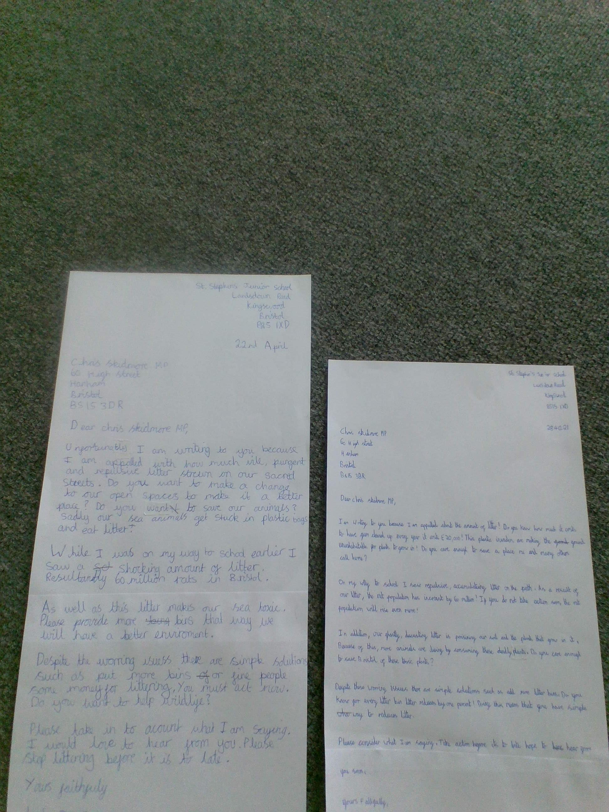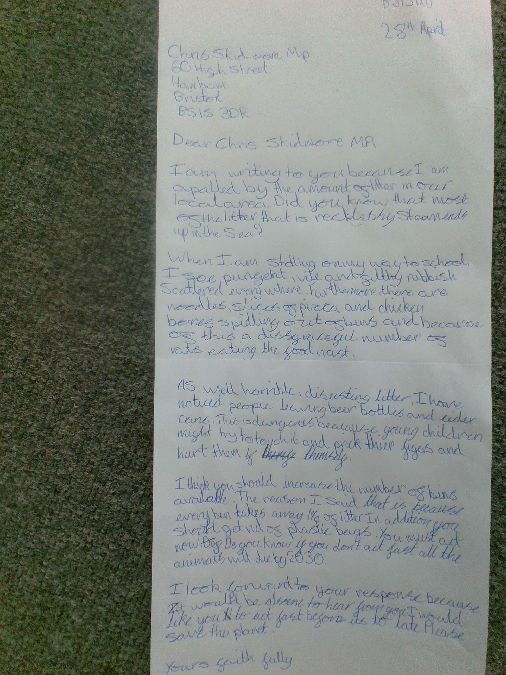 Today we completed some research on littering in our local area ready to write letters to our local MP.
