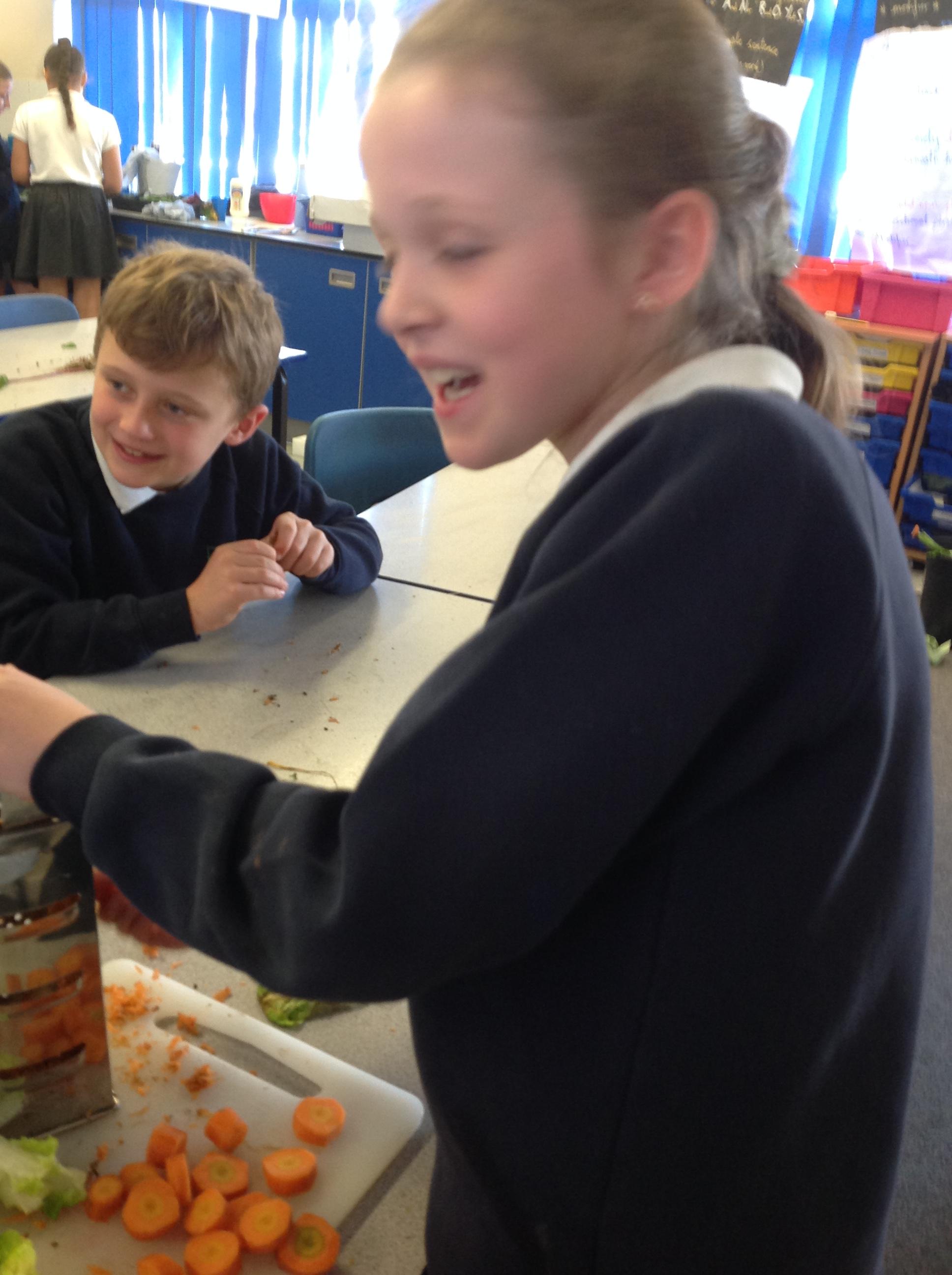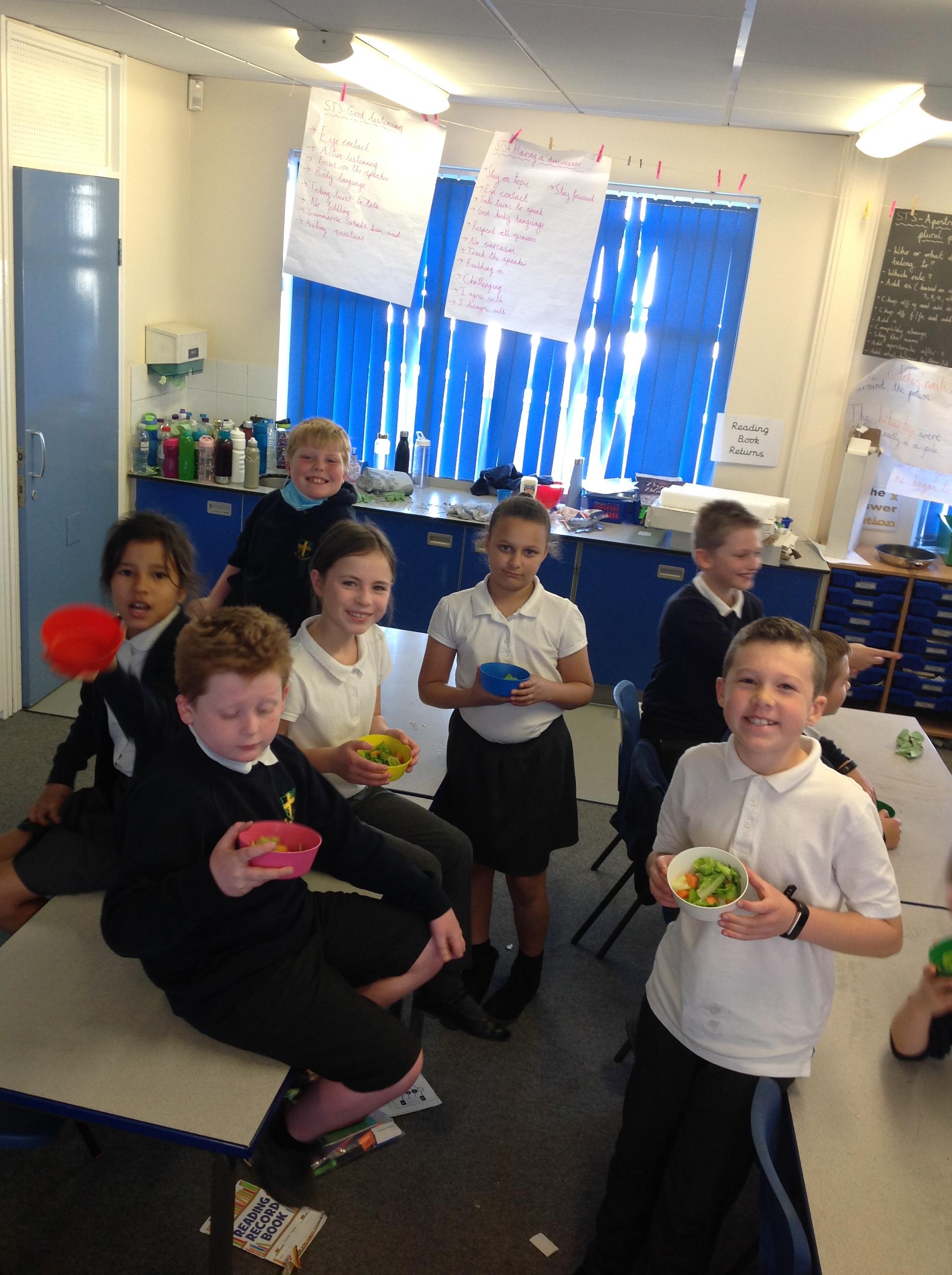 Today we got to taste some of the delicious food from the allotment. We prepared and cooked the food using the skills we had learnt about and we loved the end results.