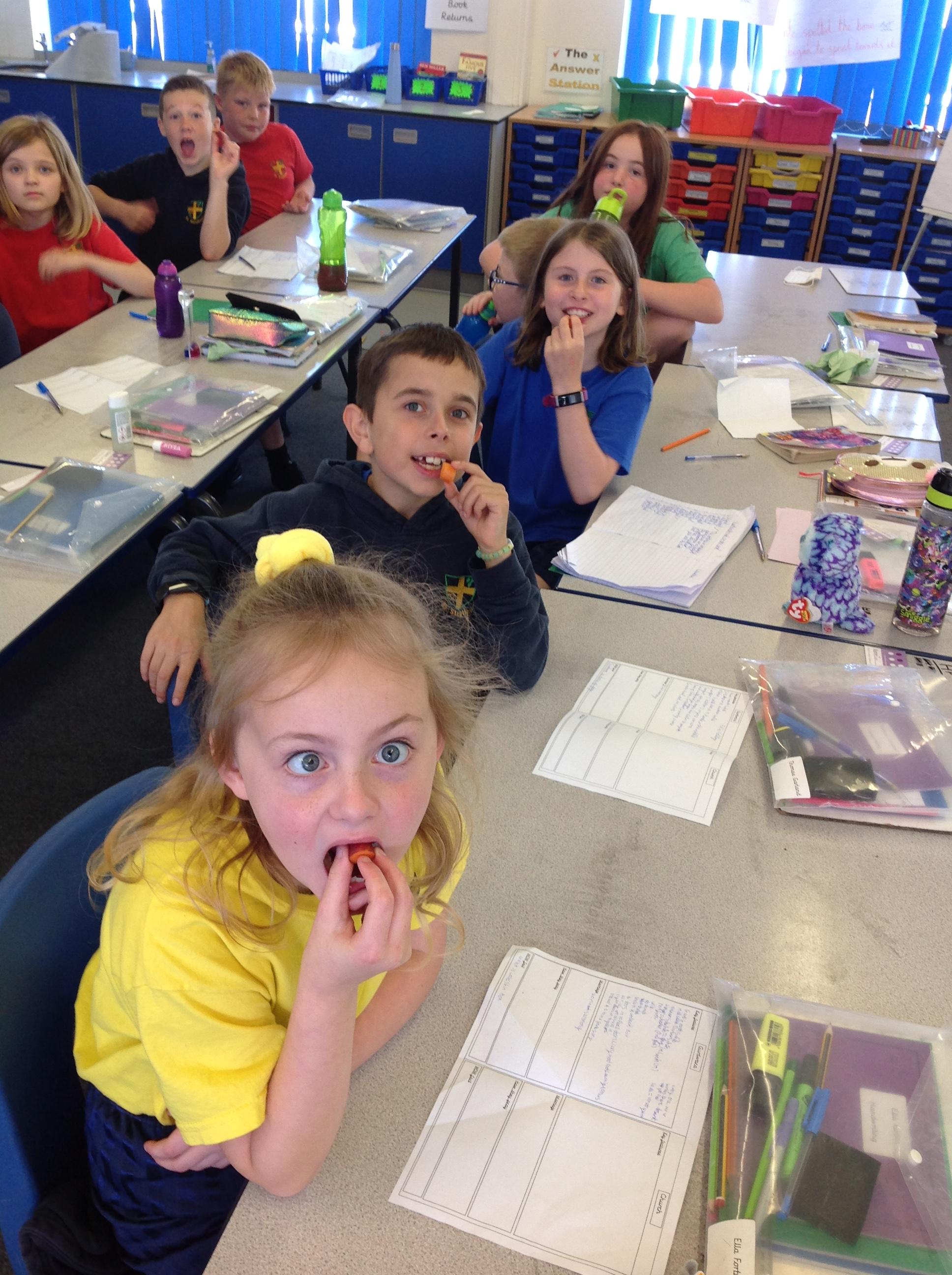 Today we were lucky enough to sample some delicious carrots from our school allotment. They were fresh, crunchy and delicious and they also help to keep us healthy!