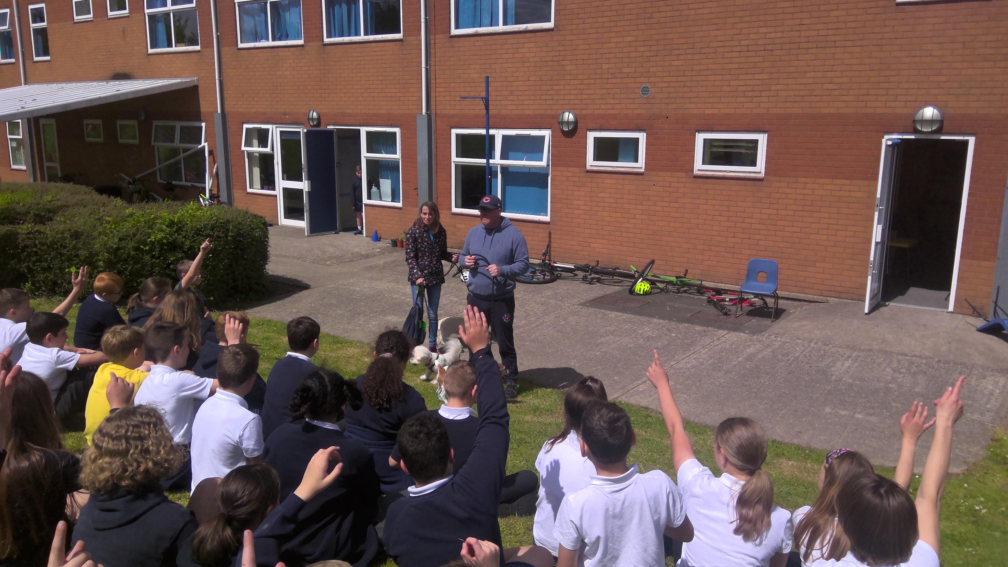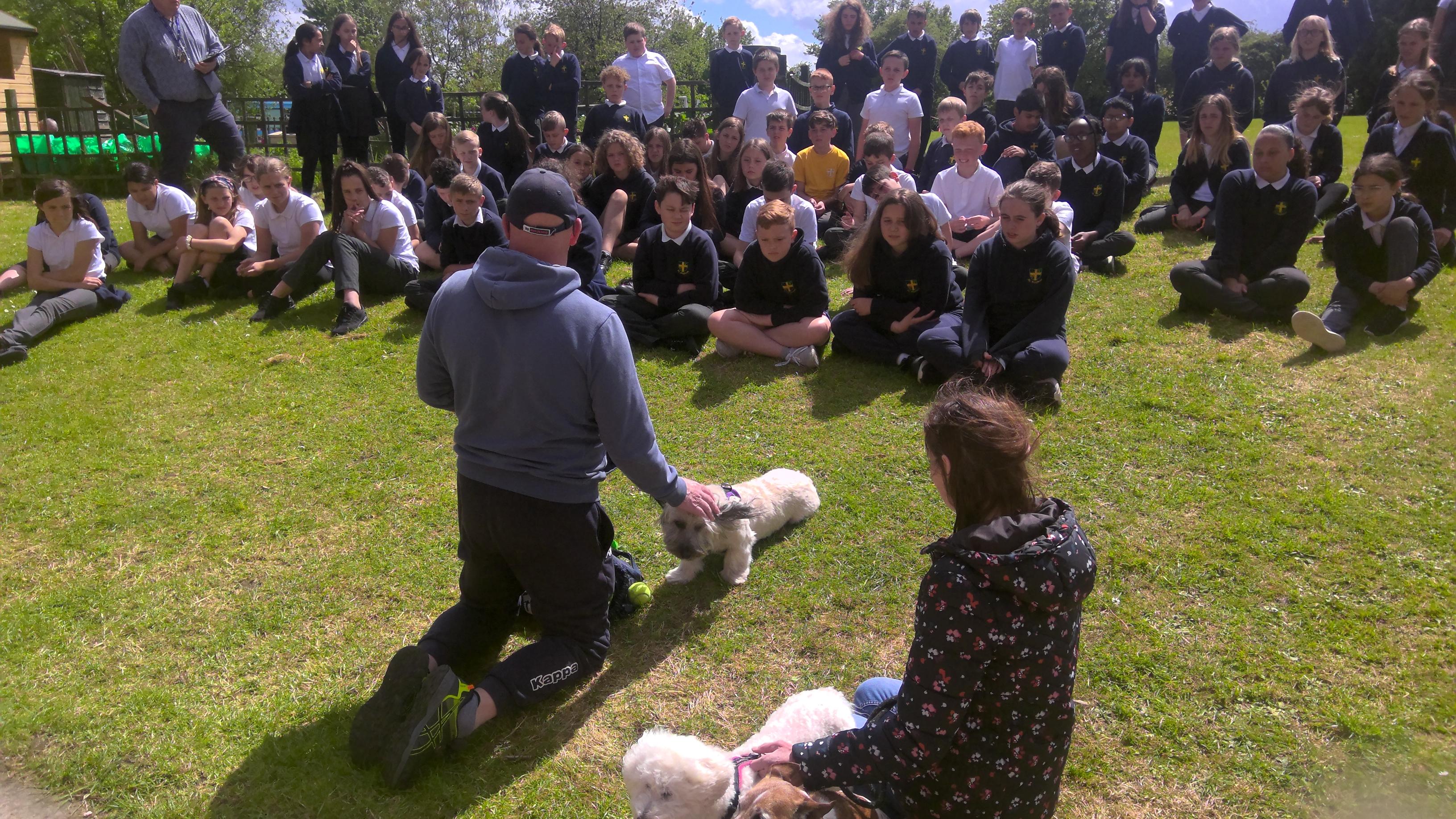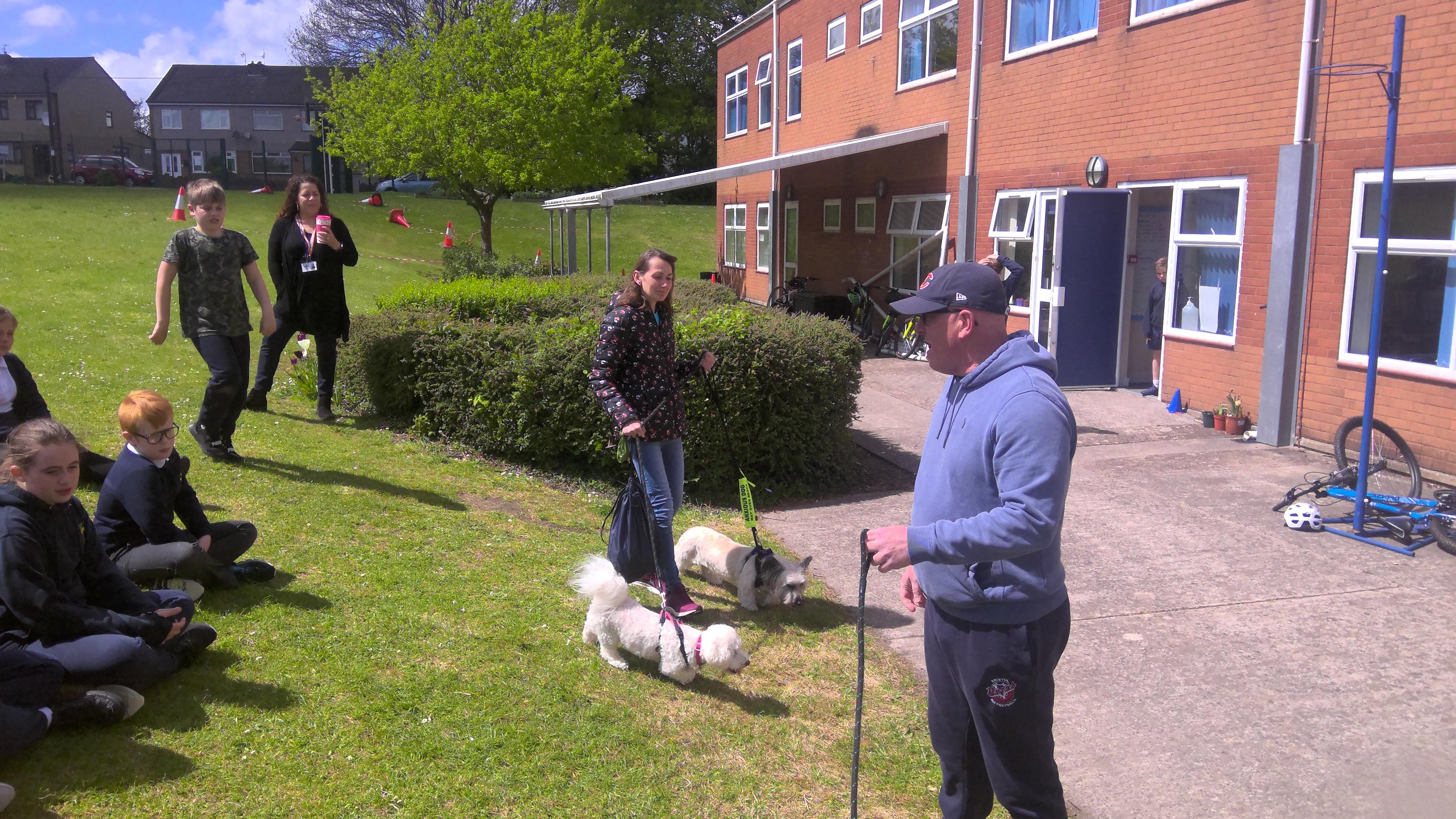 Today we began the engage part of our new enquiry. In order to fully engage with our new enquiry- To what extent do animals have rights? Mr B brought into school his three rescue dogs. We all sat in the sun on the field to hear each of the three dog’s story of how they had been rescued. Each had a very sad story about how they had either been mistreated by breeders or been neglected.