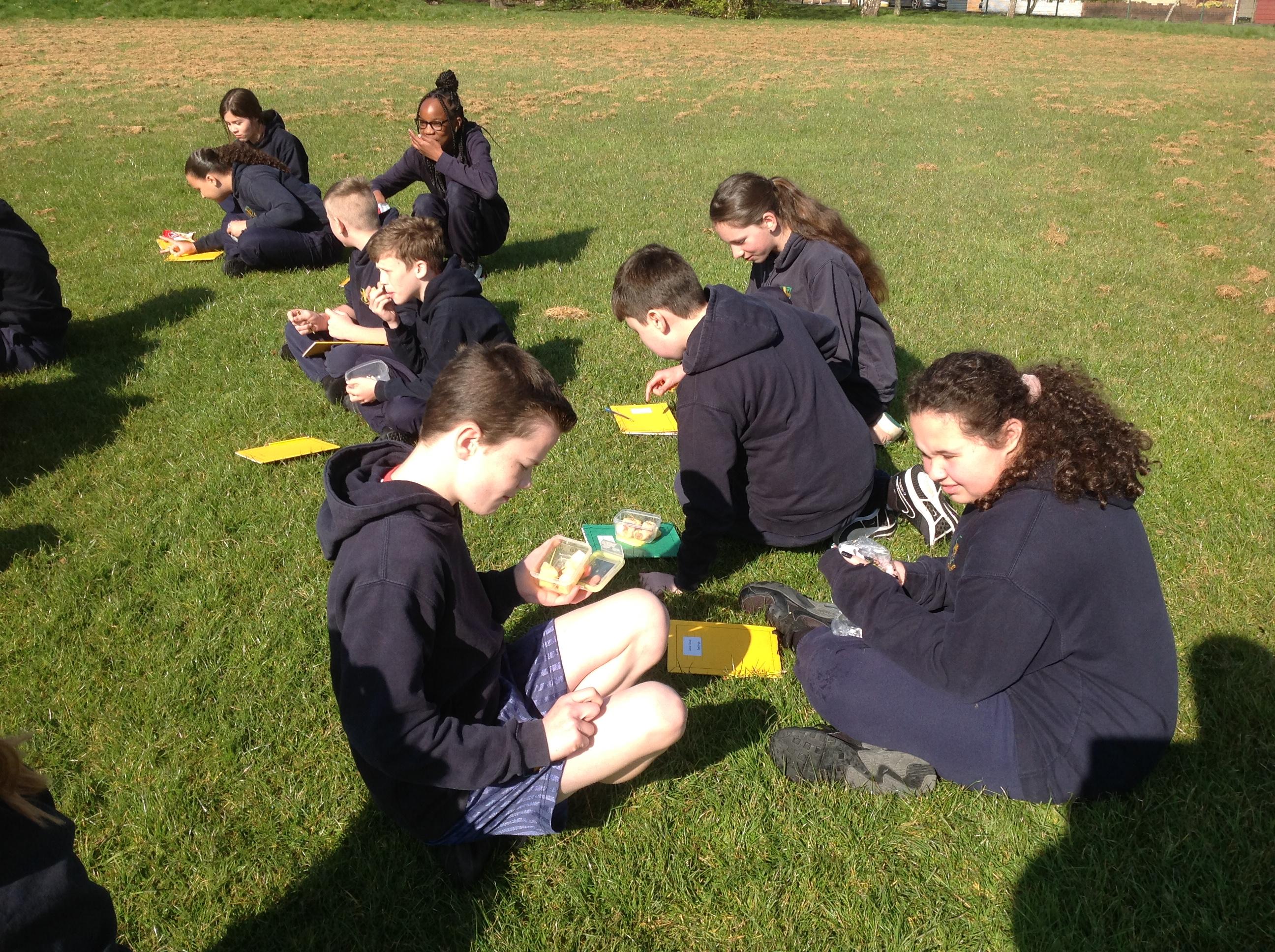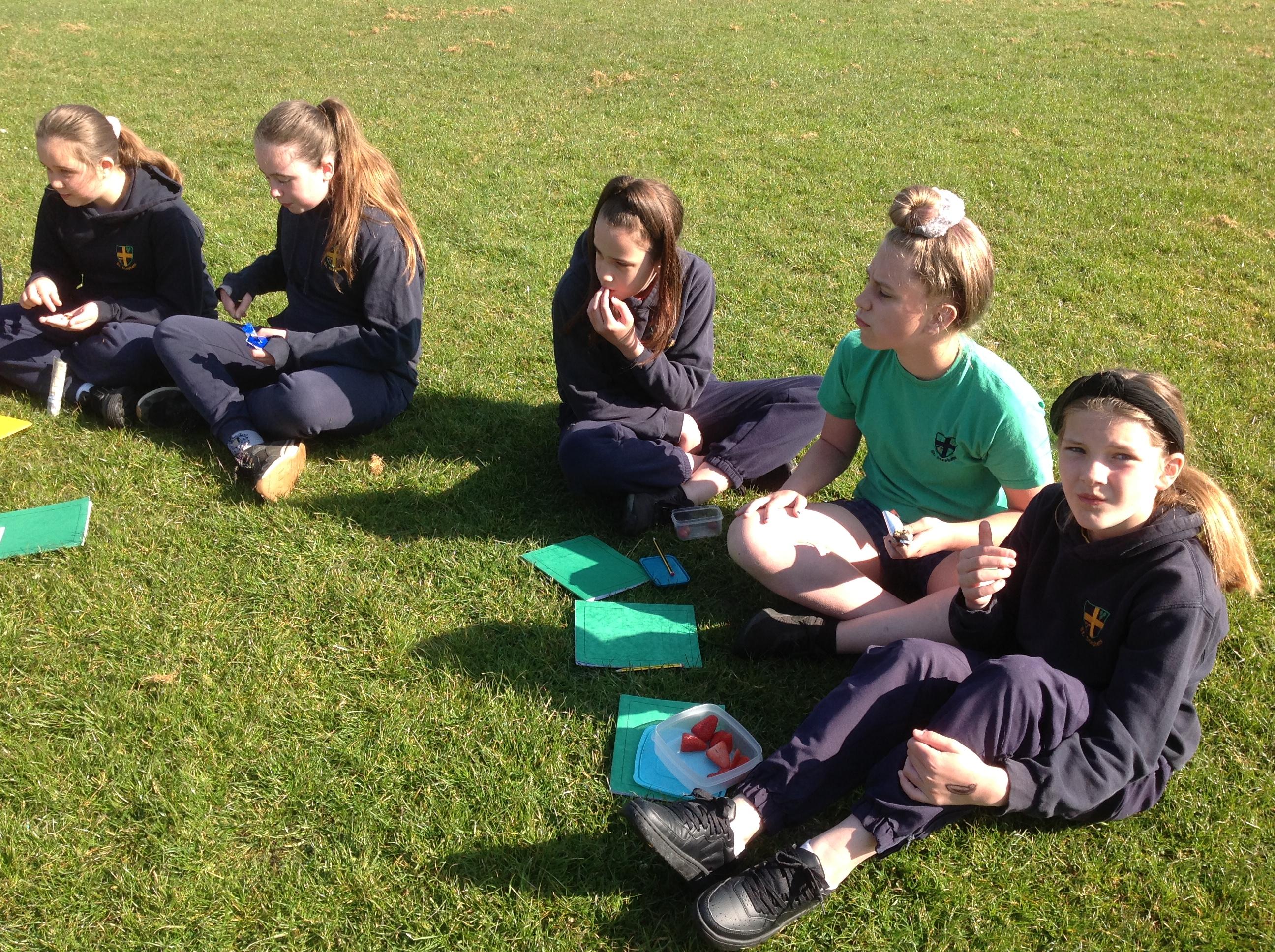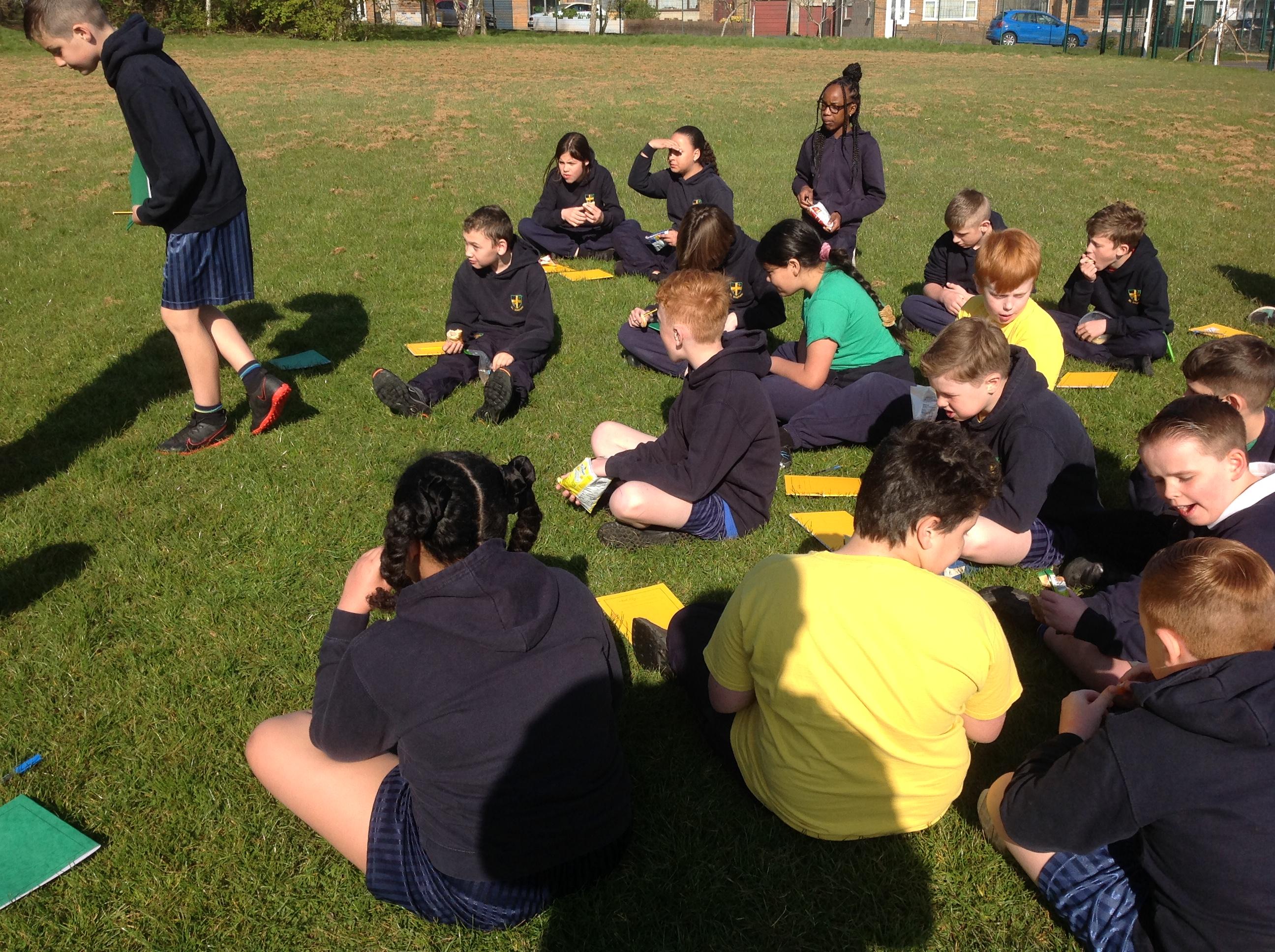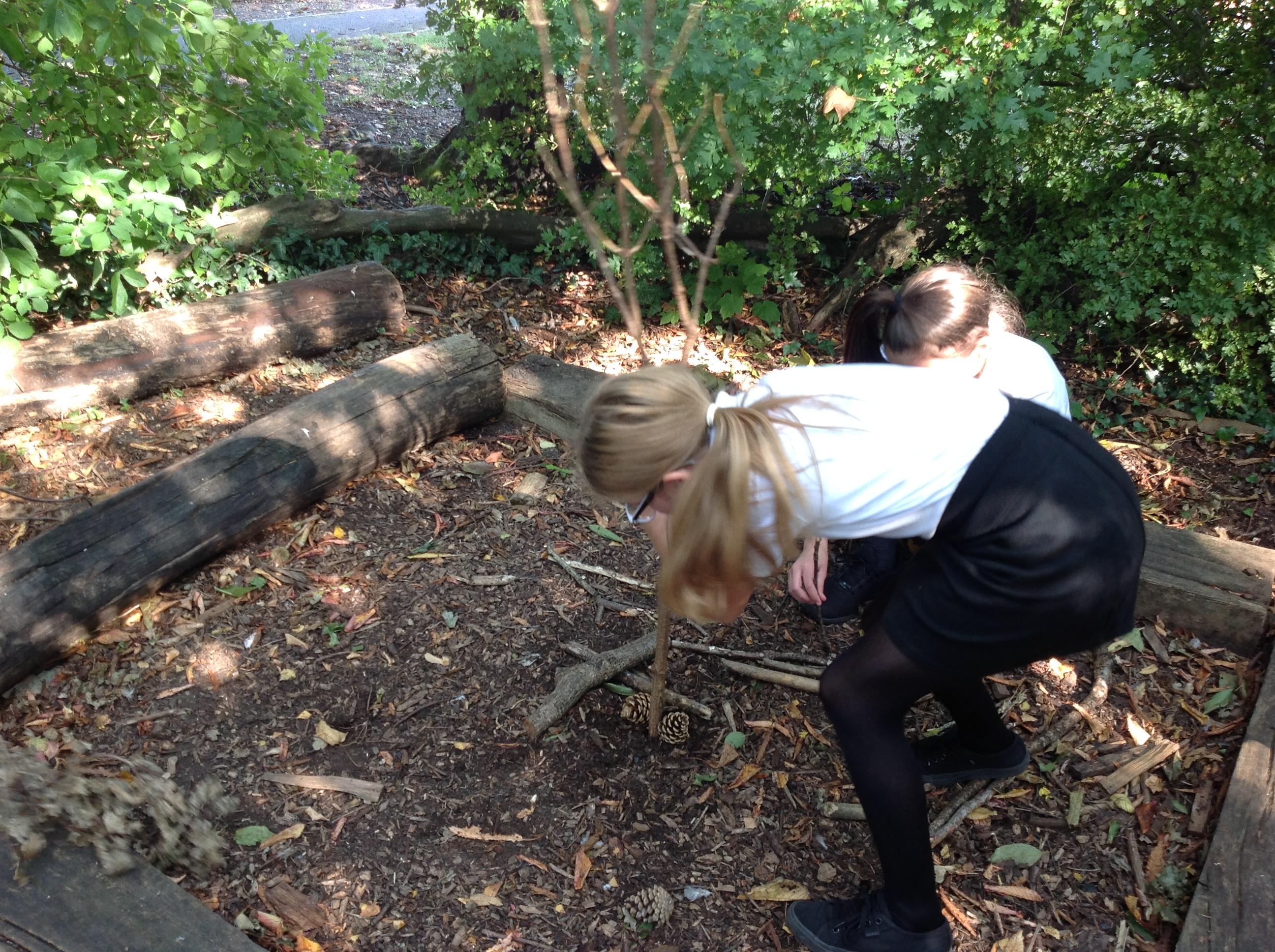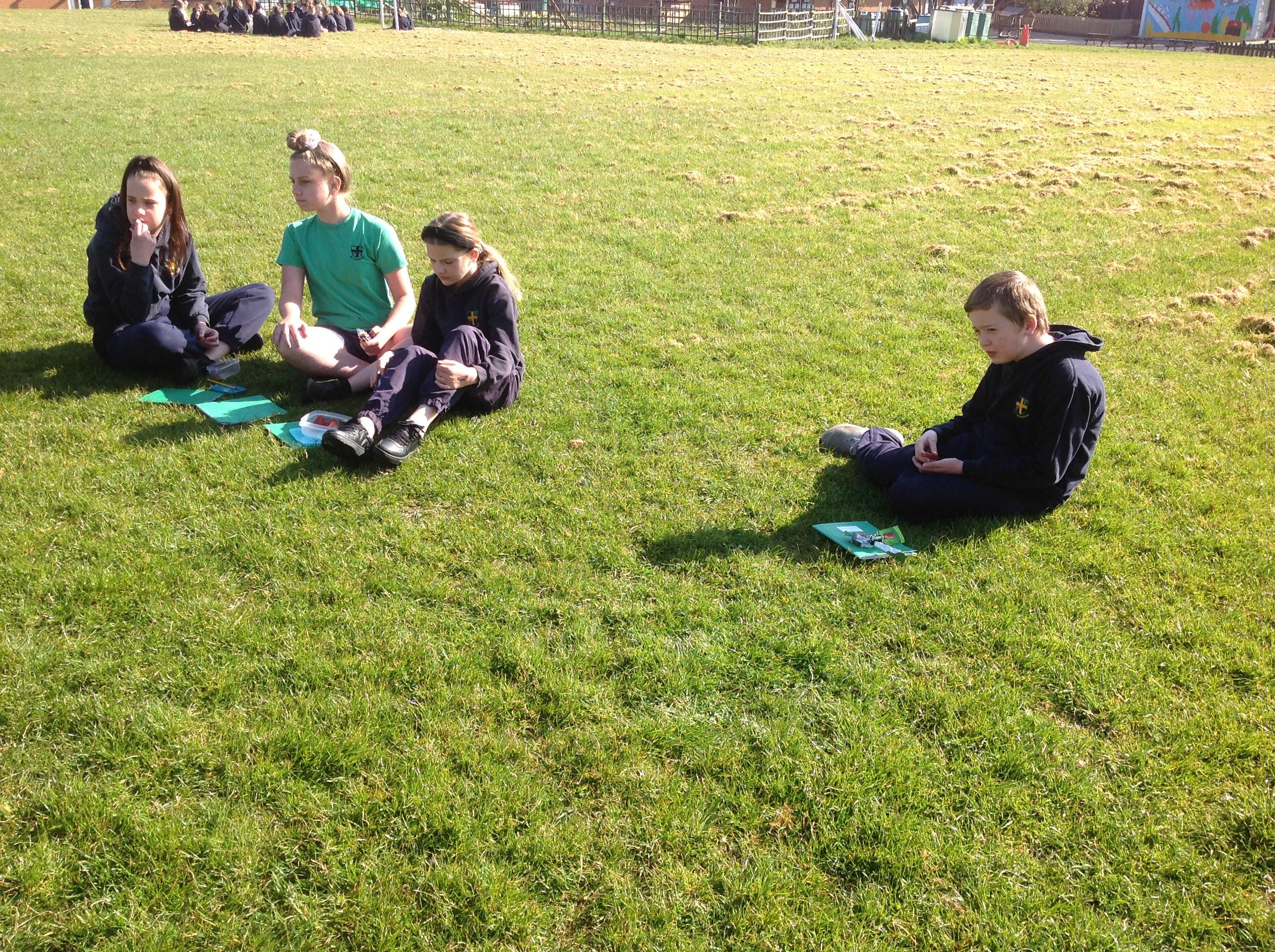 In Week 1, we went outside to imagine what it might be like if we were just 15cm tall! After enjoying a picnic snack (to fully immerse ourselves within the setting of a meadow) we led down and explored the ground and surrounding vegetation. From there, we collected words and phrases related to our senses that will help us to write our stories next week.