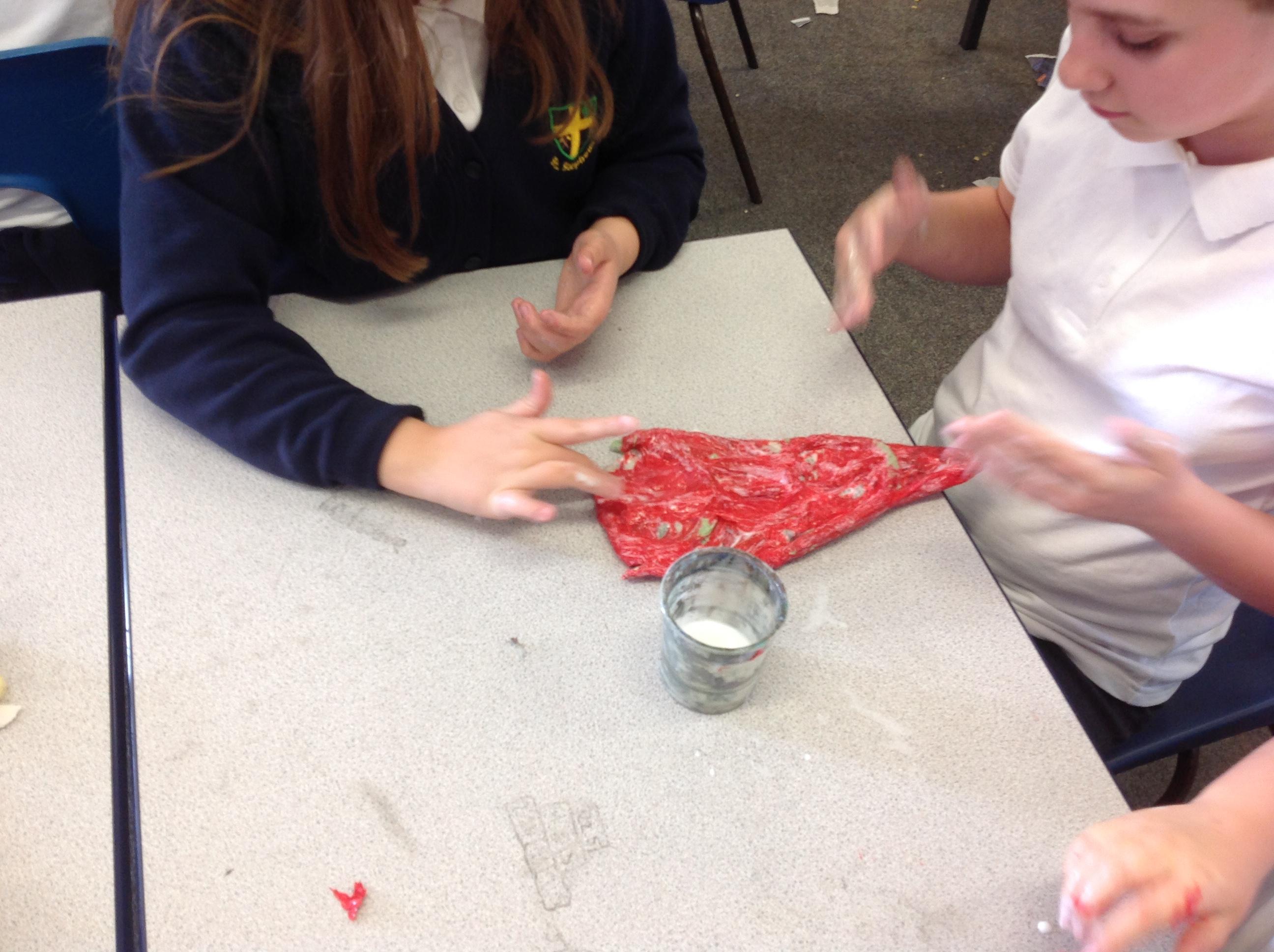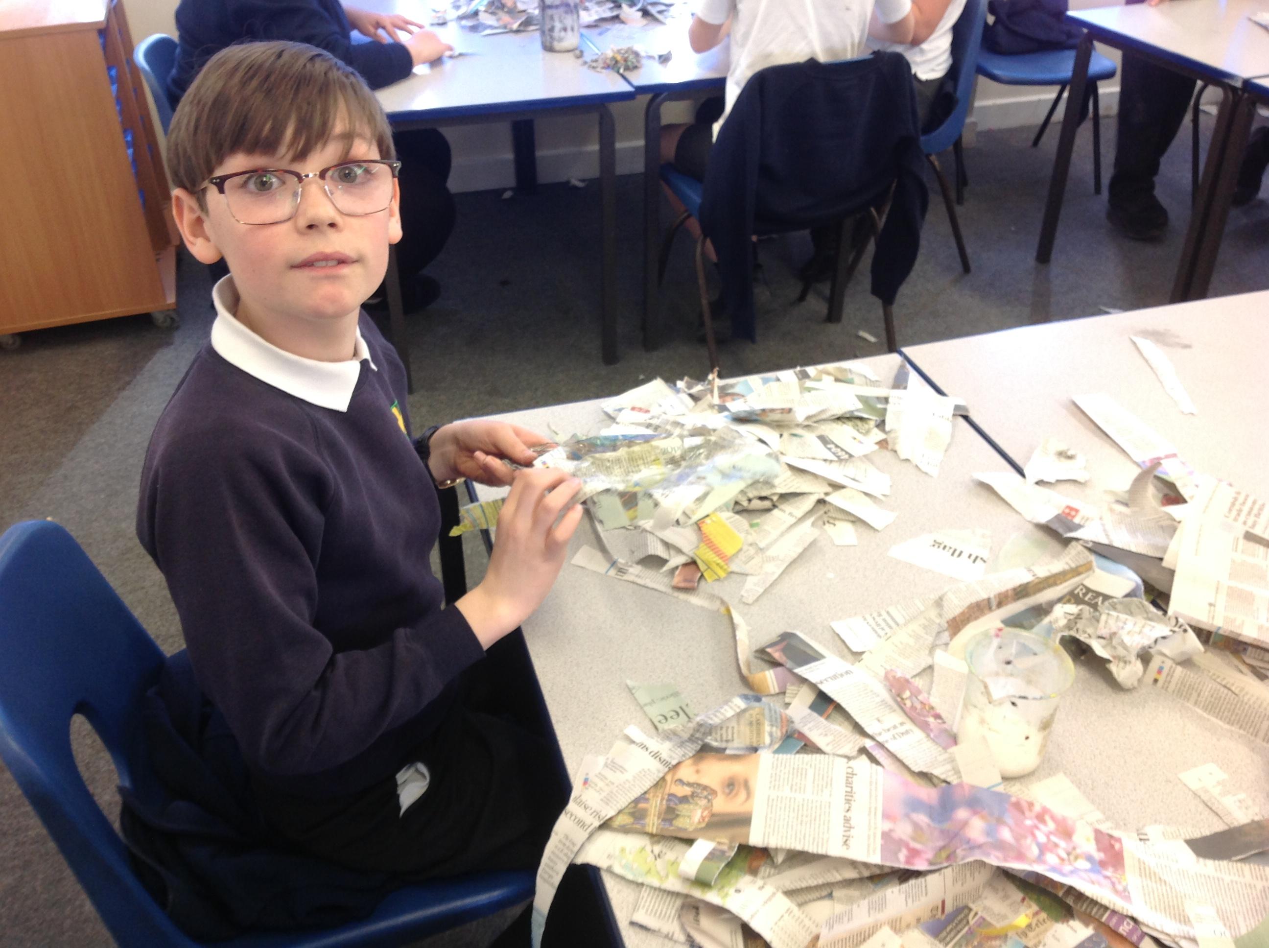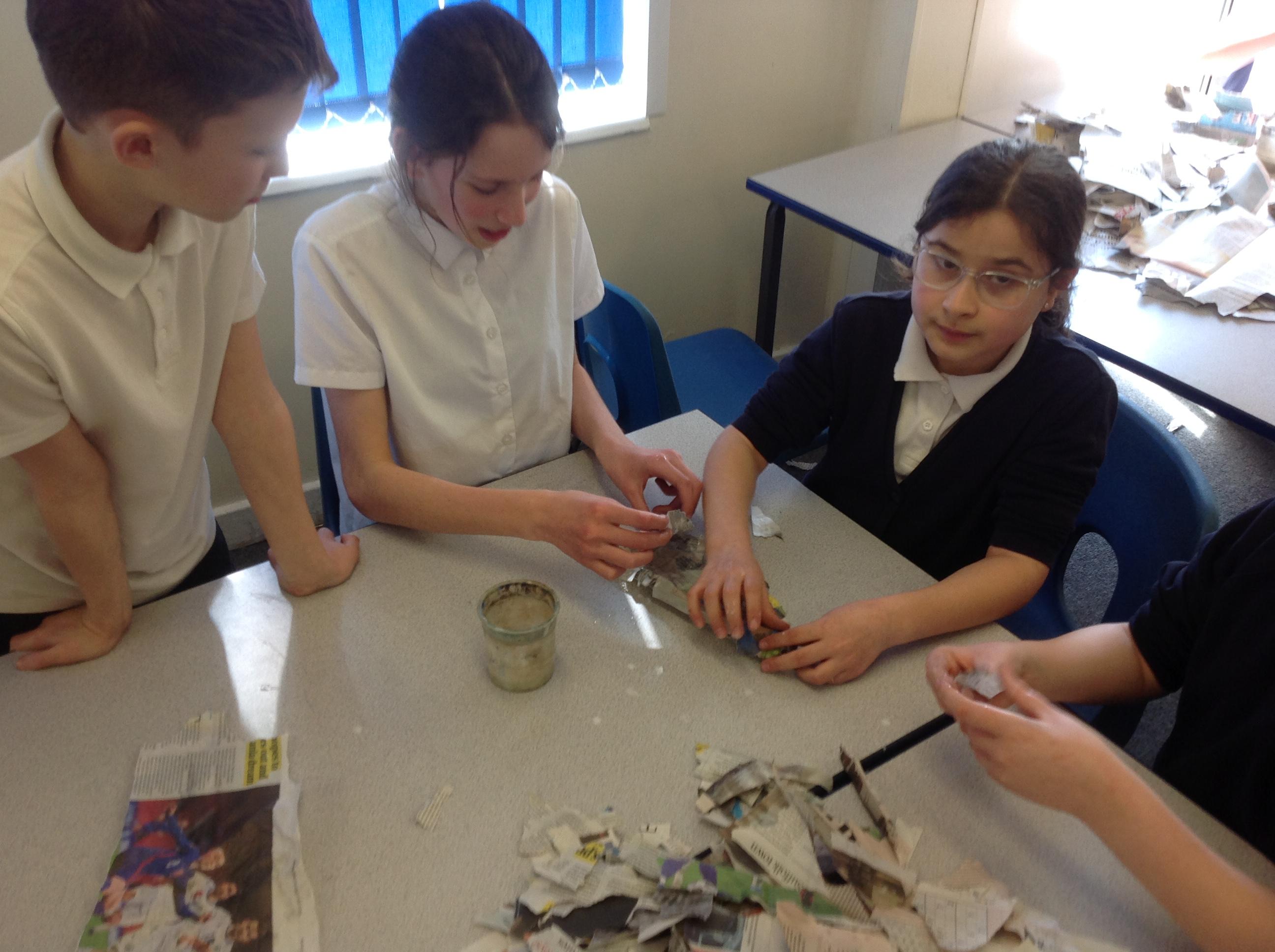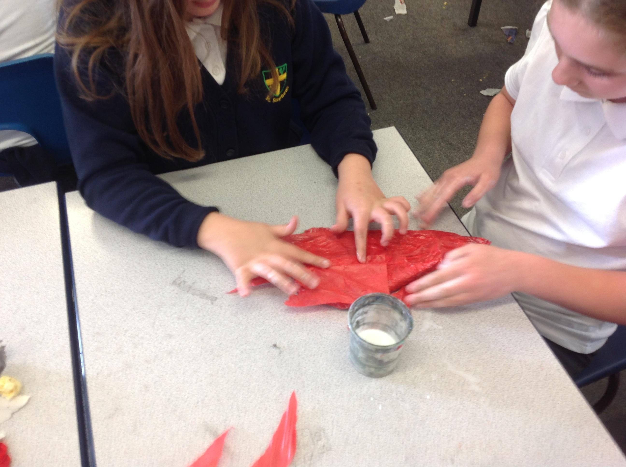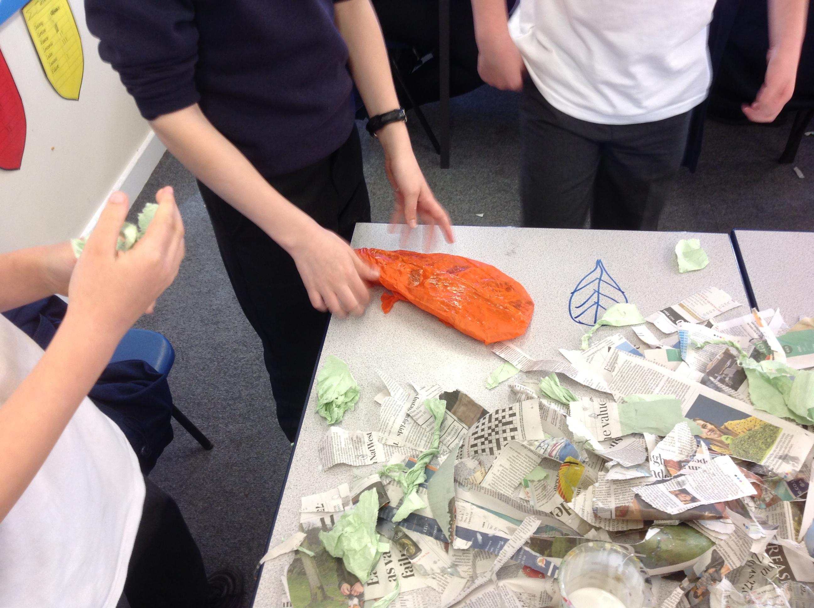 Wow! What a messy but fun afternoon we had. Our 3D art has started well. We sculpted leaves out of chicken wire, covered them with newspaper, created veins with a variety of different techniques and then finally covered with tissue paper. These leaves will then form part of our display at the end of our unit having been inspired by our text 'Here we are'. We will be sculpting insects and flowers to complement our leaves next term.