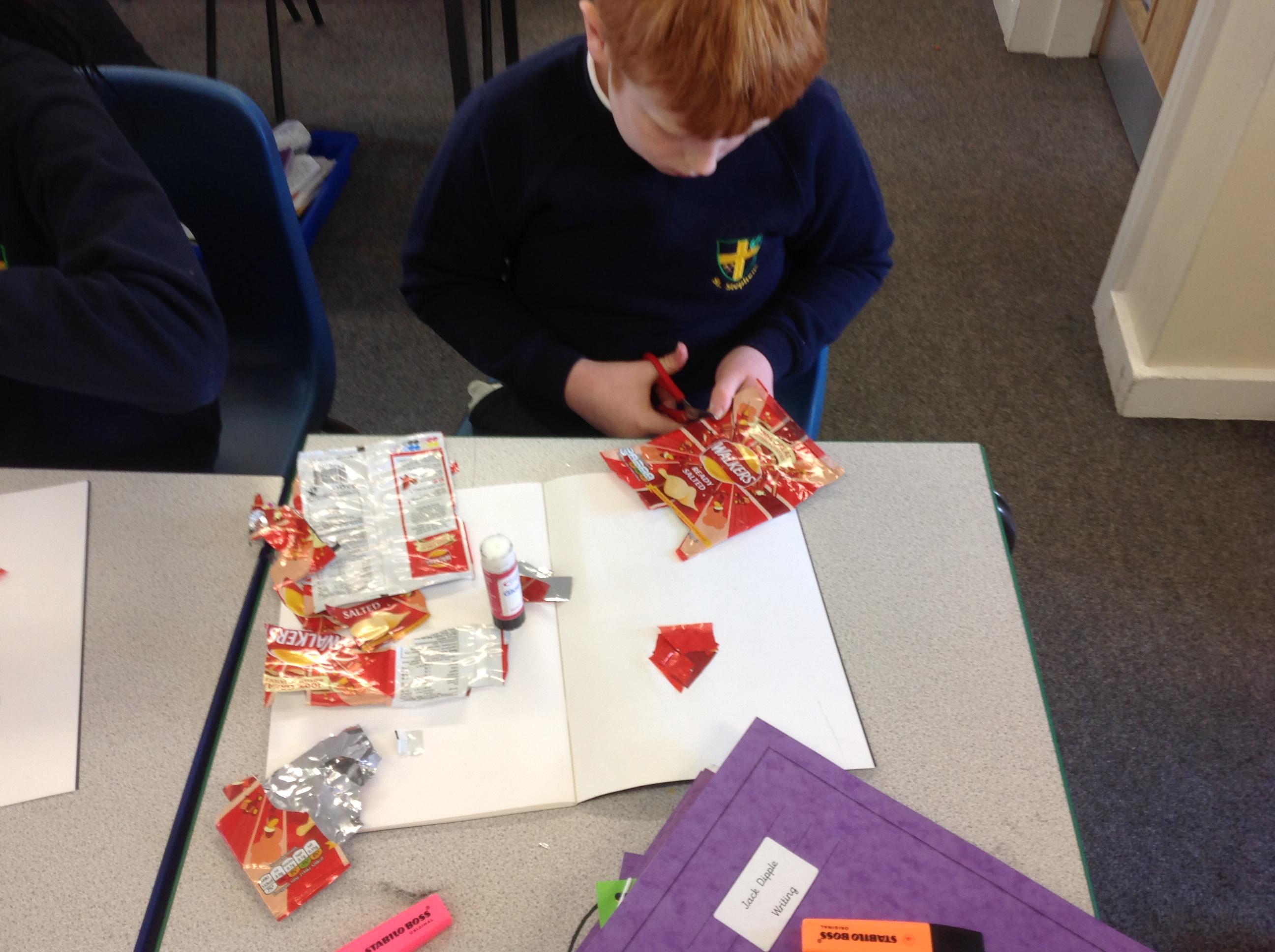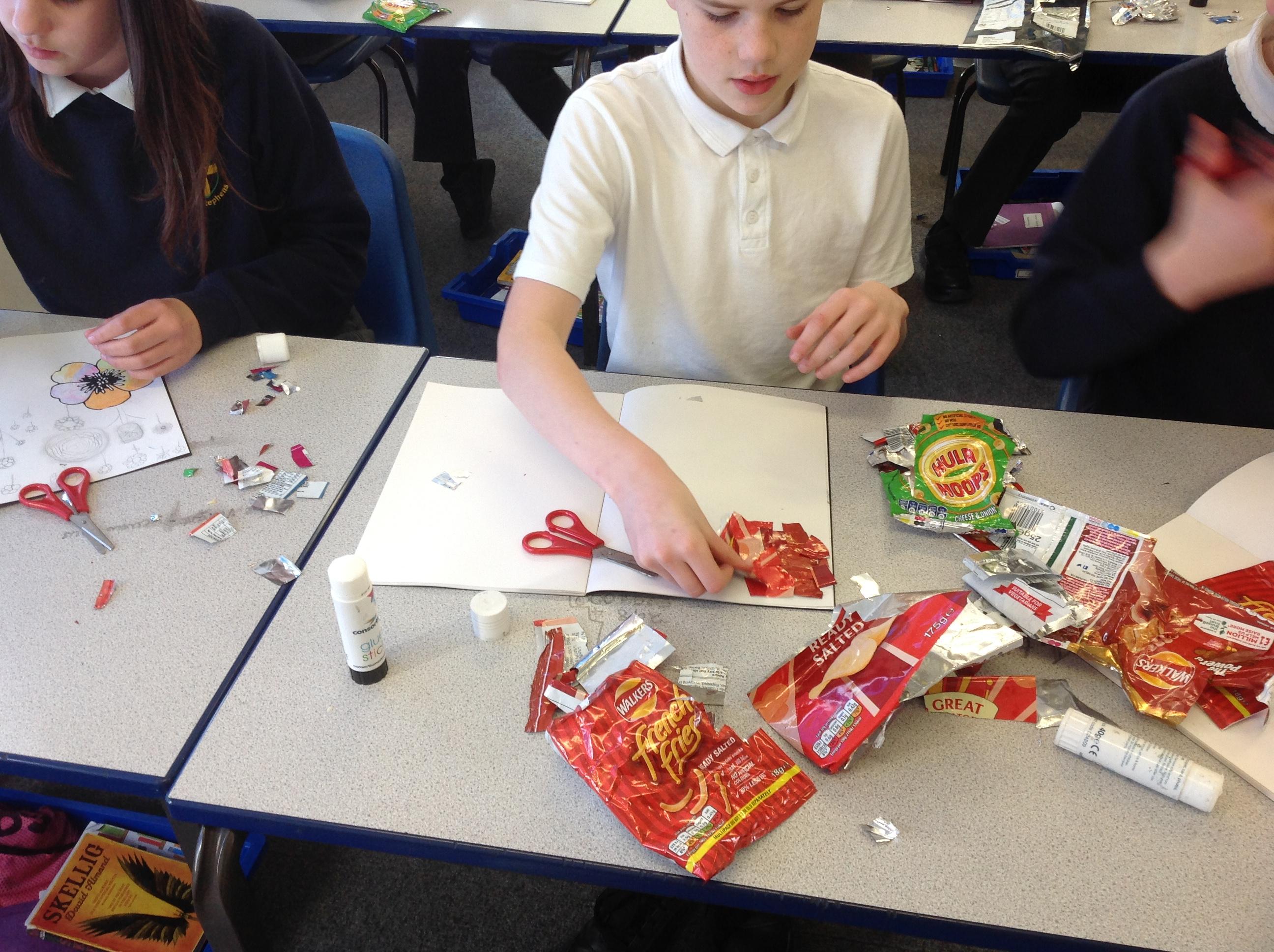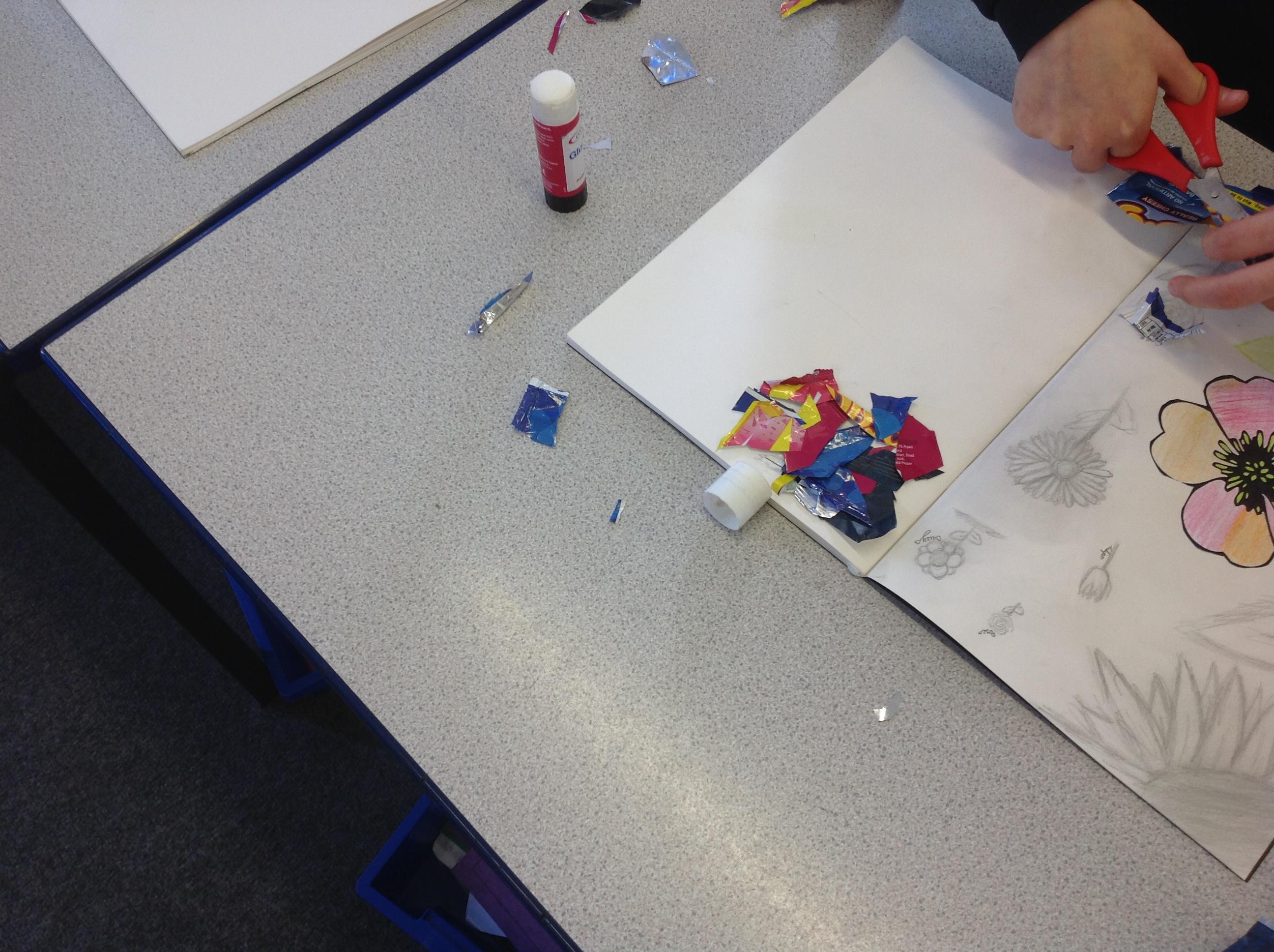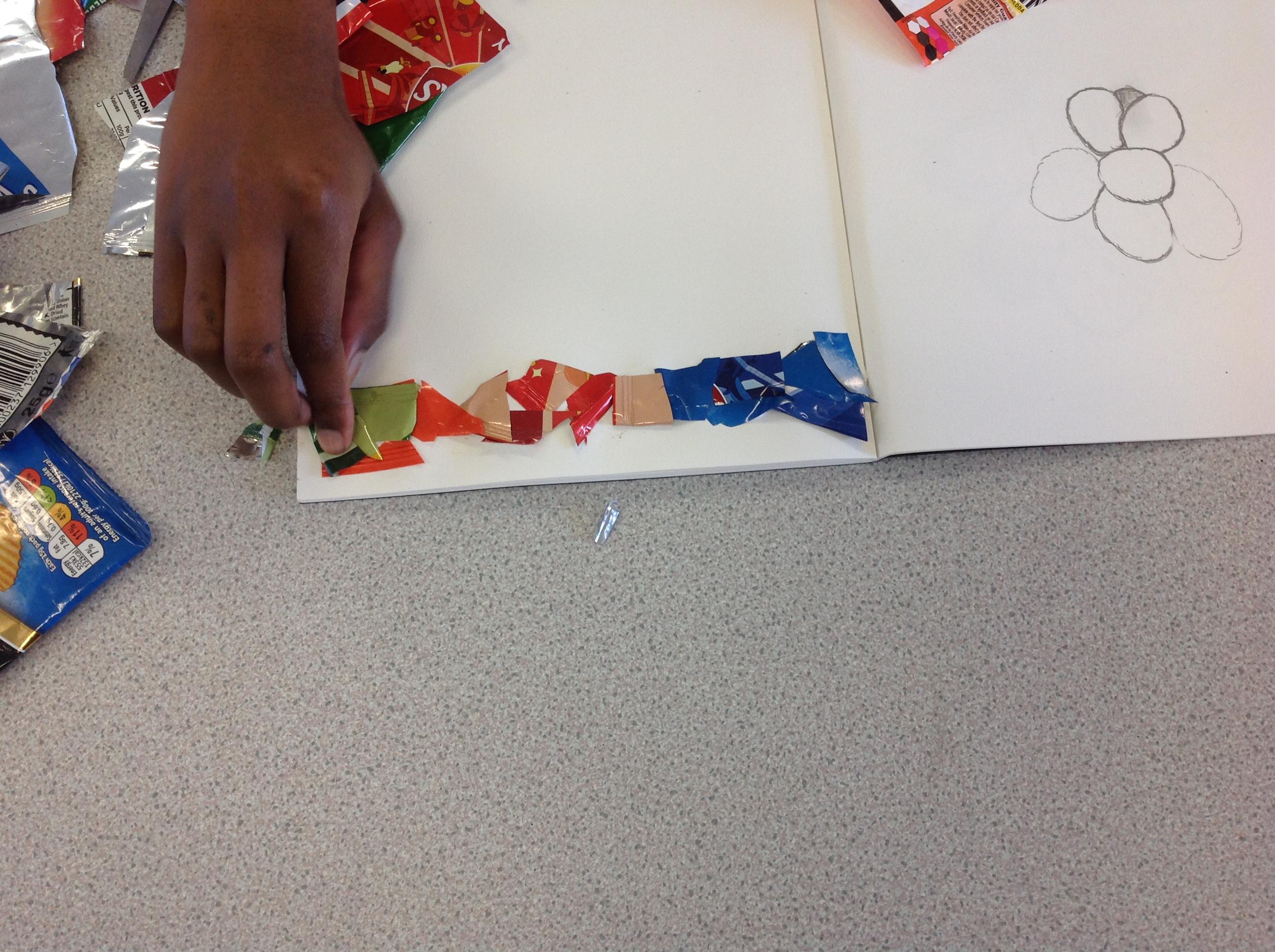 This week we continued with our art projects. We created mood-boards in our sketch books by creating shades of colour using watercolour paints and crisp packets. The purpose of this was to explore colour and texture in preparation for our final piece which will be endangered insects and flowers. Our inspiration has been from our text ‘Here we are’ which has at its core the importance of caring for and preserving Planet Earth.
