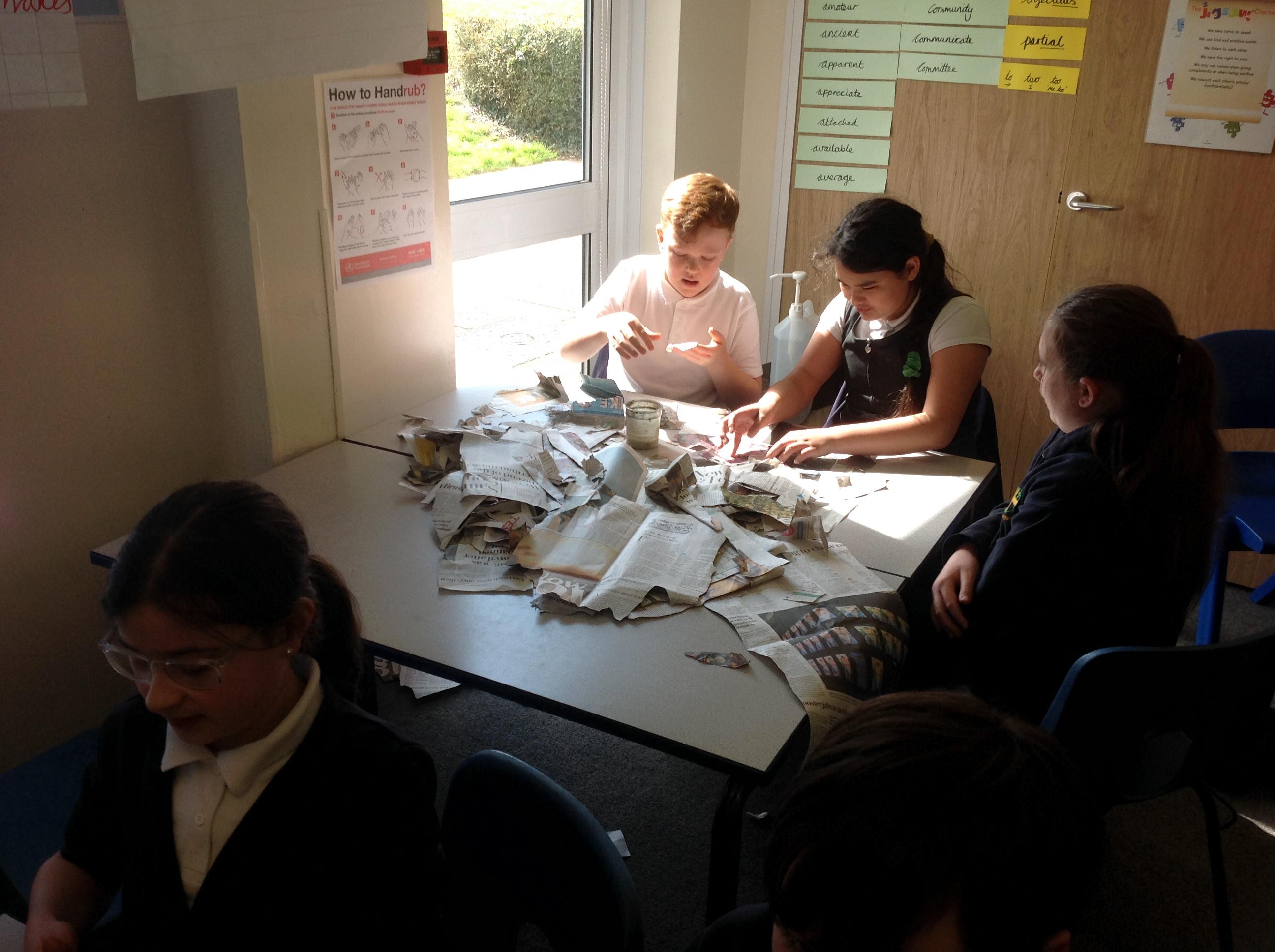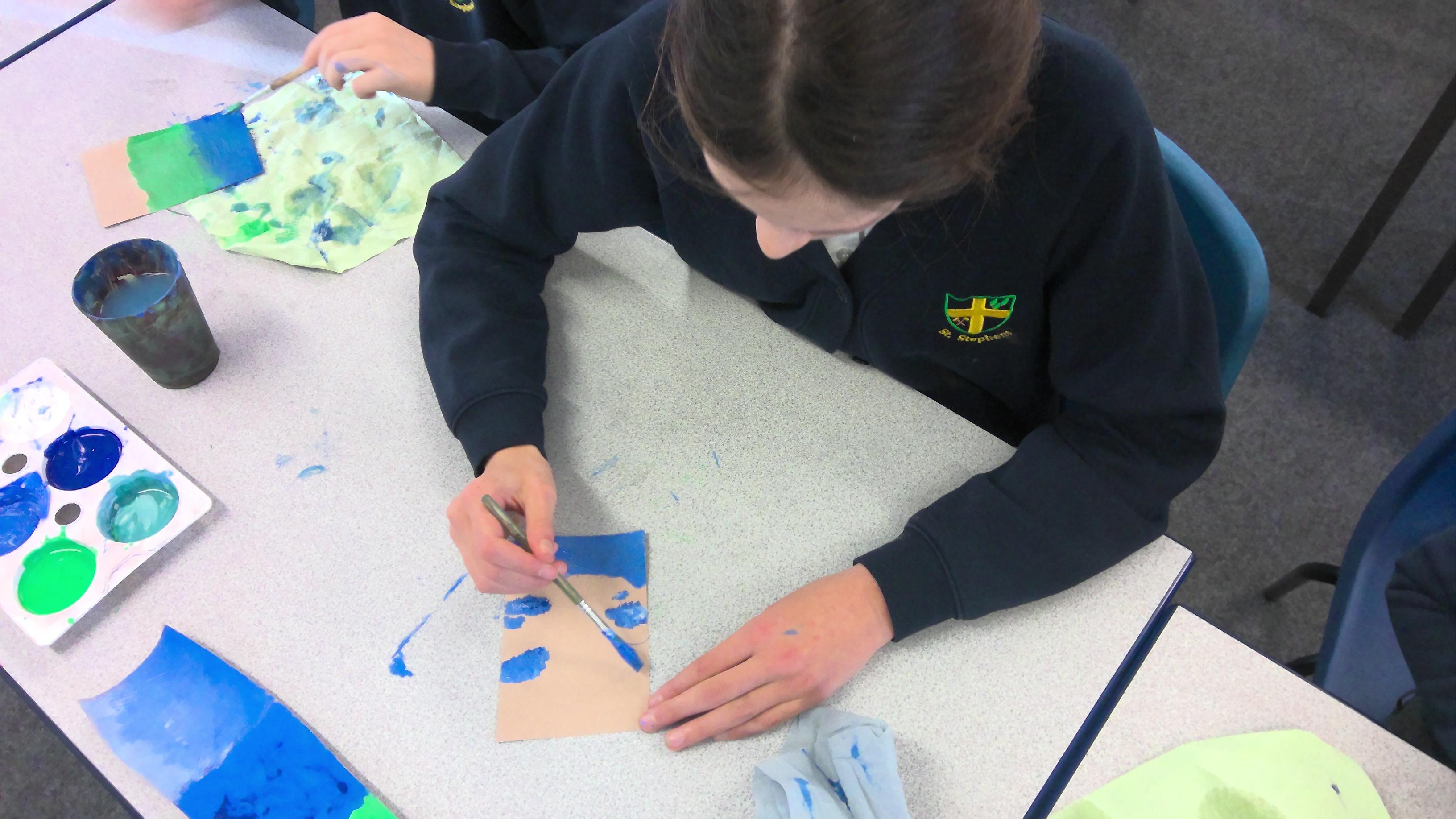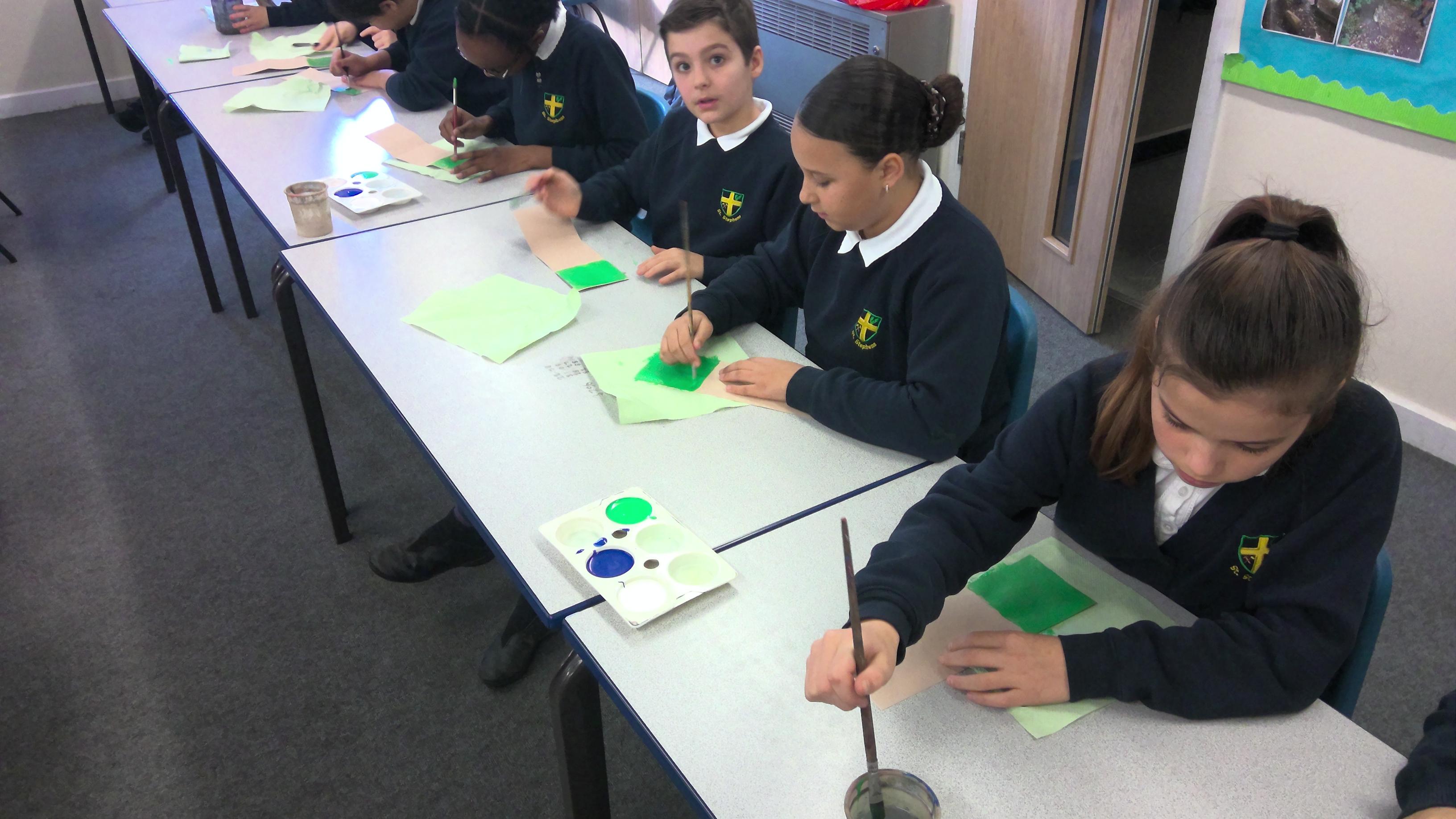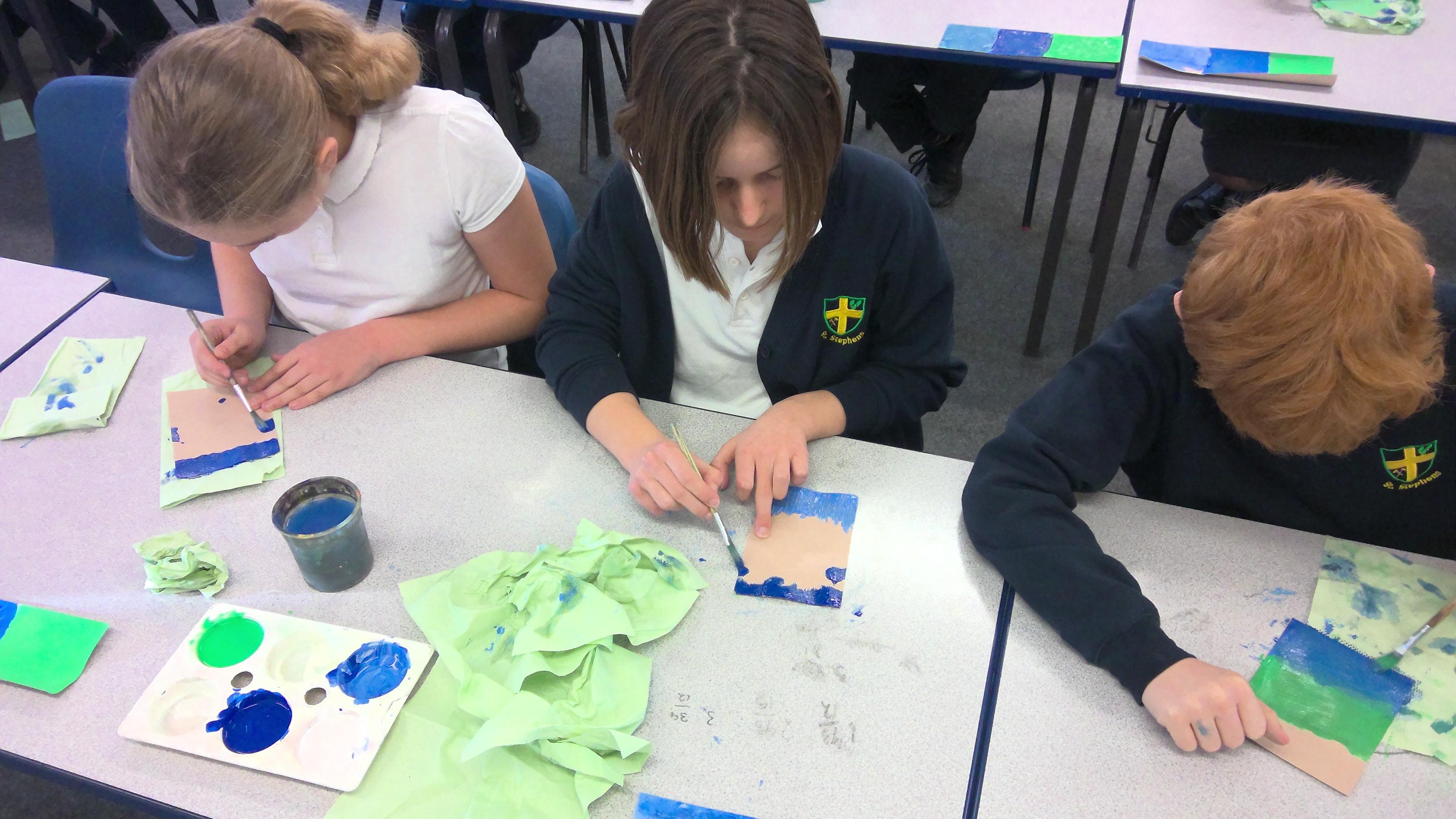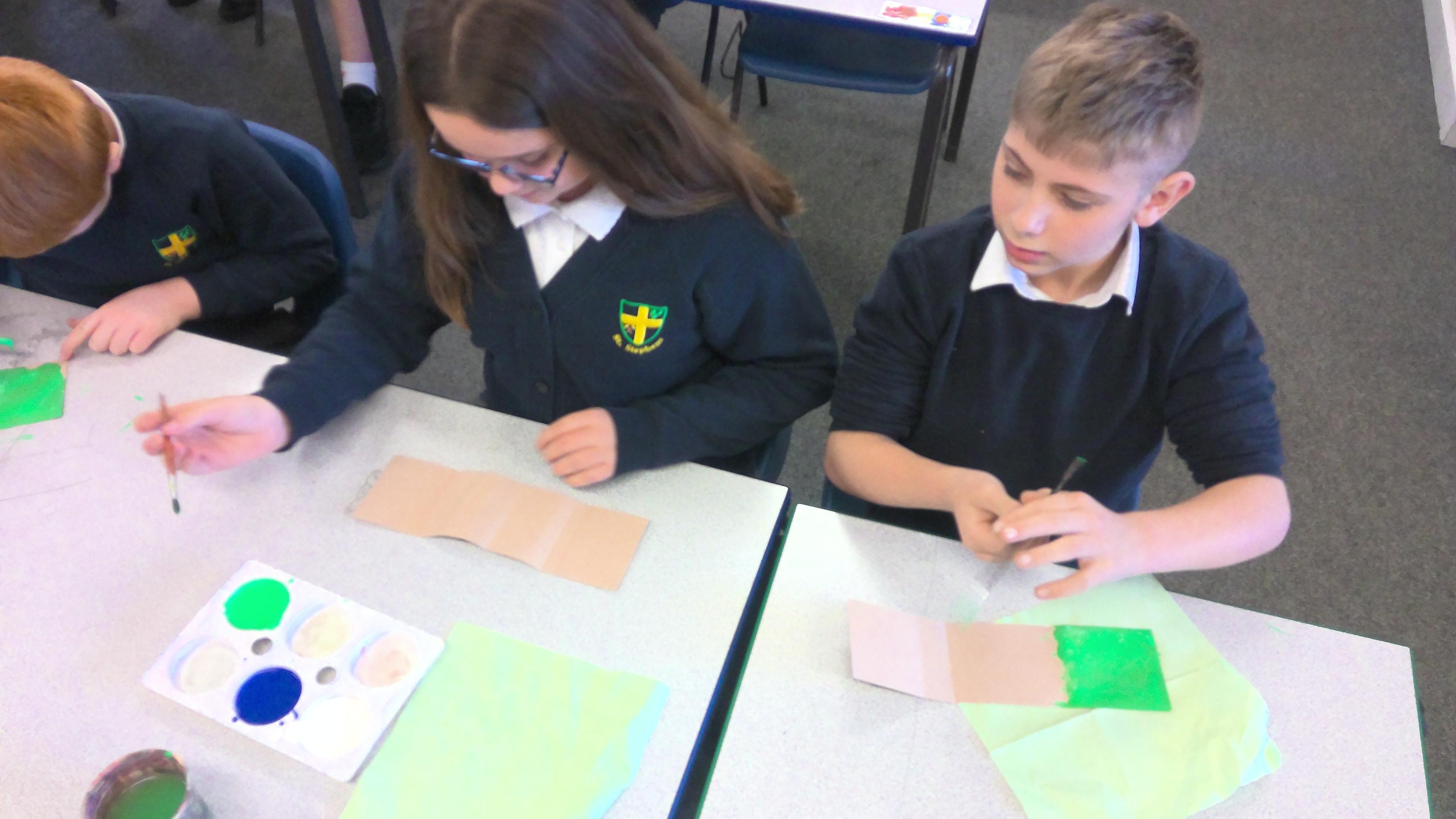This week we continued with our art projects. We created mood-boards in our sketch books by creating shades of colour using watercolour paints and crisp packets. The purpose of this was to explore colour and texture in preparation for our final piece which will be endangered insects and flowers. Our inspiration has been from our text ‘Here we are’ which has at its core the importance of caring for and preserving Planet Earth.