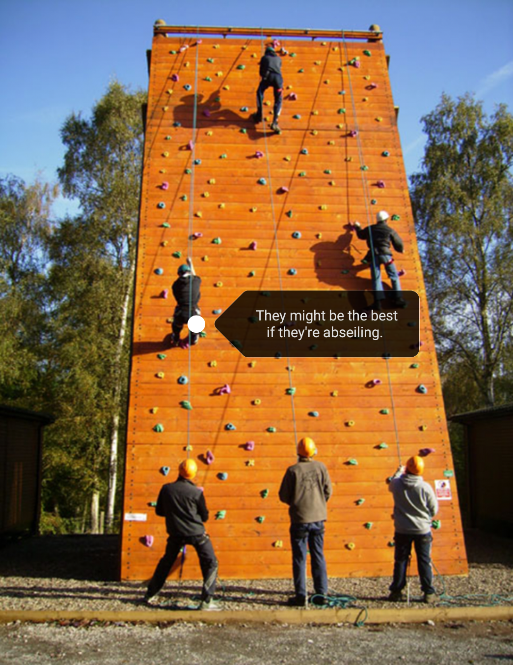 The climbing (or is it abseiling?) image has some of our thoughts!