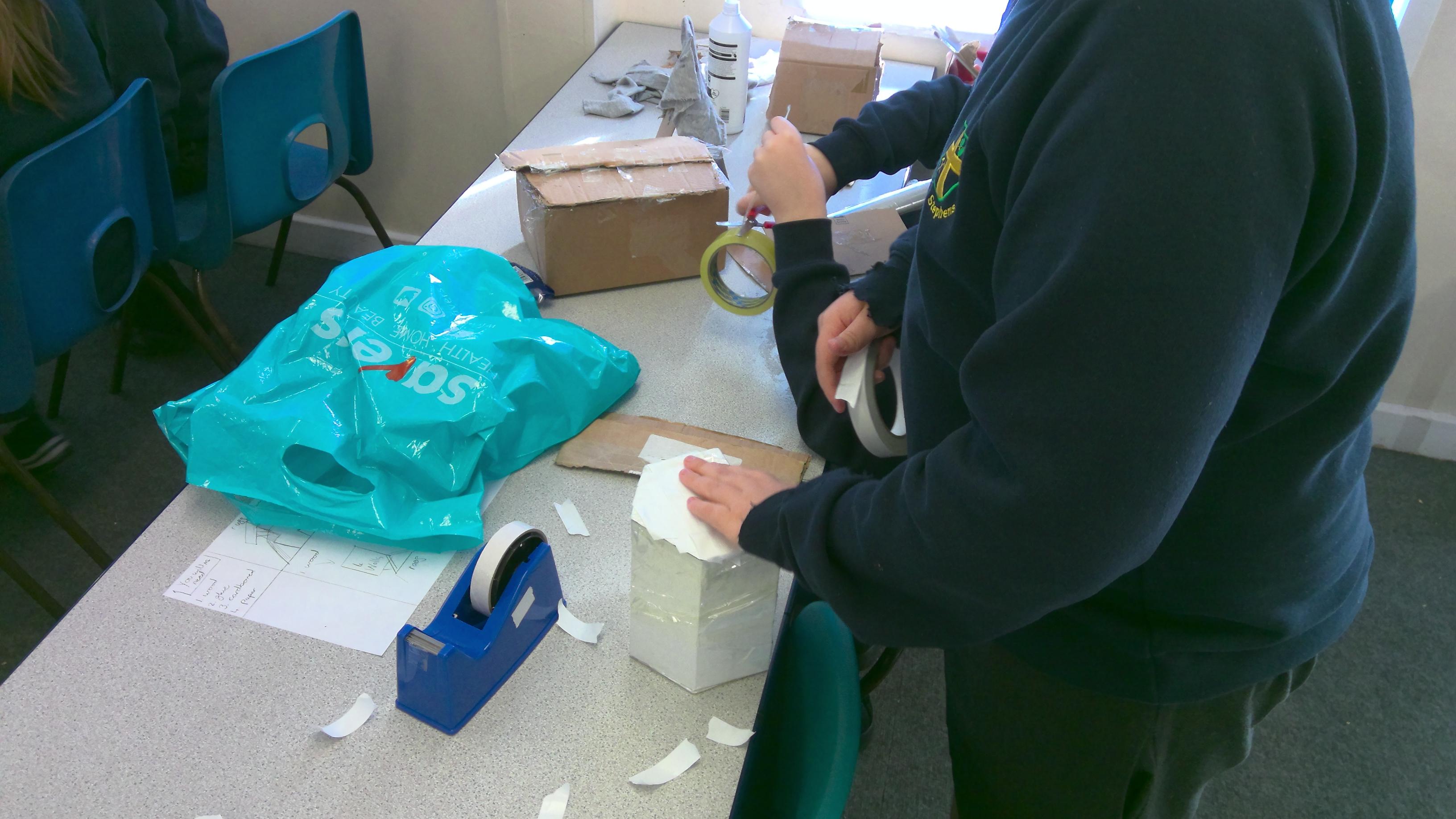 Today, we thought about what a homeless person might need for a shelter. We built shelters from what we had available to us. We aimed to stay dry, comfy and protected. Some of us worked on scaled down versions.