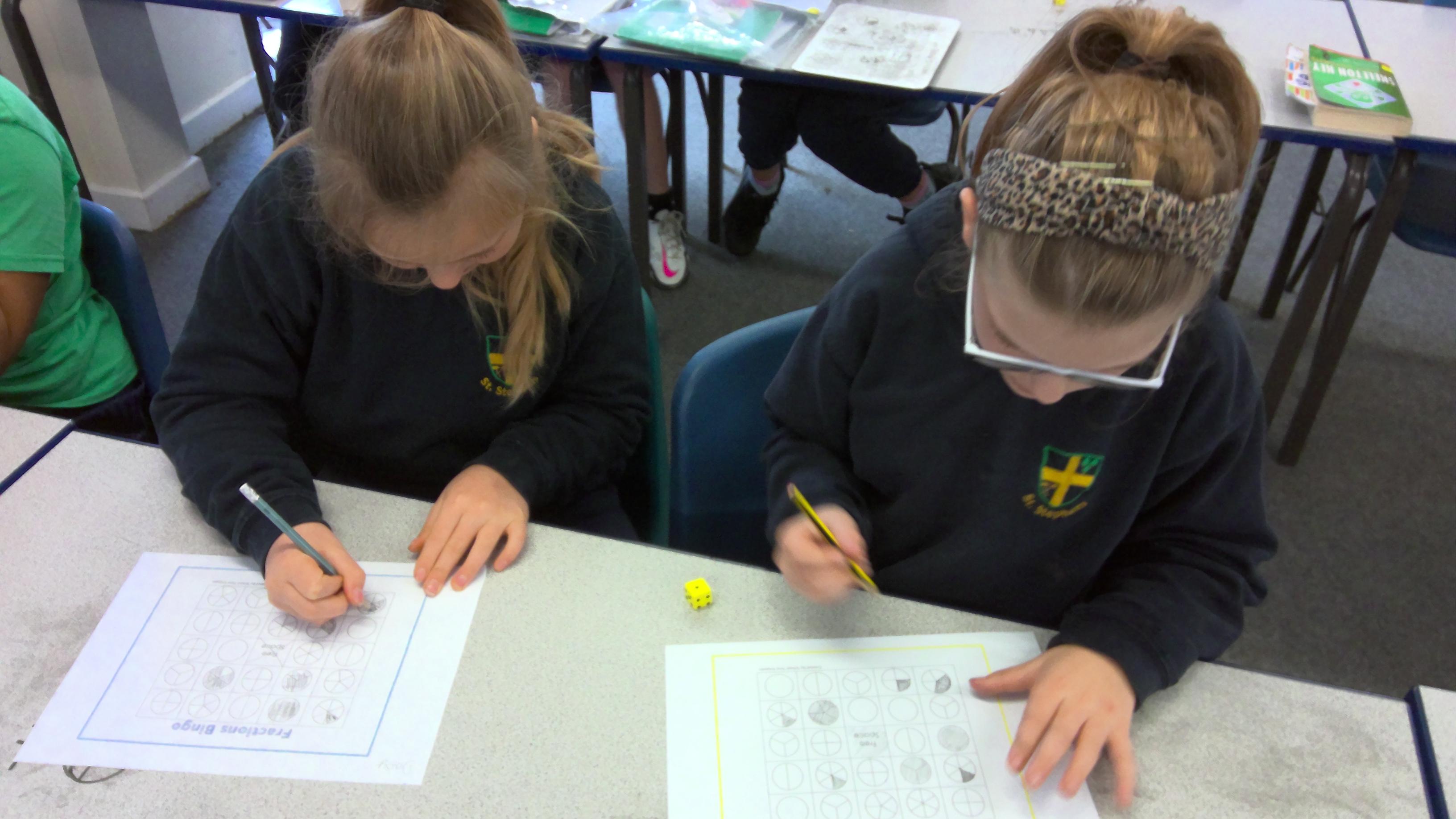 Later on in the session we played a game of fraction bingo. This involved rolling dice and deciding on where to place the fraction on the bingo sheet. The tricky part was deciding how to add to the fractions to make a whole!