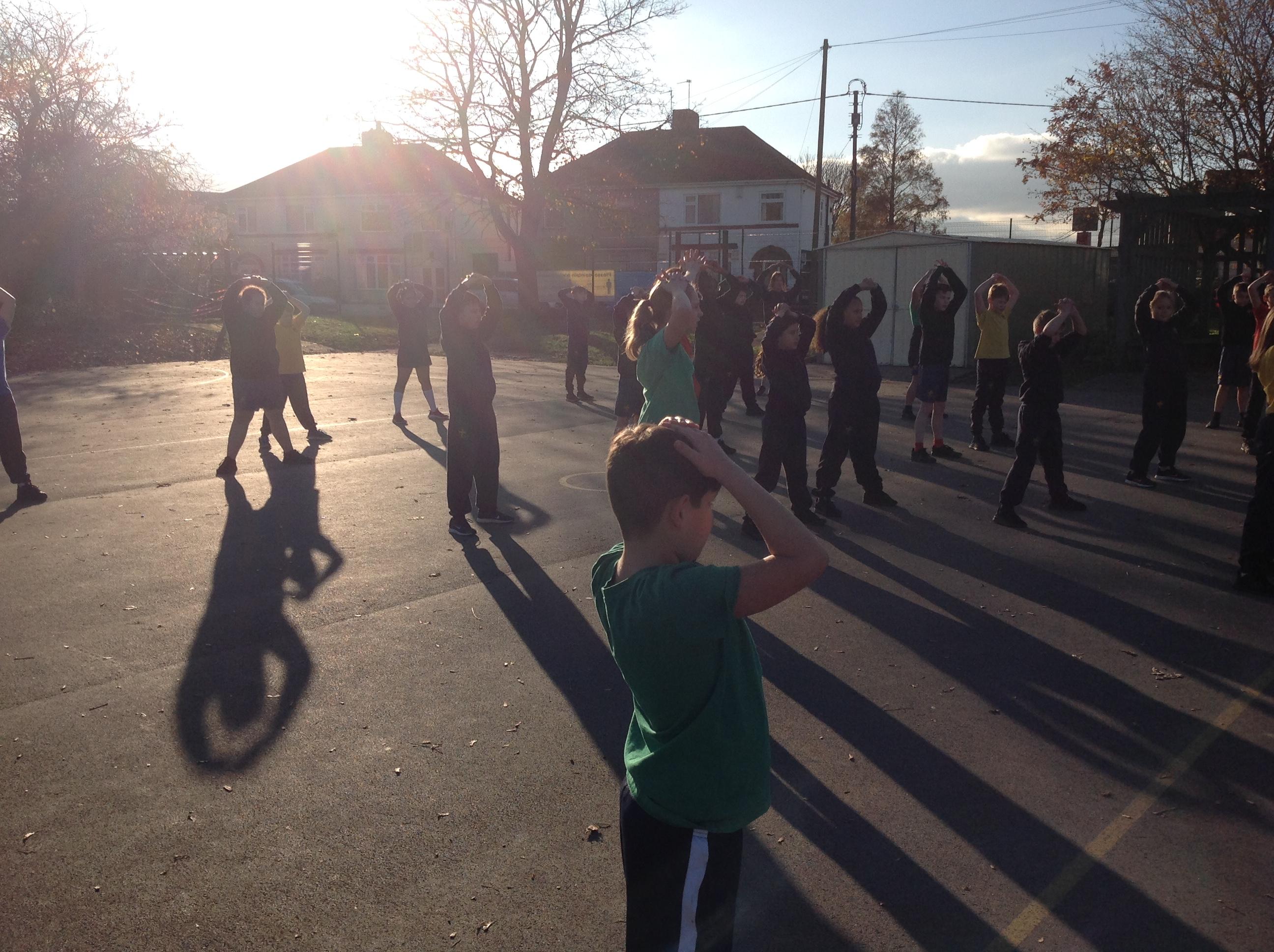 Today we made the best of the last rays of sunshine to develop our fitness. We started off with a vigorous warm up sequence involving star jumps, jogging and speed jumps. This was followed by a relay run around the field in groups of four. The session concluded with some gentle yoga to cool down to.