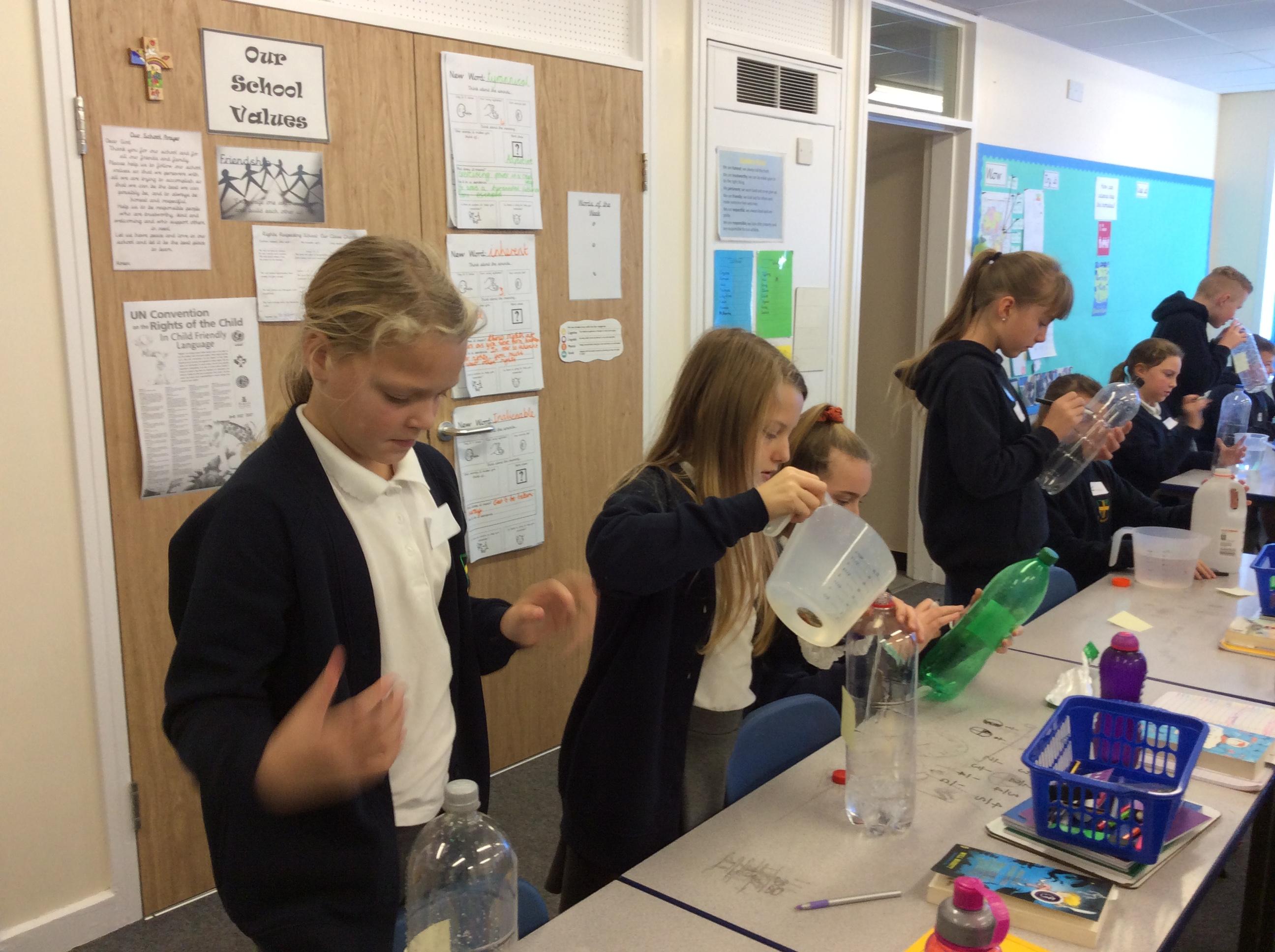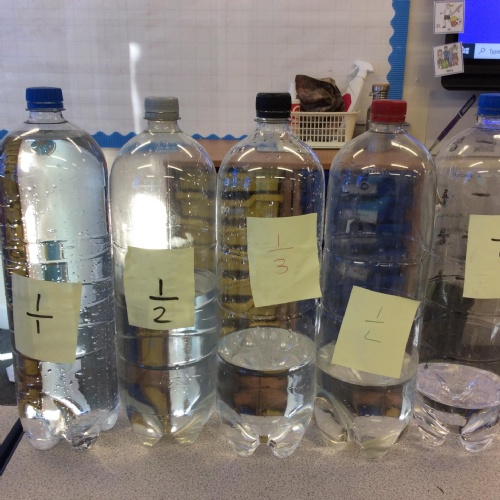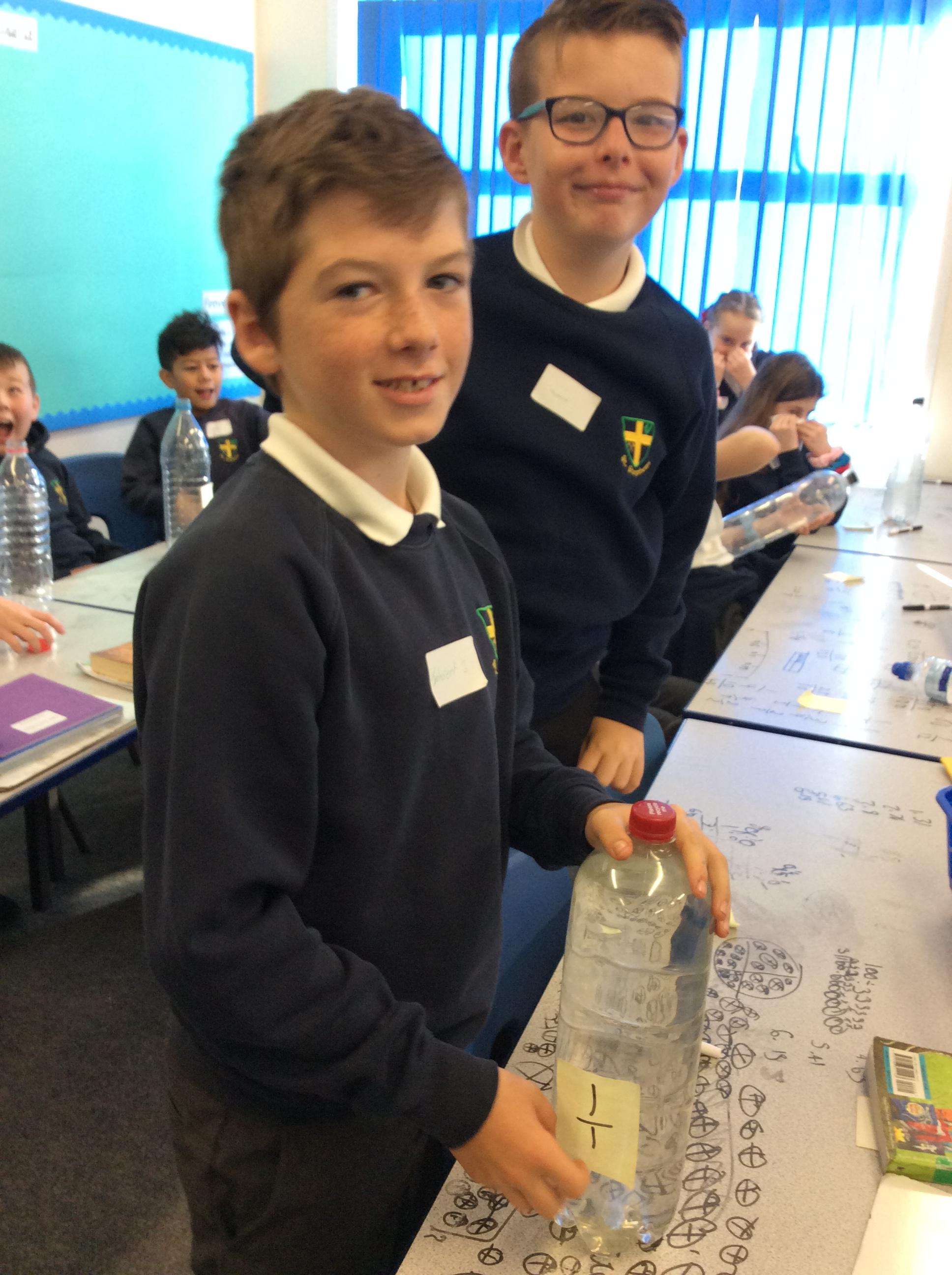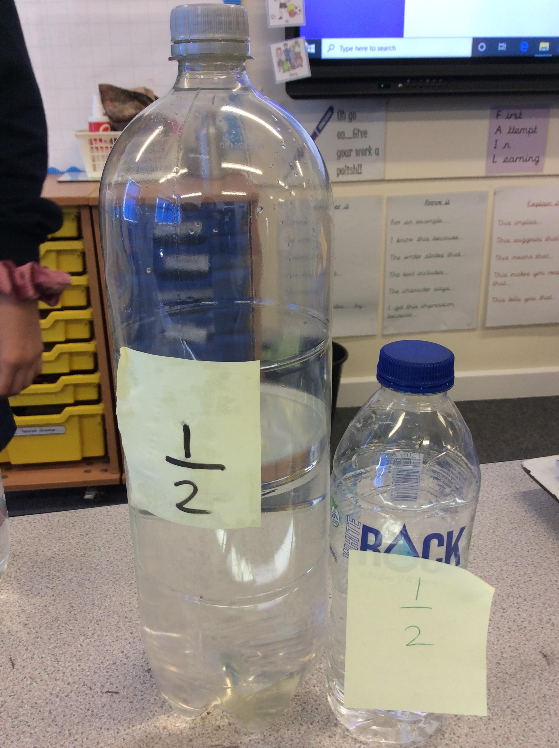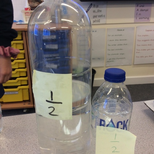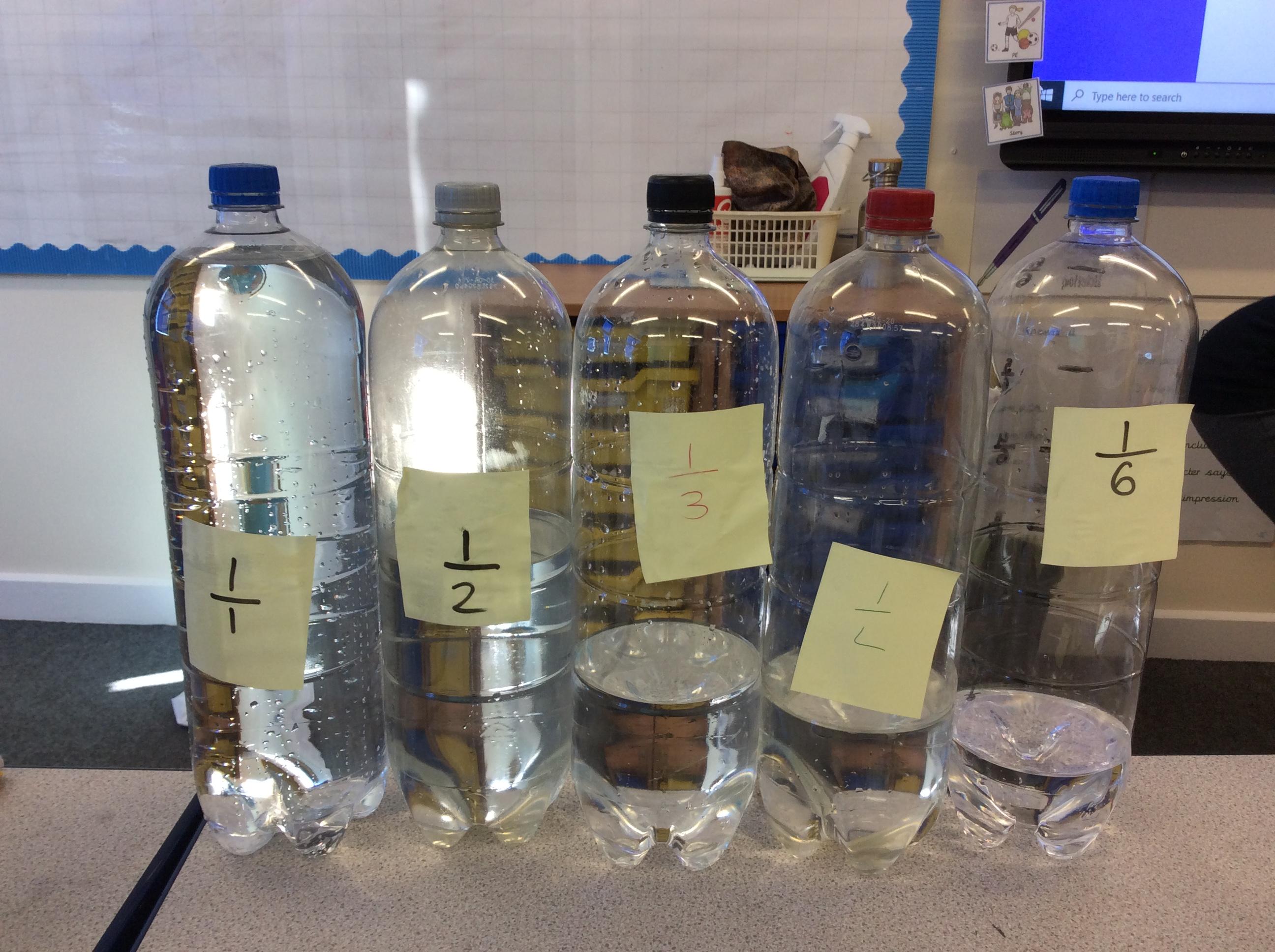 In maths today, we deepened our understanding about fractions by exploring them using water and water bottles. Ask us to explain fractions to you.