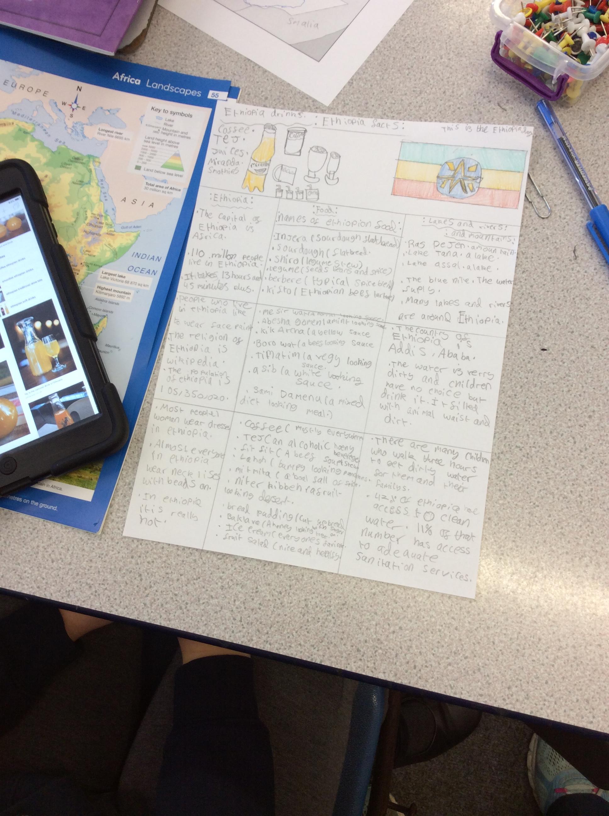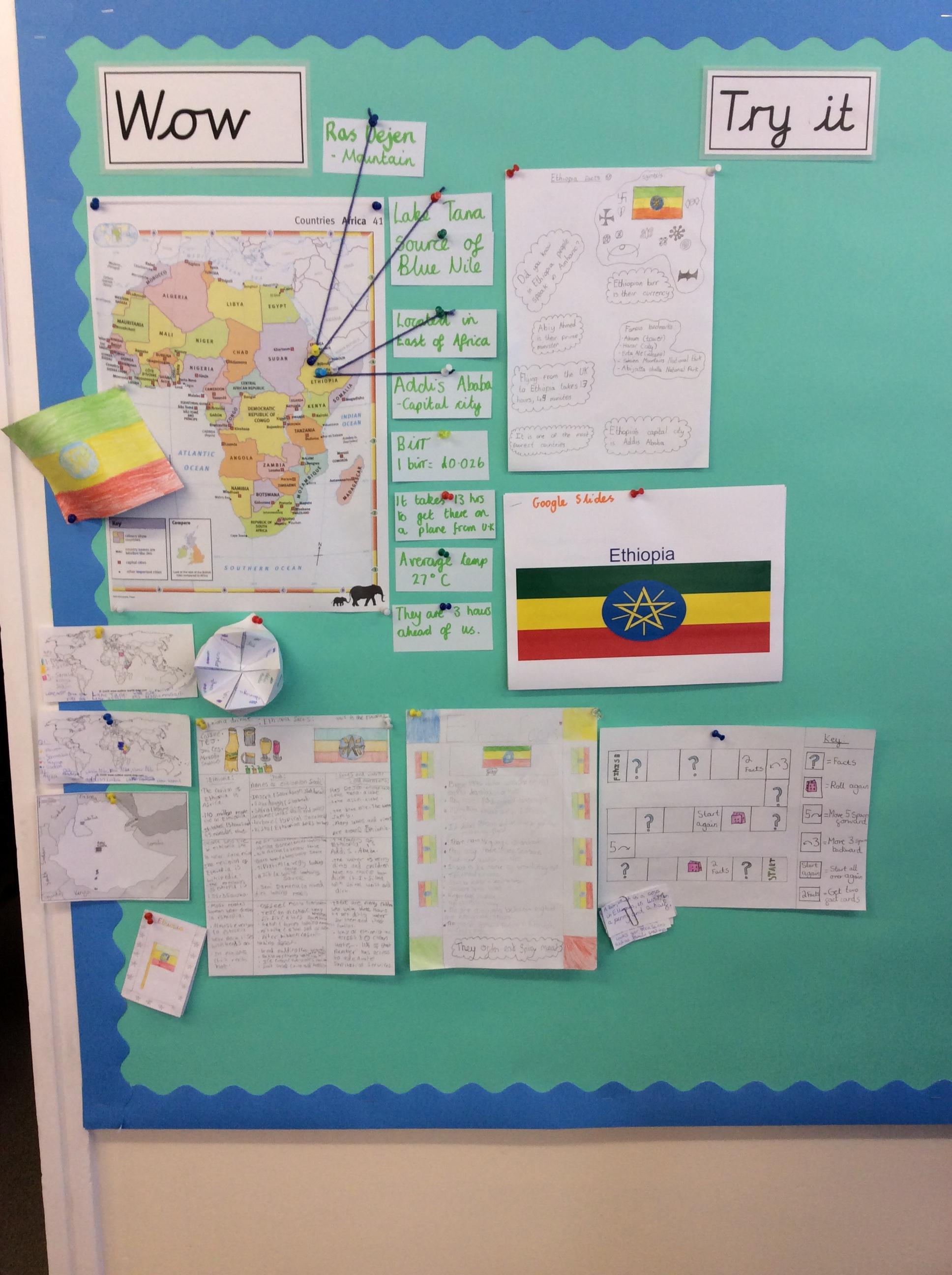 To kick start our enquiry we spent the day investigating Ethiopia. We located it on a map, found the mountains, lakes and rivers, researched time zones, currency, flight times, climate, government, schooling etc etc. With this information some of us produced google slides, PowerPoints, board games, mini books etc to present our findings. We also enjoyed sampling Ethiopian cuisine. It was extremely tasty!