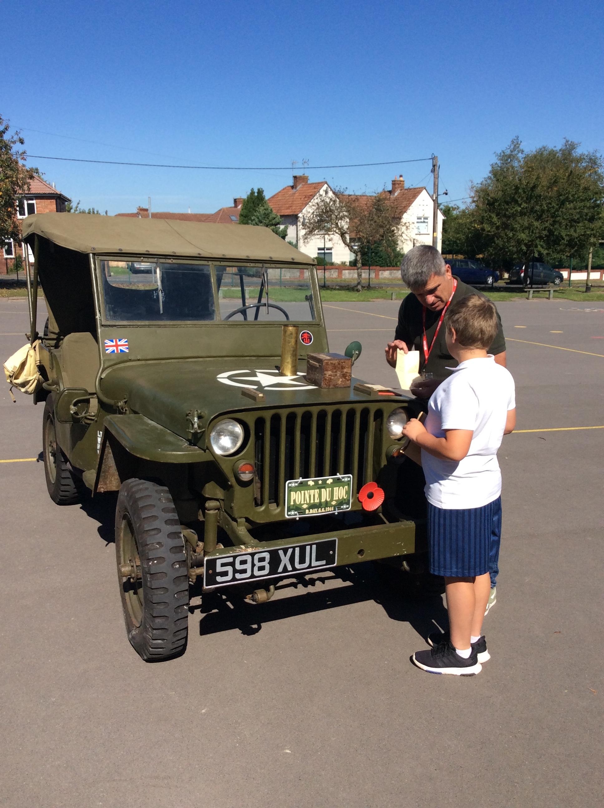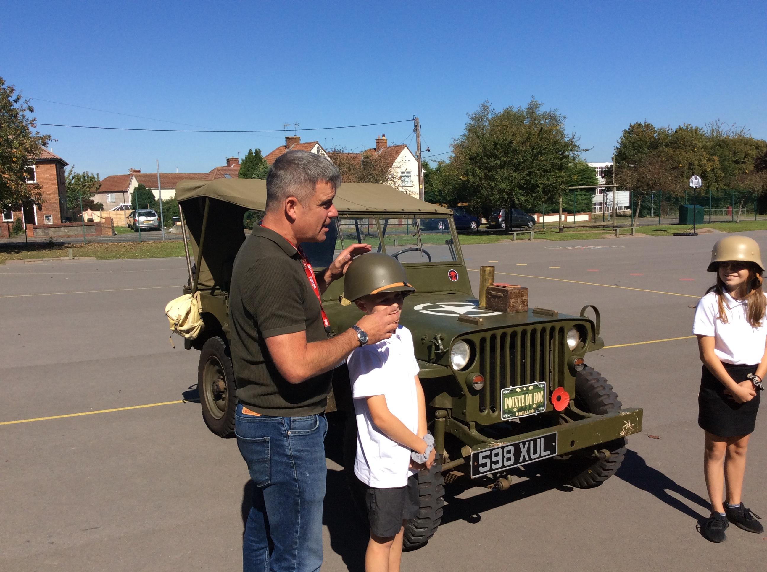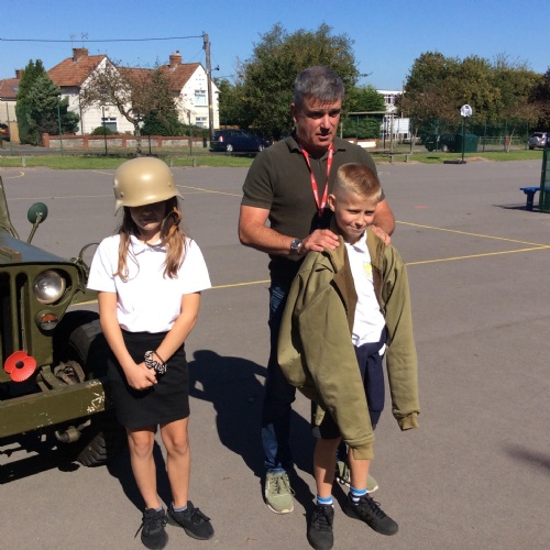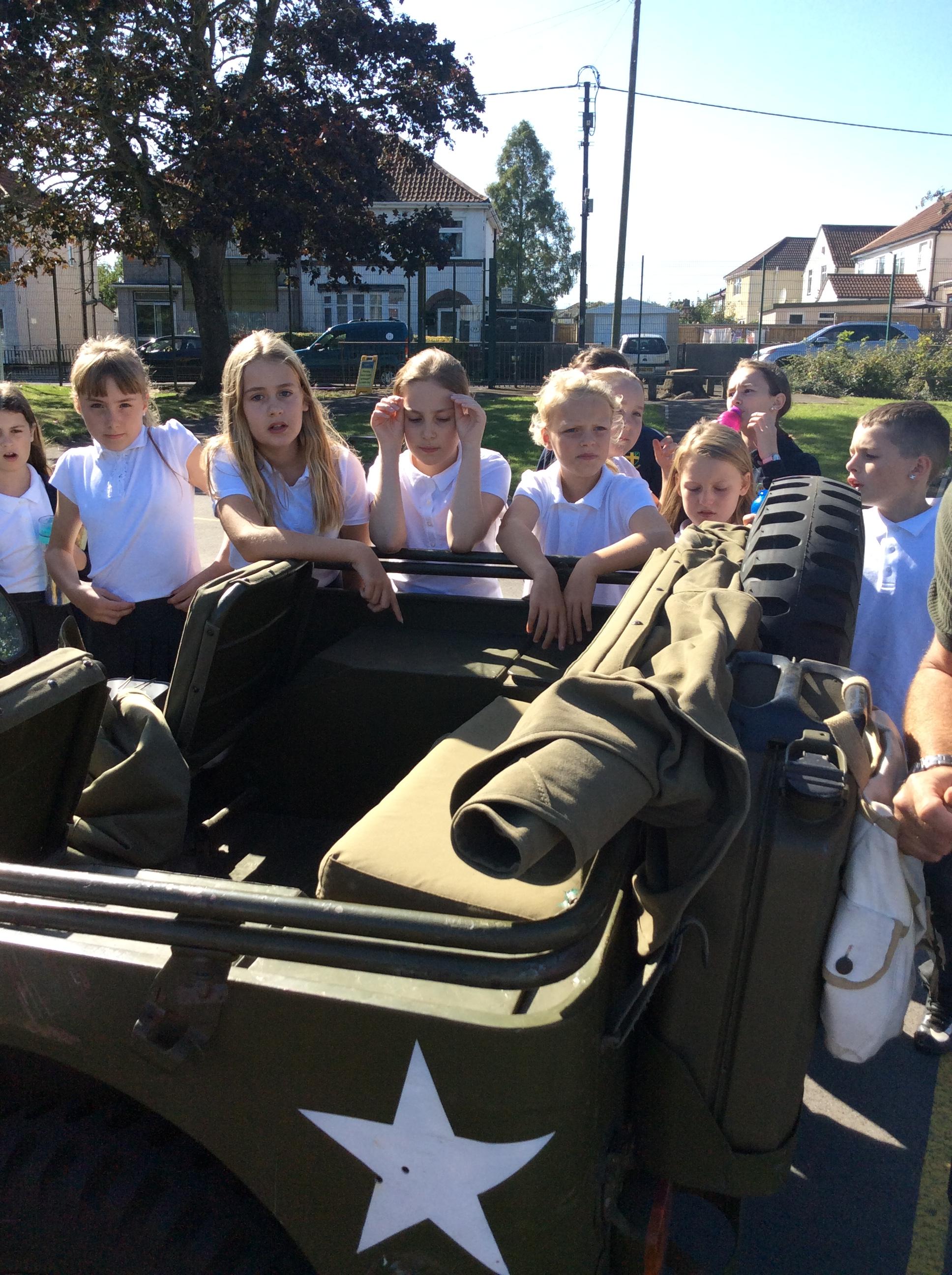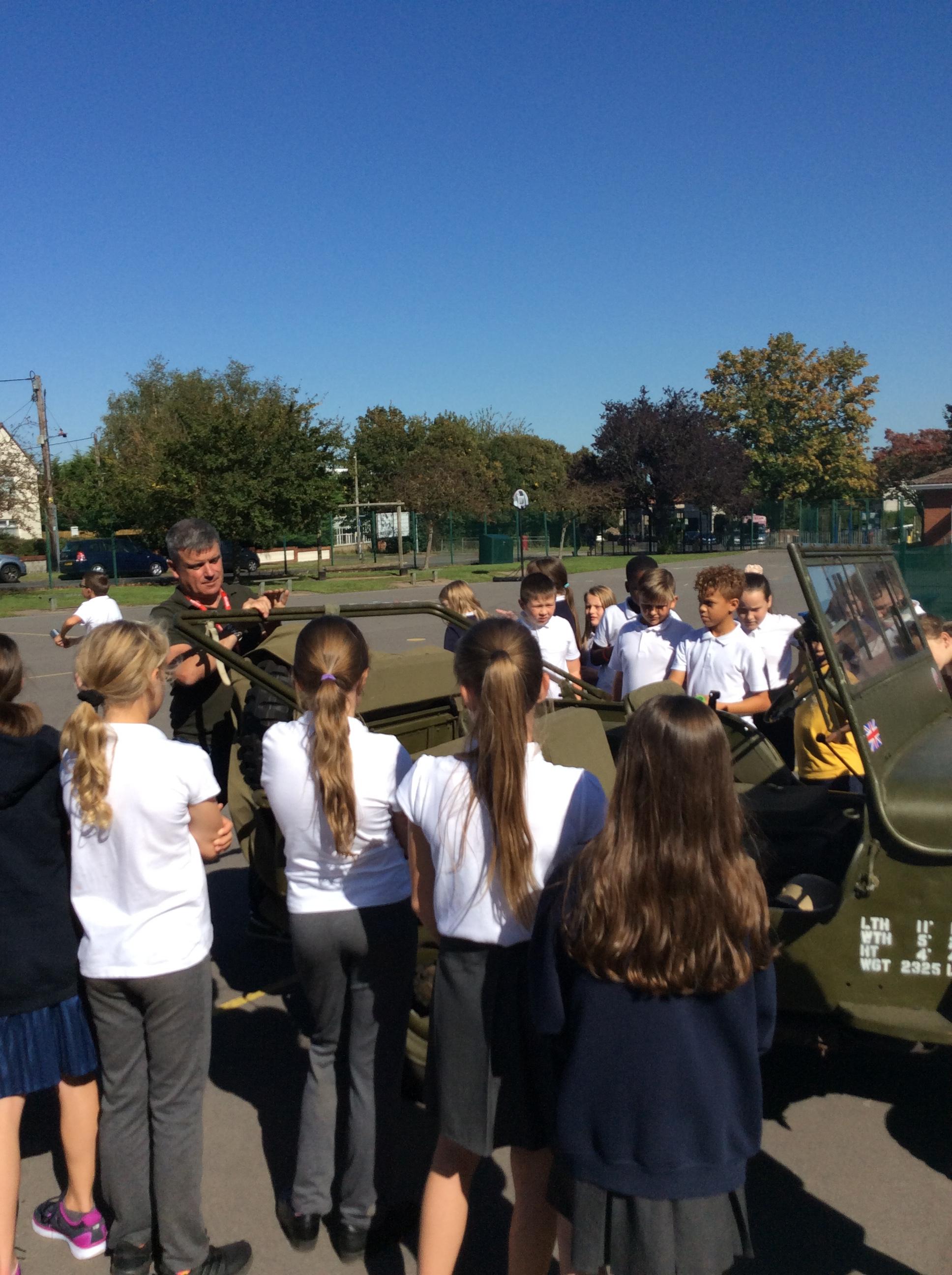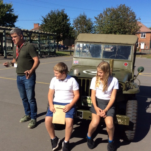 Another amazing day today because Jim visited us in his war jeep. He has fought in more recent wars and was able to share his experiences with us. He has a real passion for WW2 and helped us compare life in WW1 to that in WW2. We loved hearing all of his stories, especially about the parachuting dog and the beer drinking bear! Thank you Jim!
