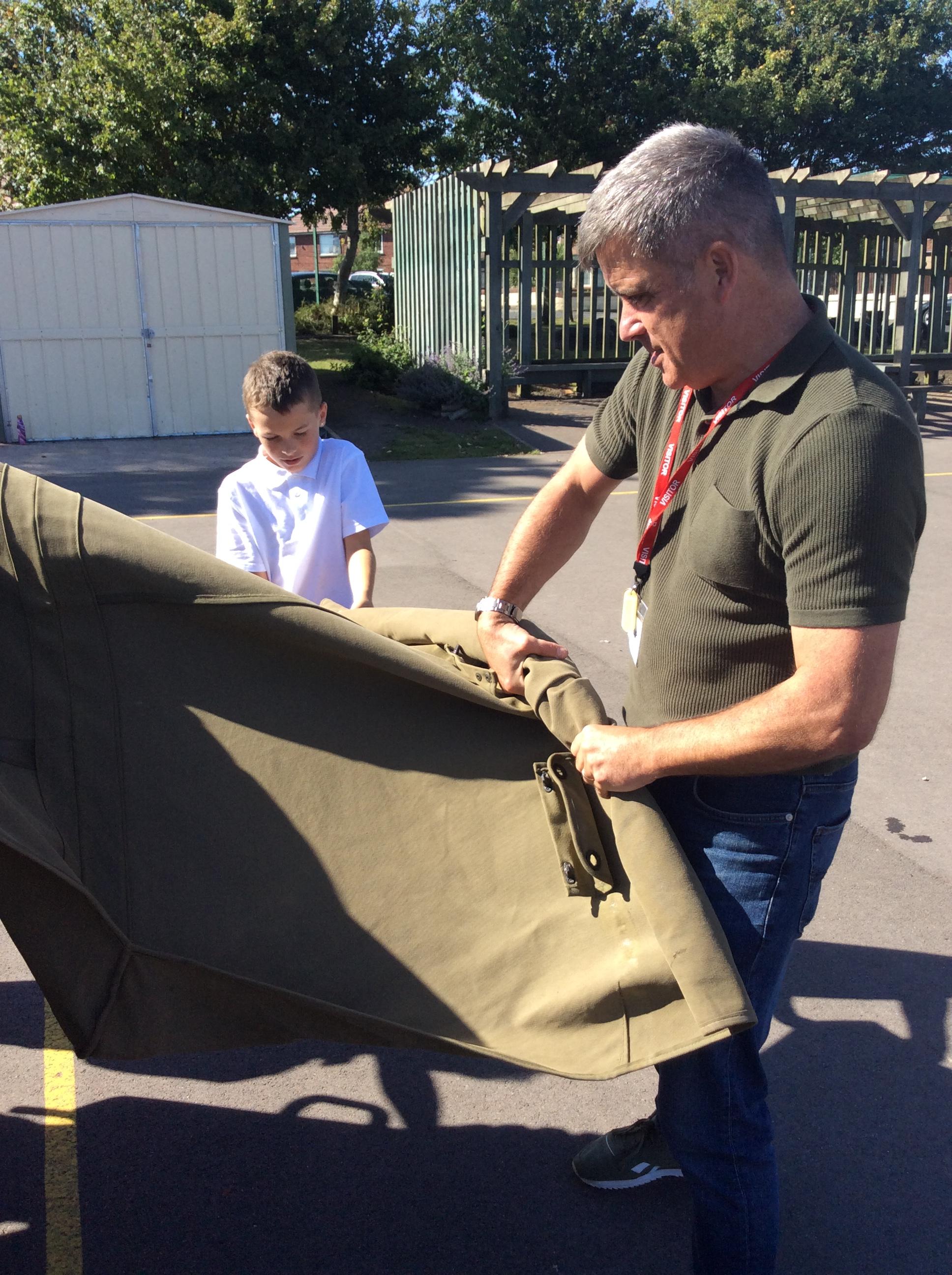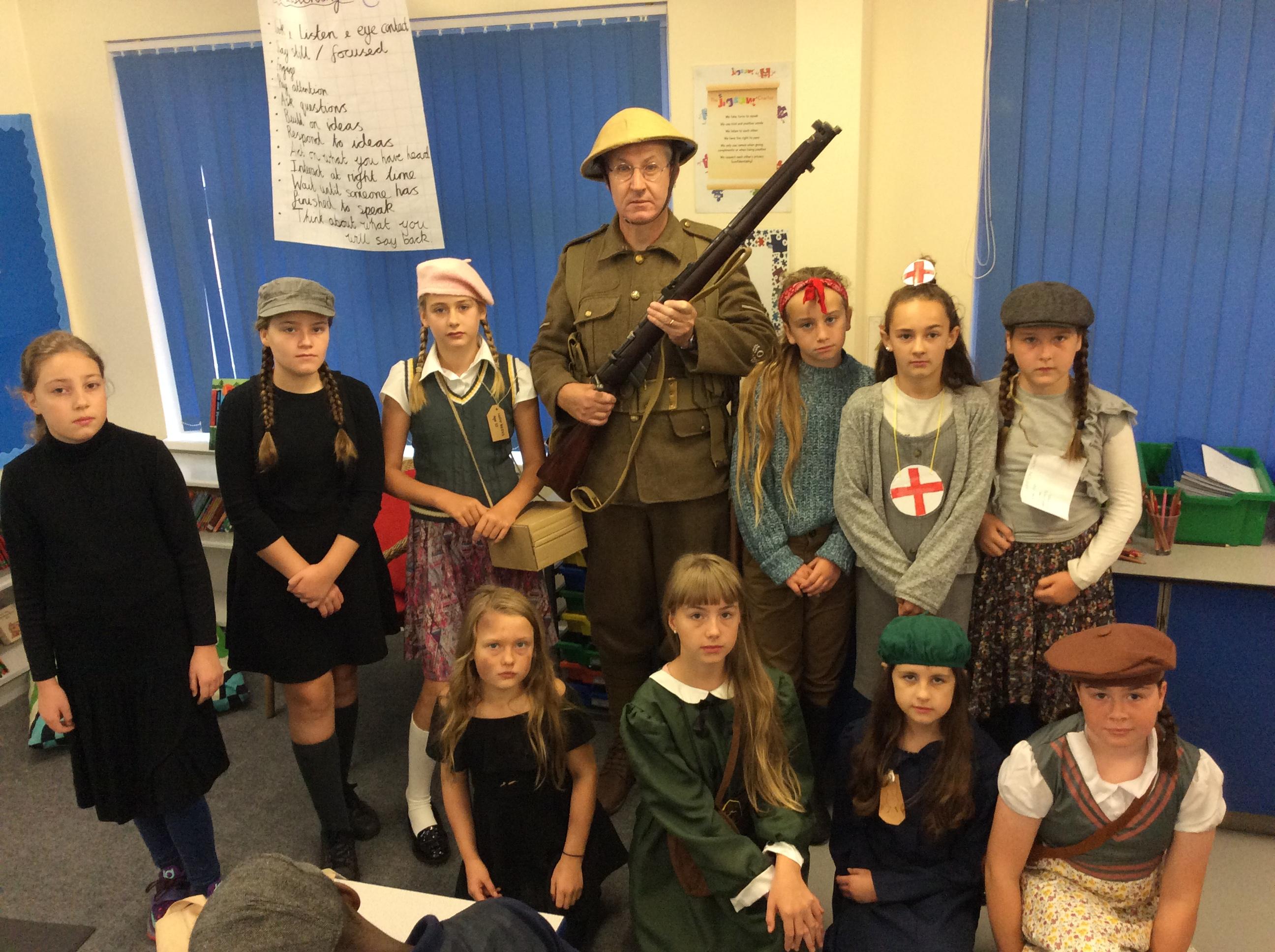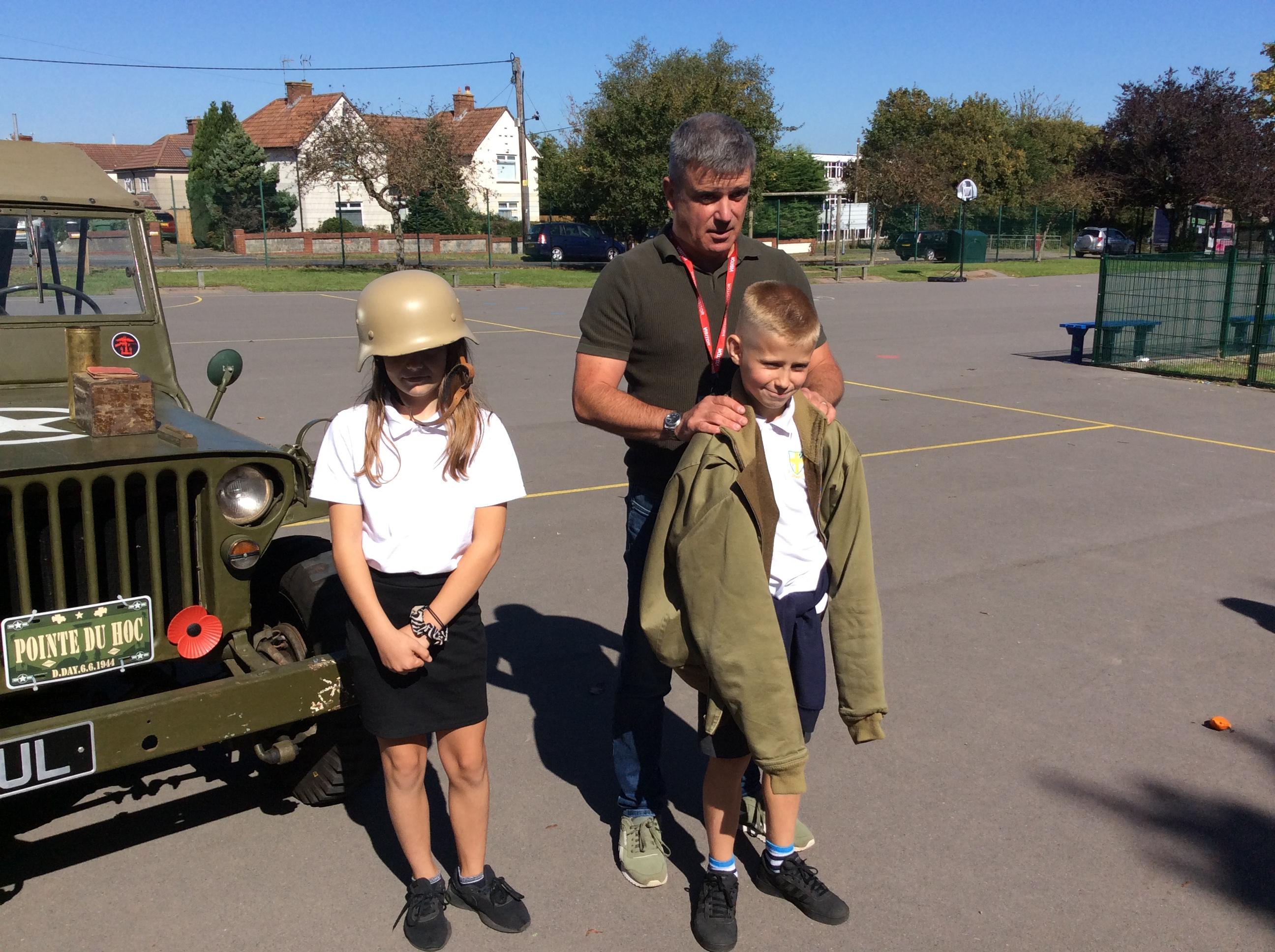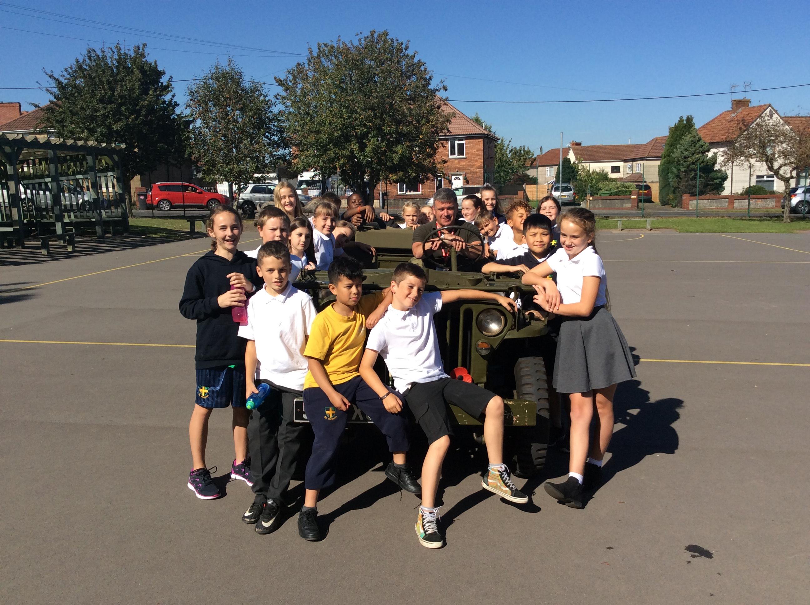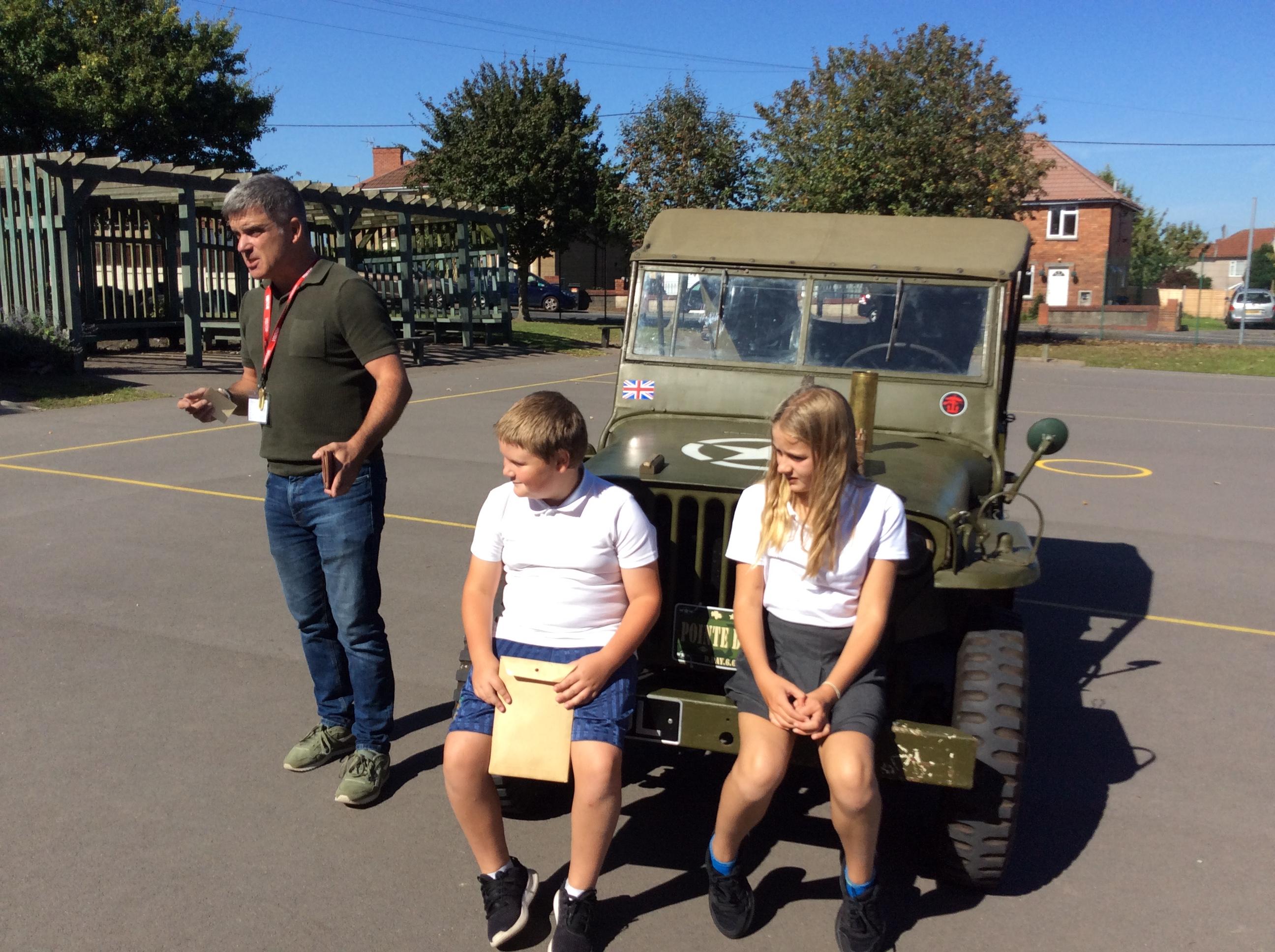 Another amazing day today because Jim visited us in his war jeep. He has fought in more recent wars and was able to share his experiences with us. He has a real passion for WW2 and helped us compare life in WW1 to that in WW2. We loved hearing all of his stories, especially about the parachuting dog and the beer drinking bear! Thank you Jim!
