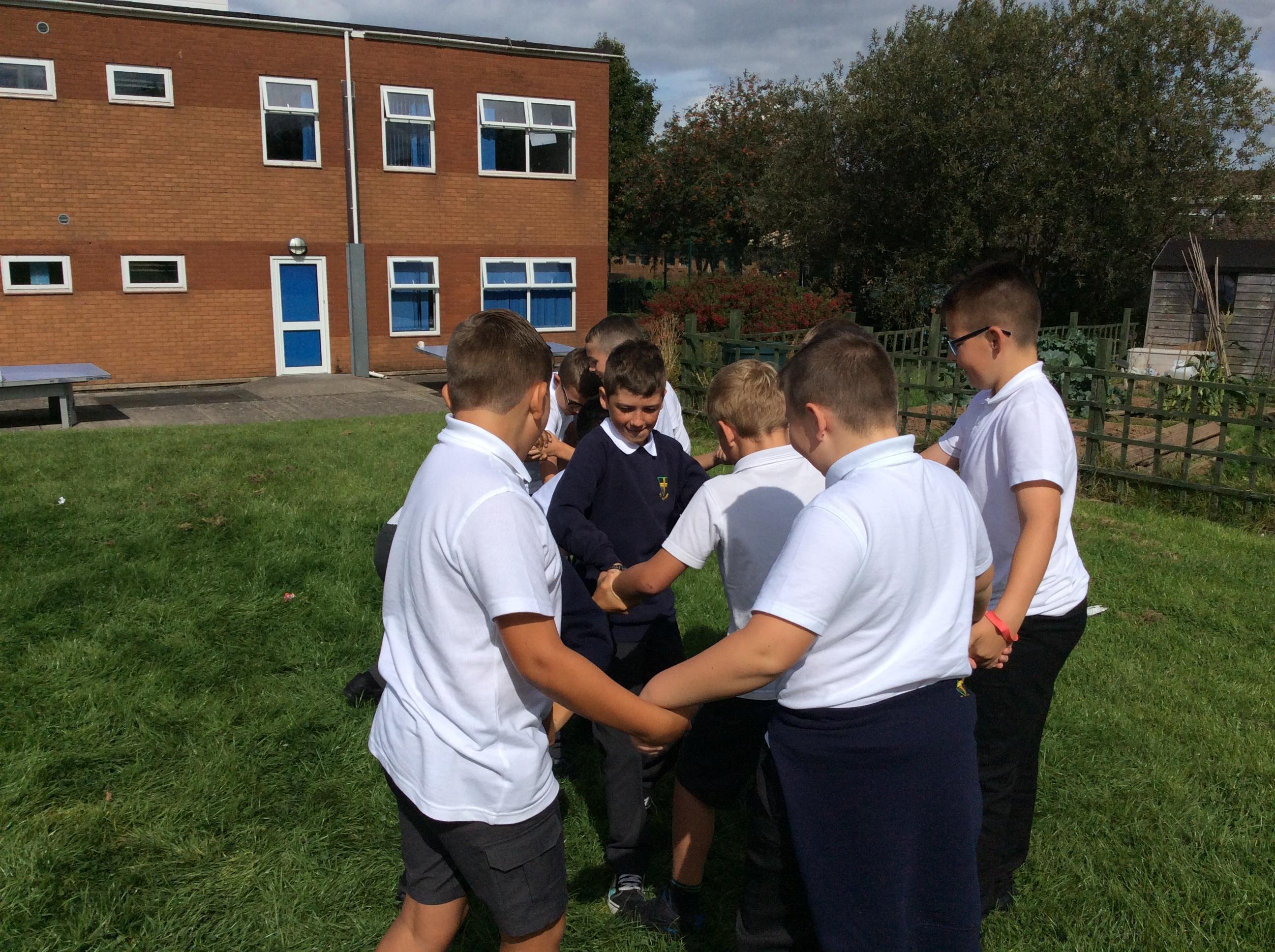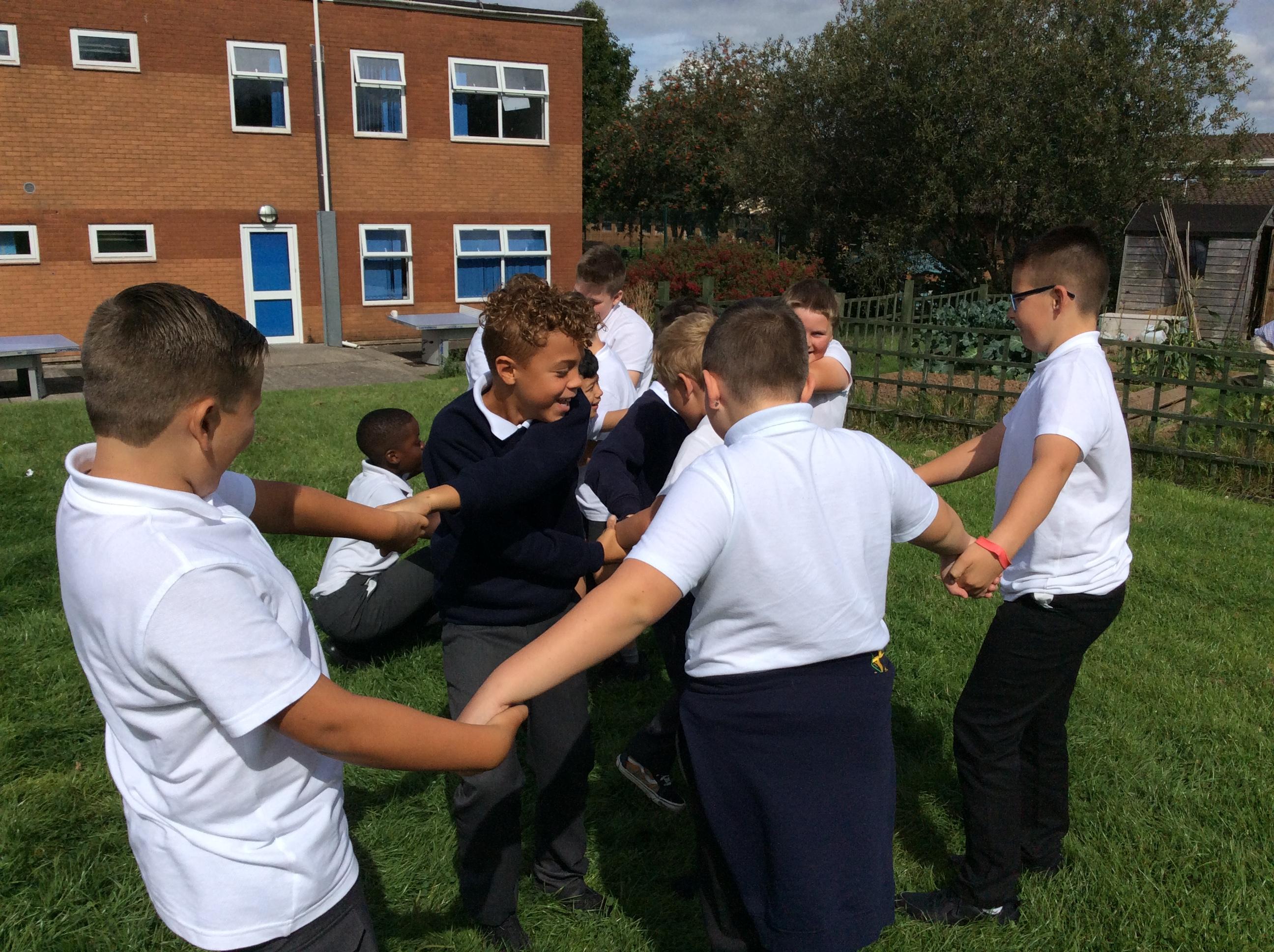 We made a human knot then used all of our Purple Powers to untie ourselves by not letting go!