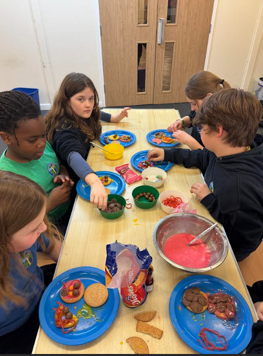Year 6 are lucky enough to have a club that is exclusive to them and we love it! This week, we decorated biscuits using strawberry laces, malteasers and buttons. Miss Keeble helped us to make some water icing and we used this to stick our toppings on. It was very messy but very fun!