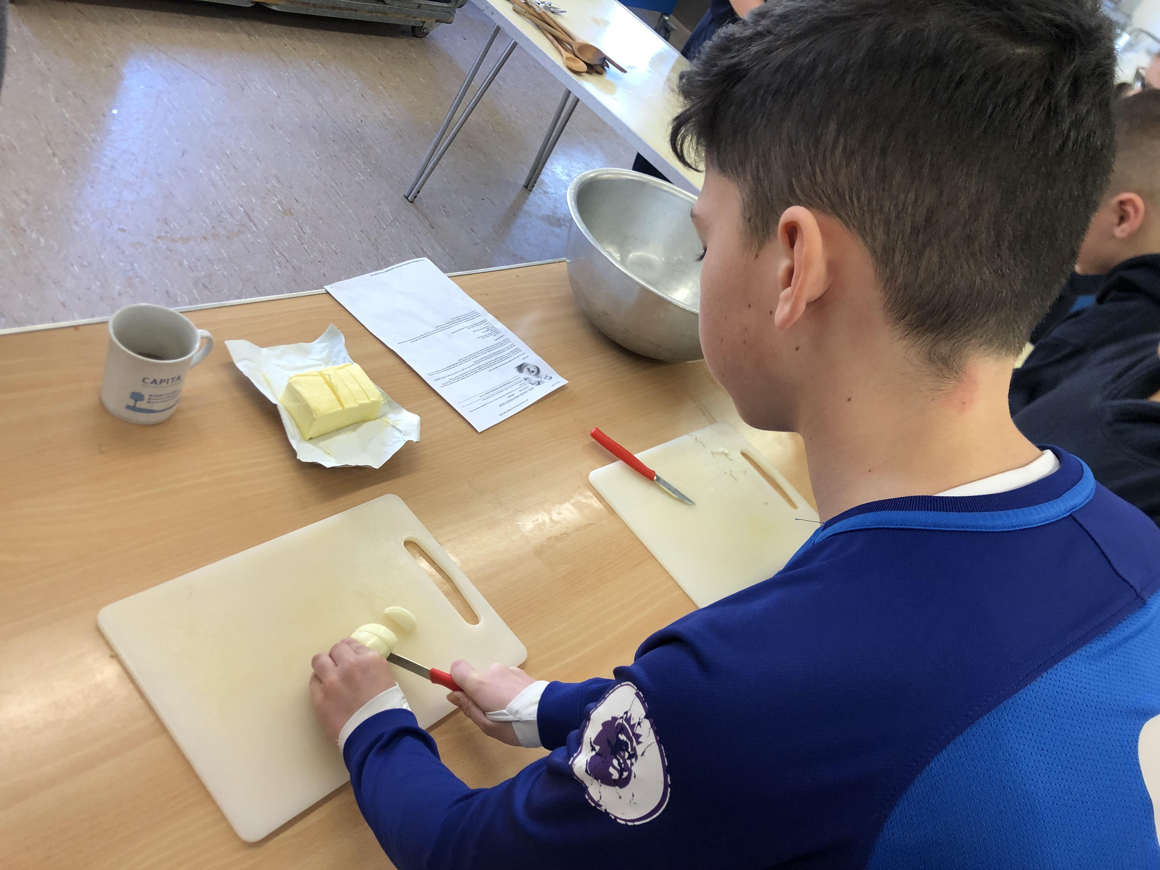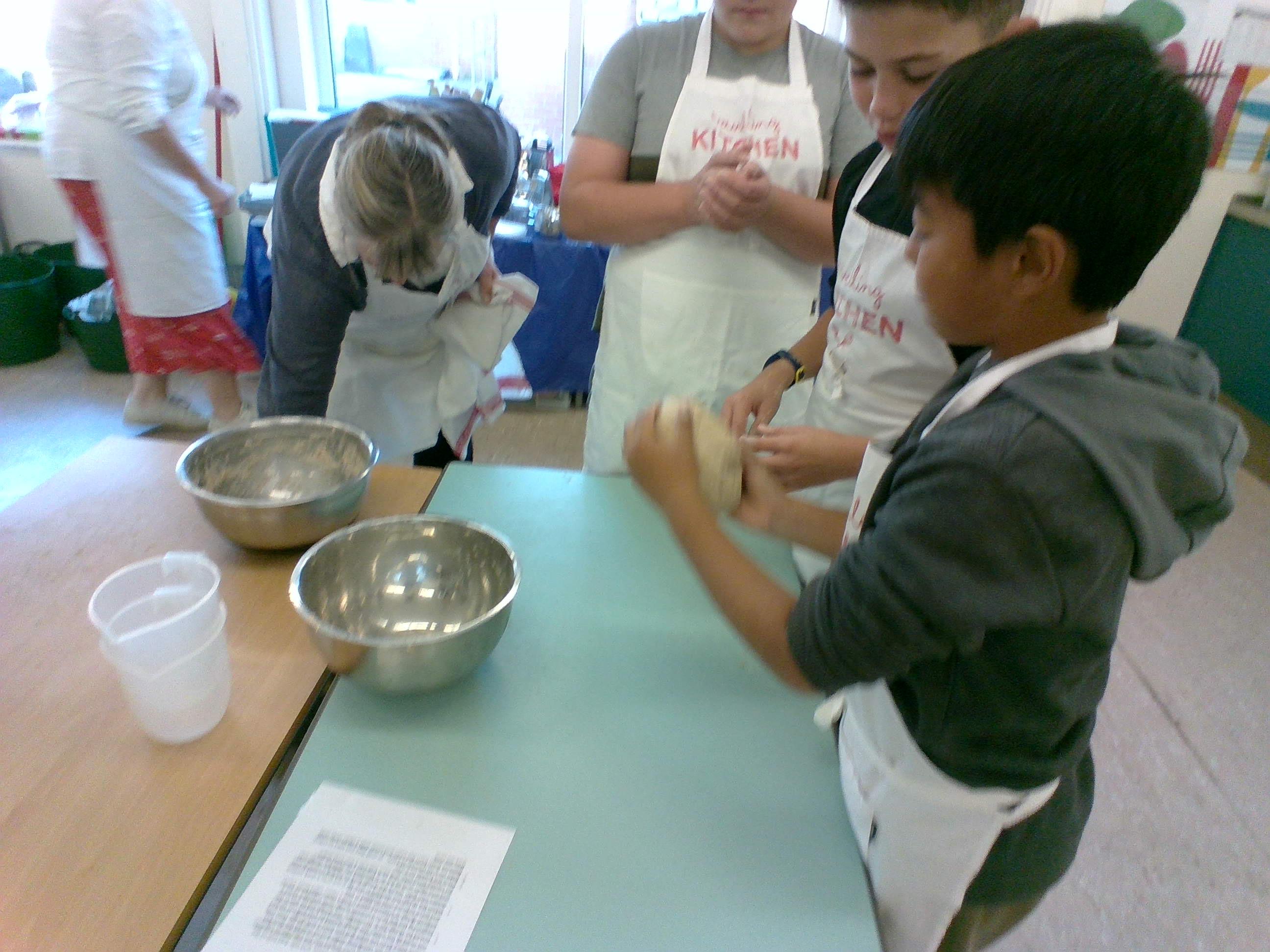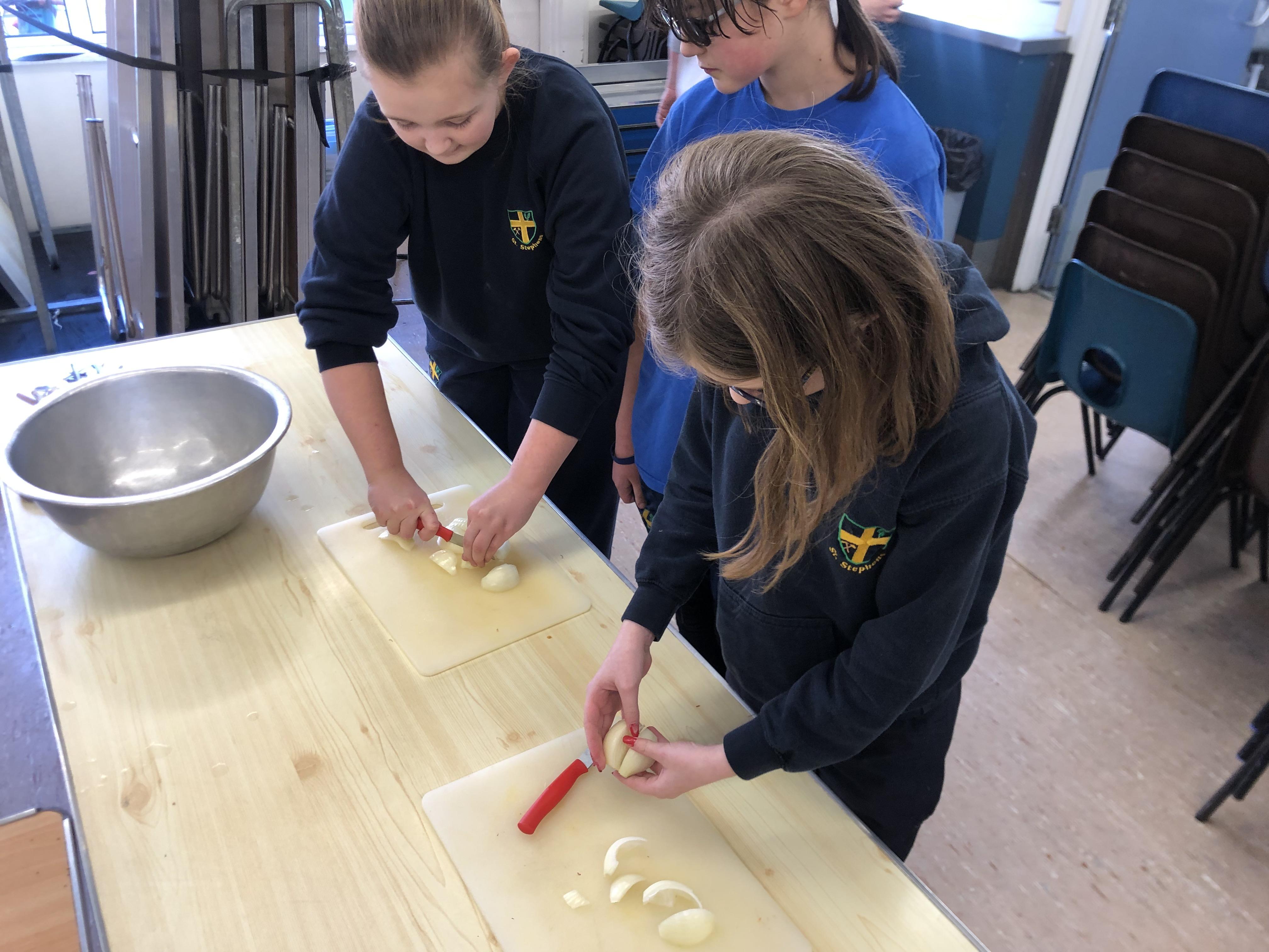 Next, we split into groups. One group was led by our resident gardener - Mr Evans. He taught us about how our food waste at St. Stephen's actually helps us to grow new produce which is then cooked by the school kitchen! In the other session, we were joined by visitors from The Travelling Kitchen who taught us how to make pear and cinnamon cake, dough for flatbreads and we prepared vegetables for the dhansak.