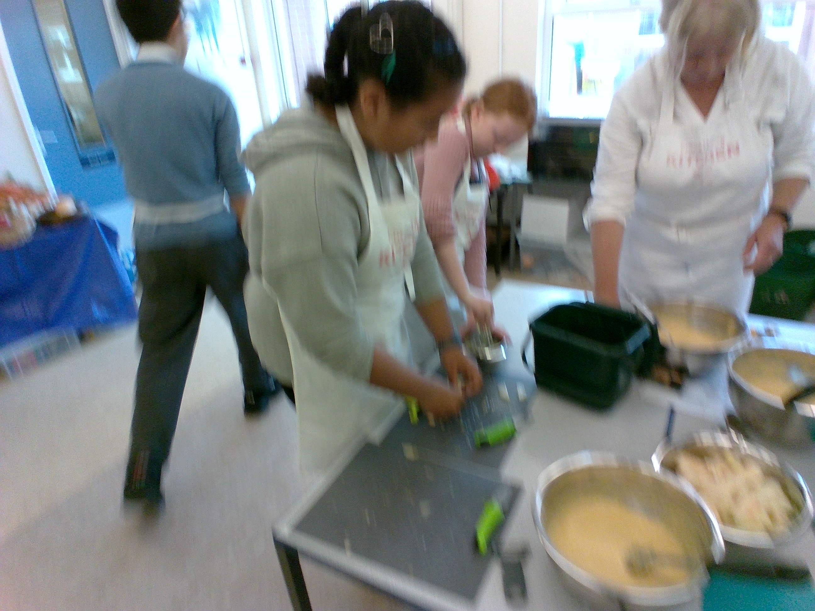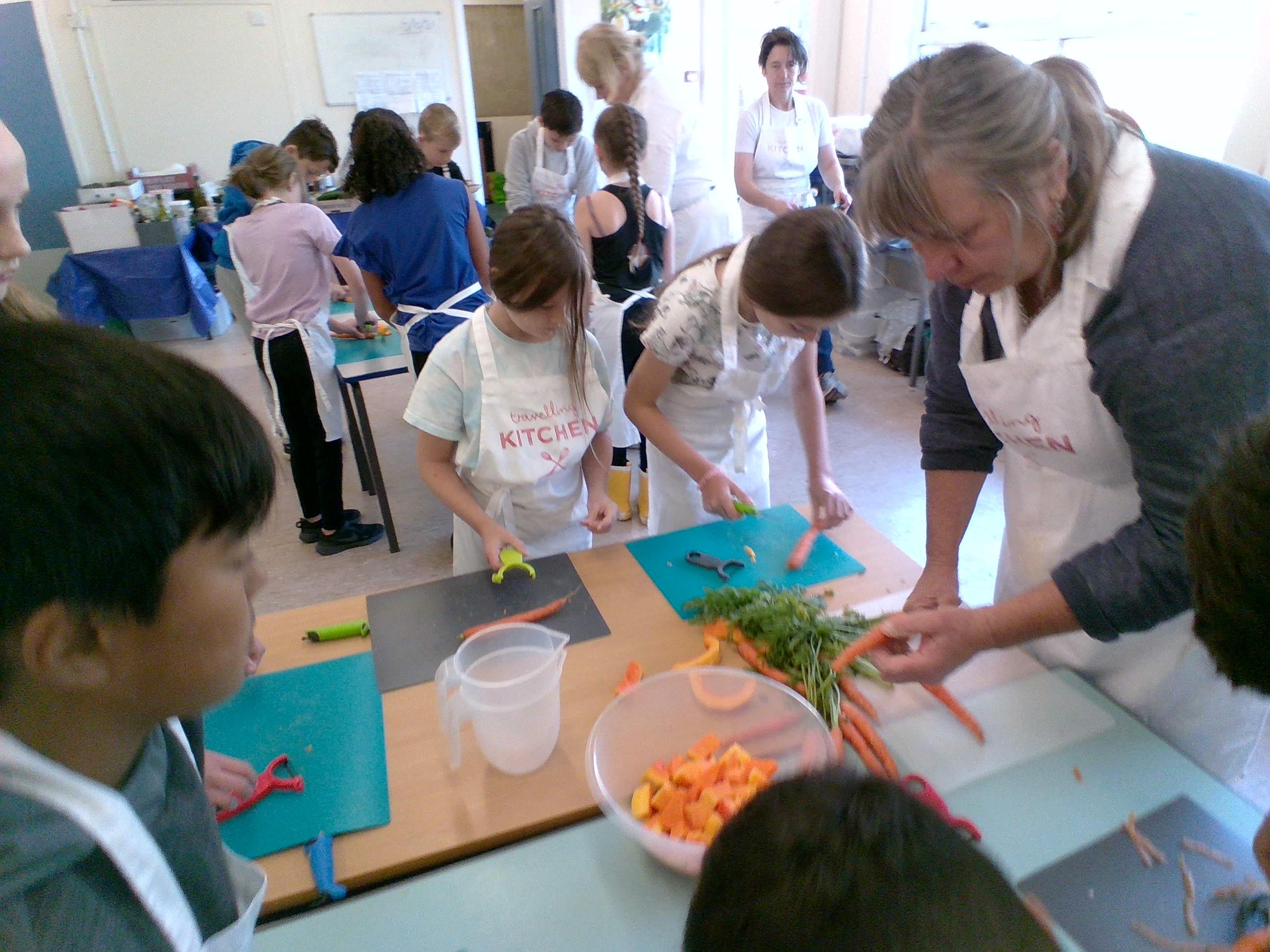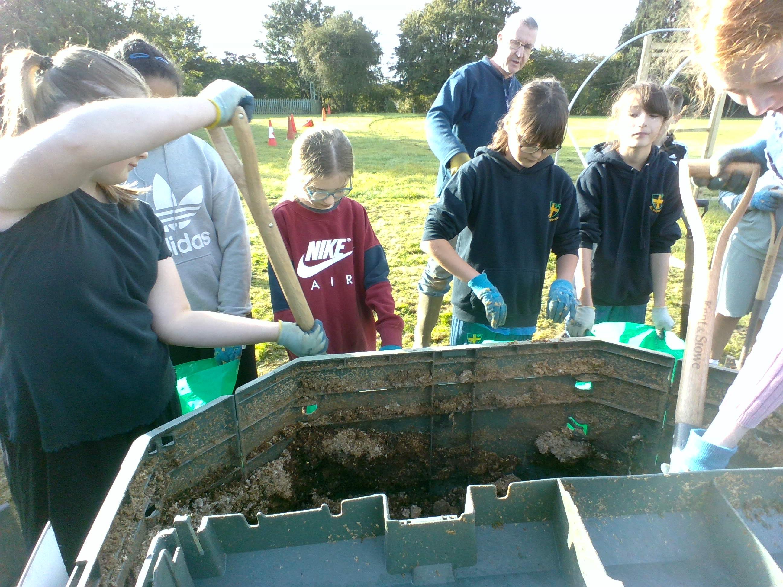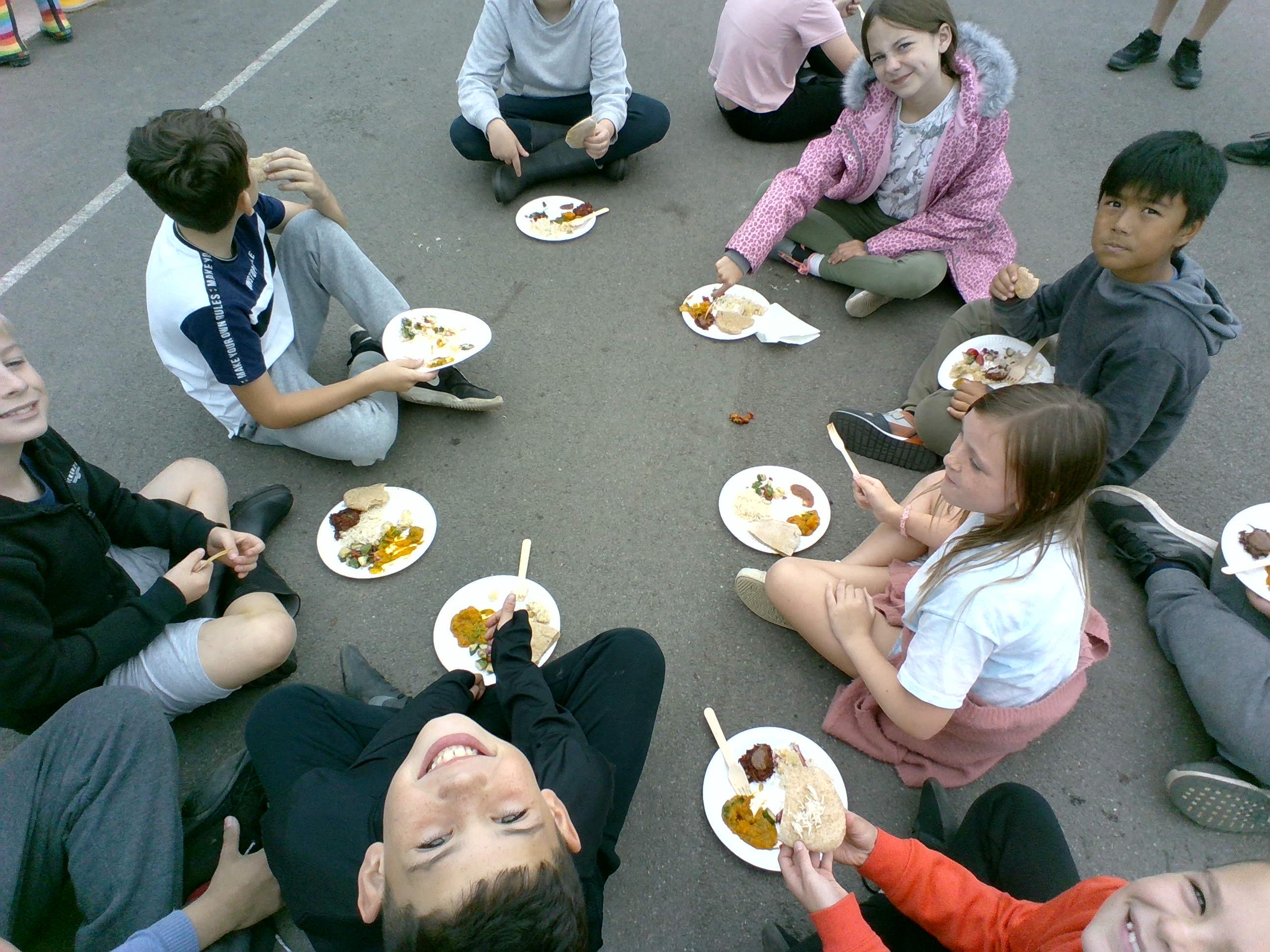 Next, we split into groups. One group was led by our resident gardener - Mr Evans. He taught us about how our food waste at St. Stephen's actually helps us to grow new produce which is then cooked by the school kitchen! In the other session, we were joined by visitors from The Travelling Kitchen who taught us how to make pear and cinnamon cake, dough for flatbreads and we prepared vegetables for the dhansak.