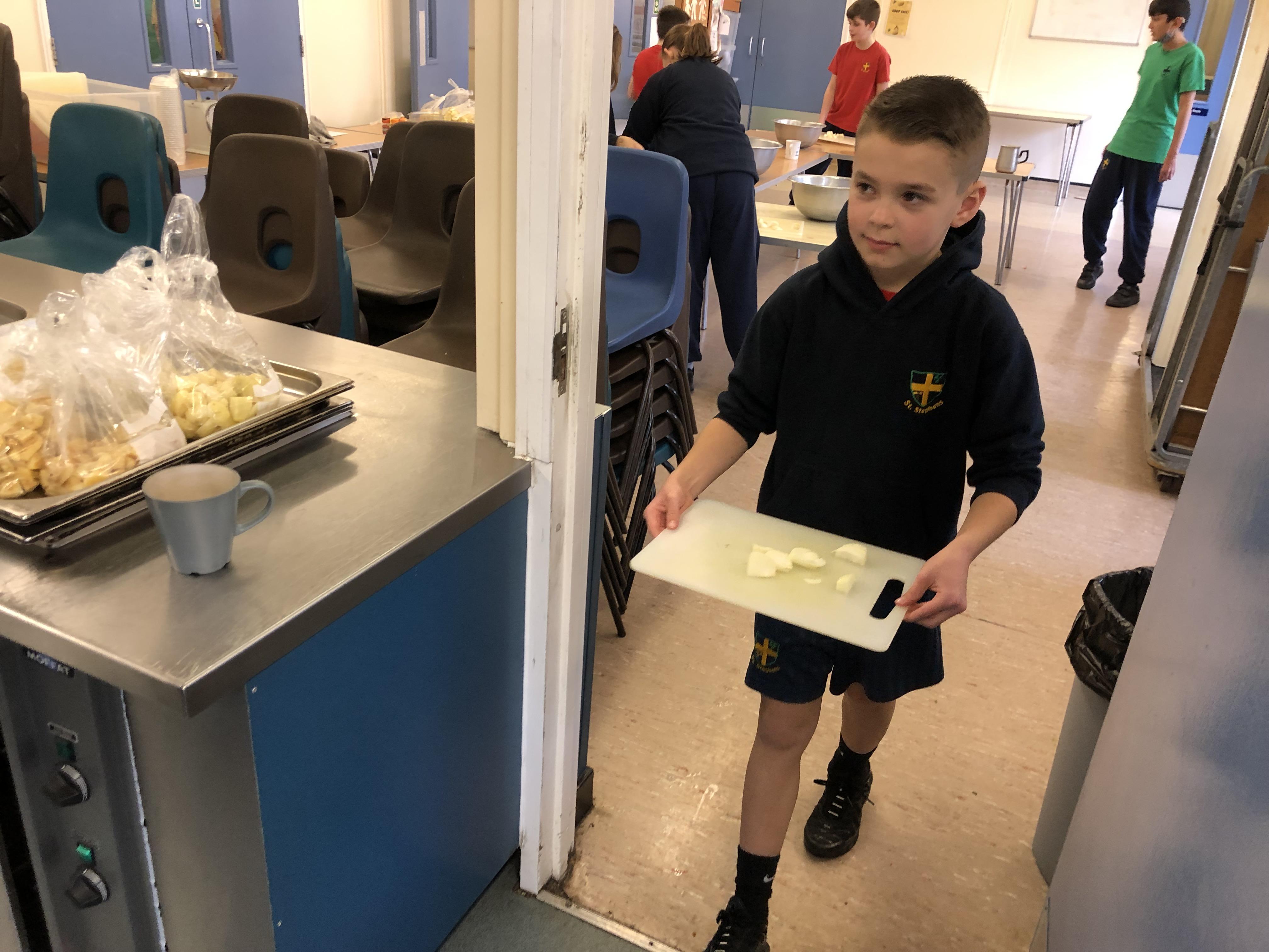 We spent our afternoons this week helping to prepare and cook some delicious soup for our sale to raise money for the homeless. We harvested vegetables with Mr Evans in the allotment the week before then chopped them up and cooked our soup this week. We made two delicious flavours, leek and potato and spicy parsnip! Our soup sale was a success as we raised over £100 for Shelter, the UK's leading homeless charity.