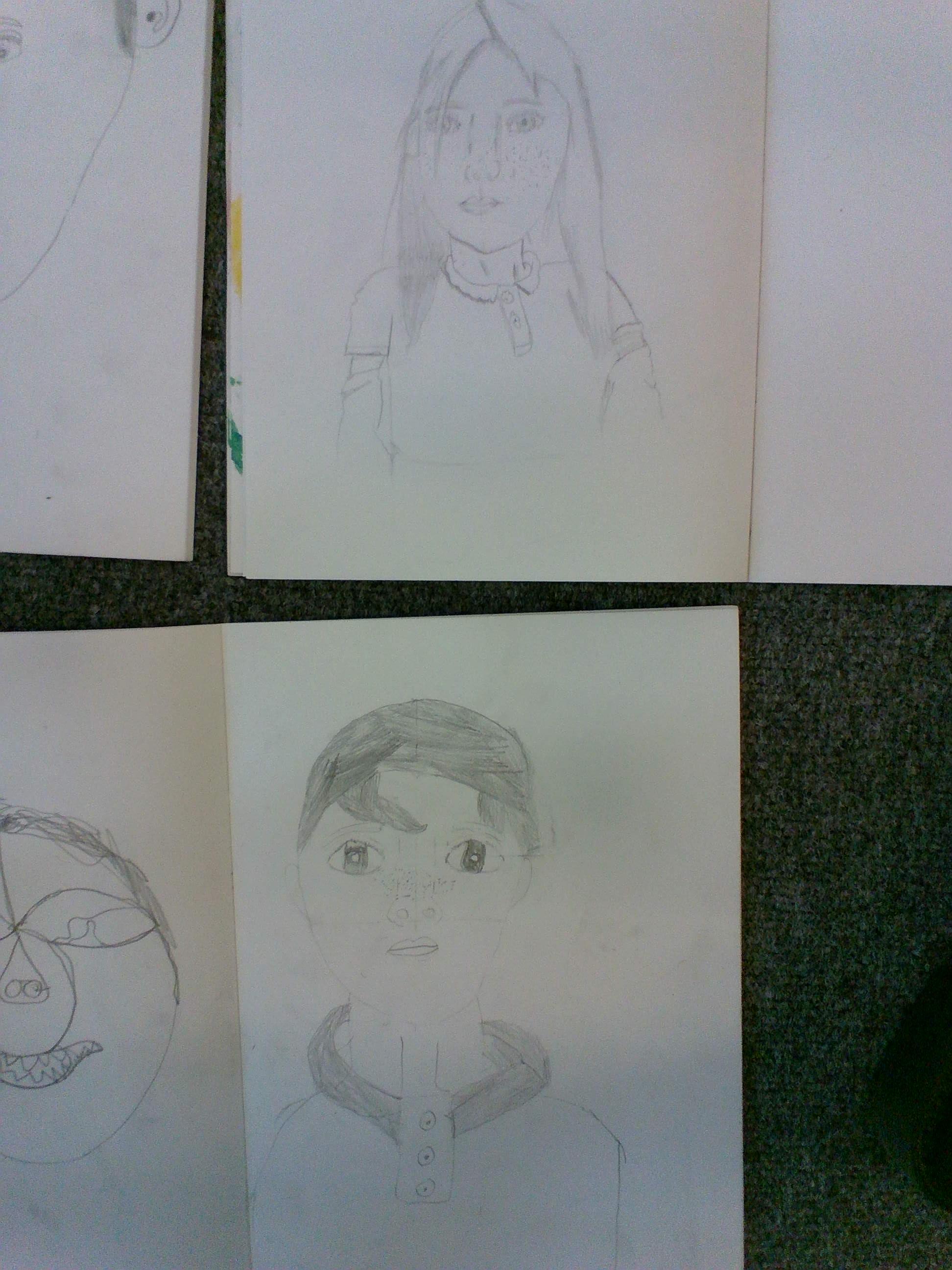 We drew self portraits in our sketchbooks, following step by step instructions. We found that by focusing on one detail at a time helped us with our drawings - the results speak for themselves! Have a look at our creations.