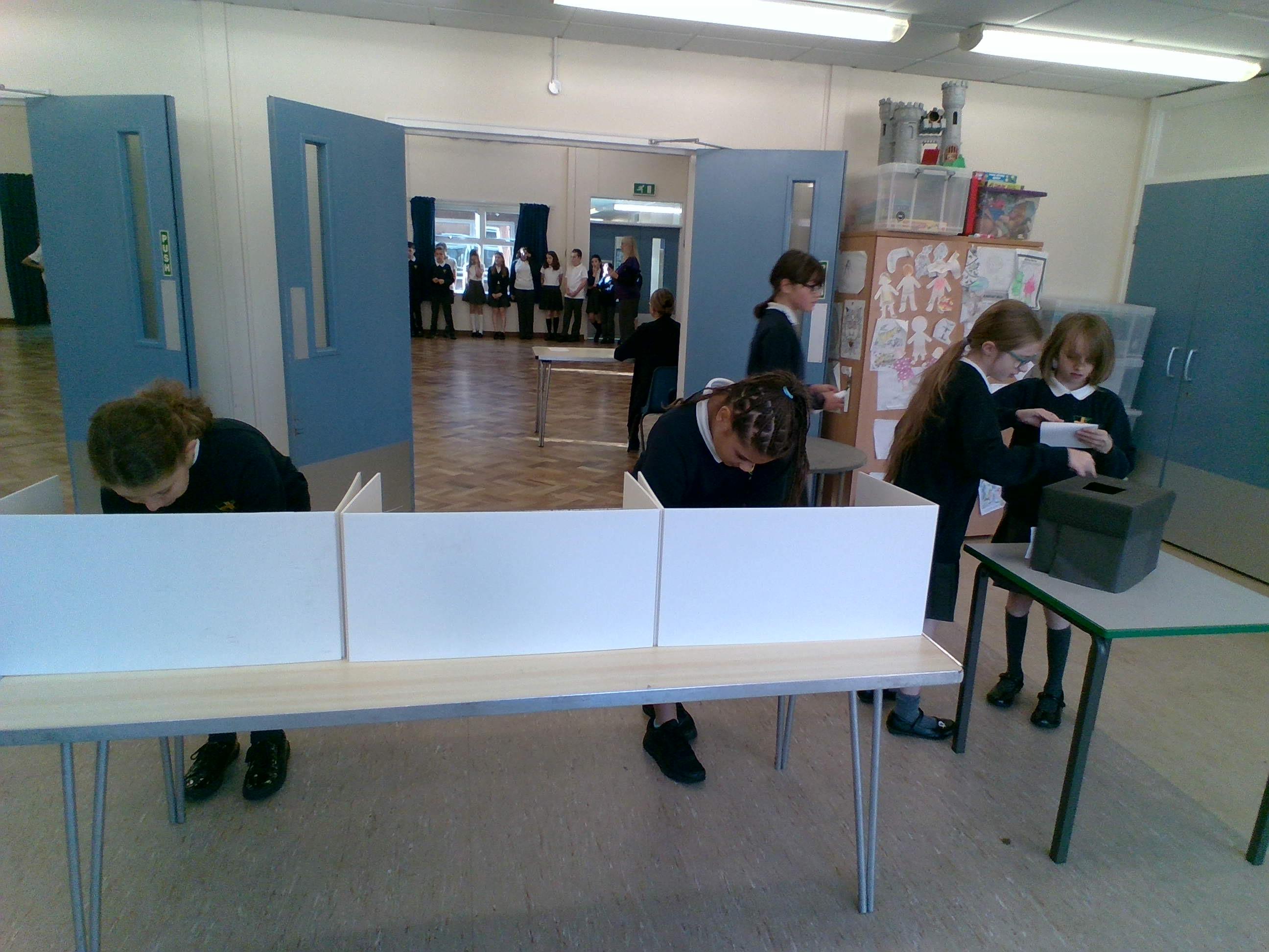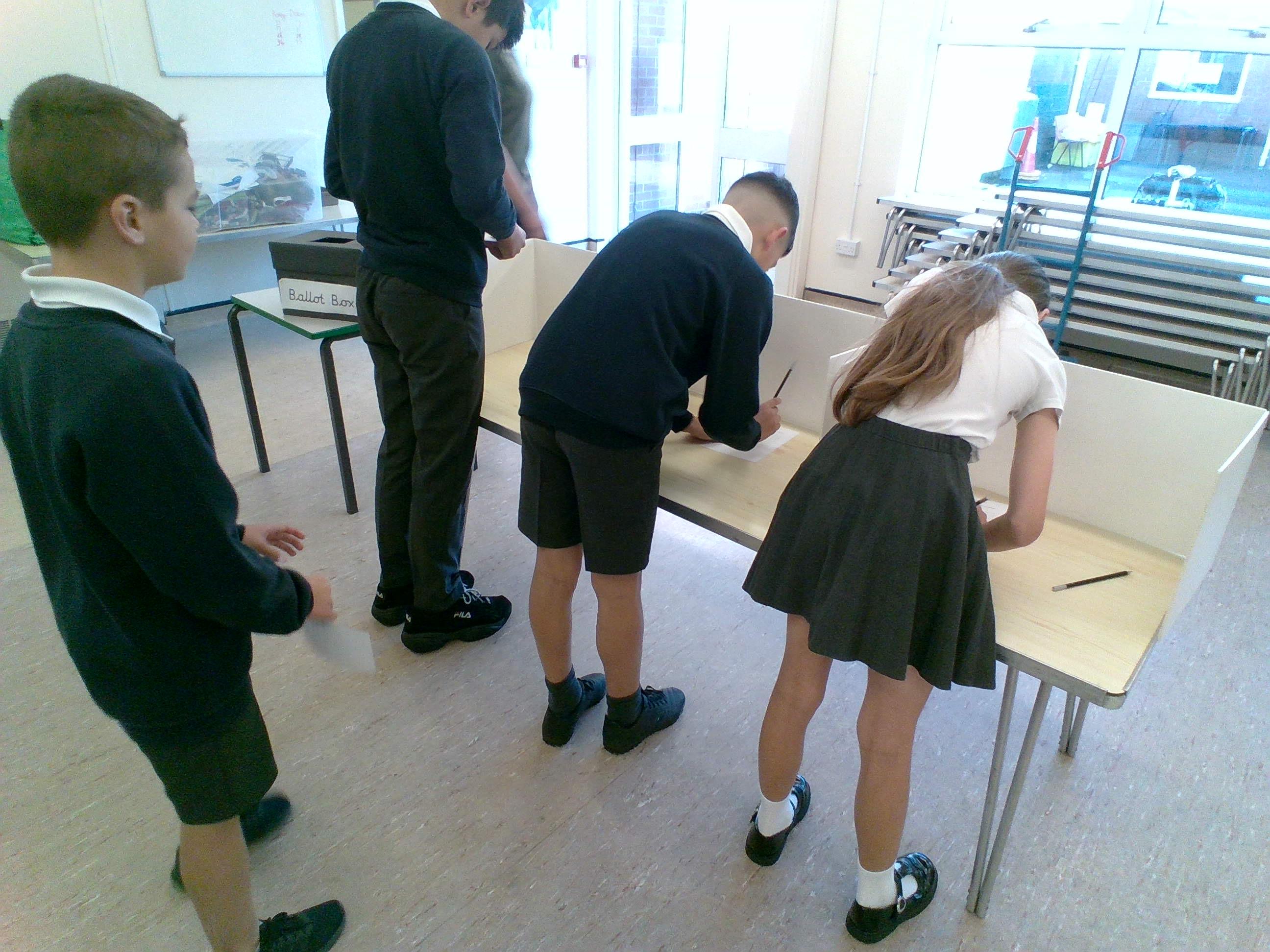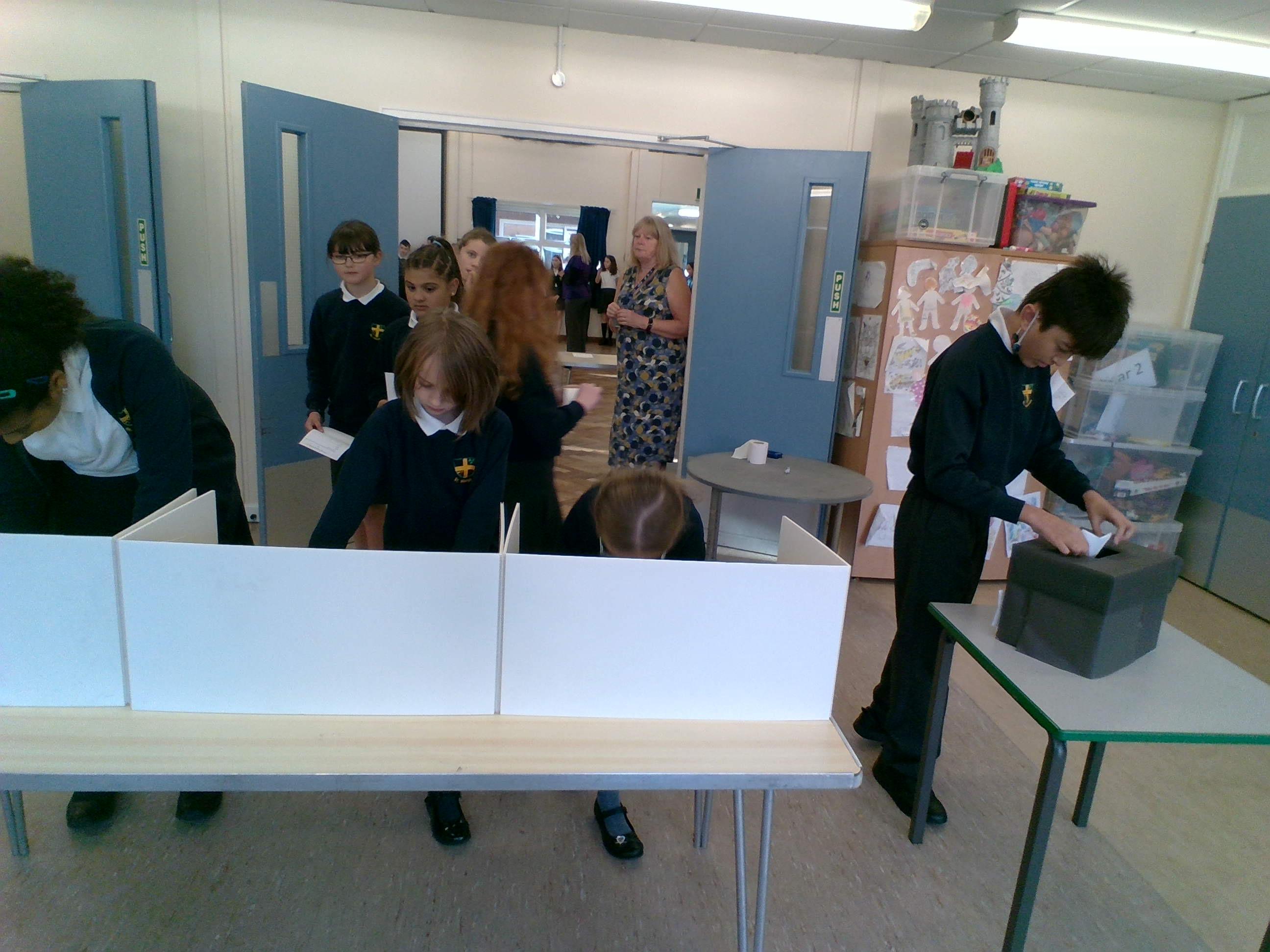 We voted as a class using ballots at a polling station for two class members to represent us at Voice of the Change Makers. These children will speak for us as a class to make sure our views are heard by the adults in the school.