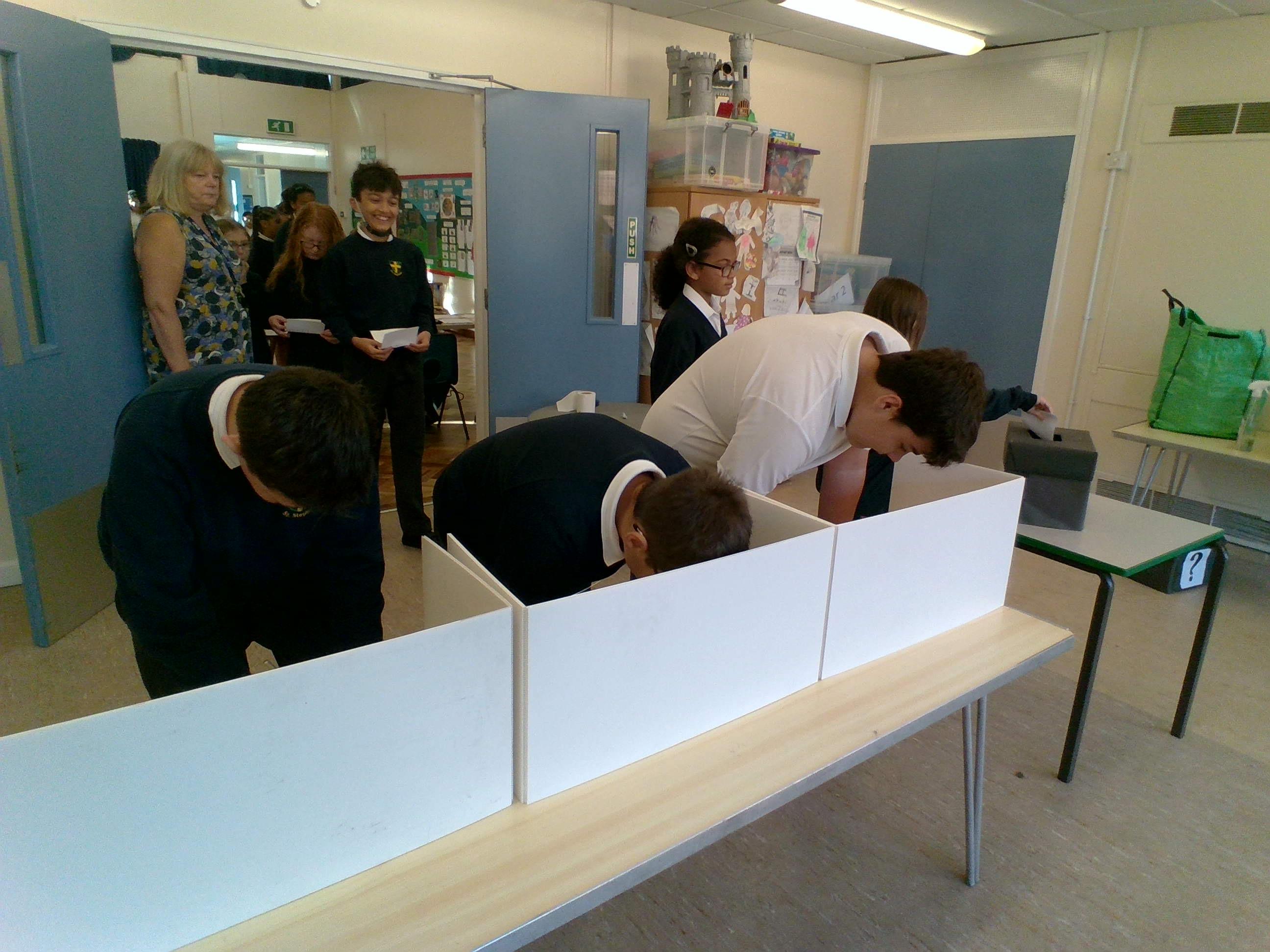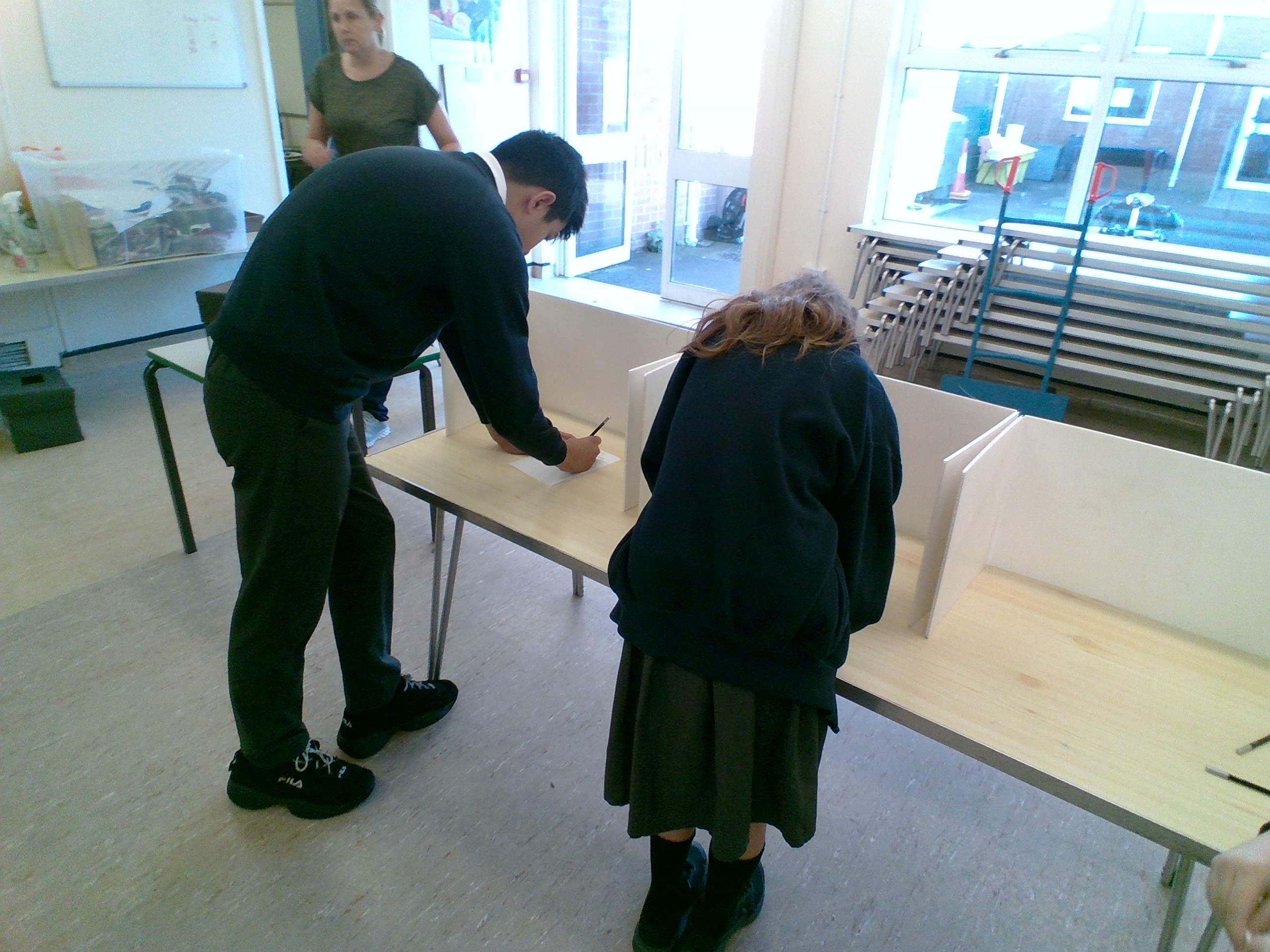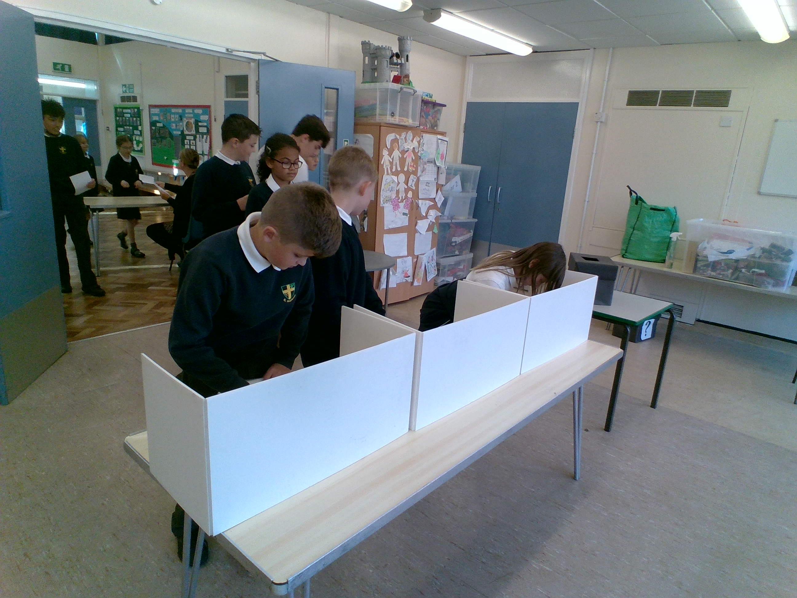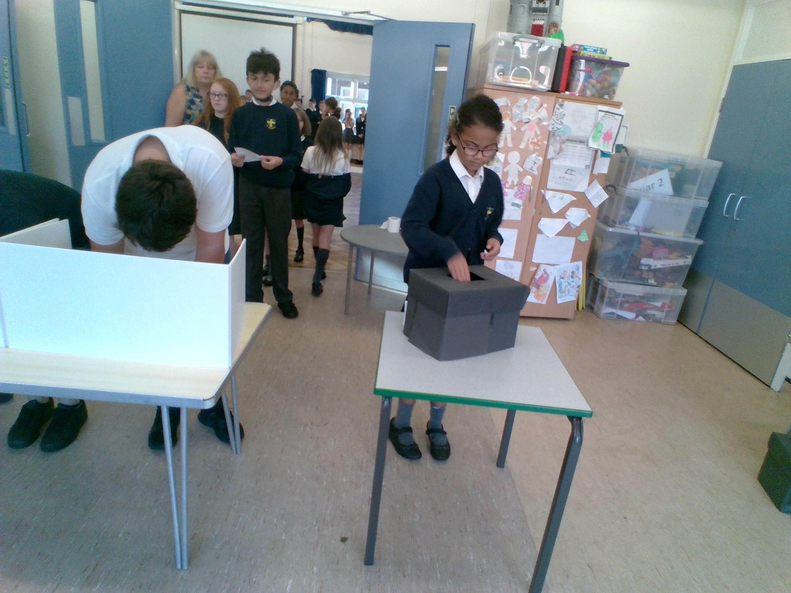 We voted as a class using ballots at a polling station for two class members to represent us at Voice of the Change Makers. These children will speak for us as a class to make sure our views are heard by the adults in the school.