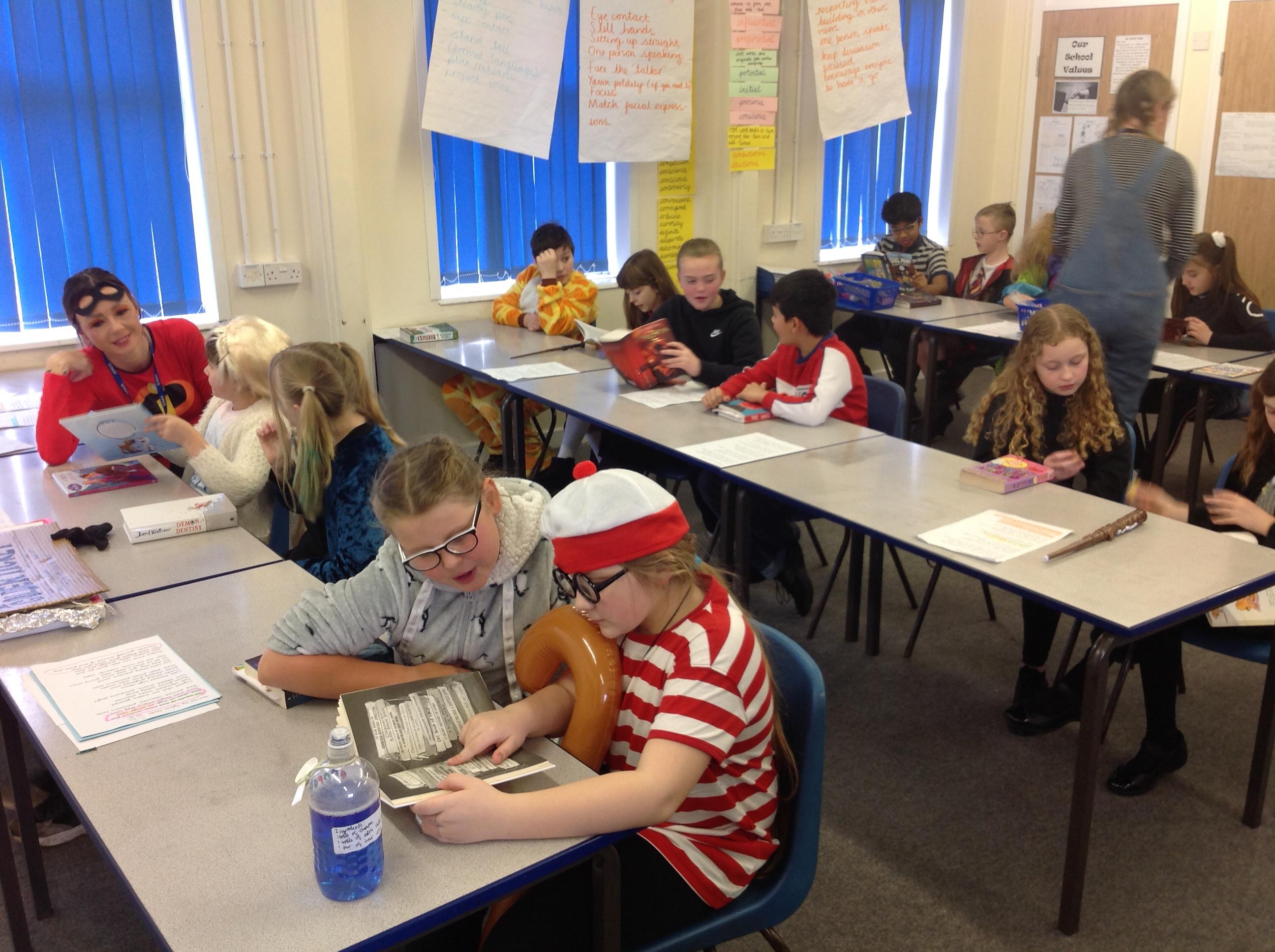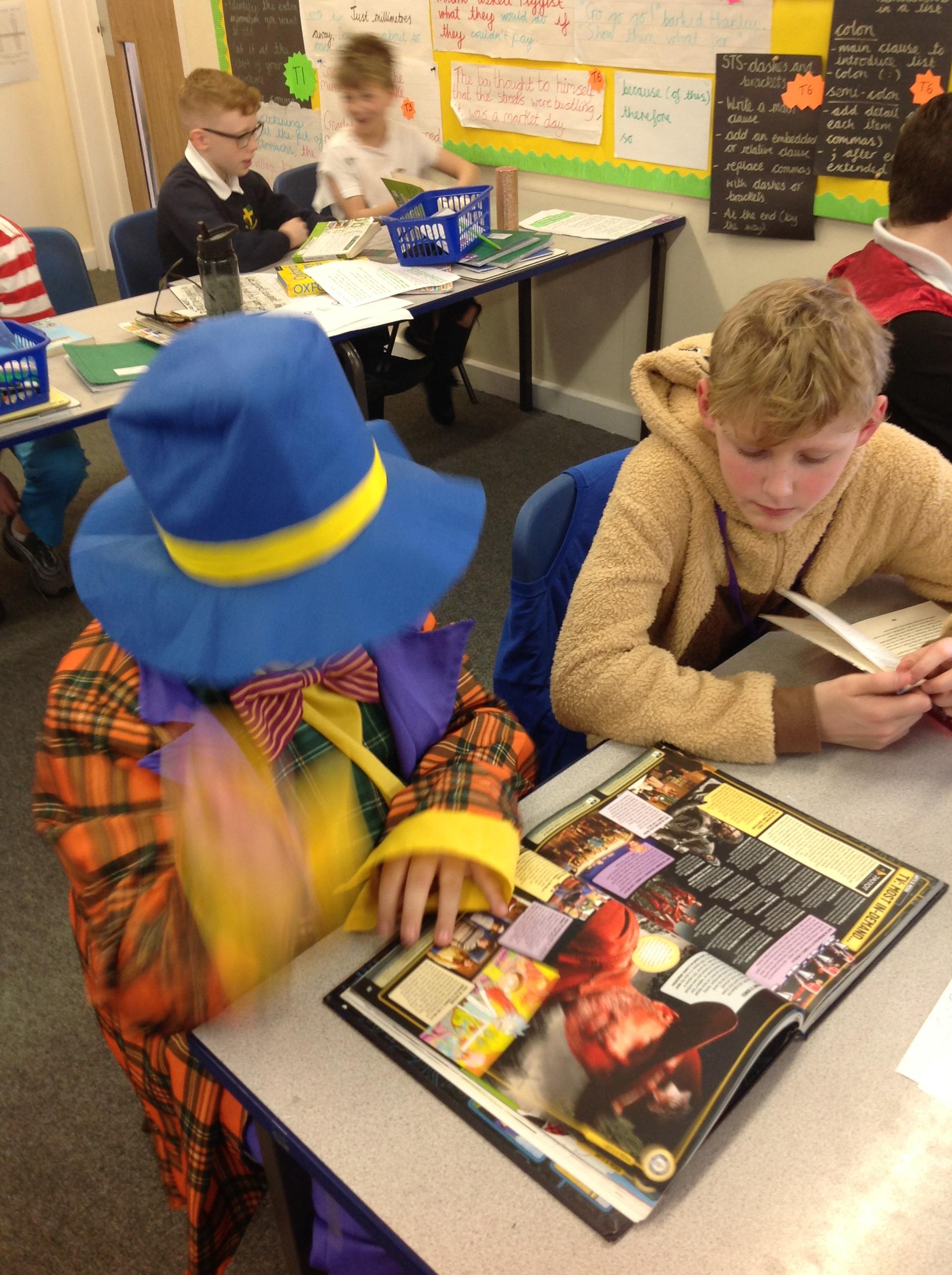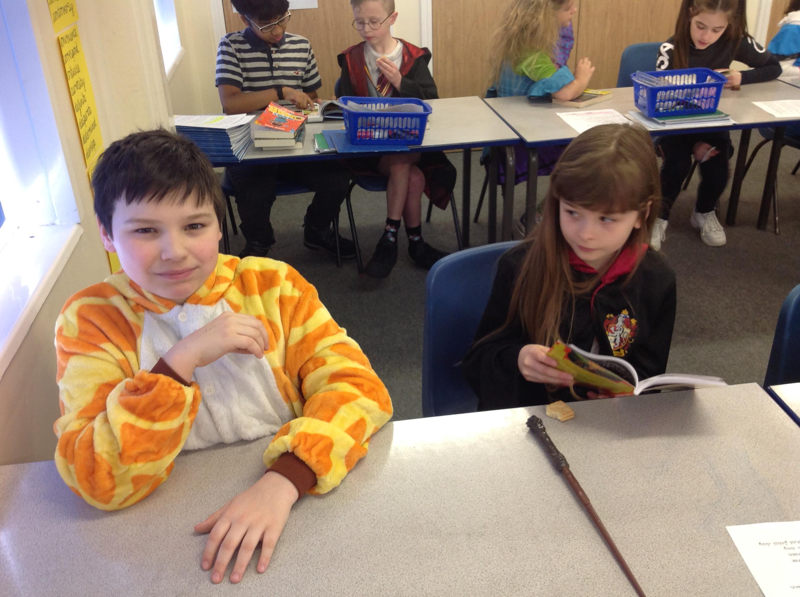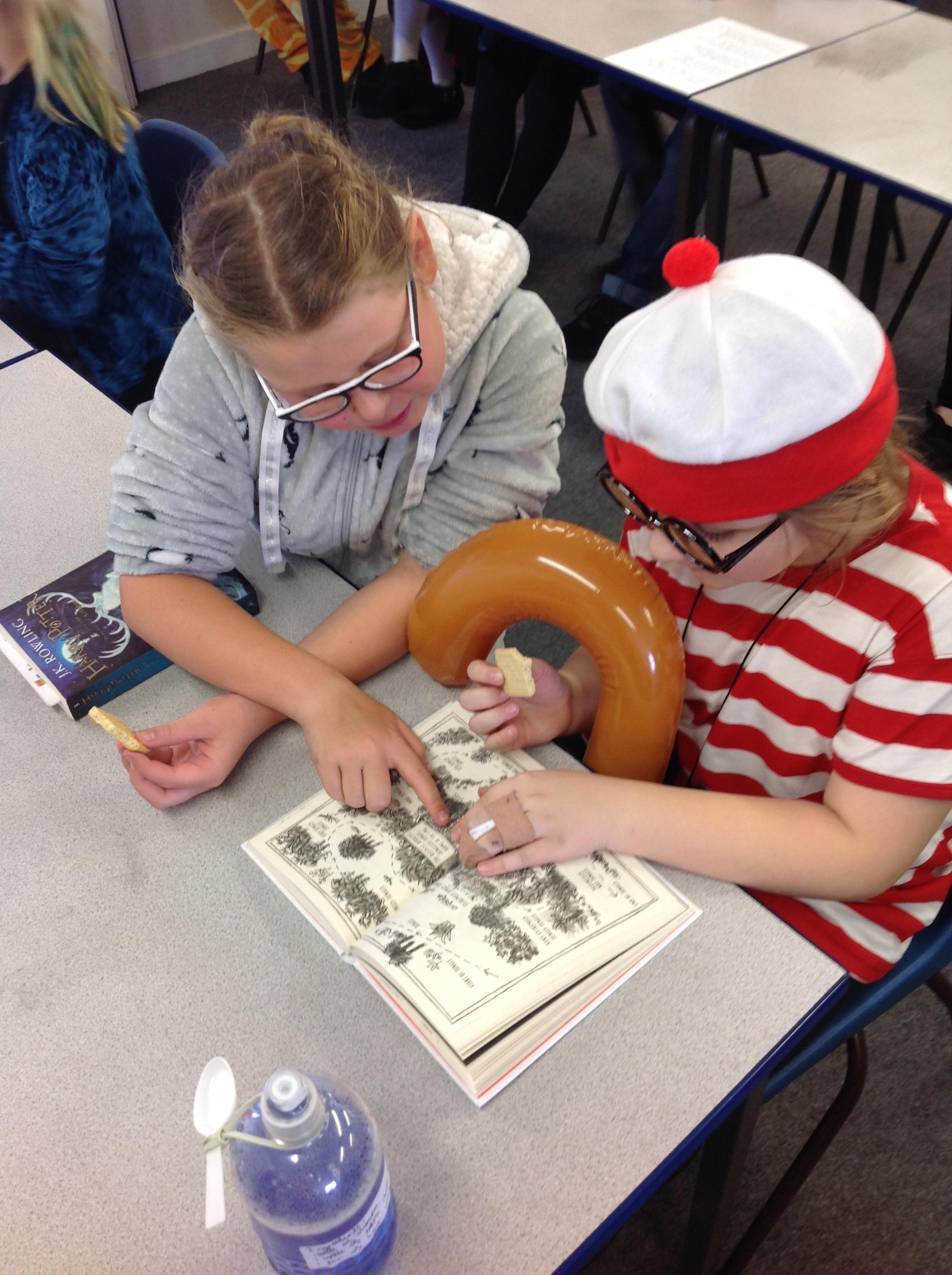 In Week 2 of Term 4, we celebrated World Book Day across our school. We really enjoyed sharing a book and a biscuit with Year 4 while we read our favourite part or described why we liked it. During the day, we learnt a poem called 'Warned' by Sylvia Stults. It was about our climate and environment and linked to our SDGs so that our world can have a brighter future. We really enjoyed making props to accompany our performance and we used our oracy skills when we presented the poem to the whole school.