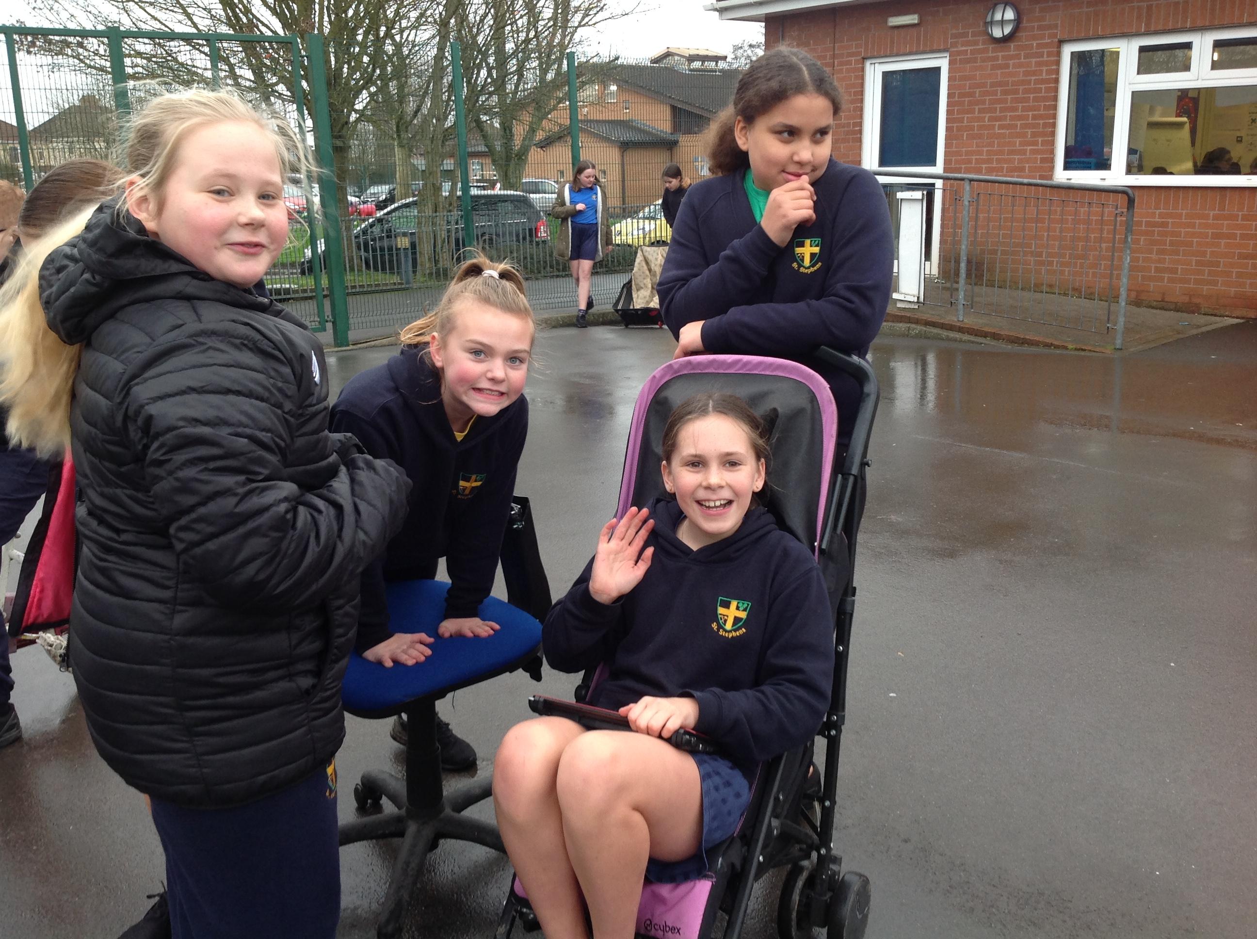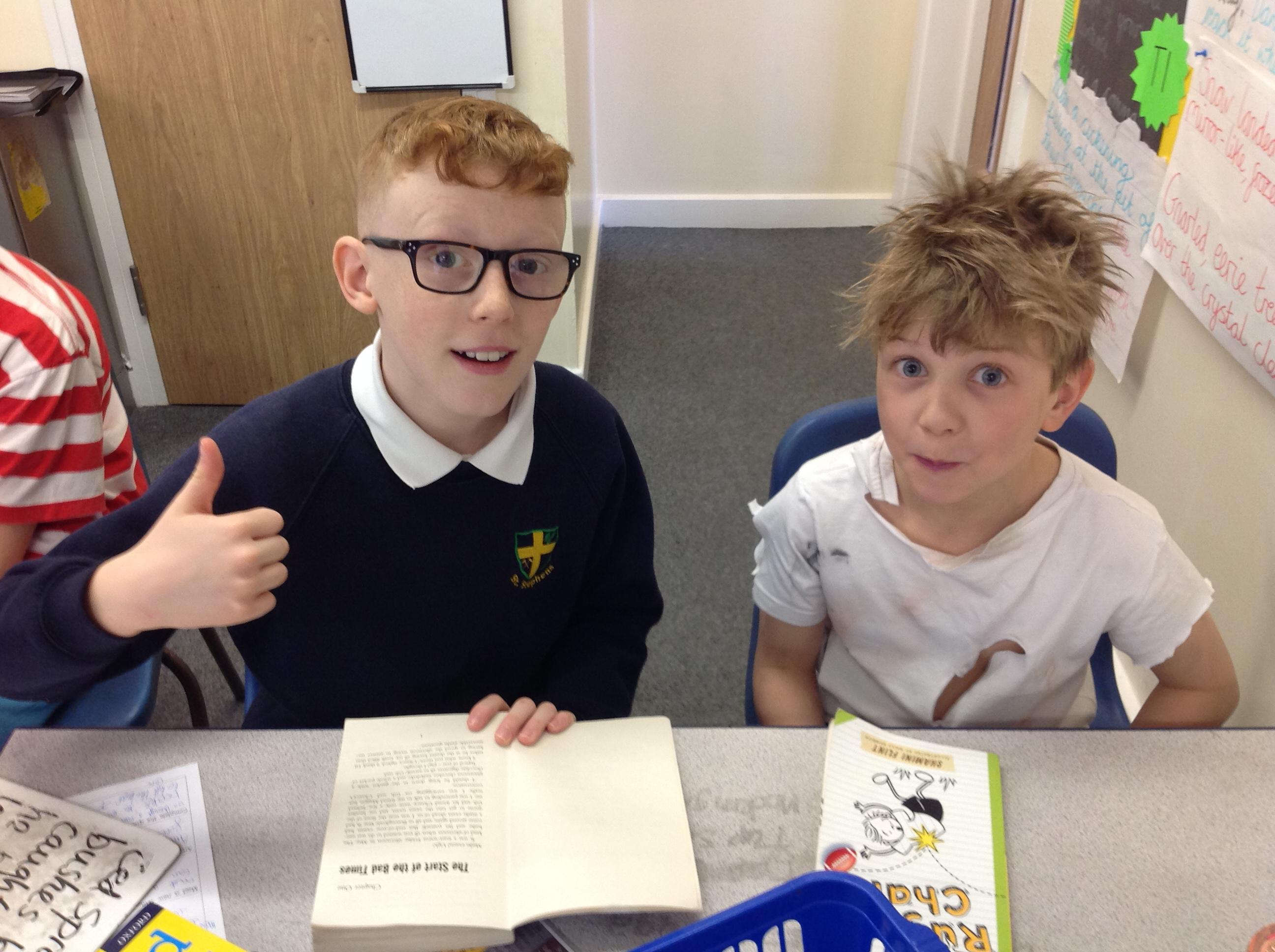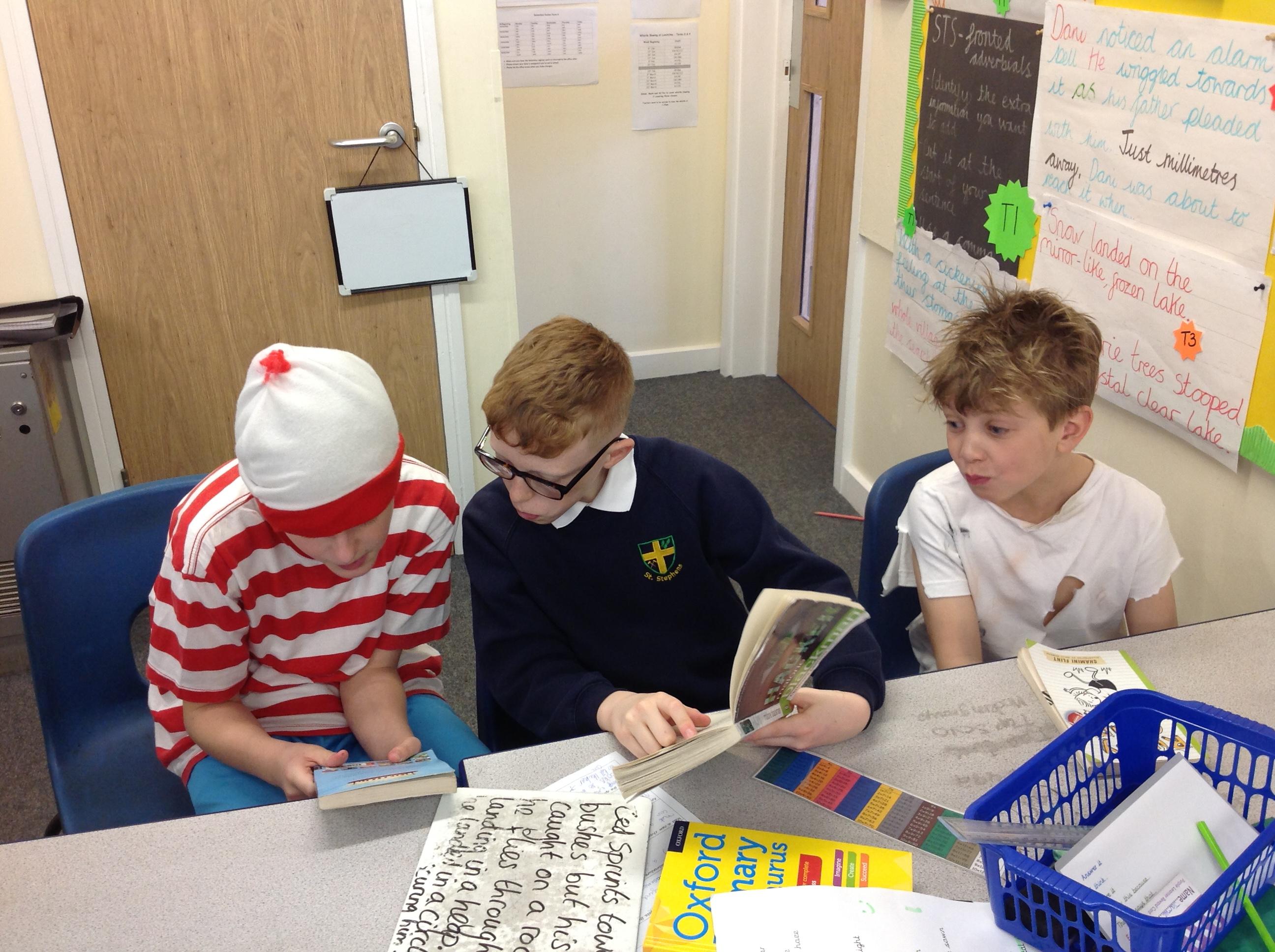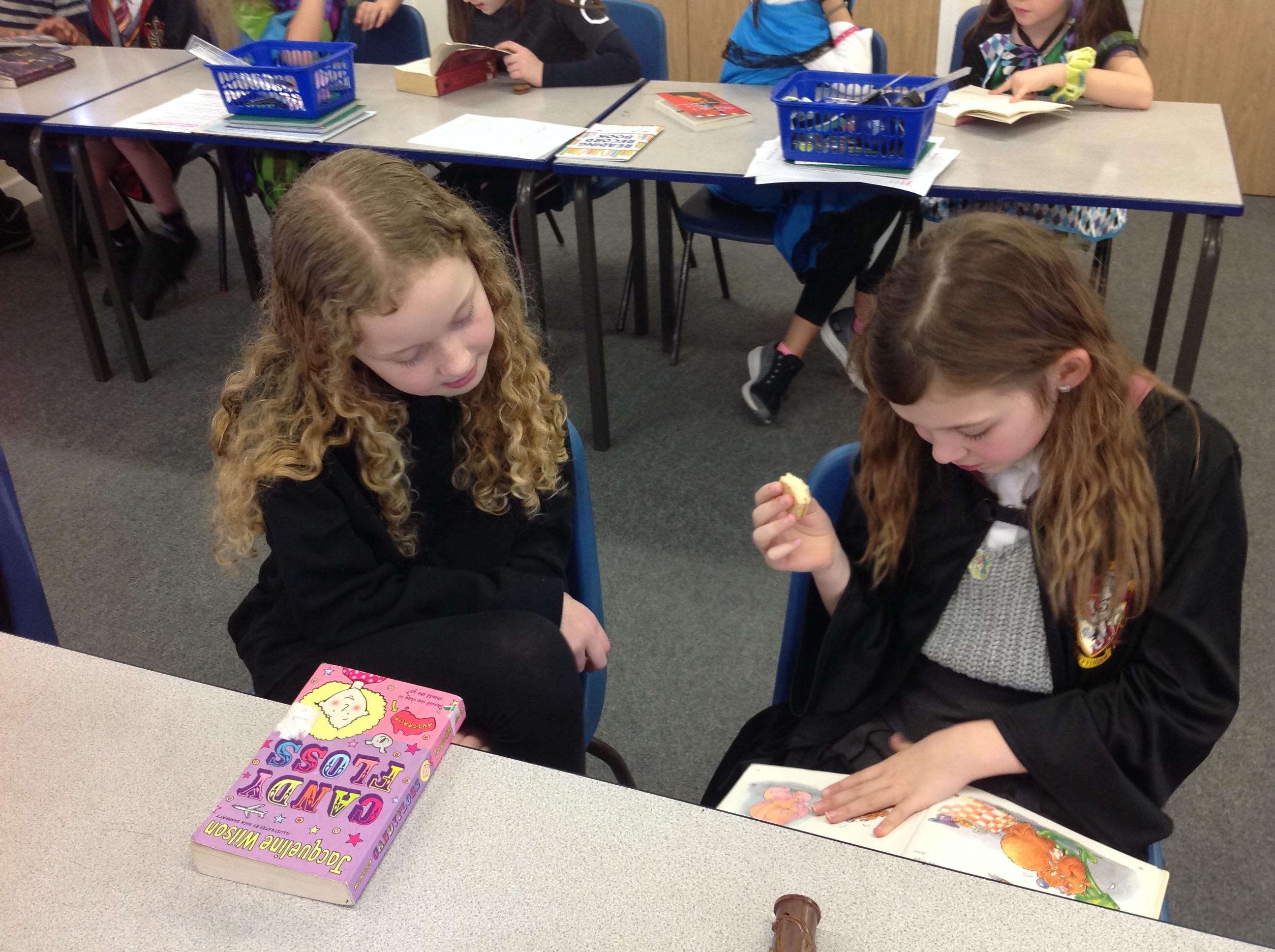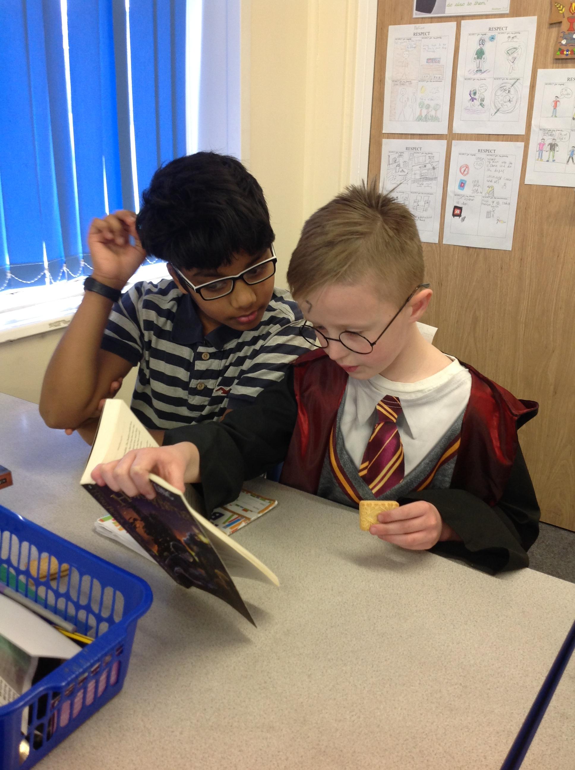 In Week 2 of Term 4, we celebrated World Book Day across our school. We really enjoyed sharing a book and a biscuit with Year 4 while we read our favourite part or described why we liked it. During the day, we learnt a poem called 'Warned' by Sylvia Stults. It was about our climate and environment and linked to our SDGs so that our world can have a brighter future. We really enjoyed making props to accompany our performance and we used our oracy skills when we presented the poem to the whole school.
