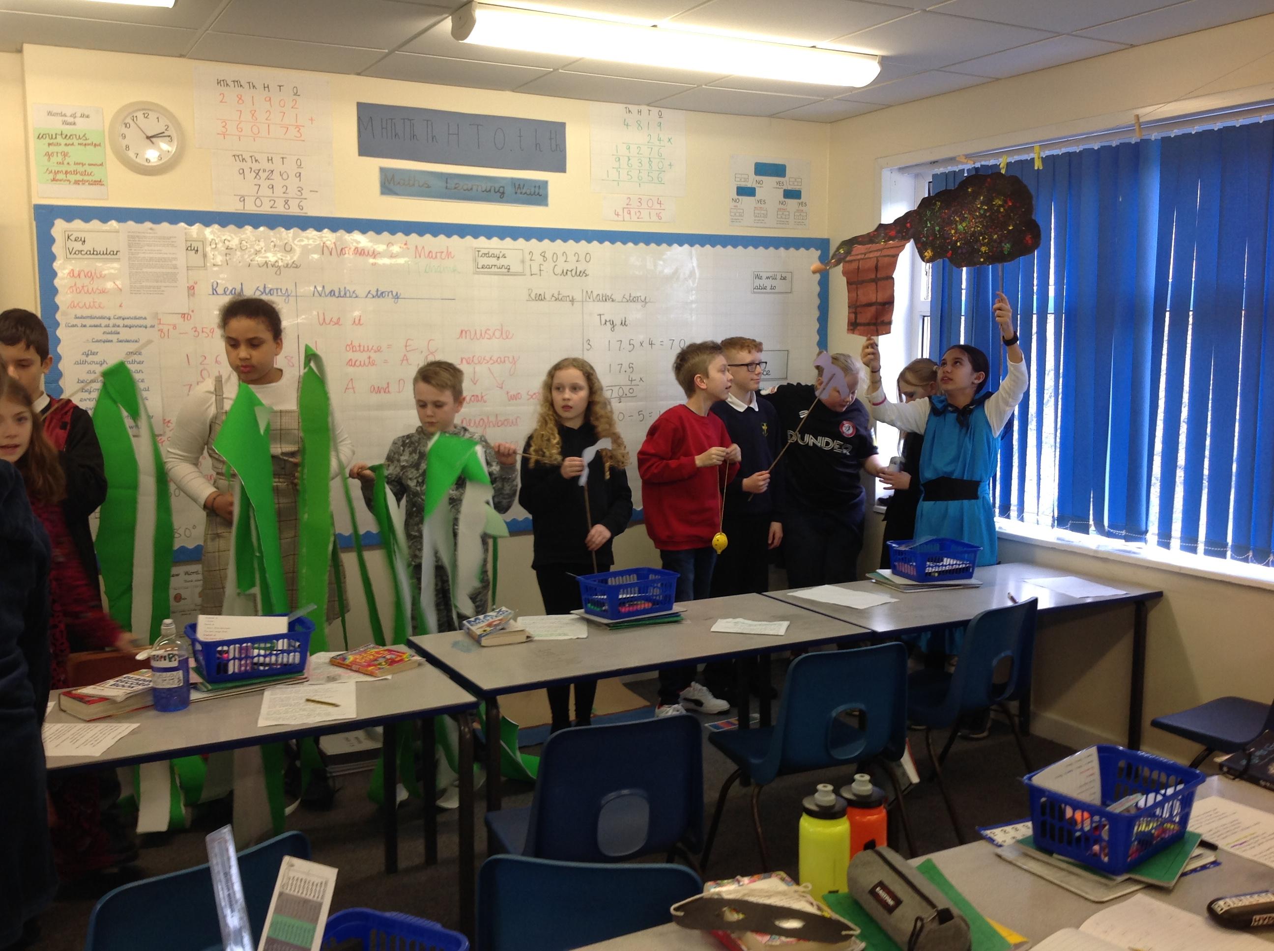 In week 6 we performed our class assembly to our grown-ups. In groups, we were given a section of our class book, Wolf Brother. We had to orally retell our section in our own creative ways. Our actions really helped us to learn our words and added to our performance too!