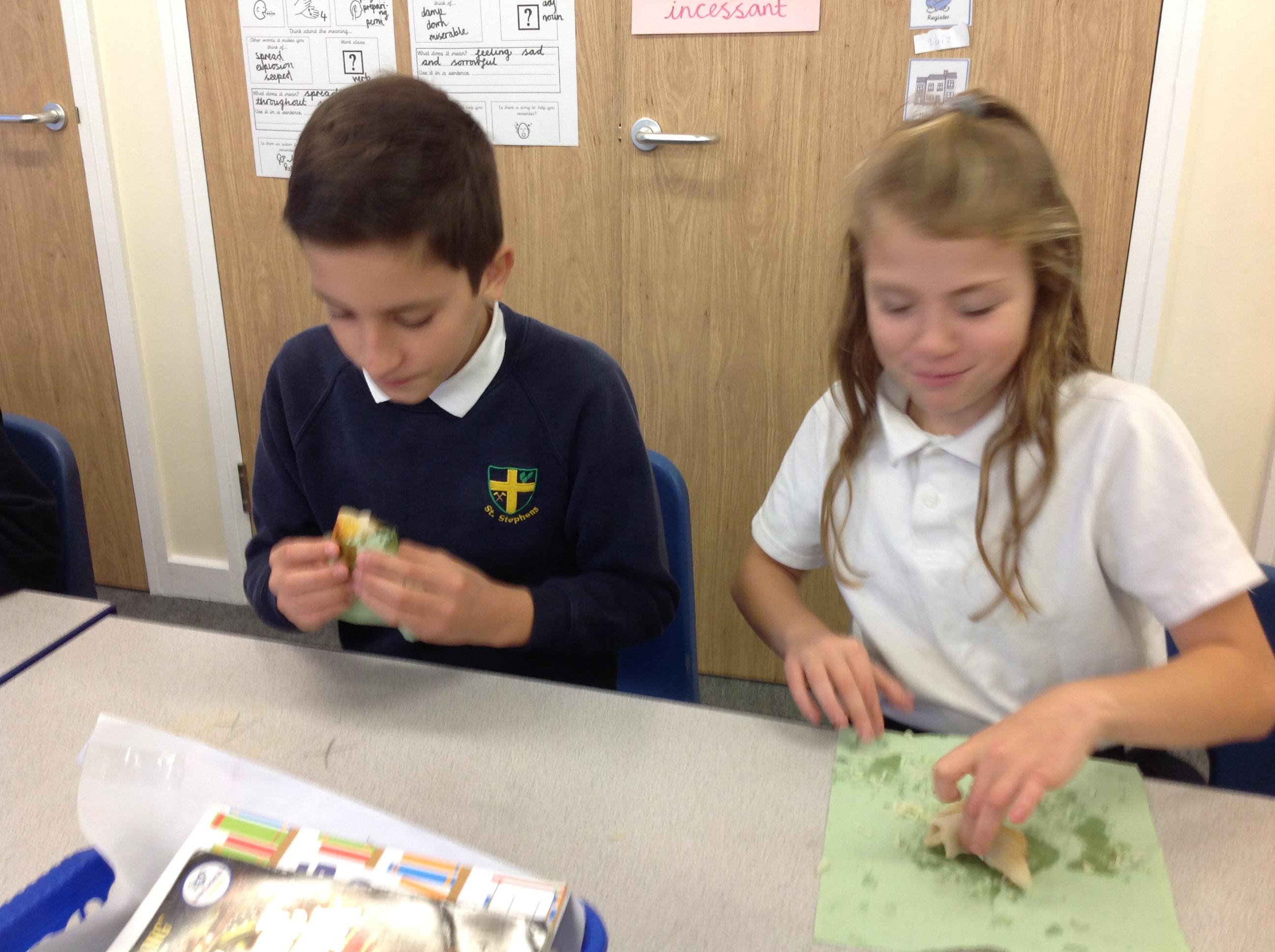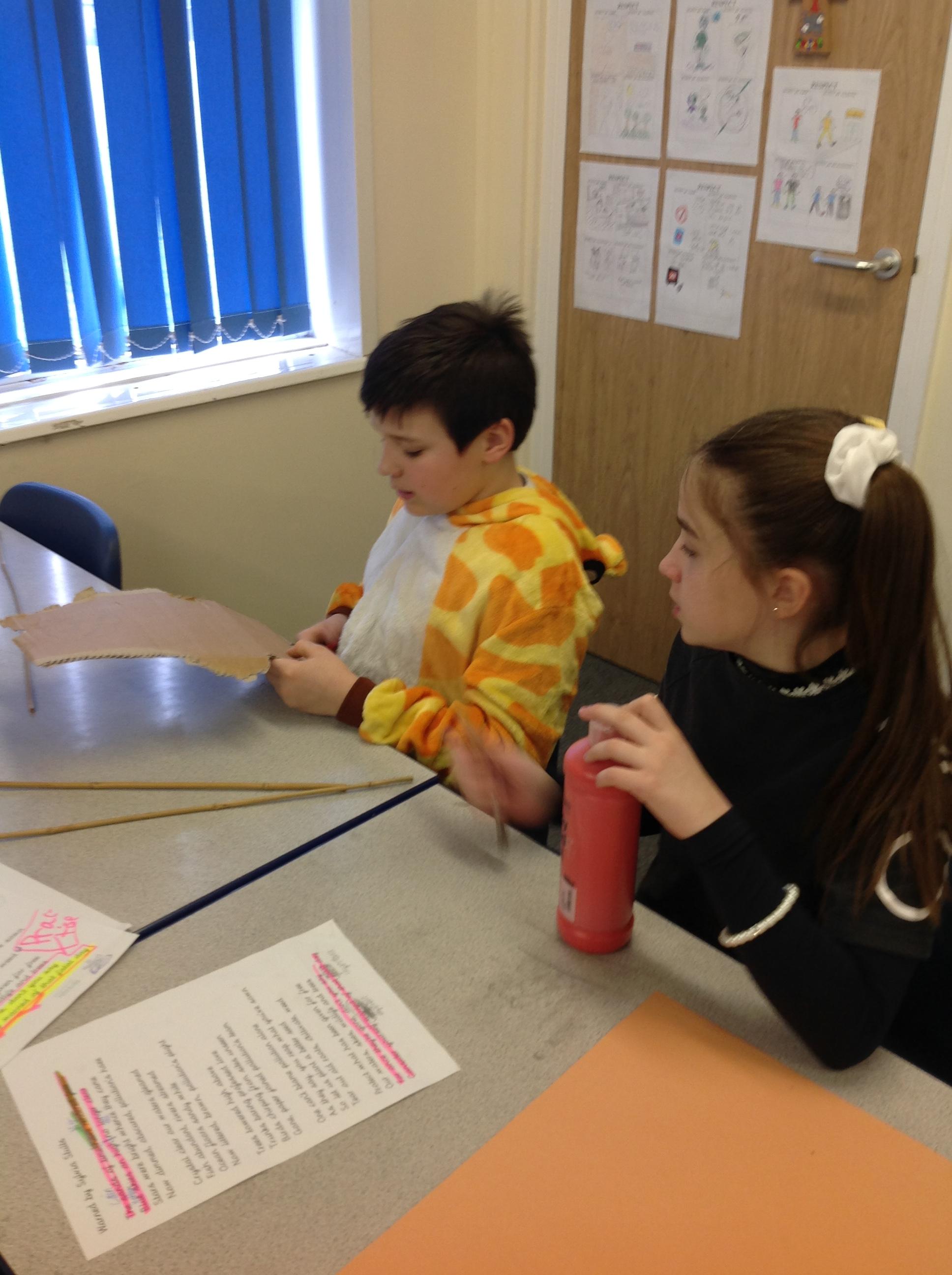 In week 1, we created our very own clans just like they used to form in the Stone Age! We looked at some example names before creating our own like 'The Weary Wolf Clan' and 'The Ivory Clan'. Next we had to design a symbol that would represent us, before going on to design and make an accessory that would unite us. We had lots of fun getting creative!