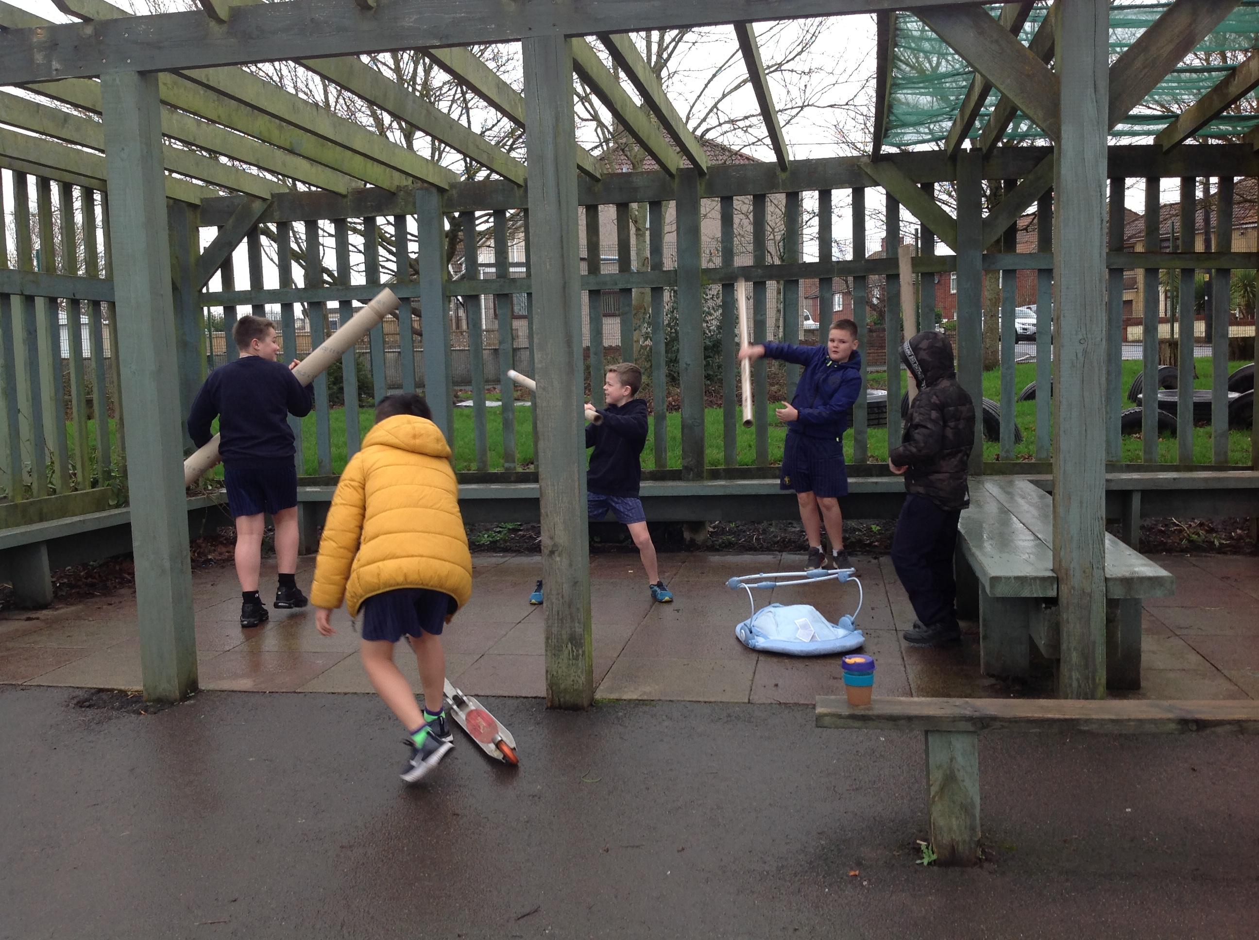 In week 2, we had lots of creative fun with the items in the Playpod! Firstly, we made sure that we knew the rules when using the junk, such as being sensible while getting the equipment out and putting it away. Once we were sure, we were ready to begin! We had lots of fun burning off our extra energy and making new friends across our year group!