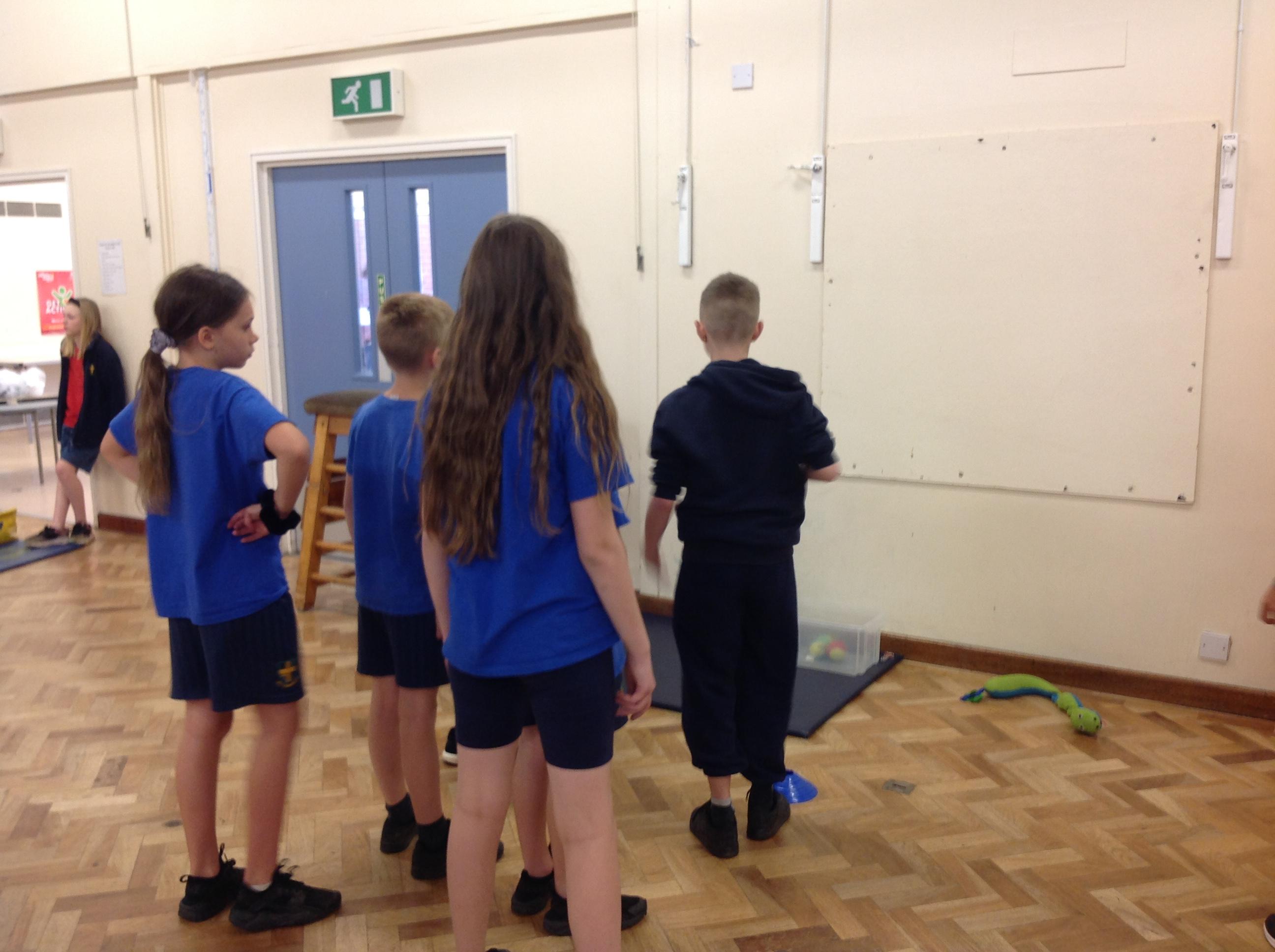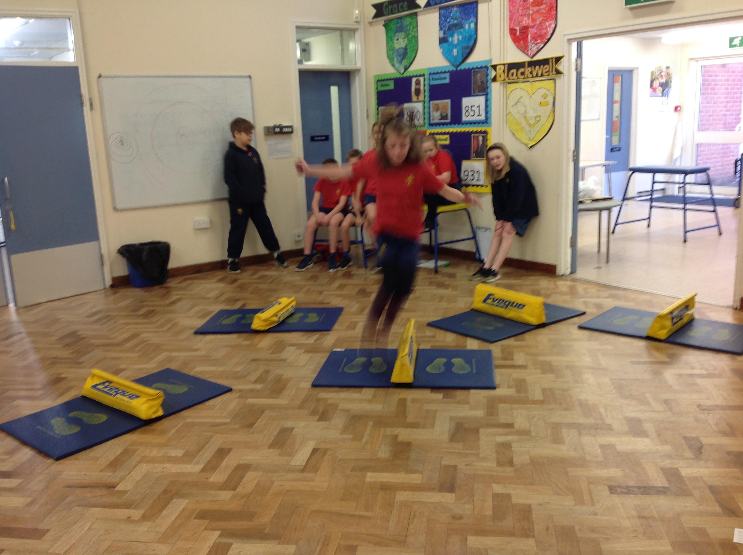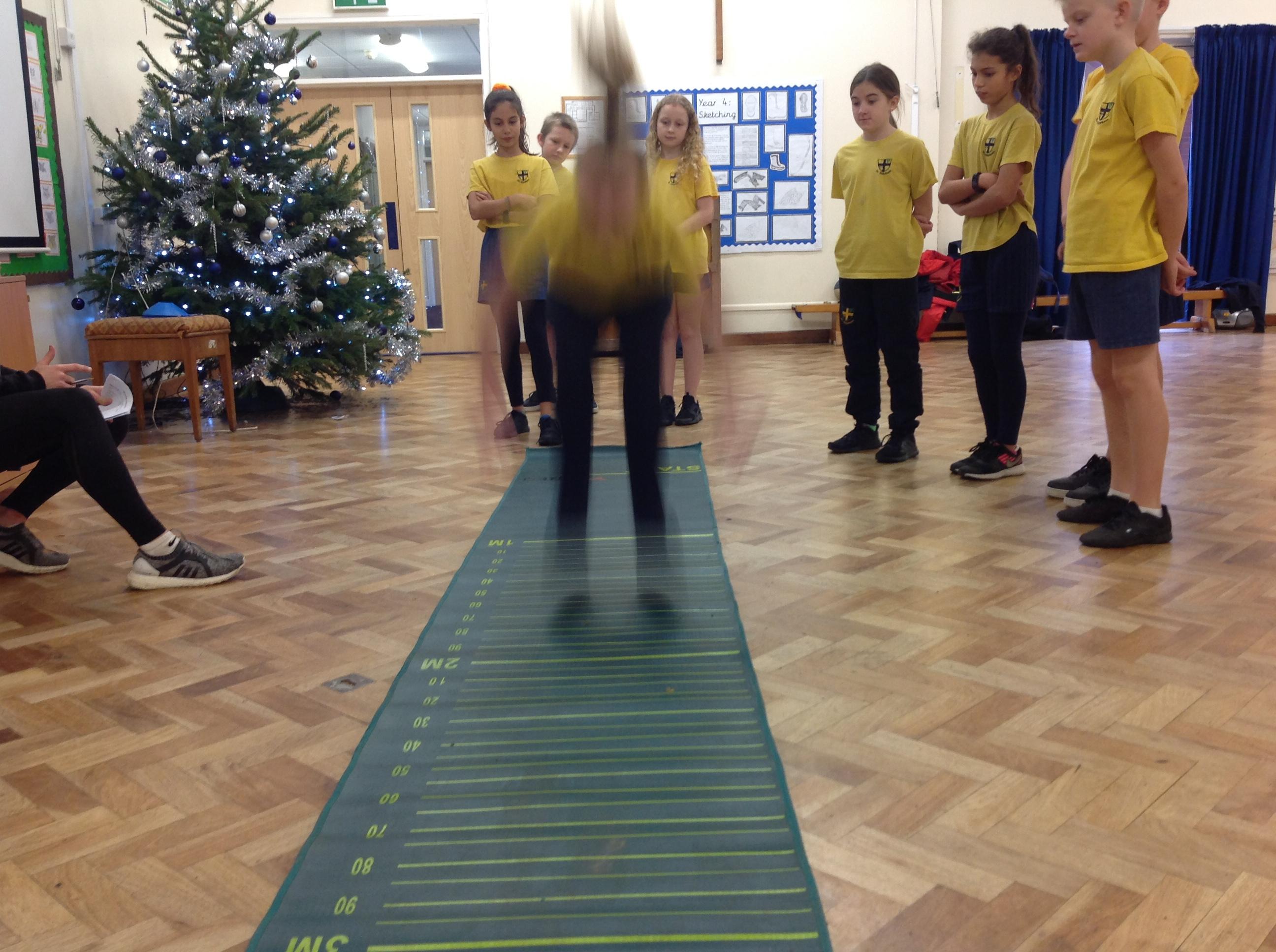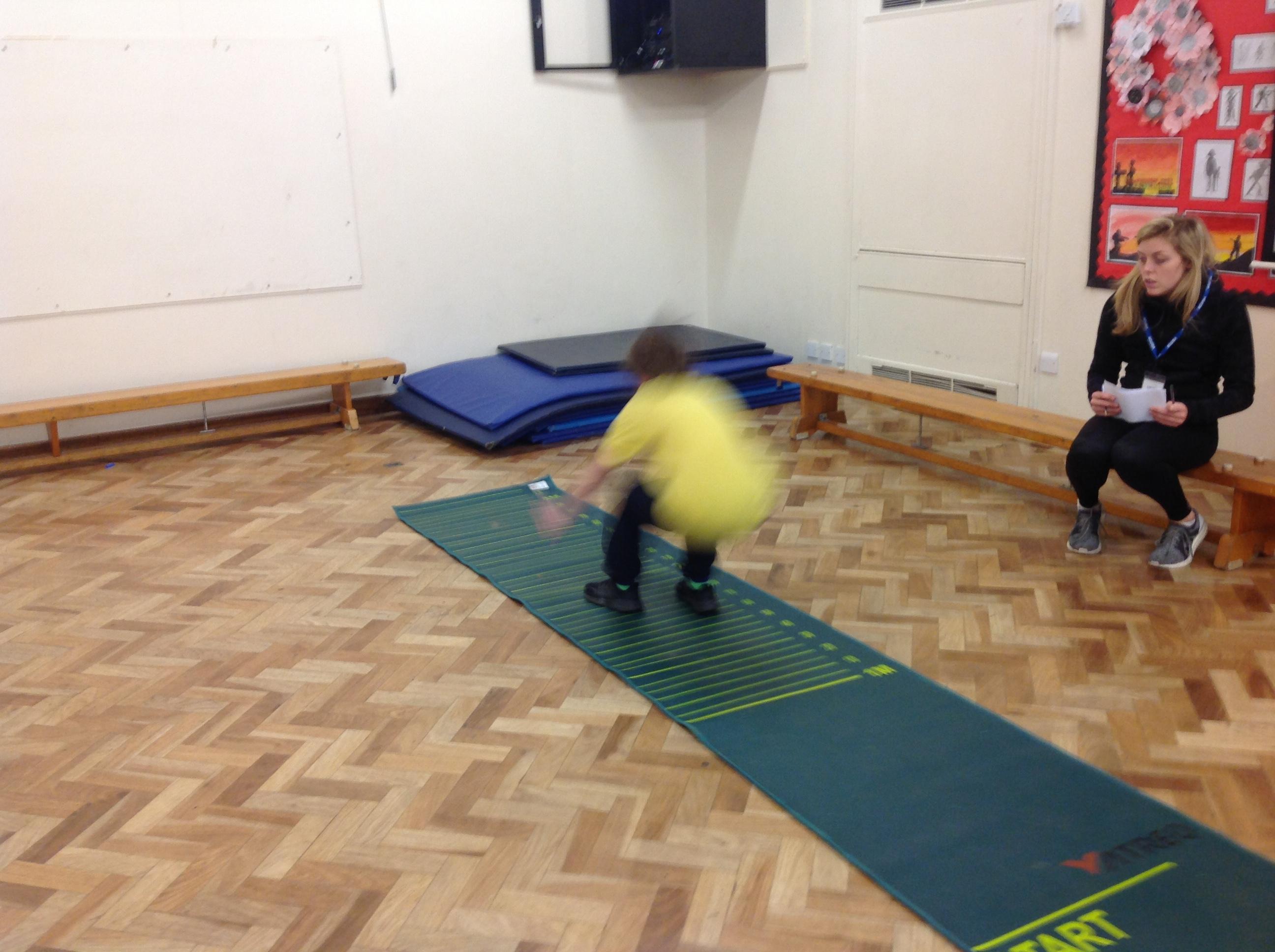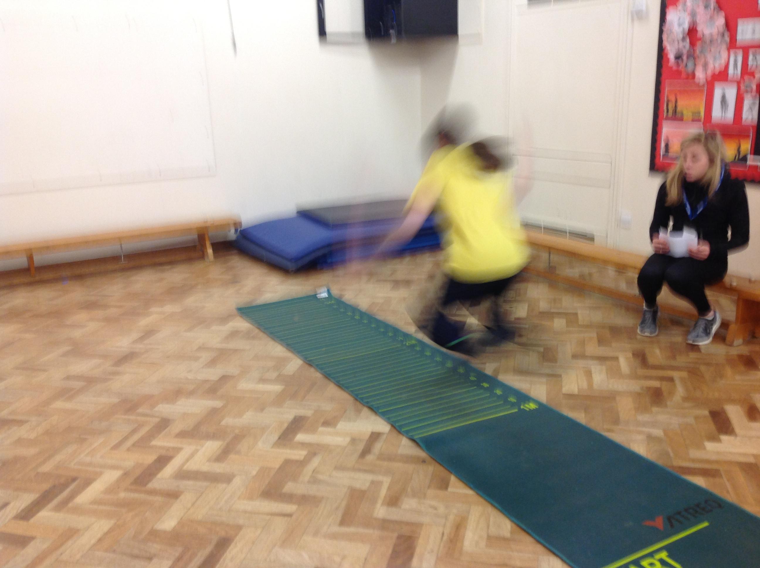 We carried out a carousel of 4 different athletic challenges in the hall. Firstly, we had to throw beanbags accurately into the bins - each had a different score! Then, we had the speed bounce challenge where we had to hop over the barrier as many times as we could in 20 seconds. The next challenge was to throw and catch a ball using one hand against a wall. Luckily, we had some time to practise that one! Finally, we did the long jump. We found that most of us improved our scores during the second round.