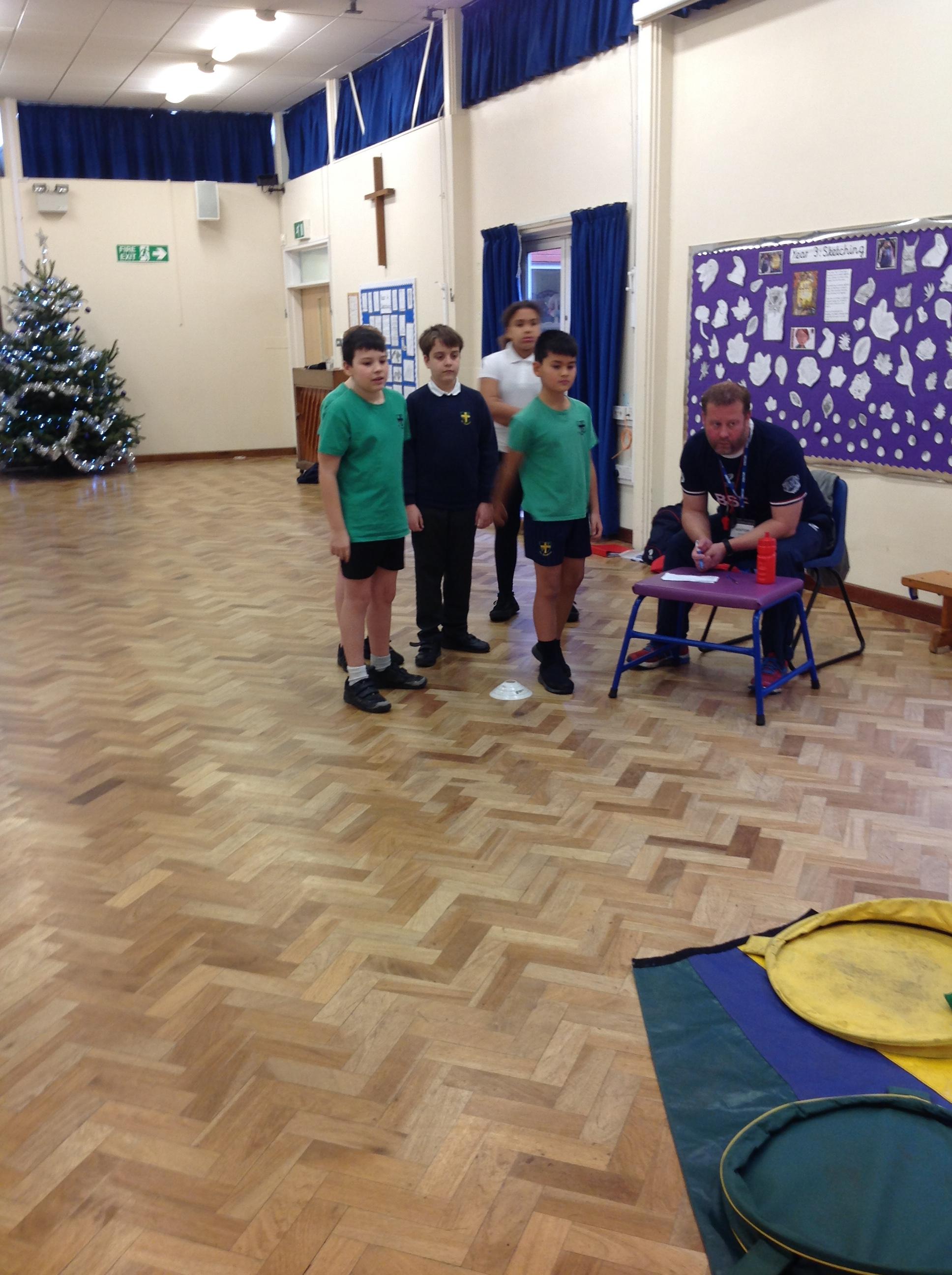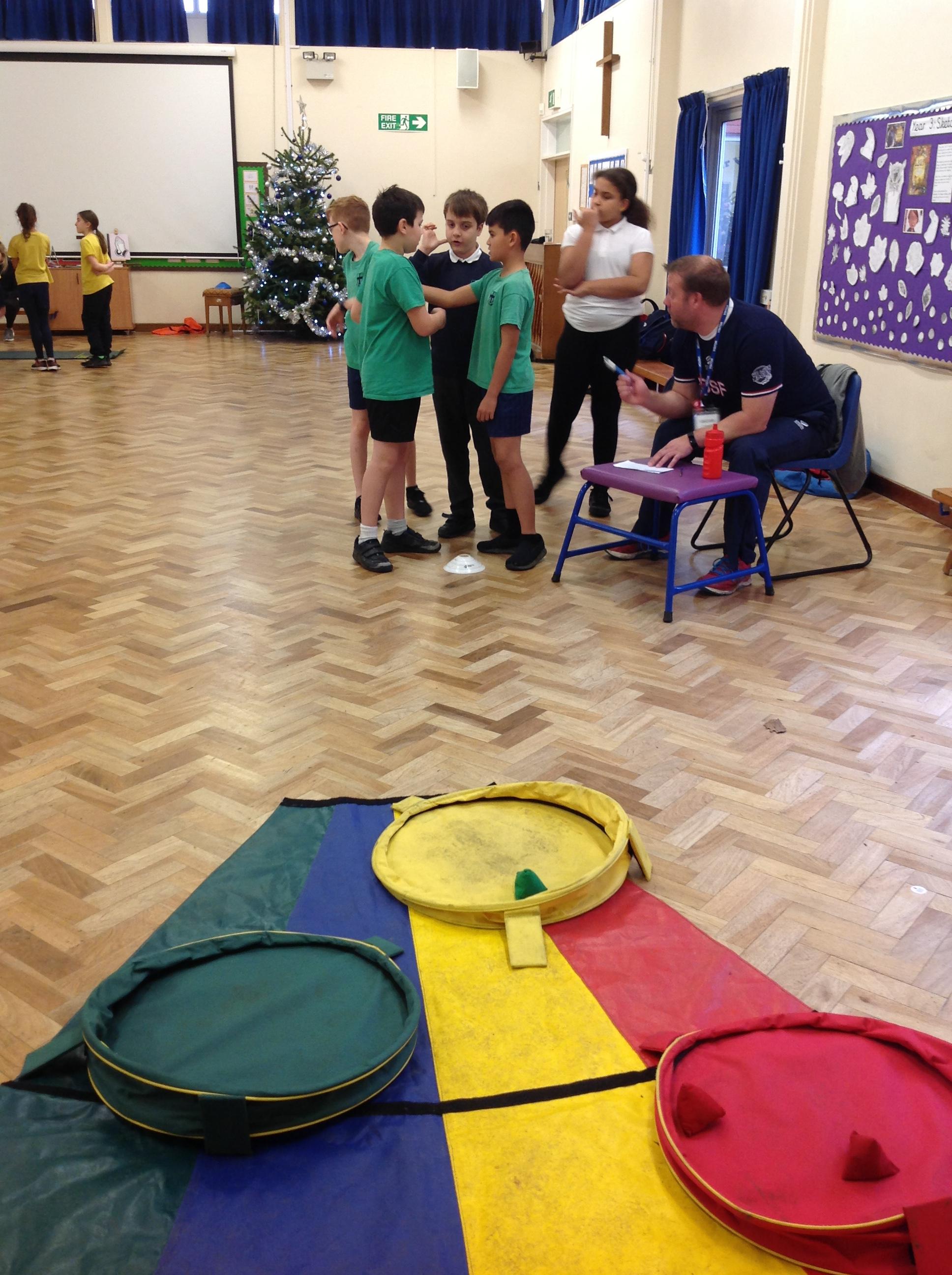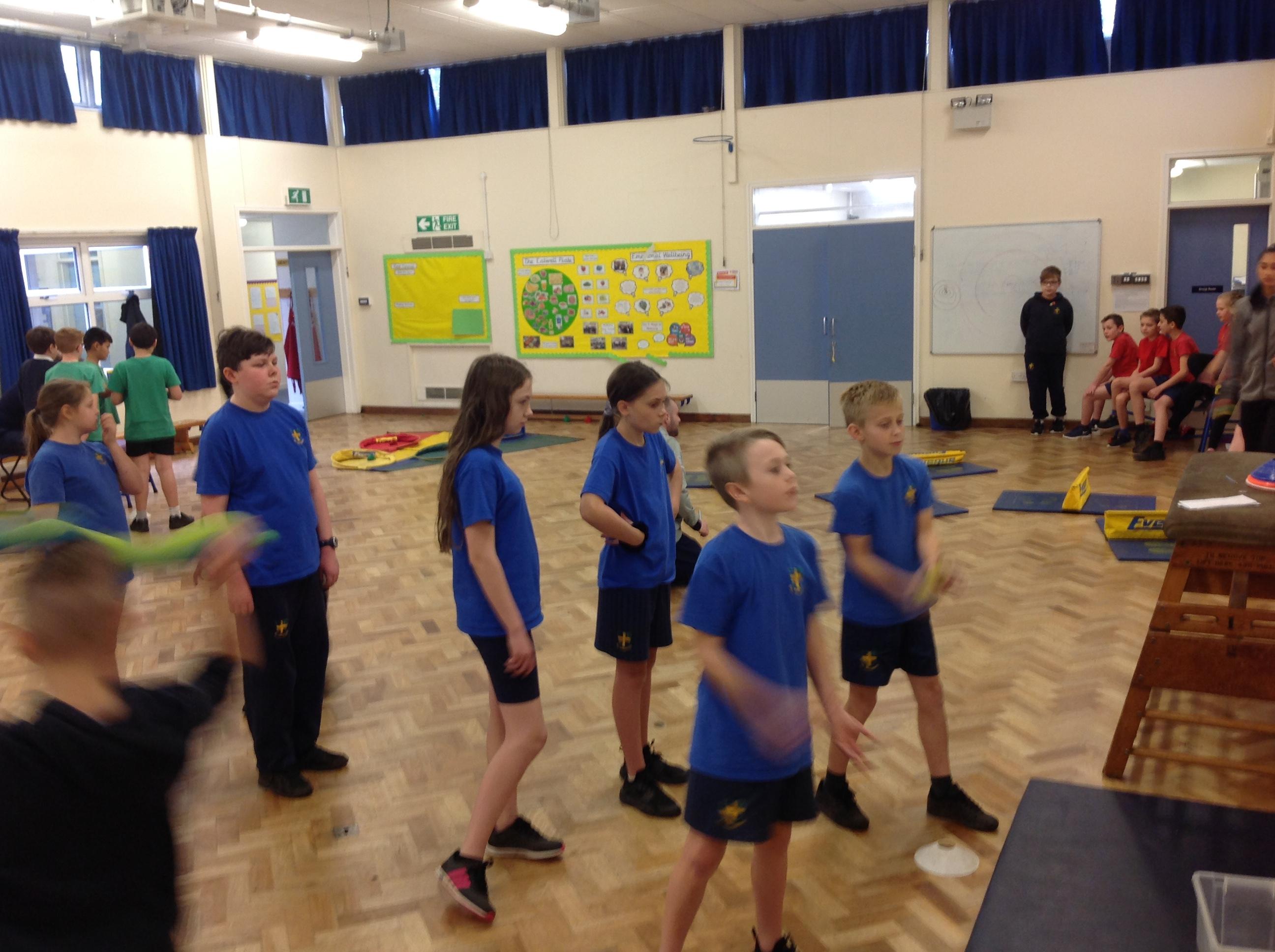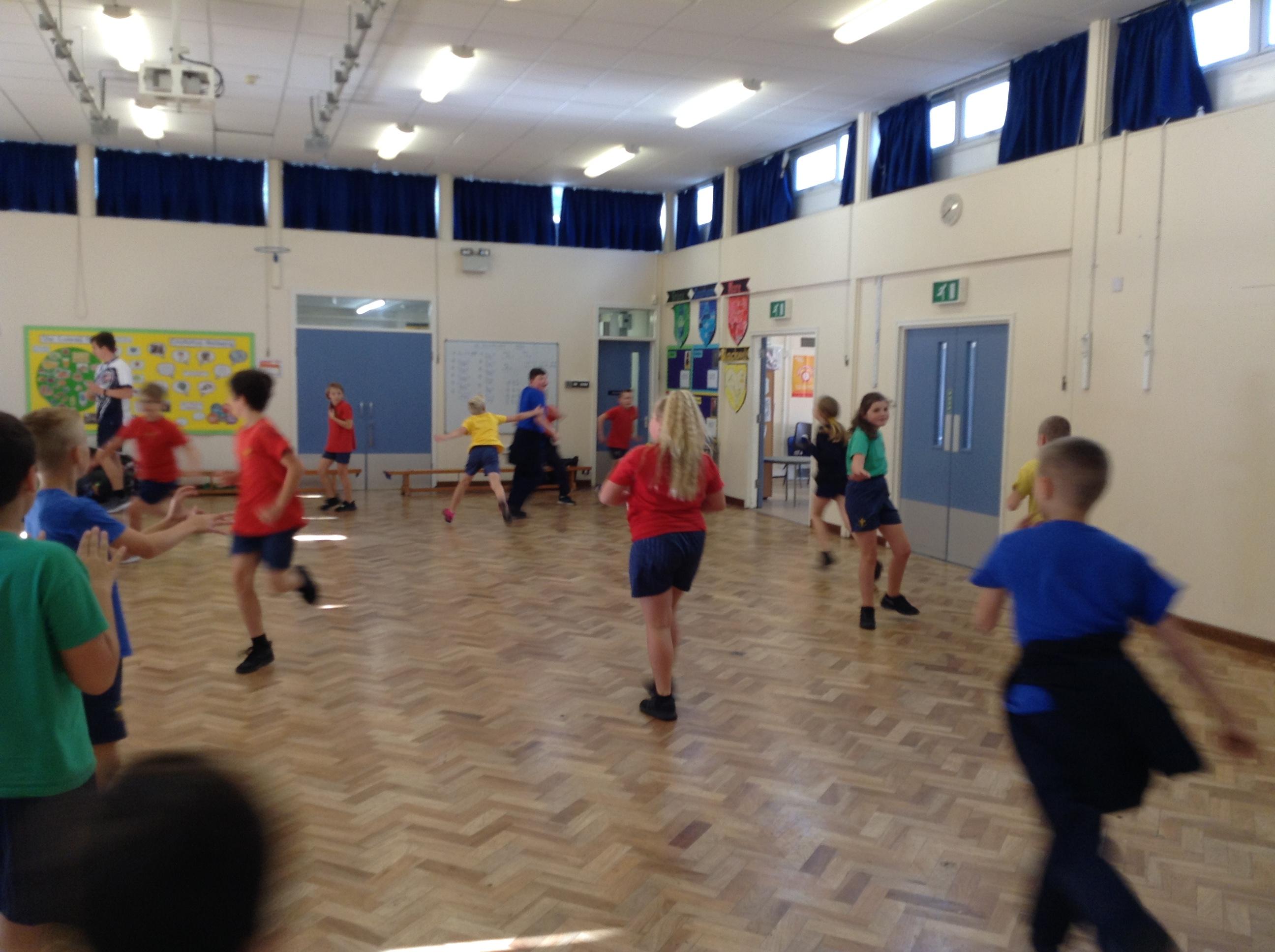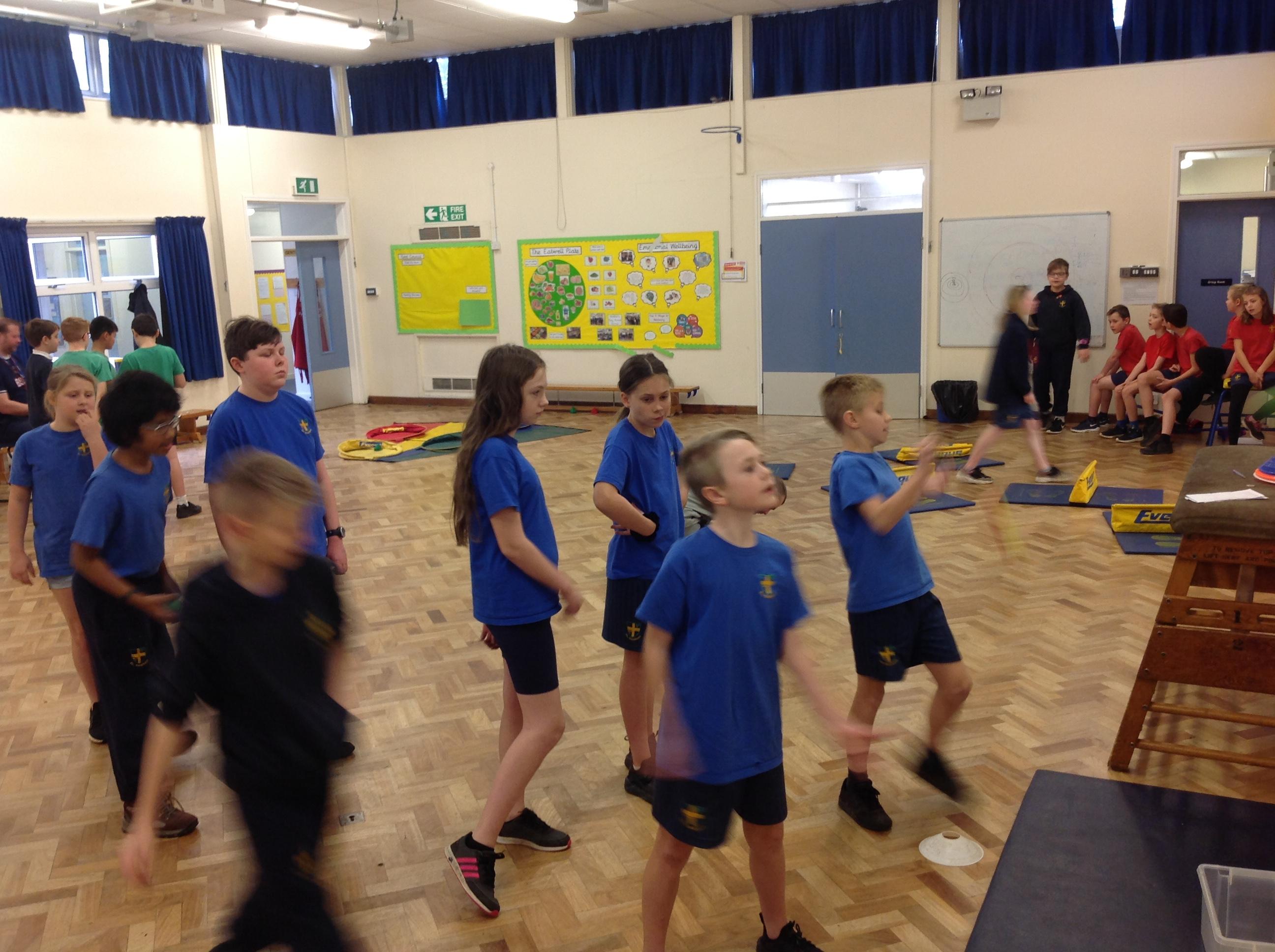 We carried out a carousel of 4 different athletic challenges in the hall. Firstly, we had to throw beanbags accurately into the bins - each had a different score! Then, we had the speed bounce challenge where we had to hop over the barrier as many times as we could in 20 seconds. The next challenge was to throw and catch a ball using one hand against a wall. Luckily, we had some time to practise that one! Finally, we did the long jump. We found that most of us improved our scores during the second round.