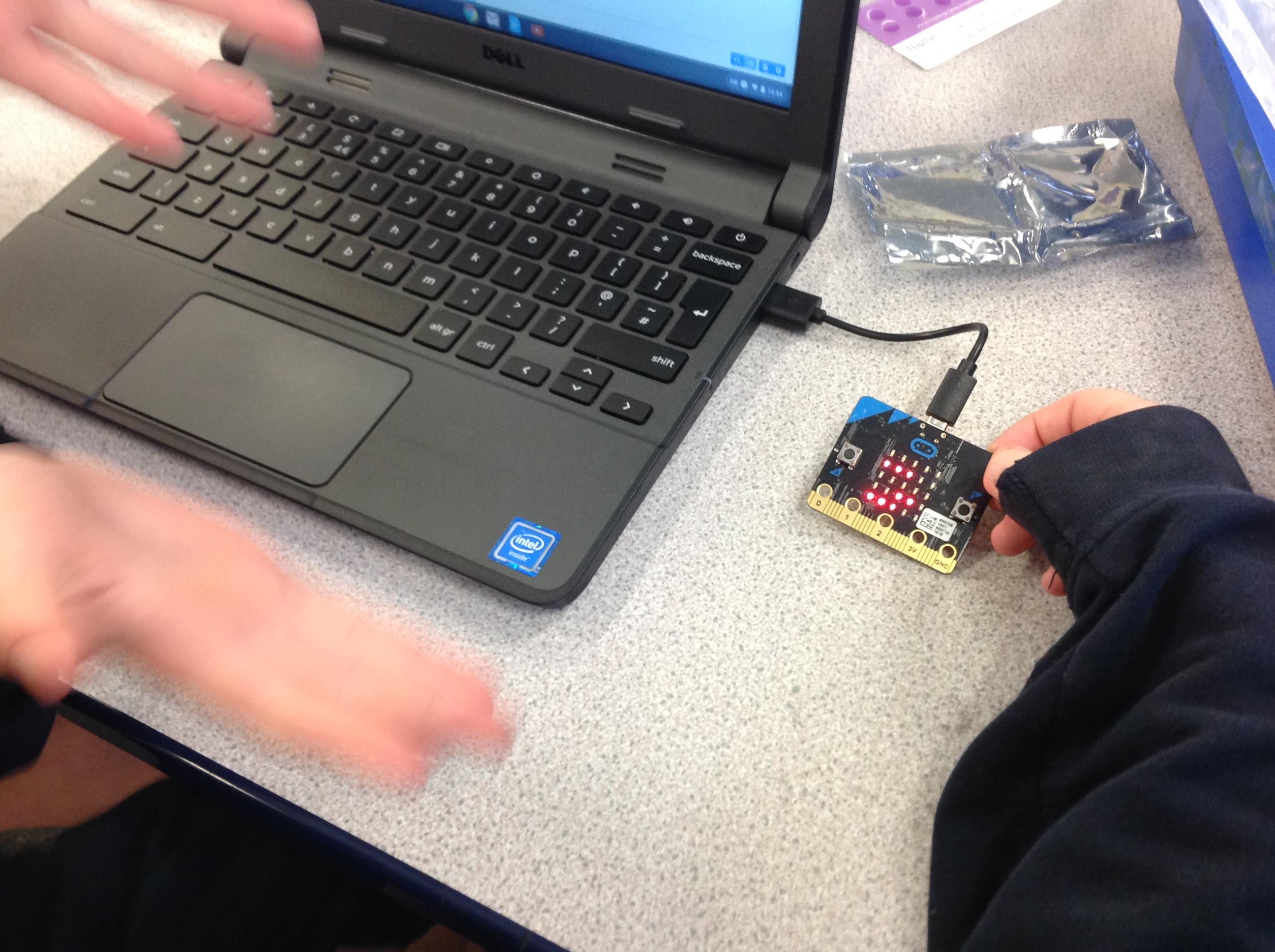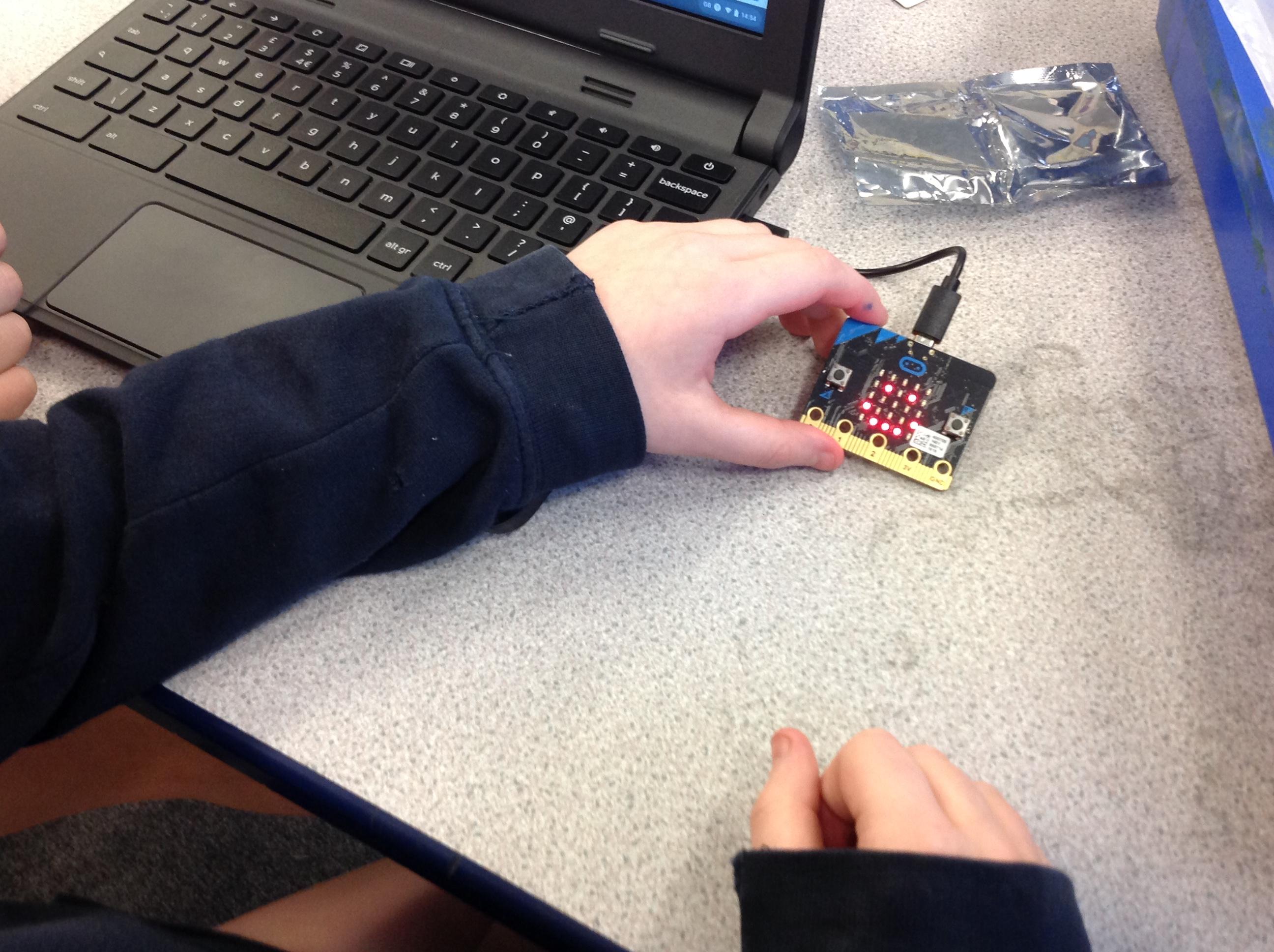 In computing, we used small devices called 'microbits'. We were able to use the Chromebooks to code a message that appeared on the microbit! It reminded us of a bus number or the screens at the Doctor's Surgery.