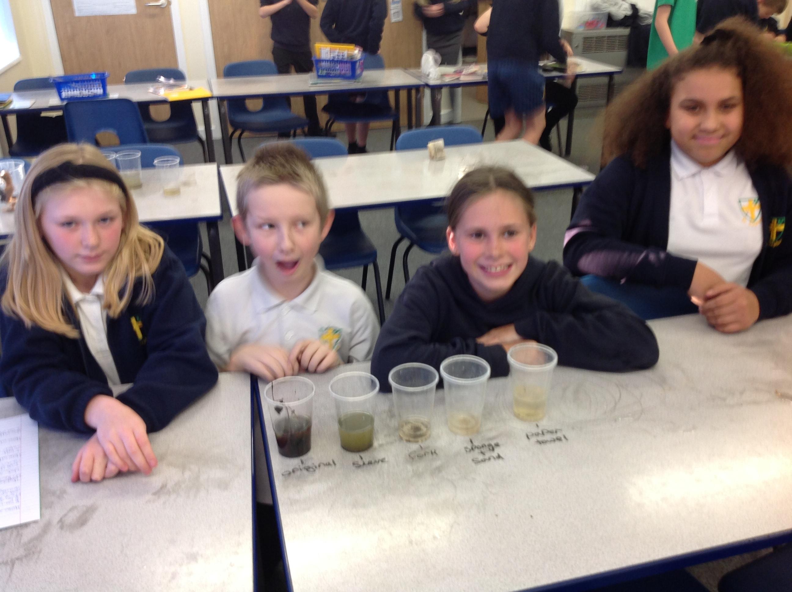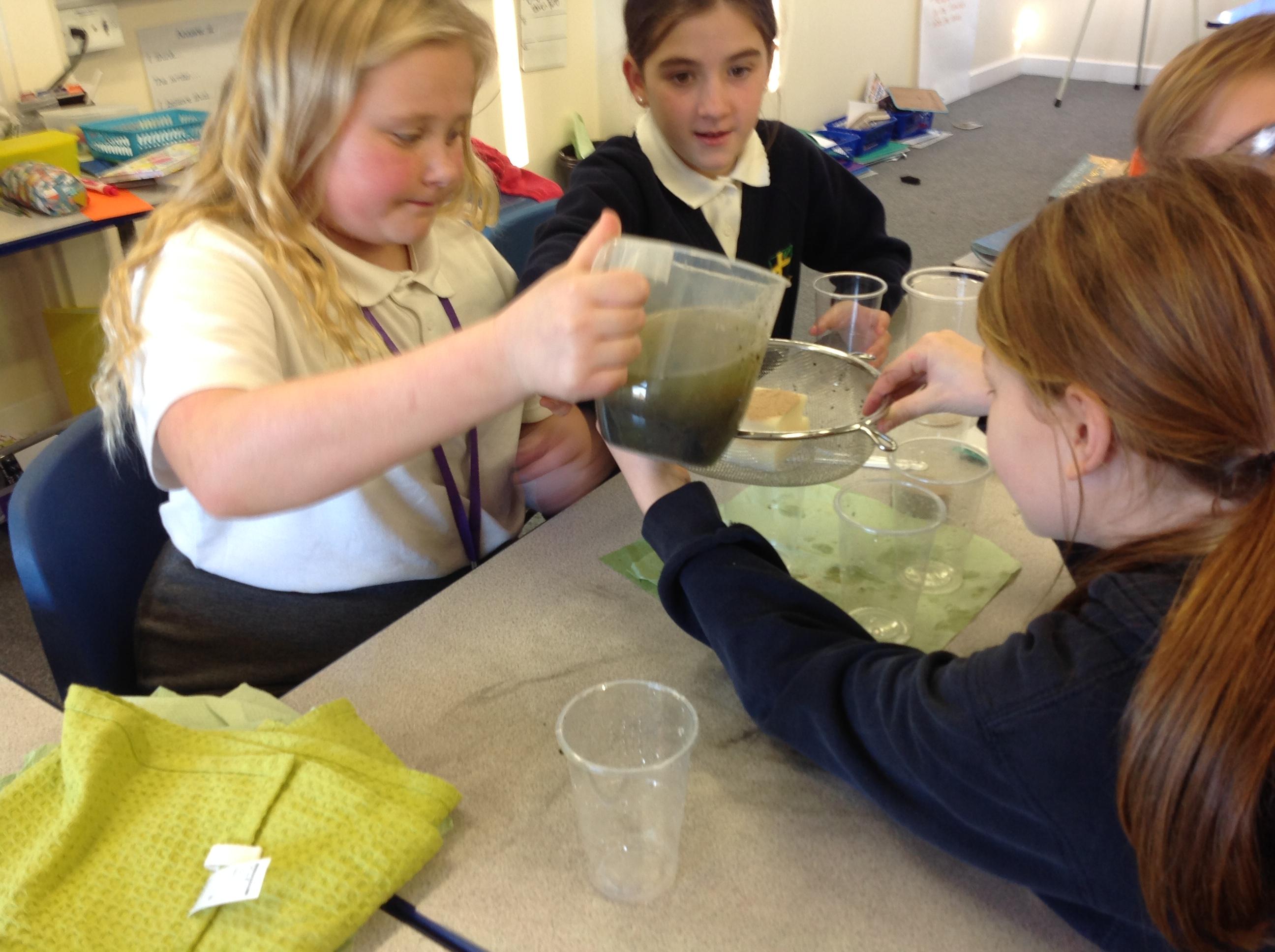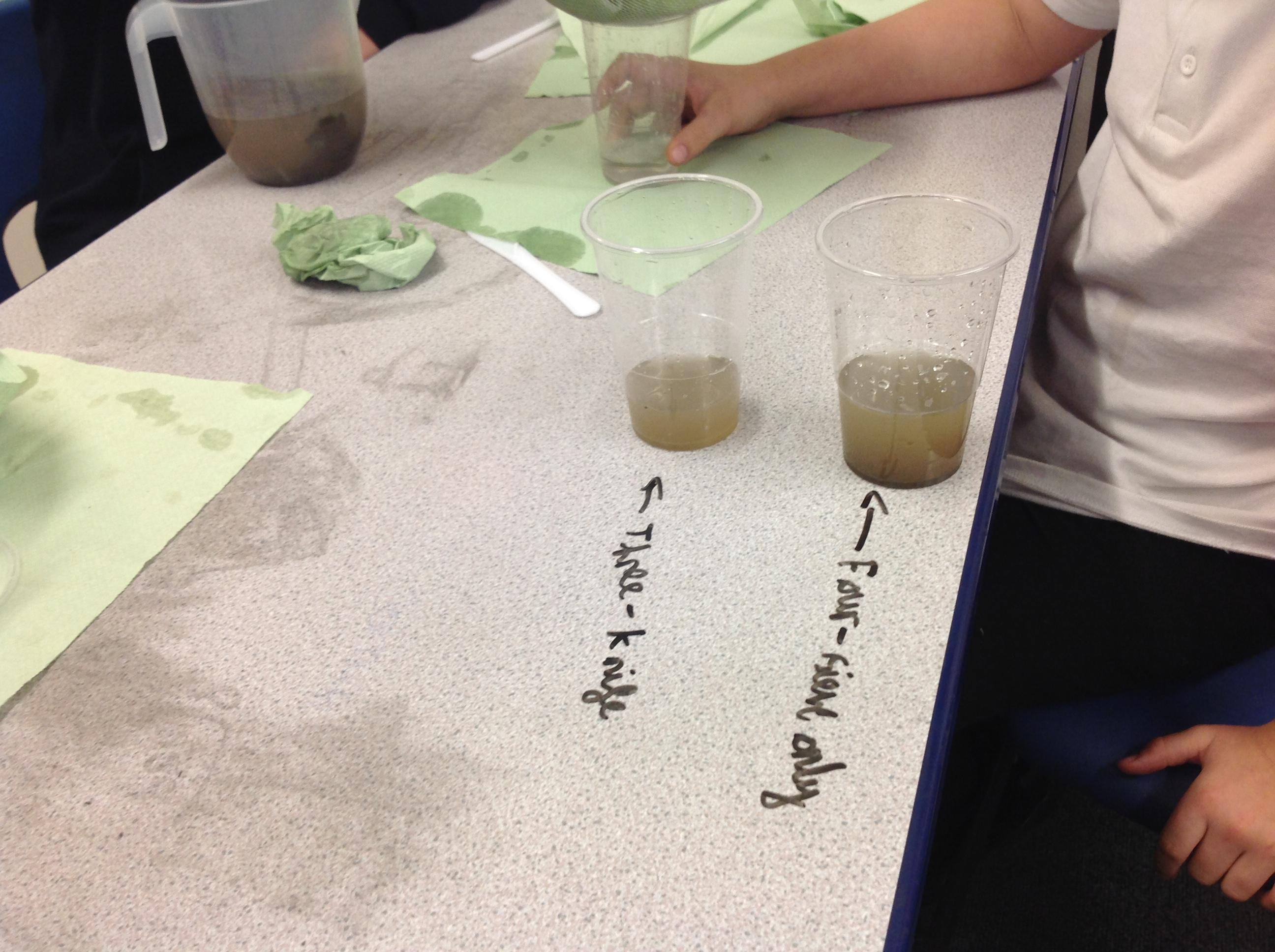 Today we were challenged to clean a jug of filthy water! It was filled with mud, leaves and grass so we tested a variety of filters to see which cleaned the water the most effectively. We kept the water the same and changed the type of filter to ensure it was a fair test. Our results showed that the paper towels were able to filter out the dirt the best. We thought about our homeless friends and how they might access clean water - maybe they could use devices like the ones we tried and then add chlor tabs to kill any bacteria as our filters were unable to get rid of the harmful germs.