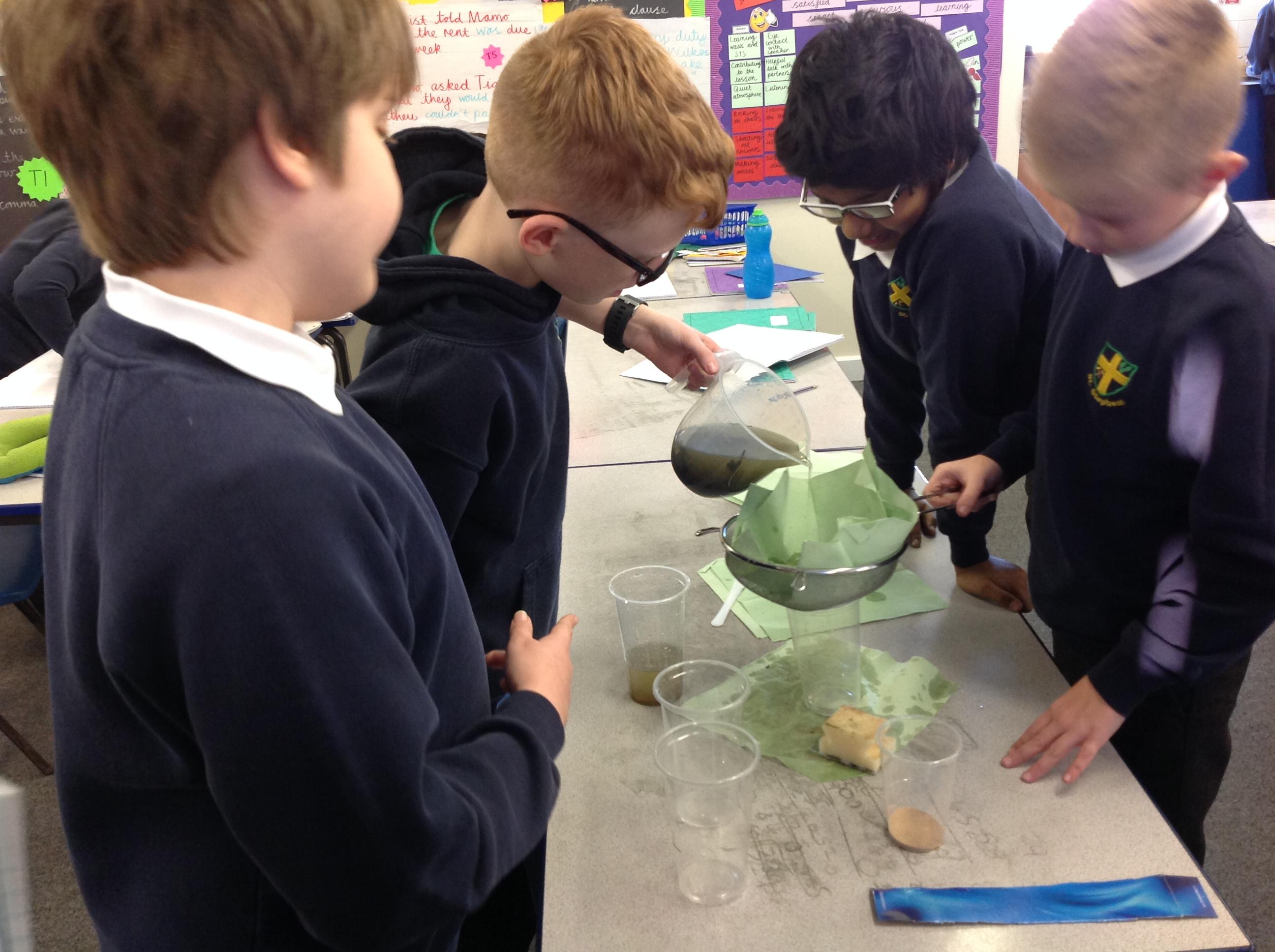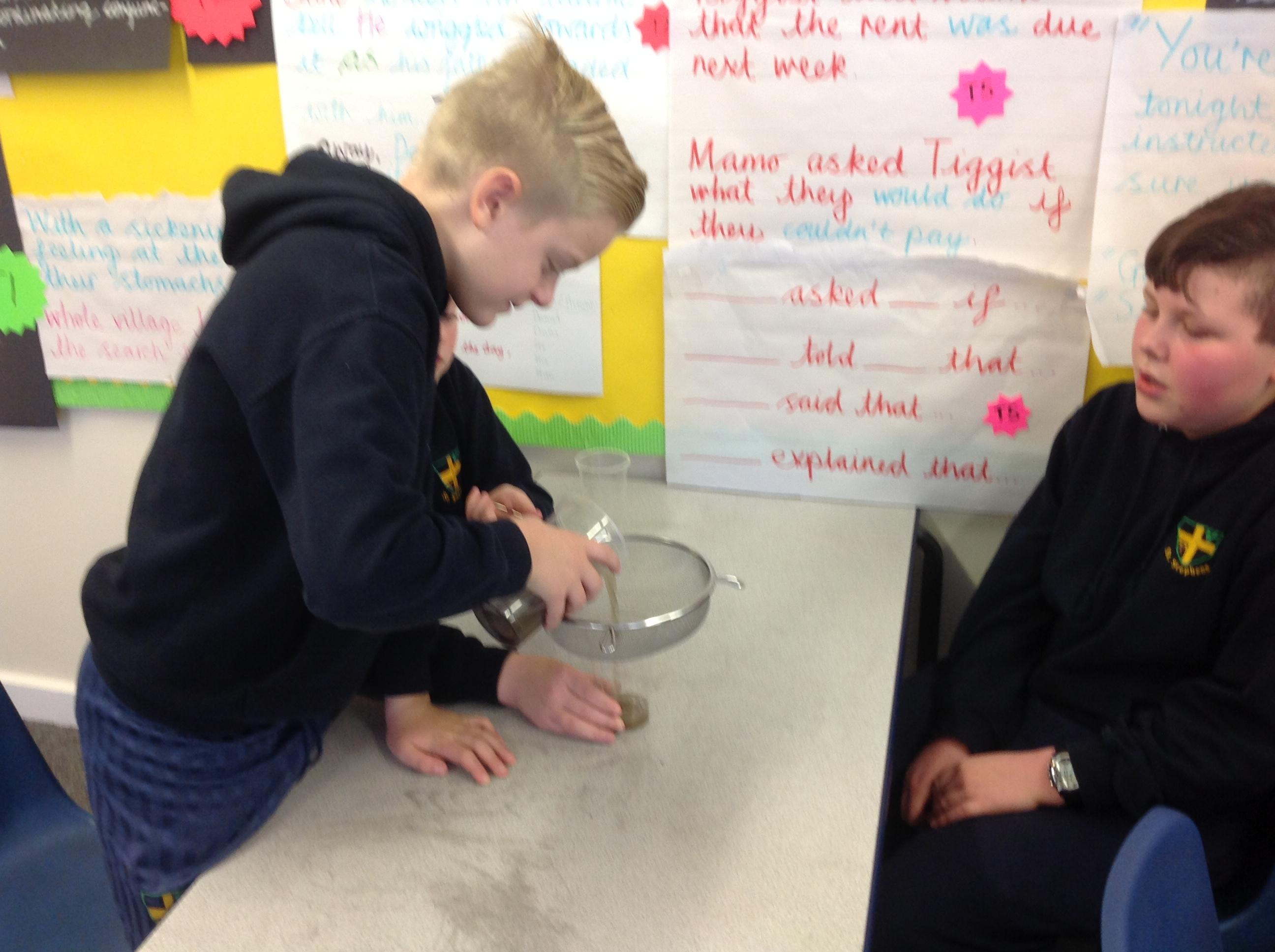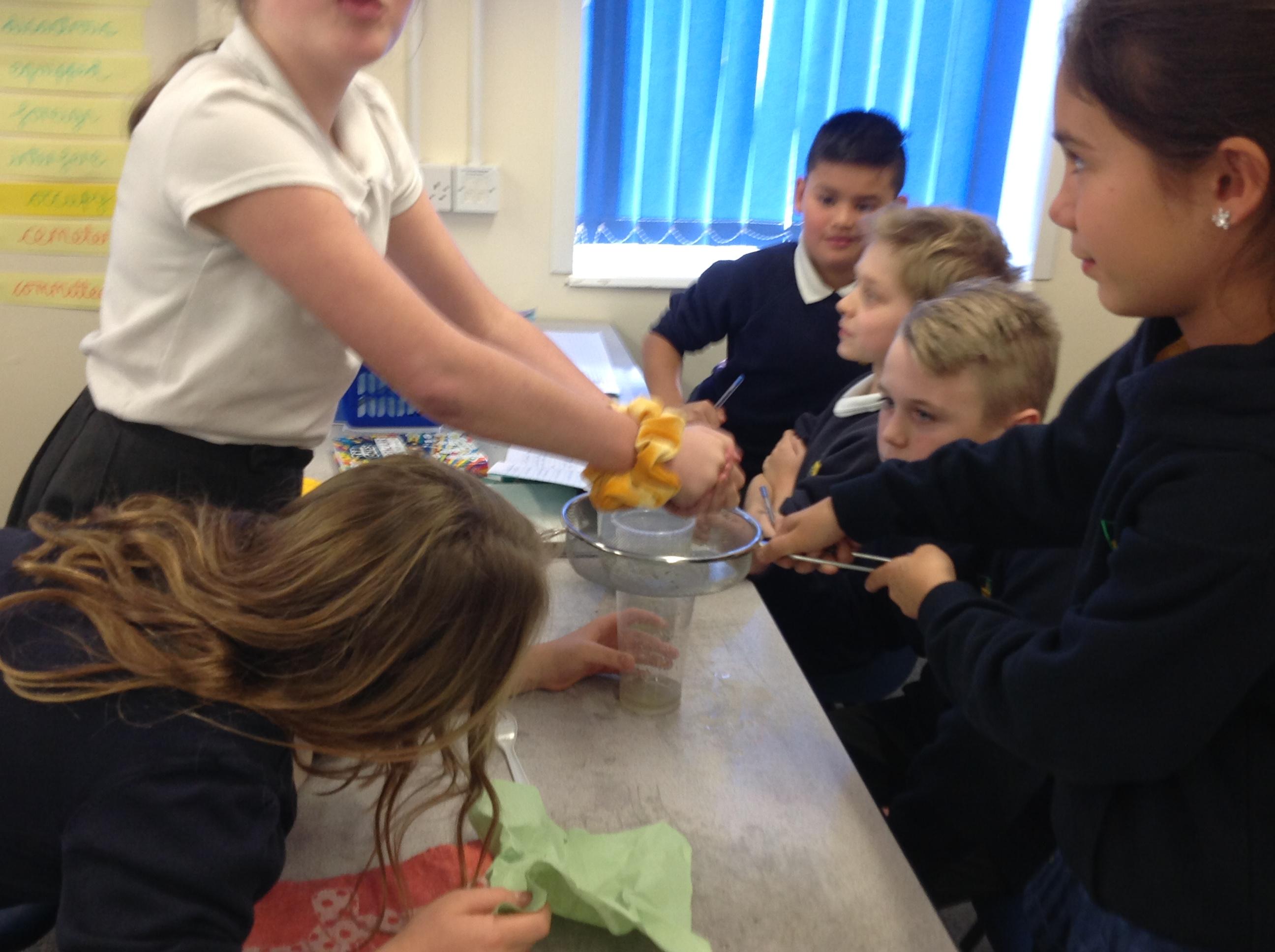 Today we were challenged to clean a jug of filthy water! It was filled with mud, leaves and grass so we tested a variety of filters to see which cleaned the water the most effectively. We kept the water the same and changed the type of filter to ensure it was a fair test. Our results showed that the paper towels were able to filter out the dirt the best. We thought about our homeless friends and how they might access clean water - maybe they could use devices like the ones we tried and then add chlor tabs to kill any bacteria as our filters were unable to get rid of the harmful germs.