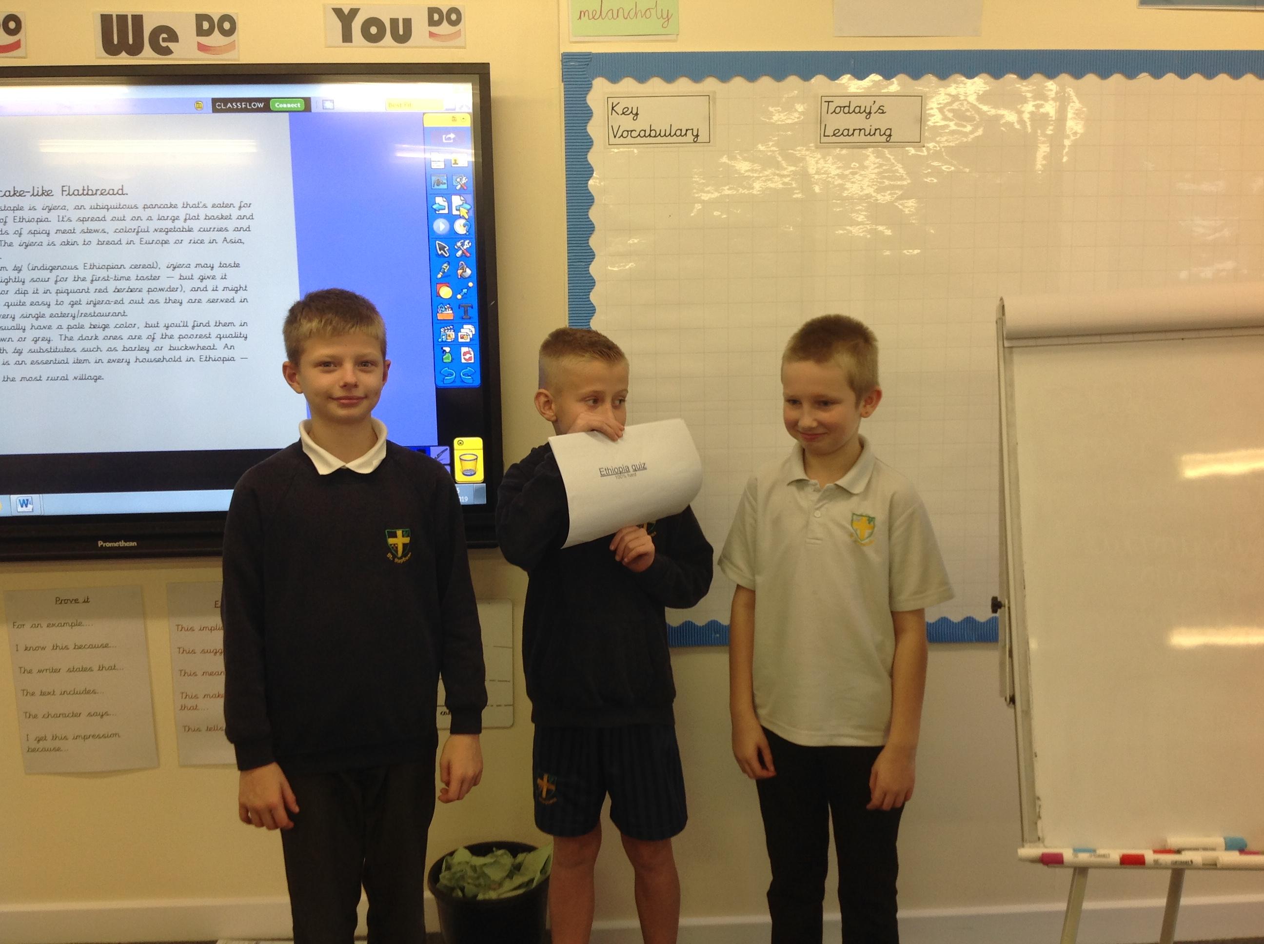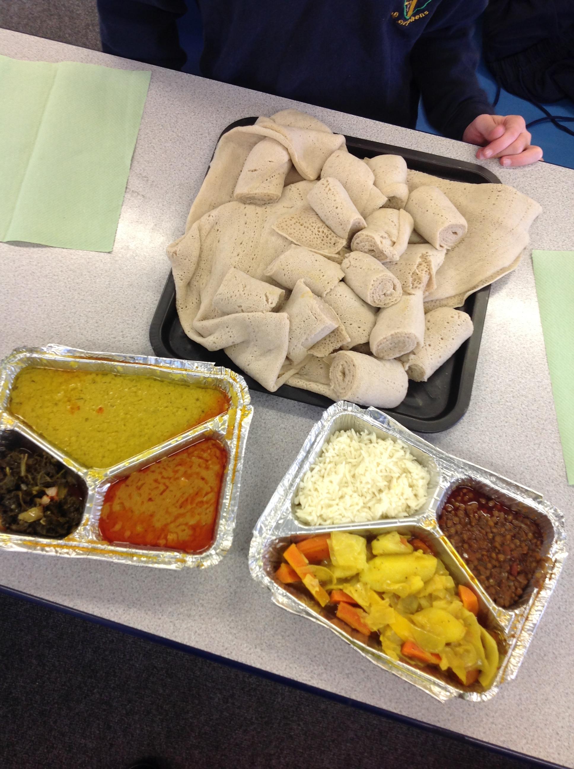 Throughout our WOW day we immersed ourselves within Ethiopia, the setting of our new text, The Garbage King. We found out about its history, landscape, climate and currency as well as other interesting facts. We chose to present our research in different ways, from quizzes, to google slides, to posters. In the afternoon we sampled some authentic Ethiopian food called injera which is a pancake-like flatbread topped with many different foods!
