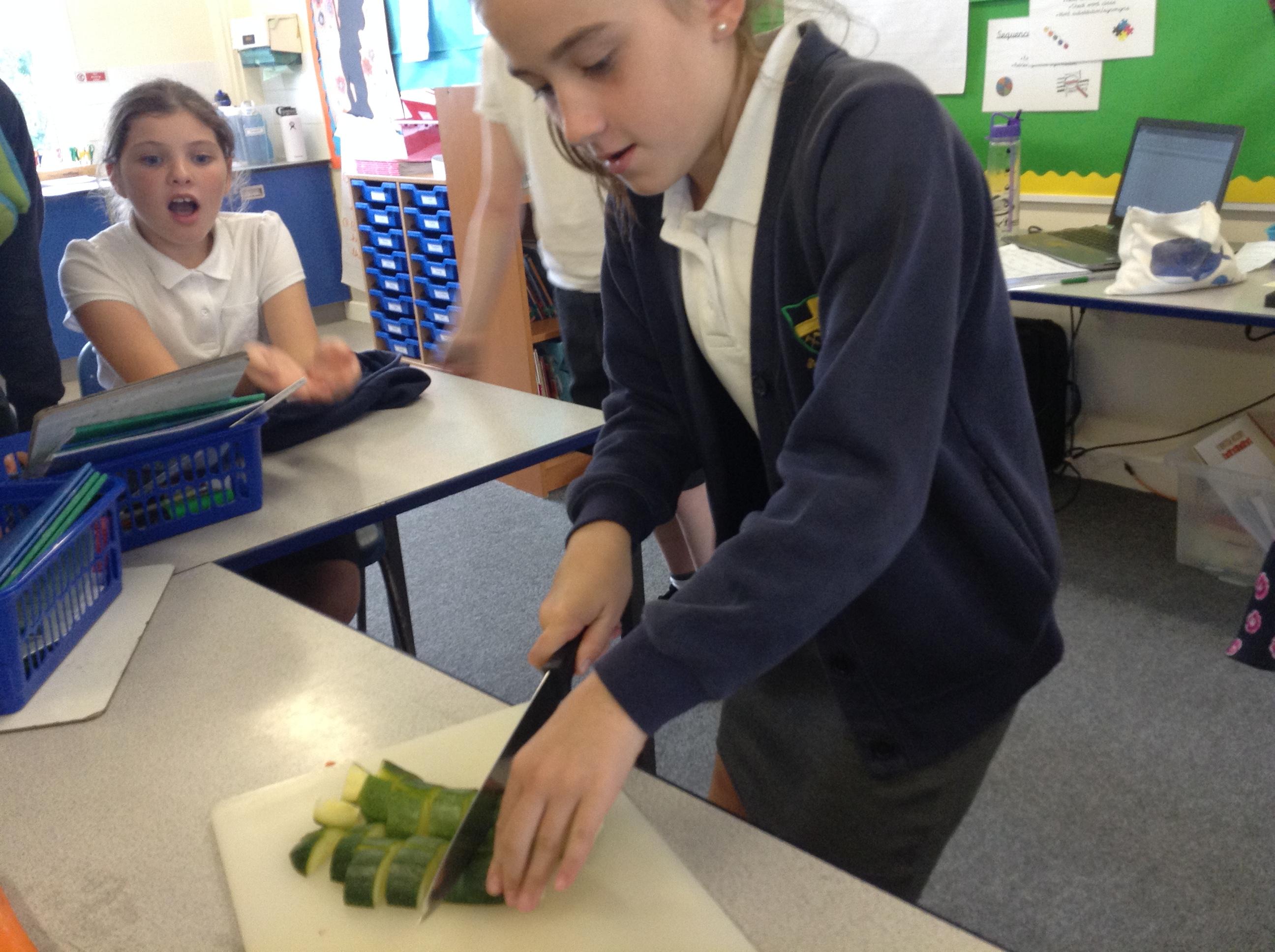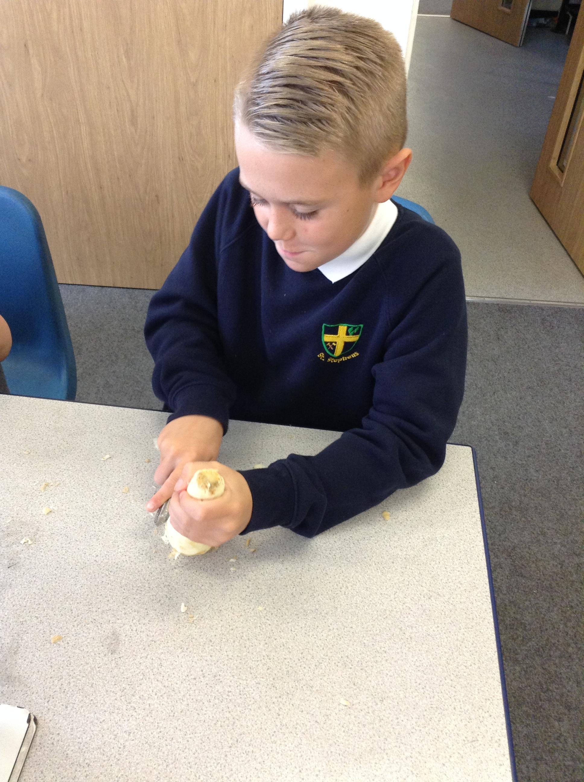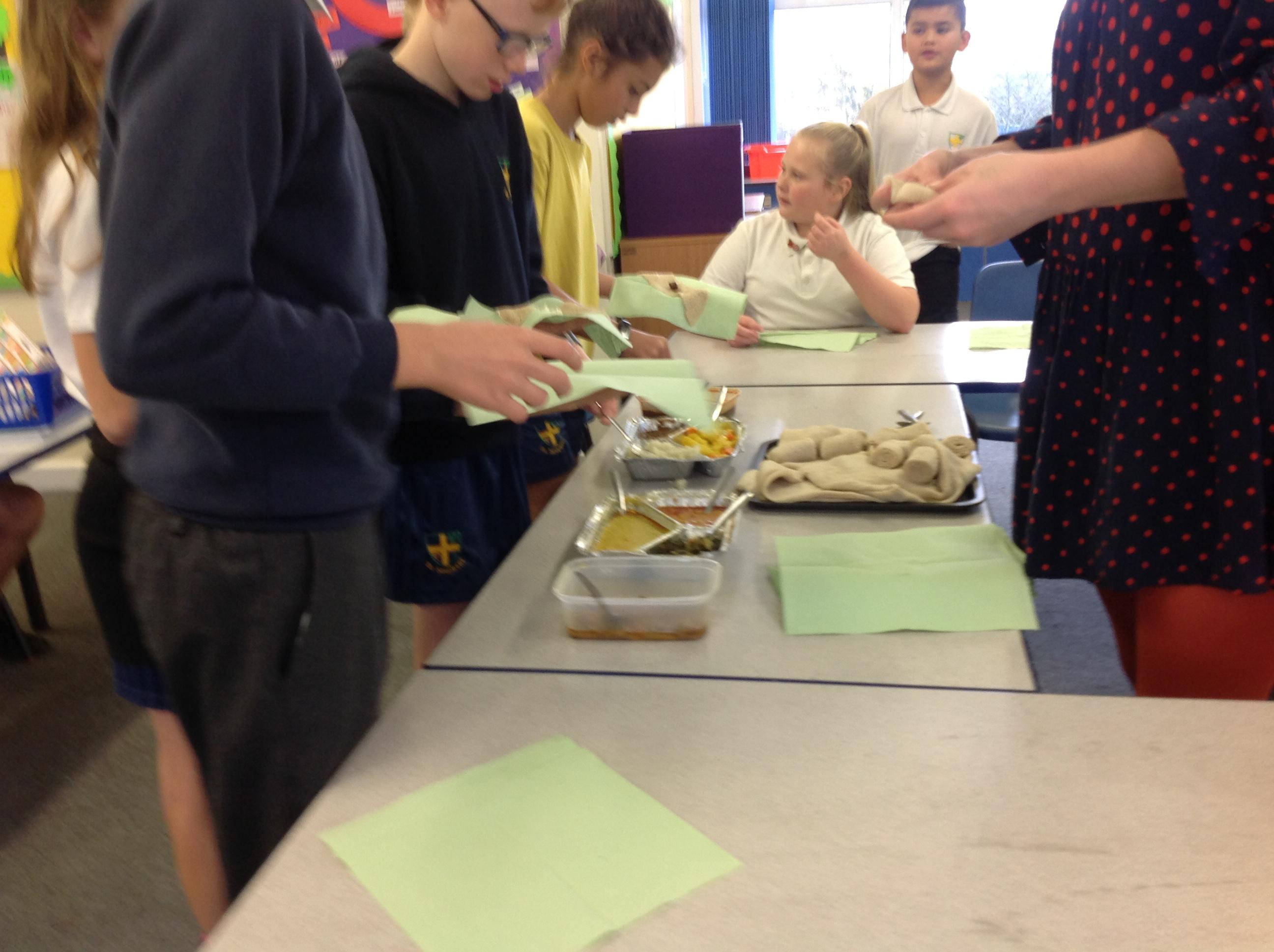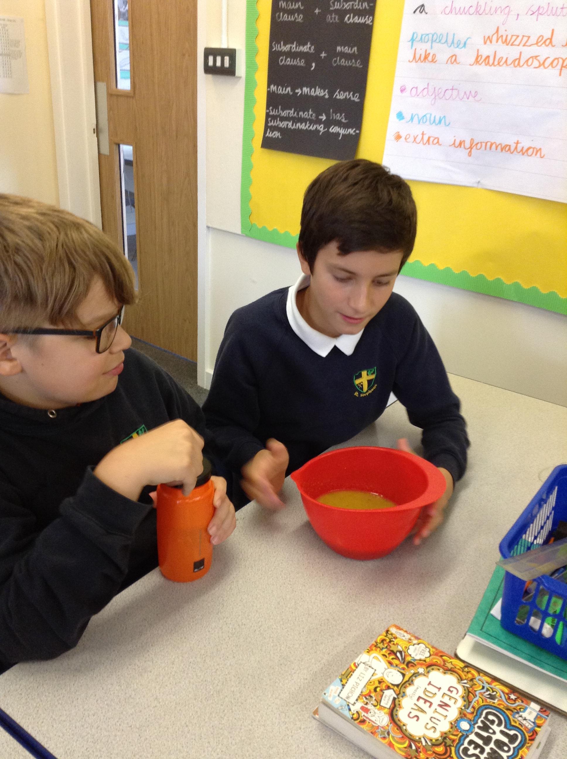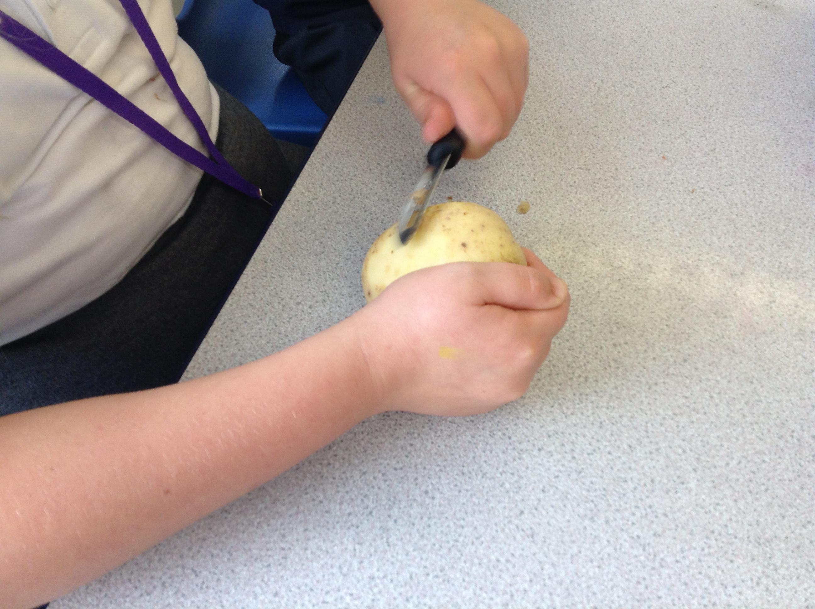 This week, we were presented with a variety of foods that were rationed (we only had small amounts) to create recipes from. It was challenging because we were missing some vital ingredients like salt and pepper! We decided that a vegetable soup would be the best way to use up most of the rations so we helped to peel, cut, boil and blend the vegetables to create a delicious soup that we enjoyed tasting!