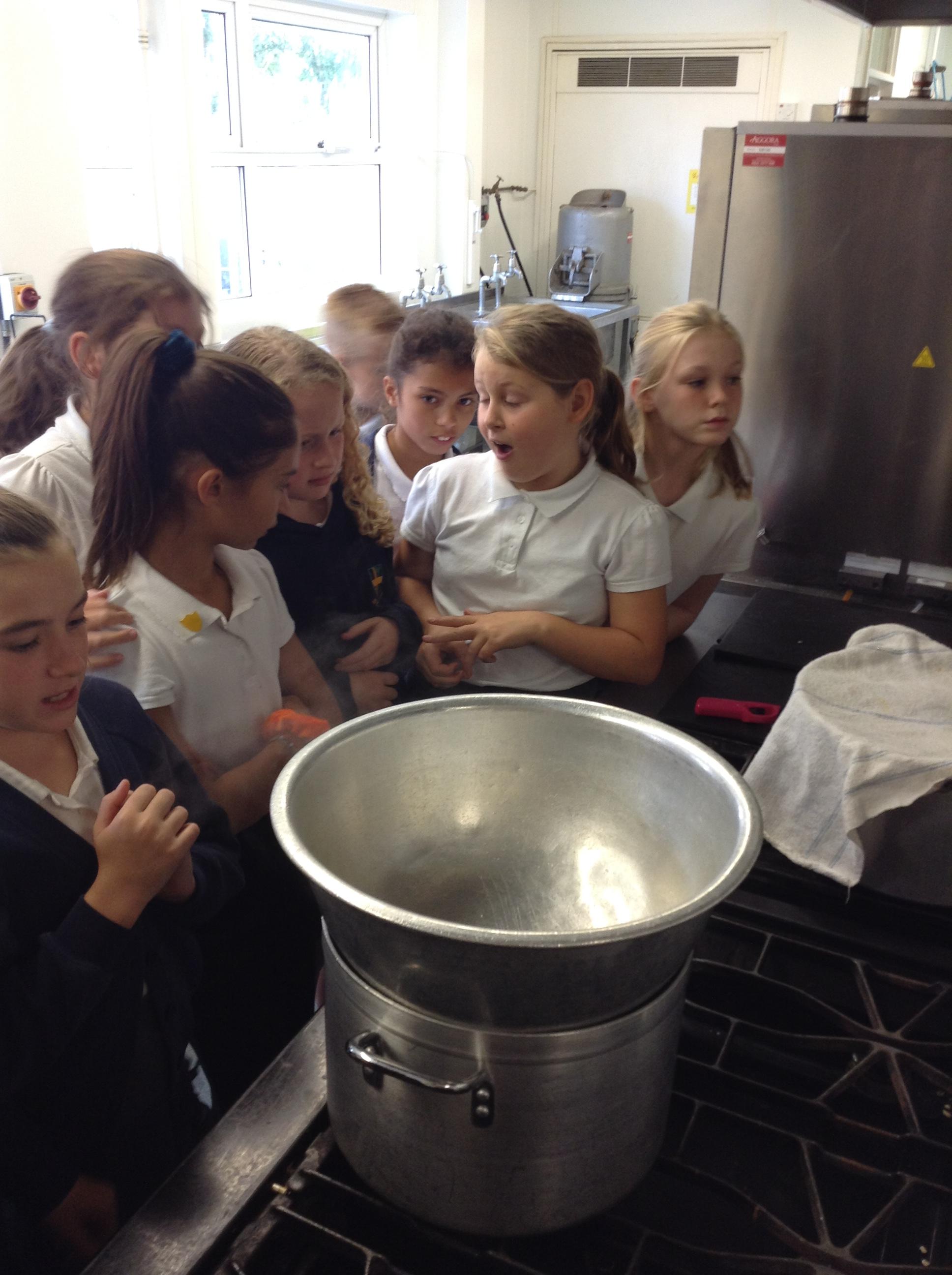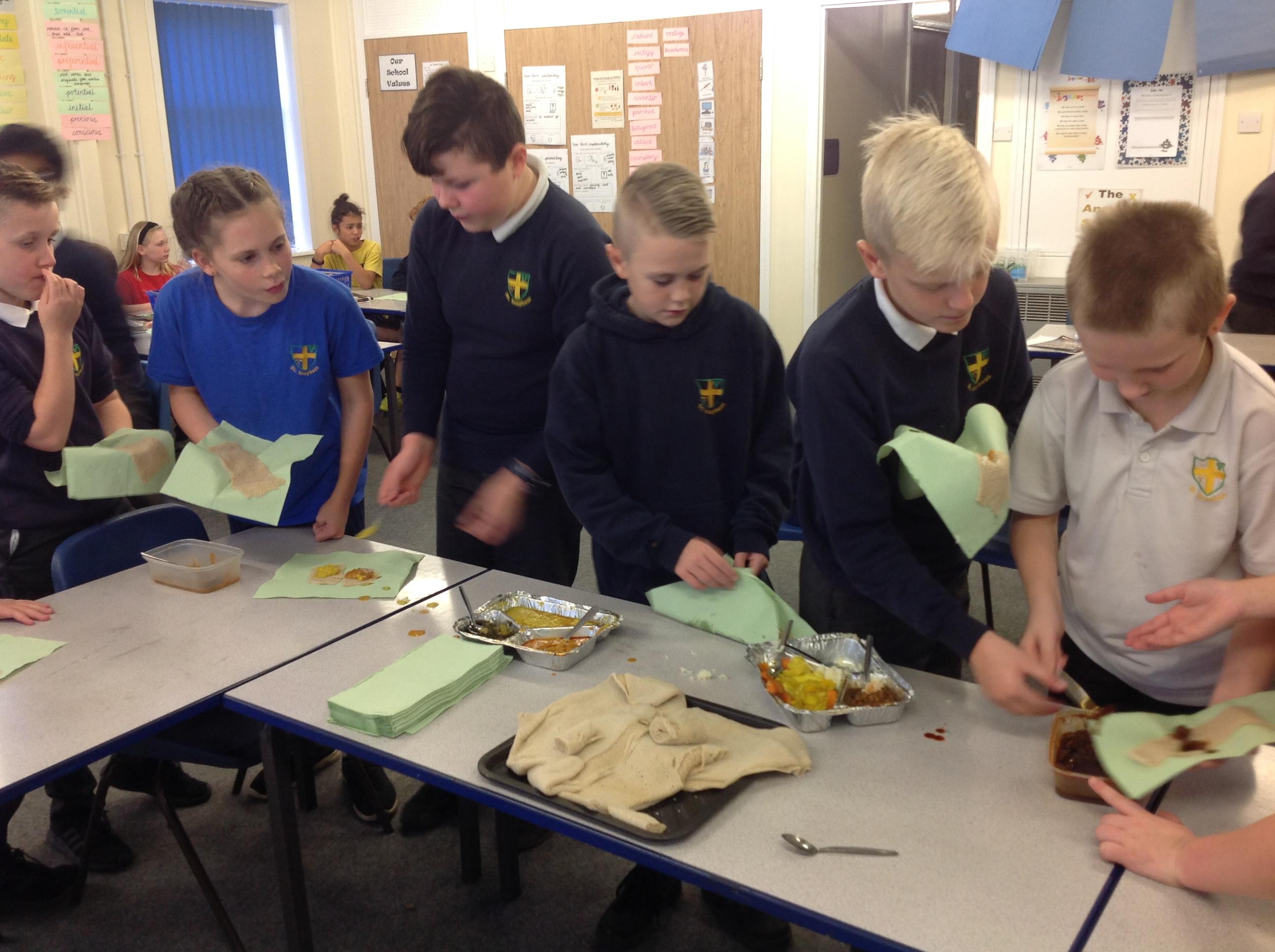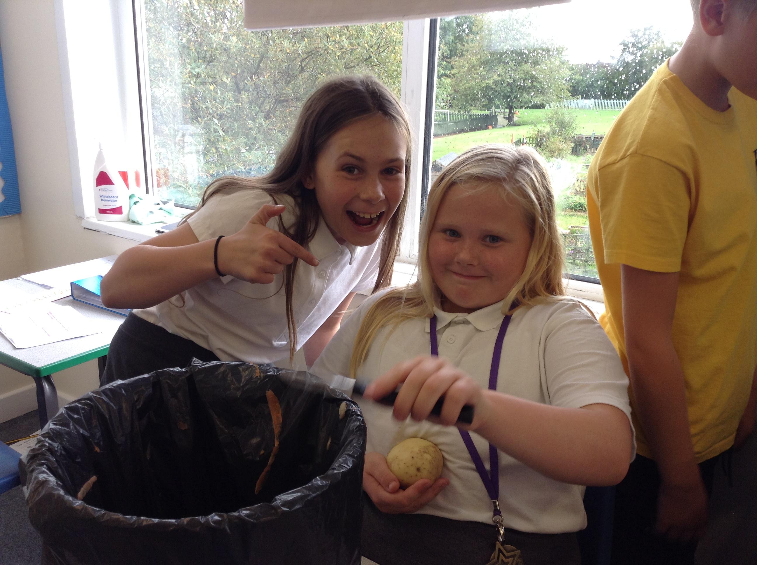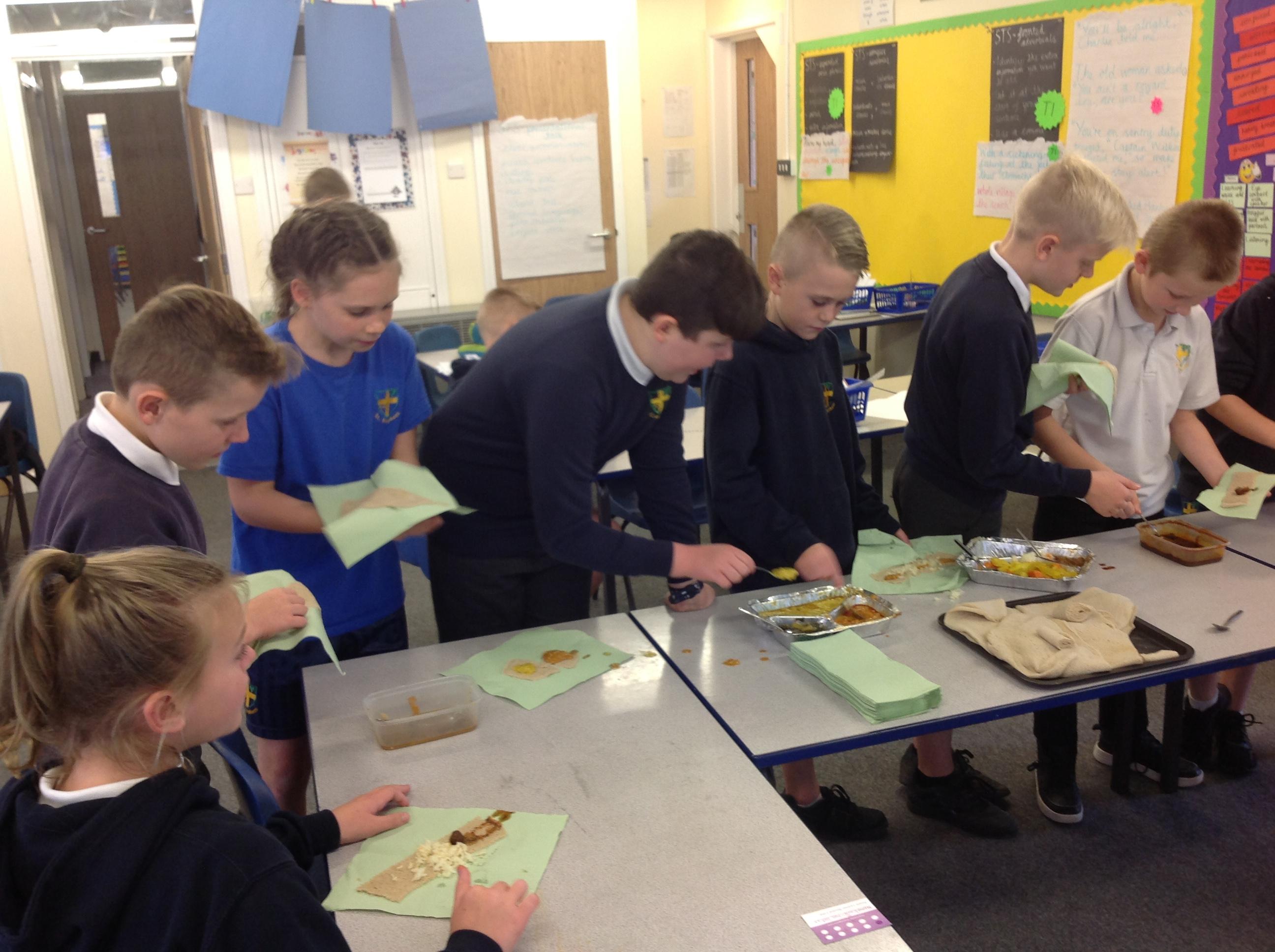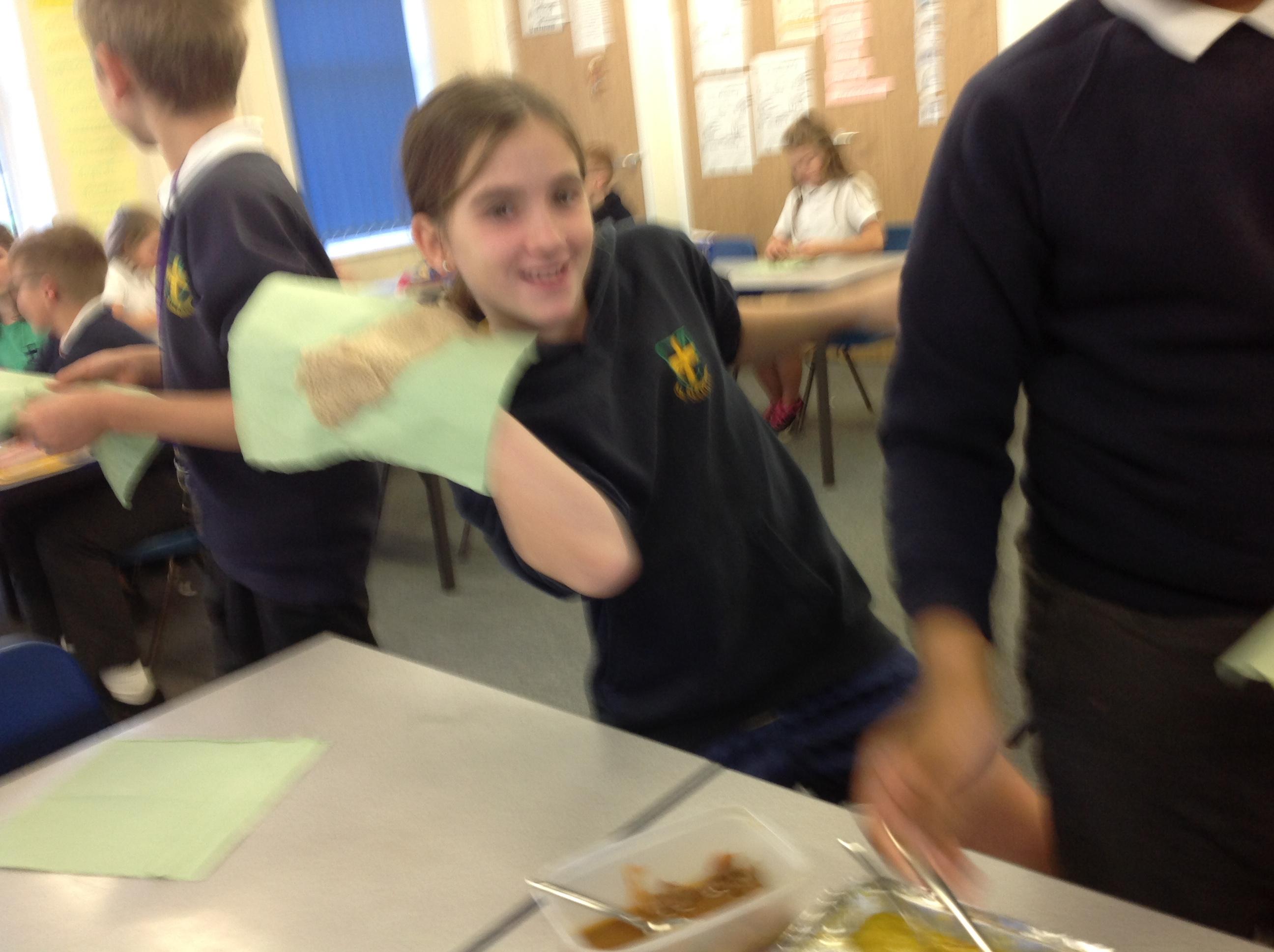 This week, we were presented with a variety of foods that were rationed (we only had small amounts) to create recipes from. It was challenging because we were missing some vital ingredients like salt and pepper! We decided that a vegetable soup would be the best way to use up most of the rations so we helped to peel, cut, boil and blend the vegetables to create a delicious soup that we enjoyed tasting!