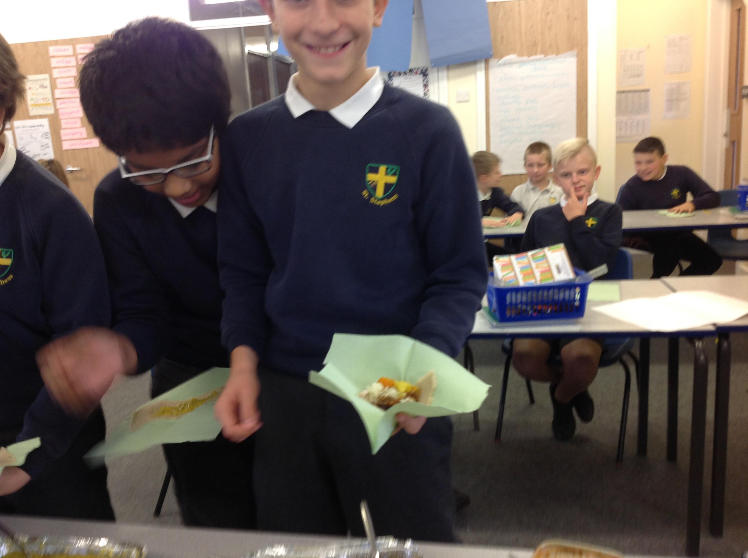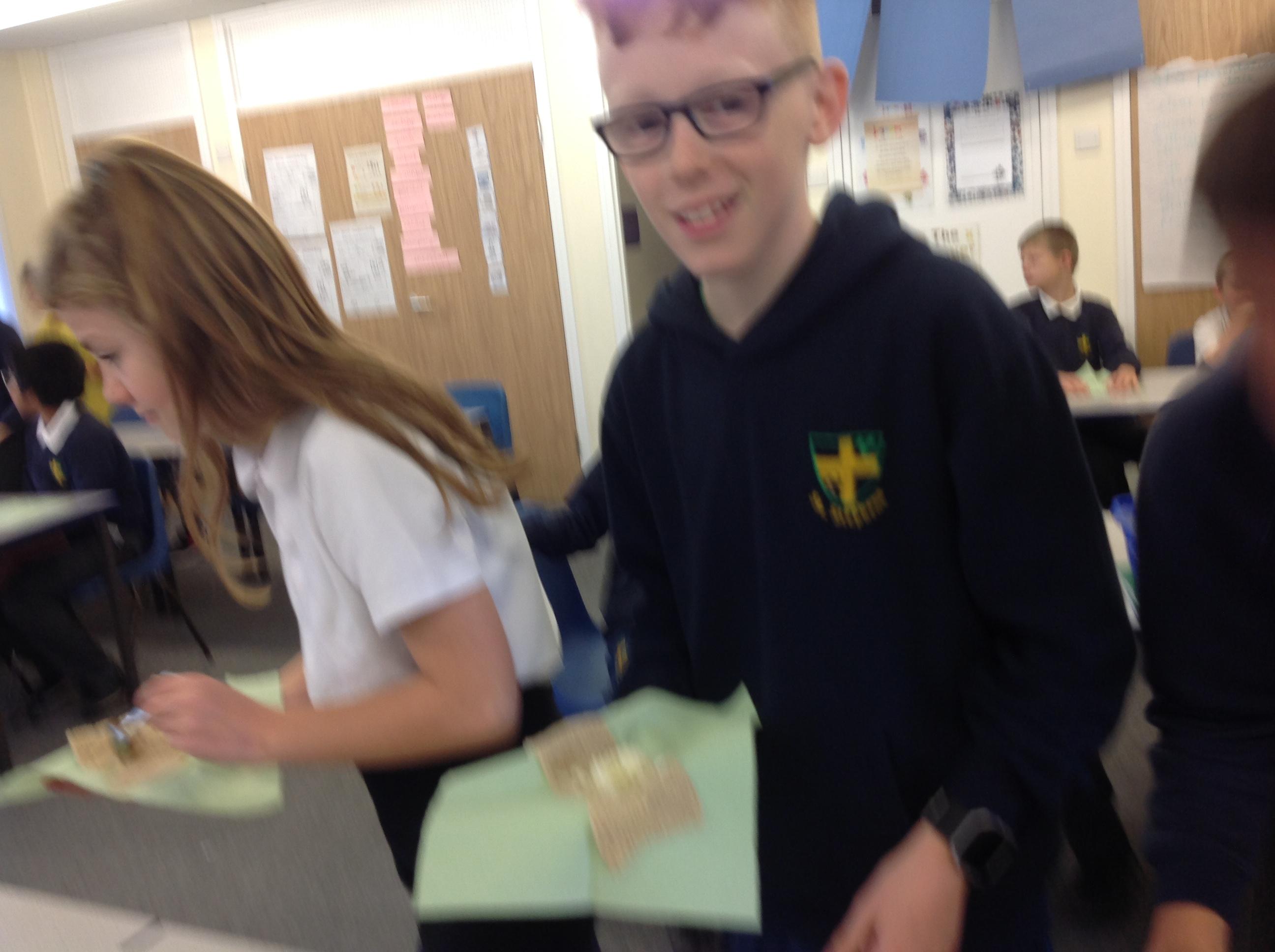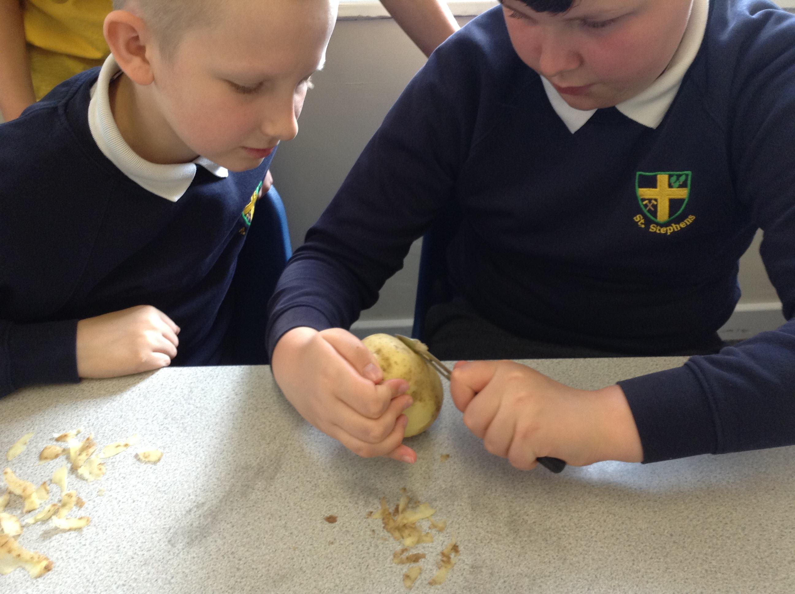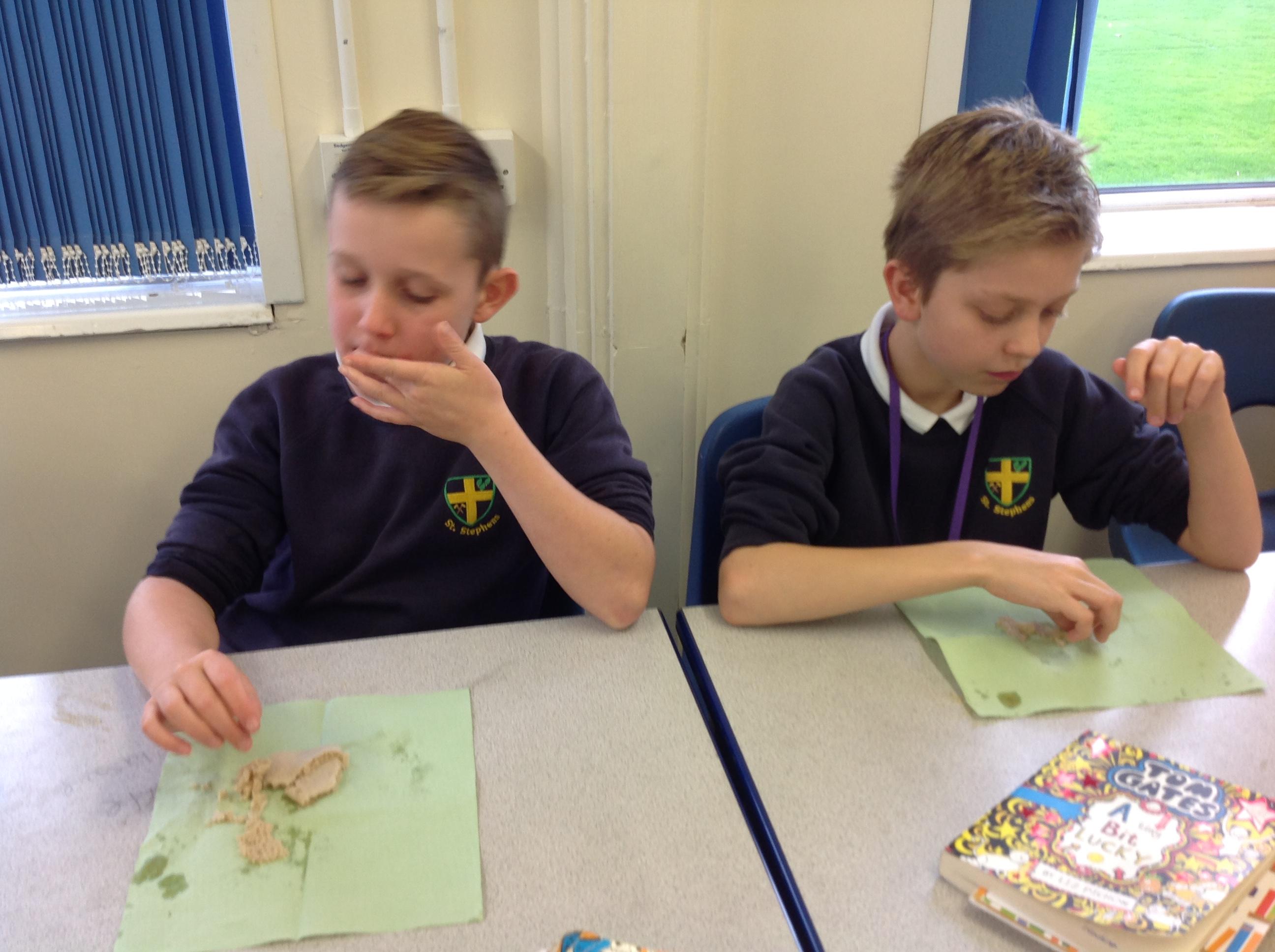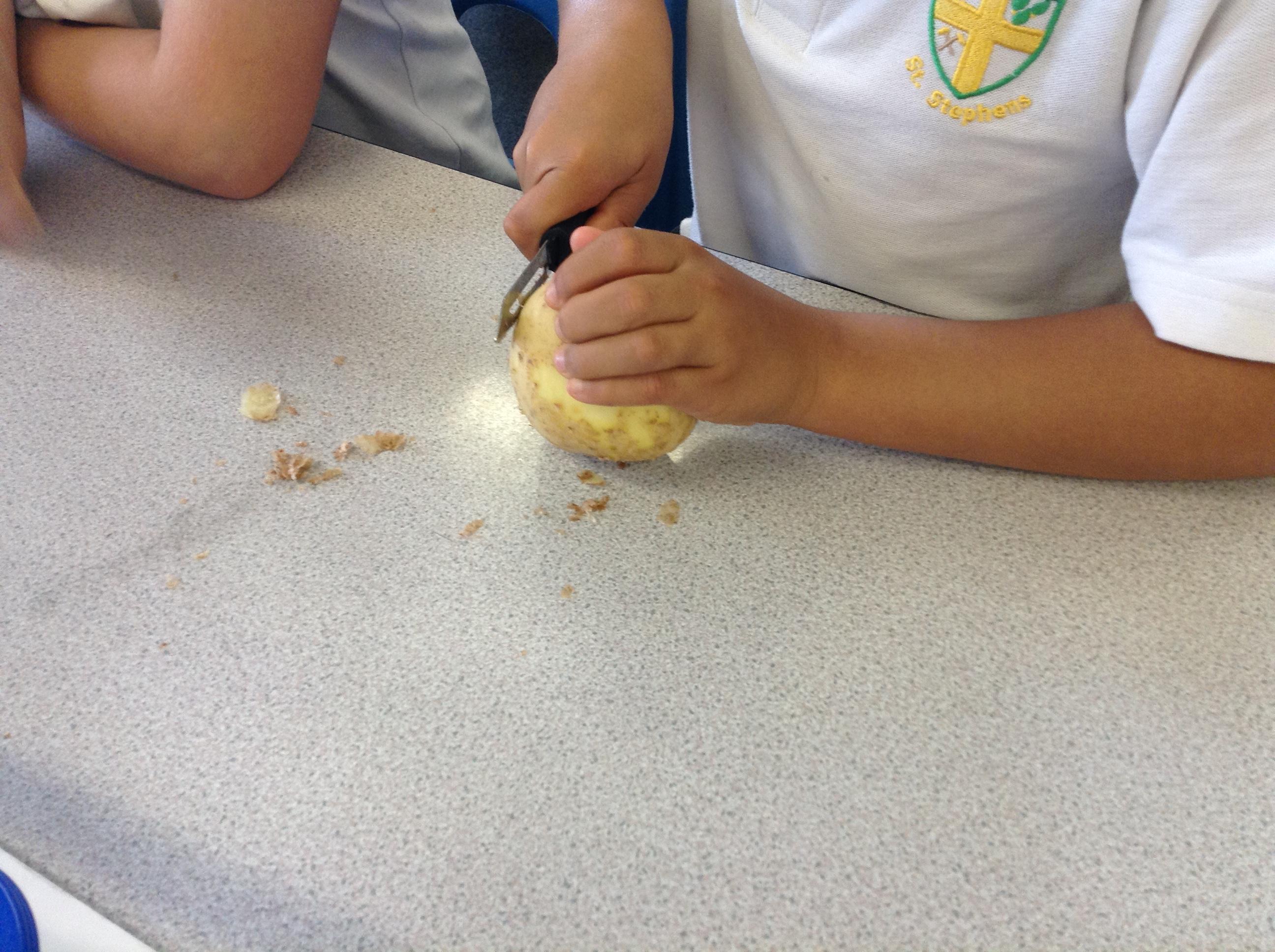 This week, we were presented with a variety of foods that were rationed (we only had small amounts) to create recipes from. It was challenging because we were missing some vital ingredients like salt and pepper! We decided that a vegetable soup would be the best way to use up most of the rations so we helped to peel, cut, boil and blend the vegetables to create a delicious soup that we enjoyed tasting!