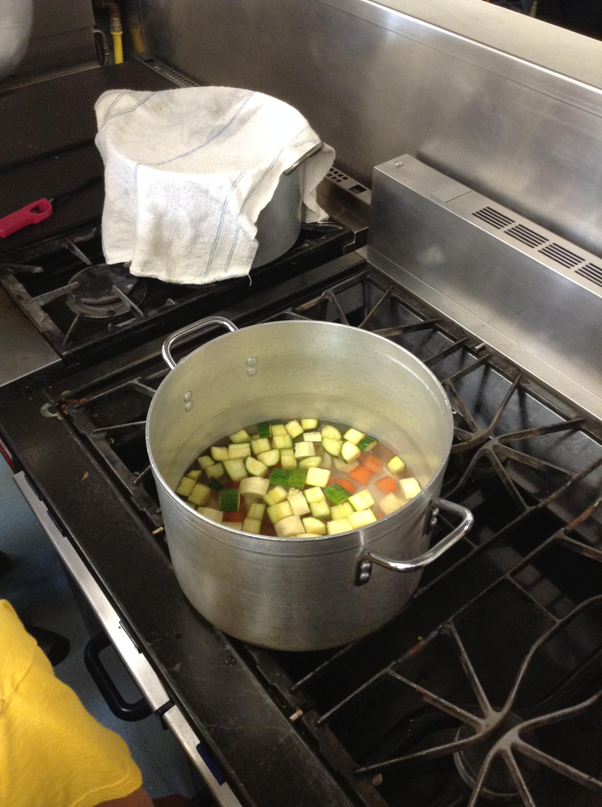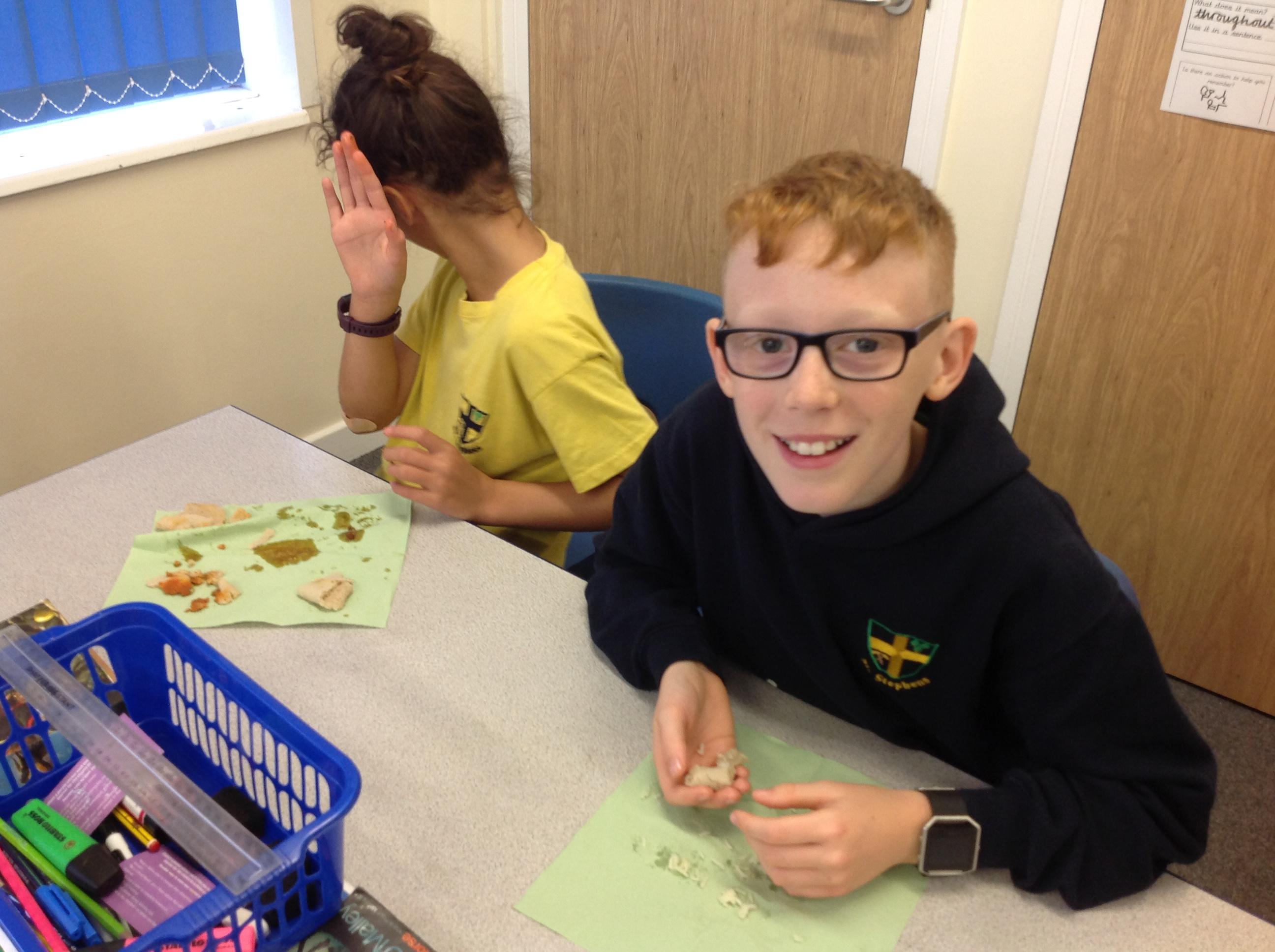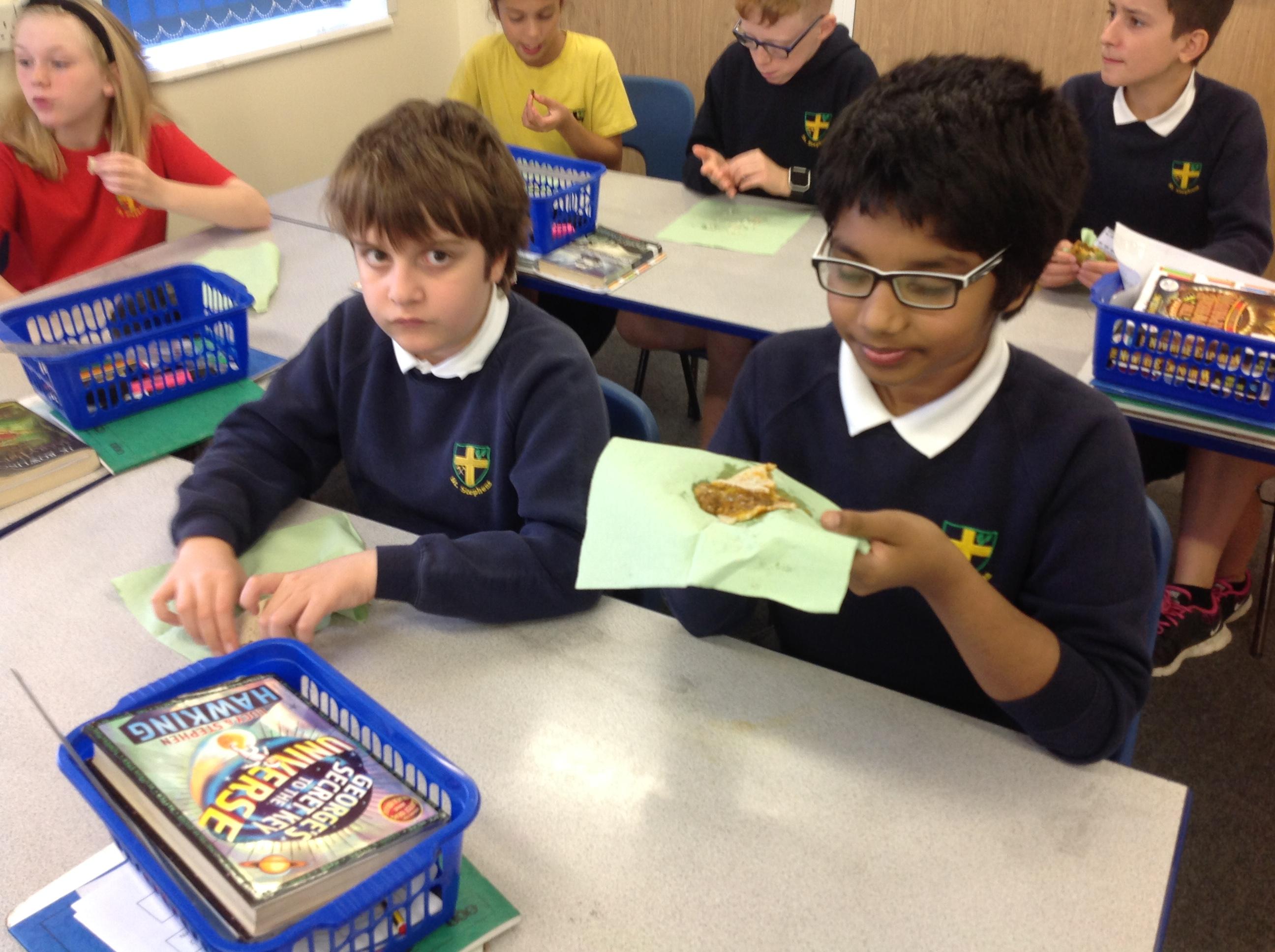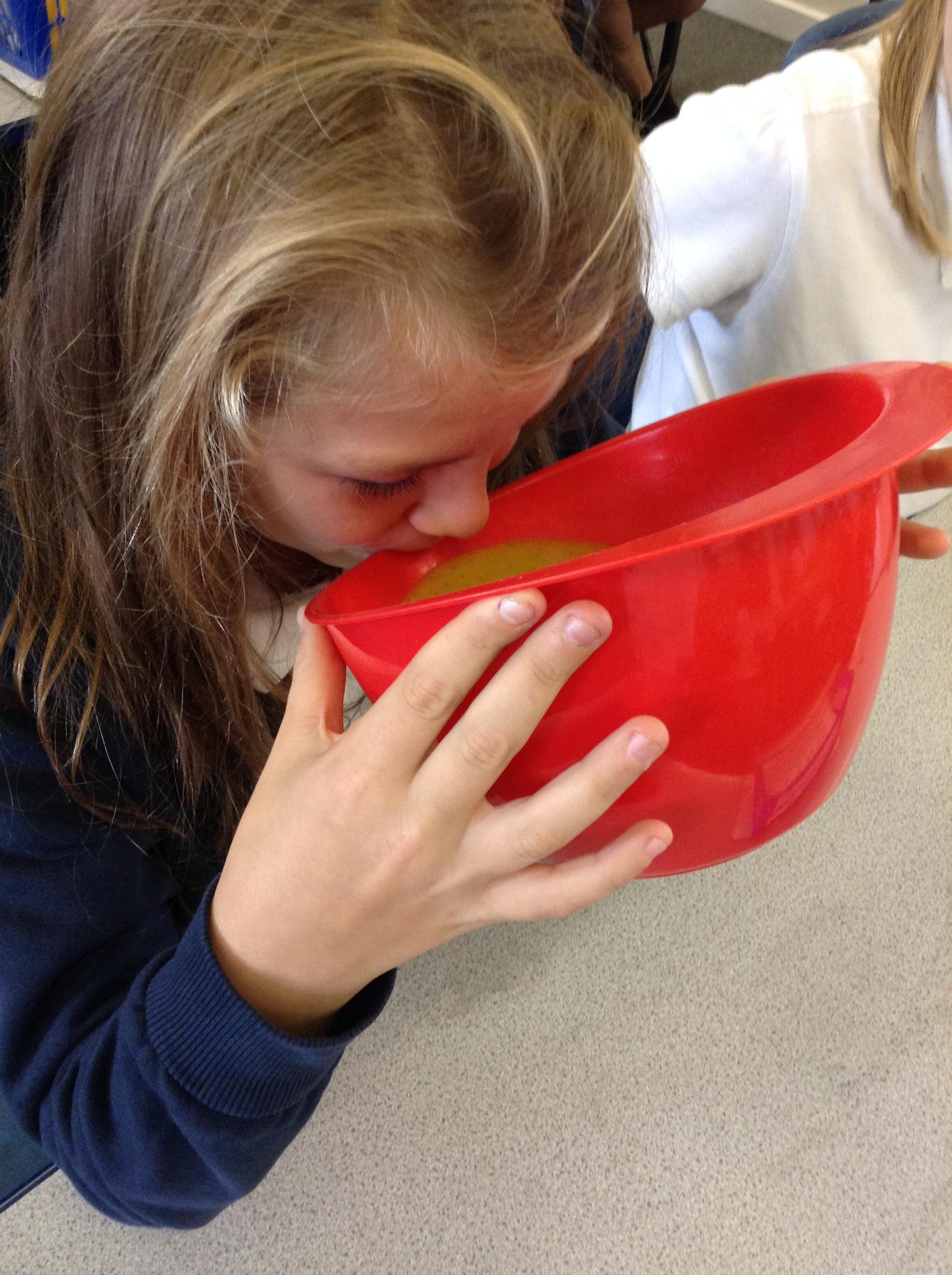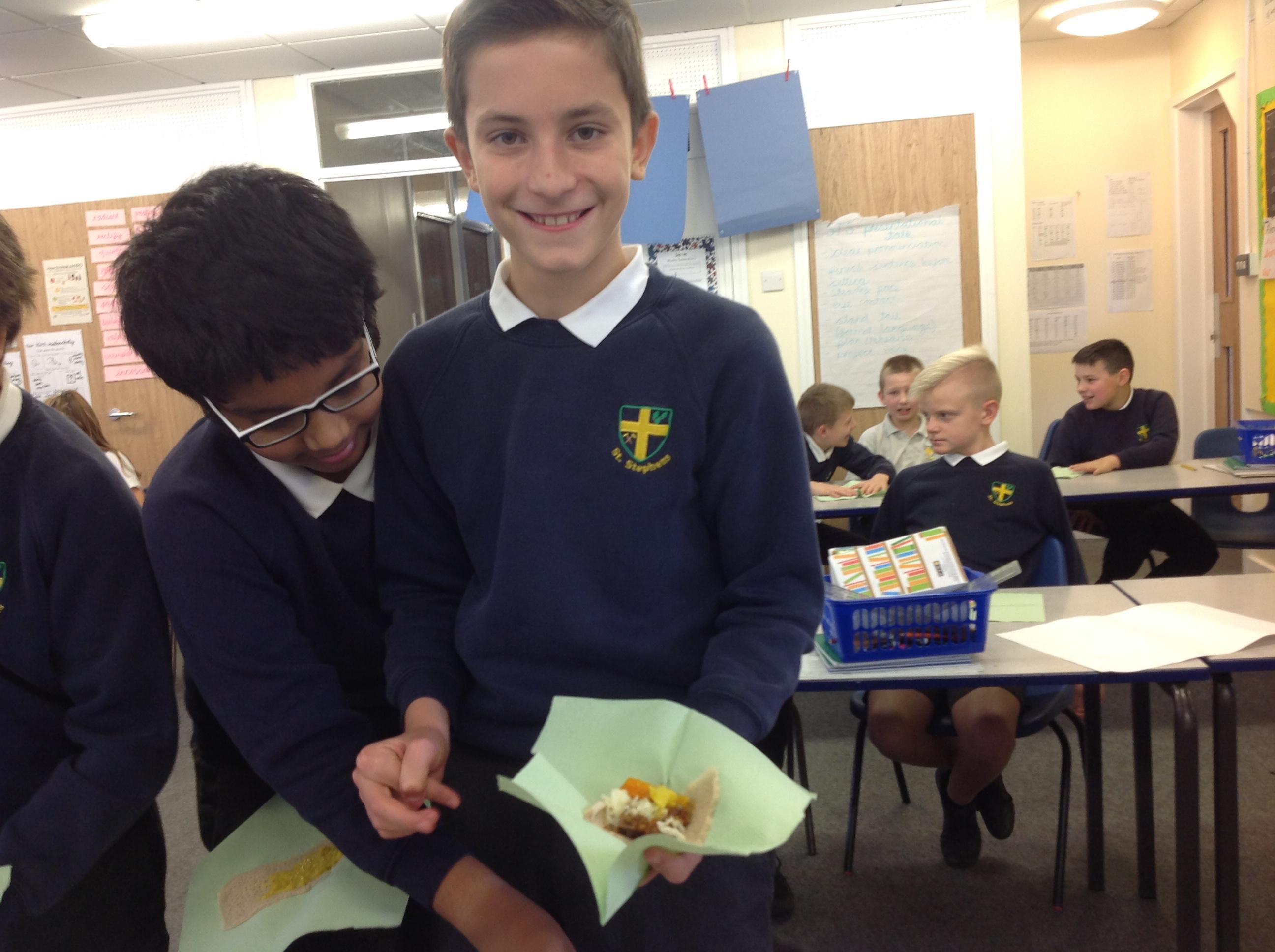 This week, we were presented with a variety of foods that were rationed (we only had small amounts) to create recipes from. It was challenging because we were missing some vital ingredients like salt and pepper! We decided that a vegetable soup would be the best way to use up most of the rations so we helped to peel, cut, boil and blend the vegetables to create a delicious soup that we enjoyed tasting!
