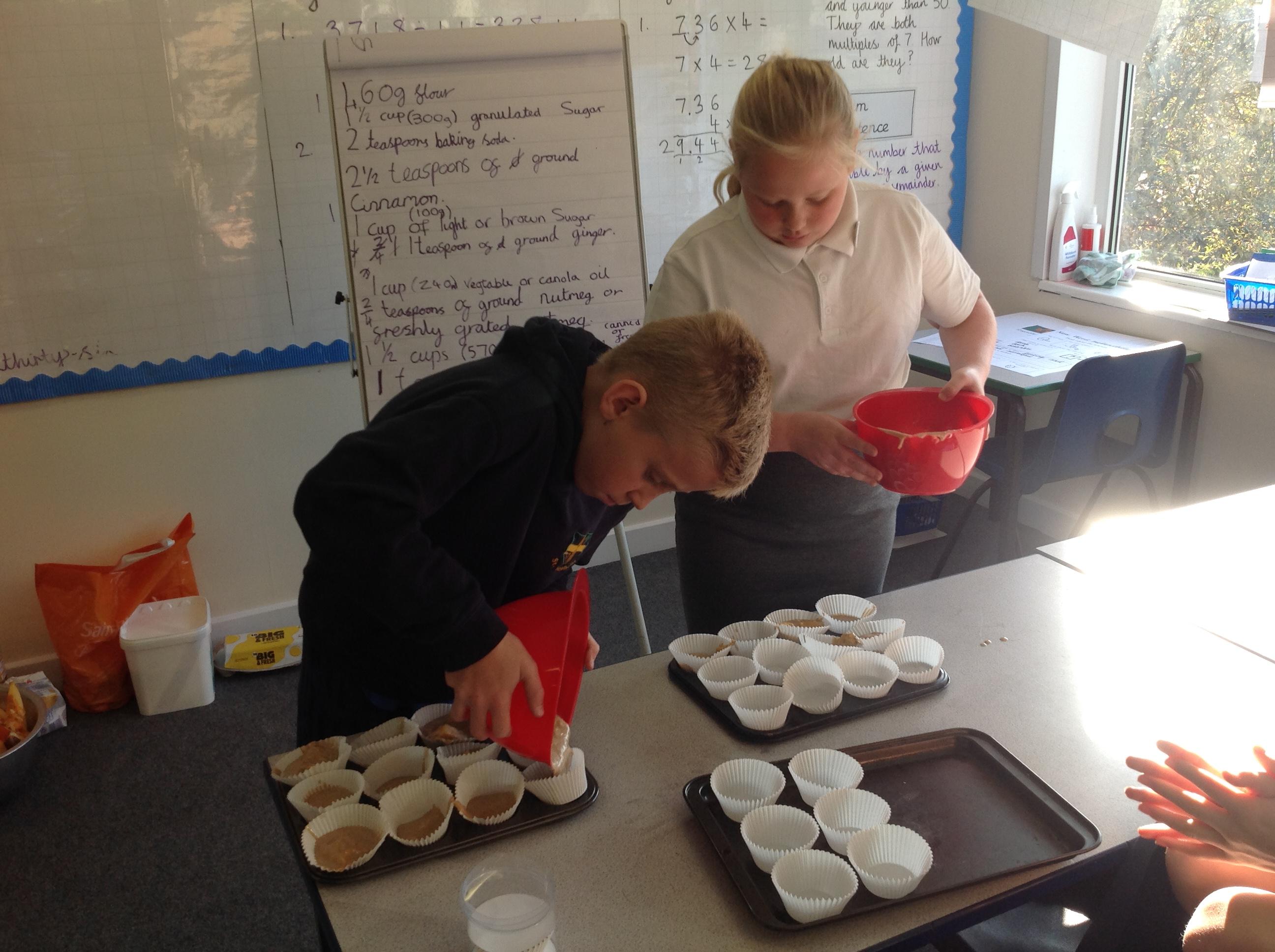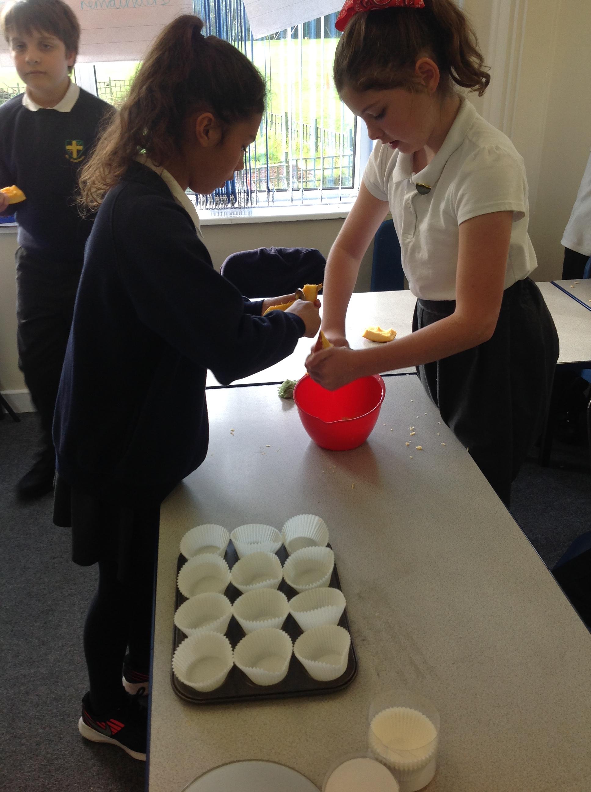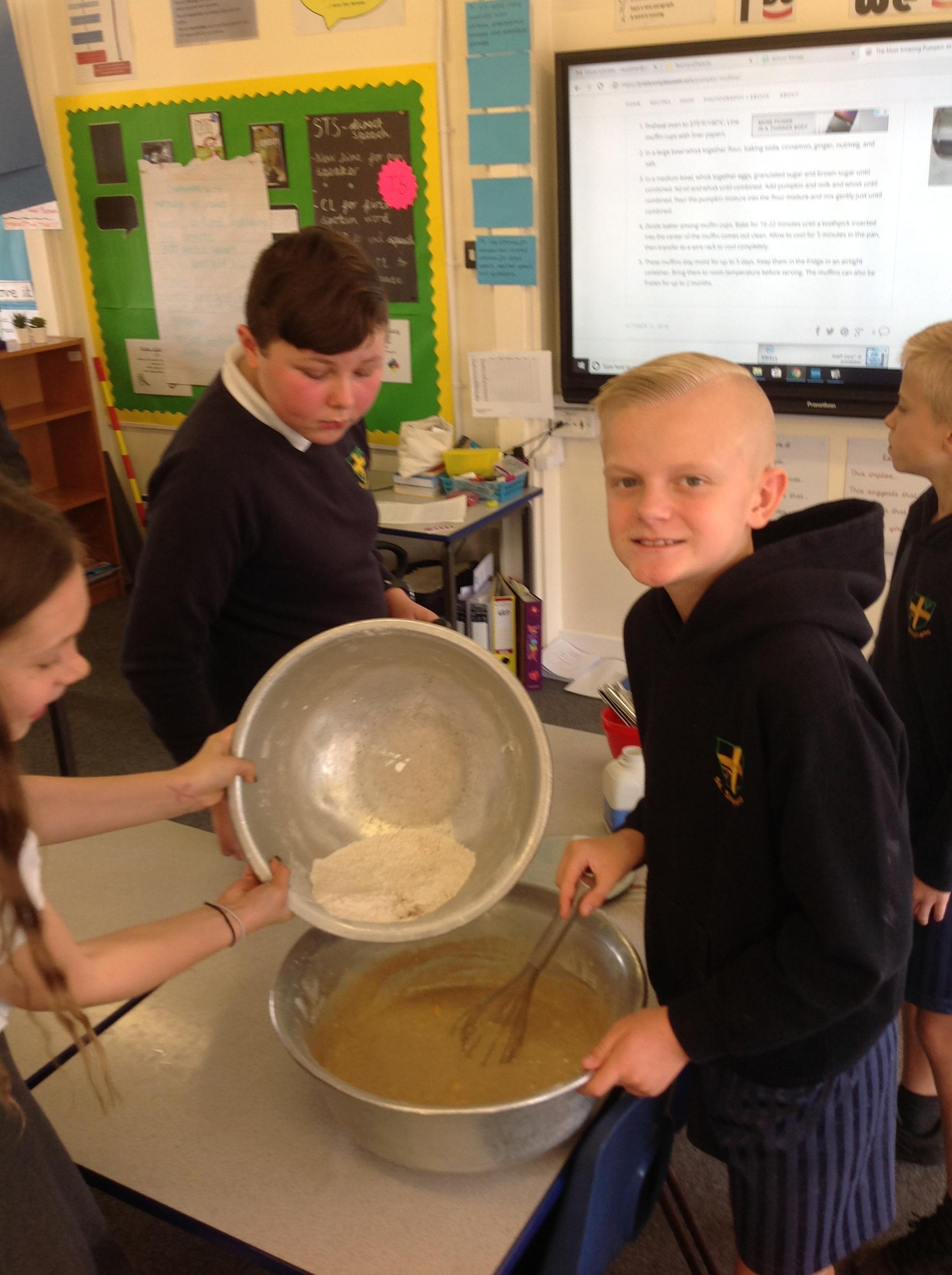 Our challenge was to create a dish using rations. We knew that people grew their own produce during WW1 so we decided to use pumpkins as our main ingredient! After lots of recipe research, we agreed that pumpkin muffins would be the most tasty so we worked together to create them. They were delicious but next time we would grate the pumpkin to make it finer.